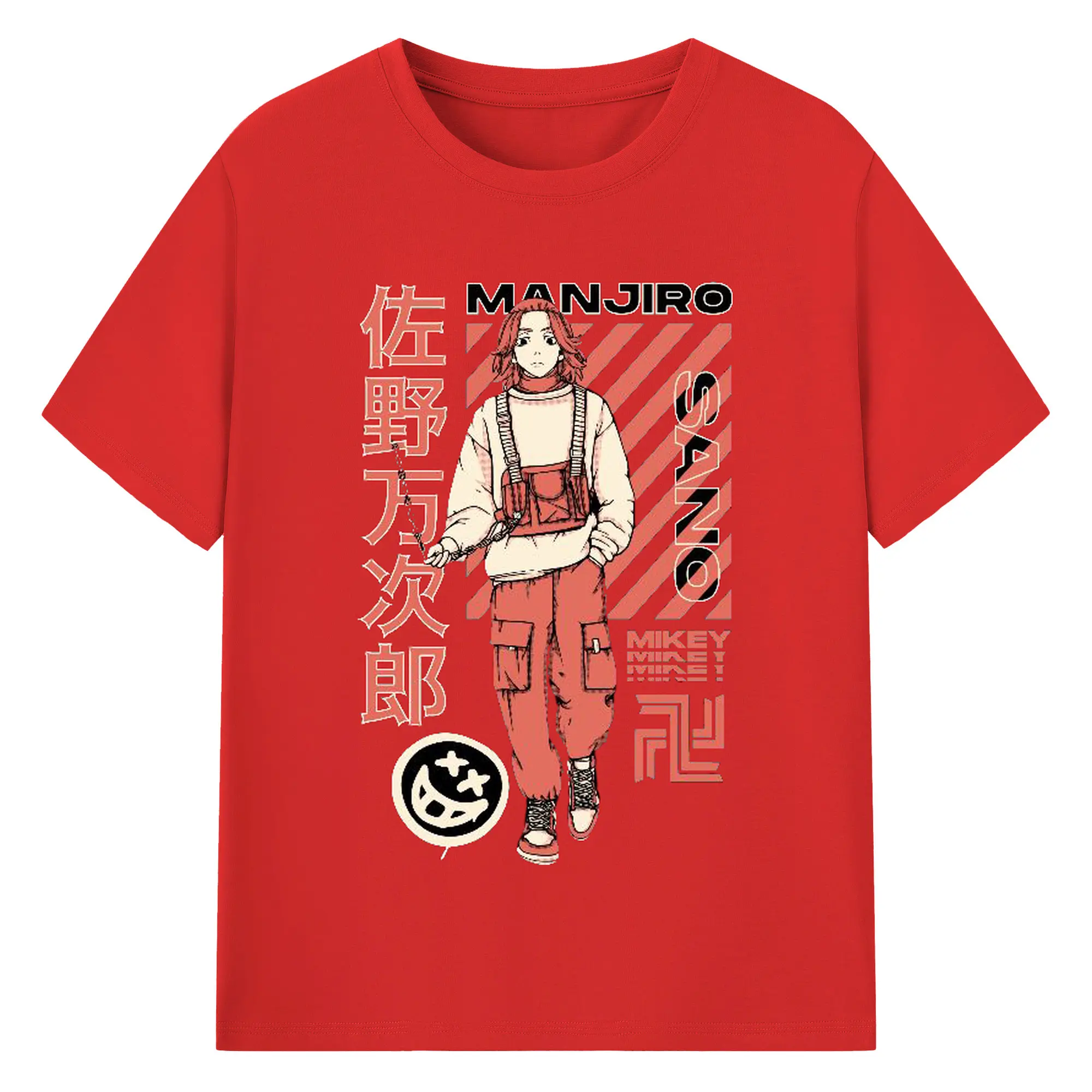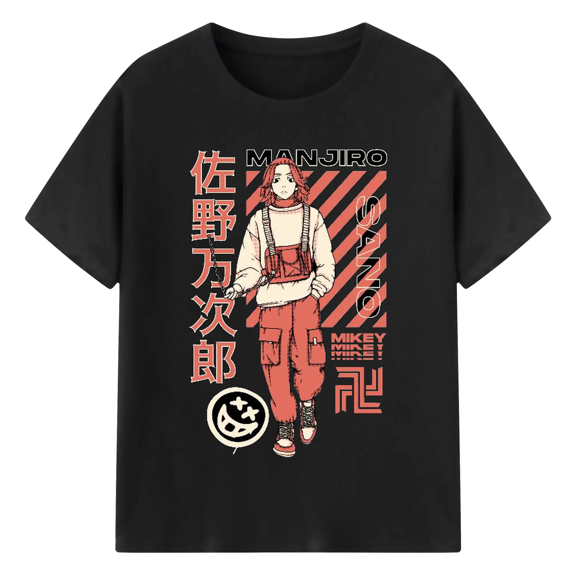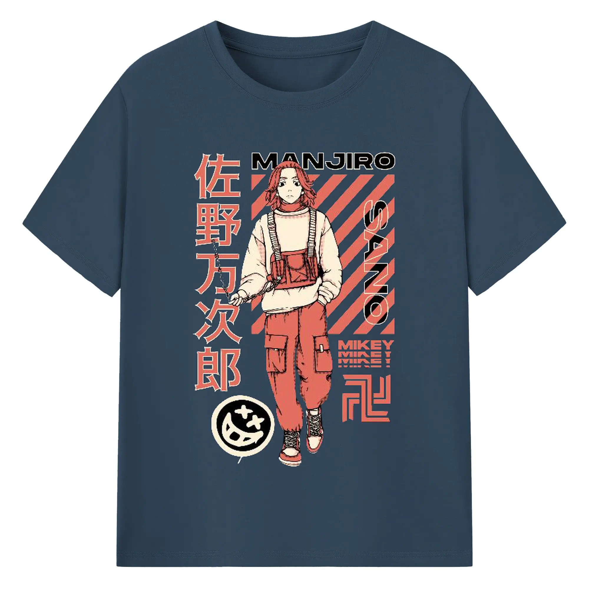 東京卍リベンジャーズ 東リベ佐野万次郎 - 綿100% 半袖Tシャツ ・ フロントプリント ・ 快適 通気性 ・ 日常使い 散歩 スポーツ用
