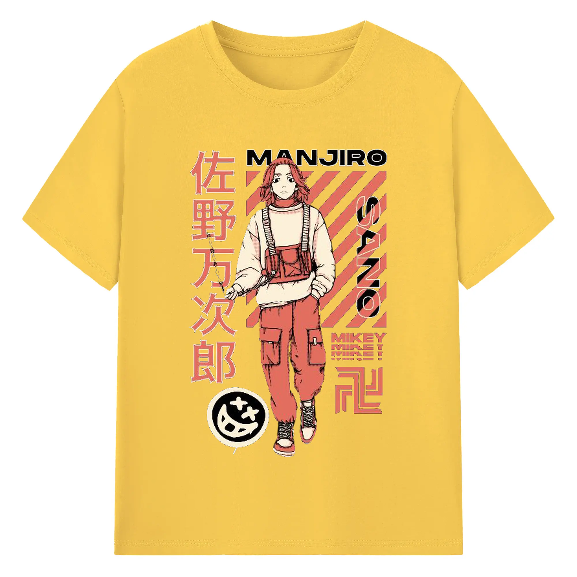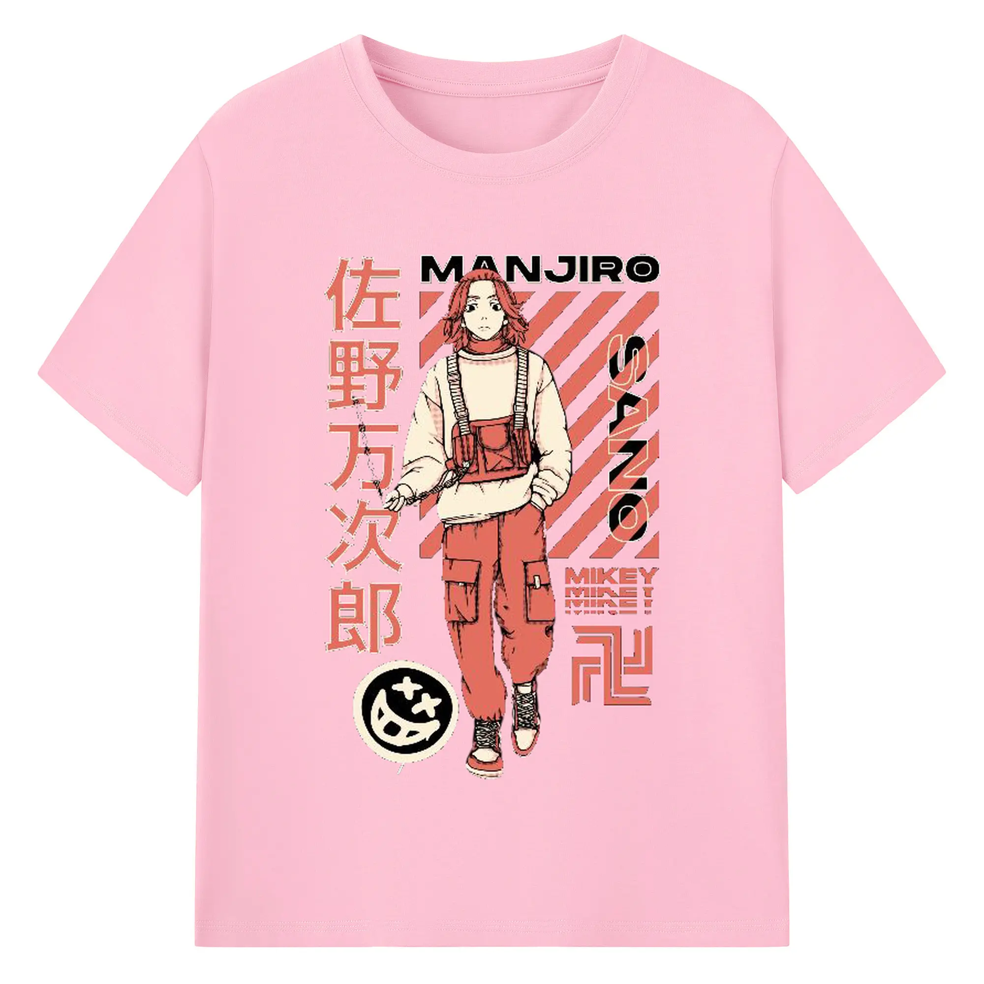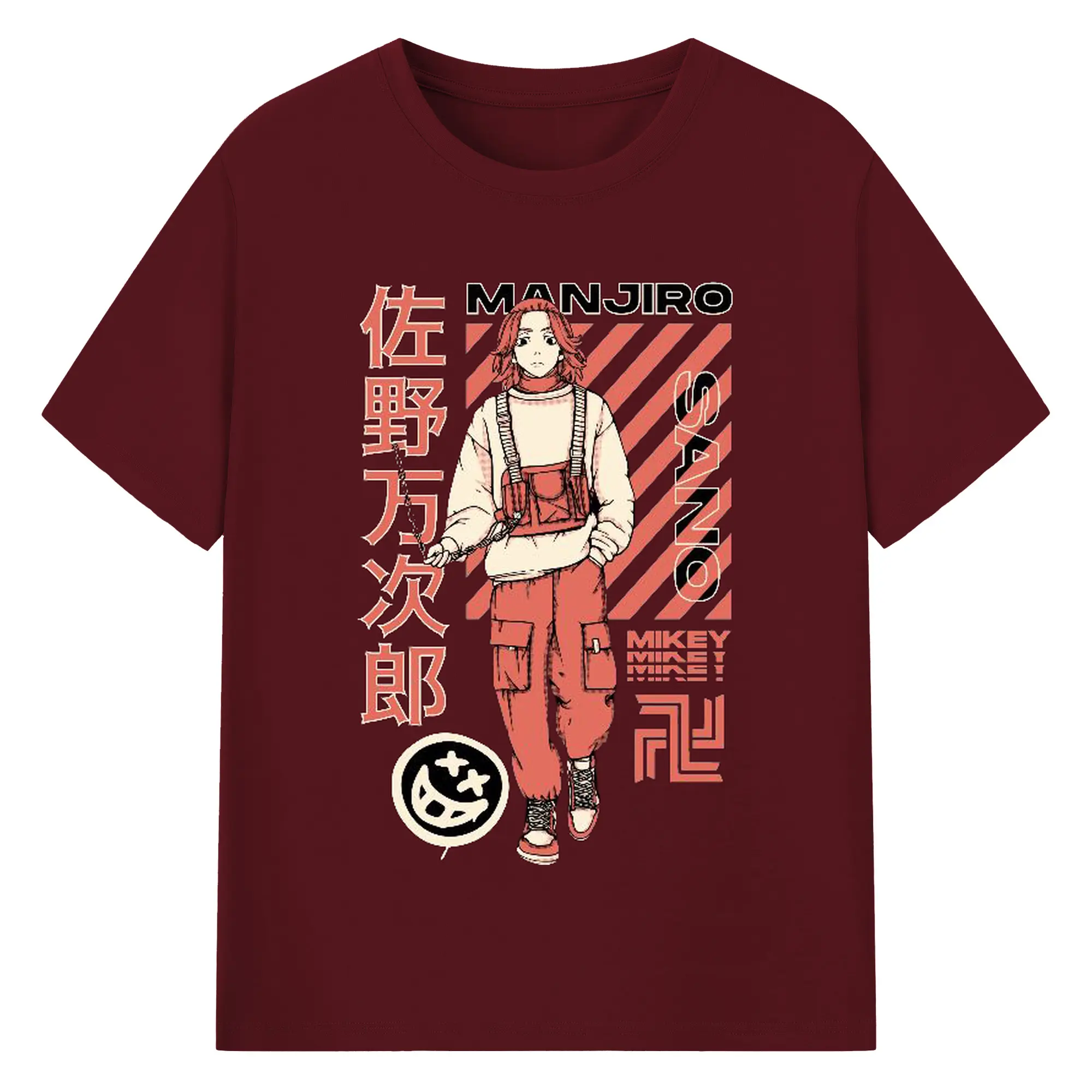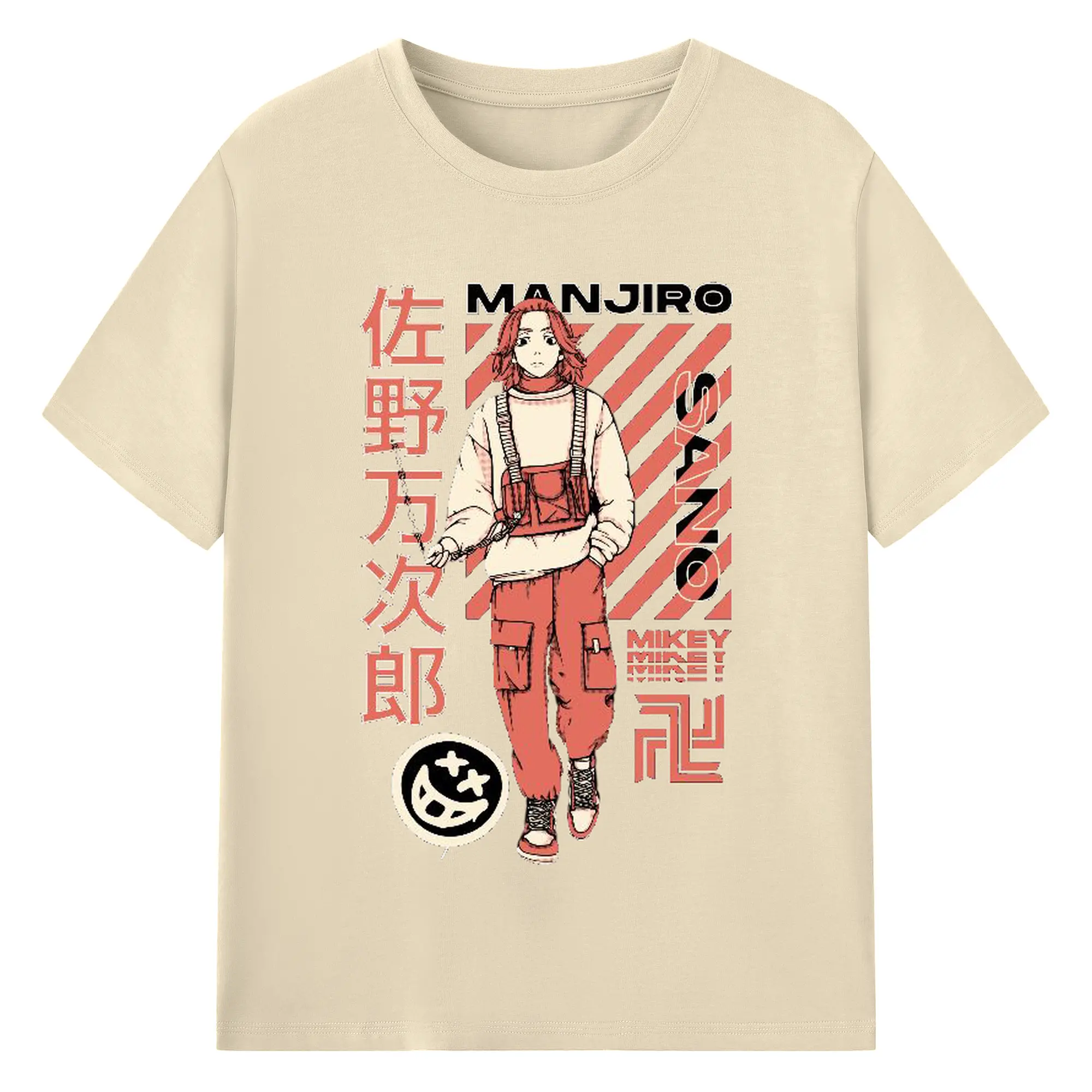 東京卍リベンジャーズ 東リベ佐野万次郎 - 綿100% 半袖Tシャツ ・ フロントプリント ・ 快適 通気性 ・ 日常使い 散歩 スポーツ用