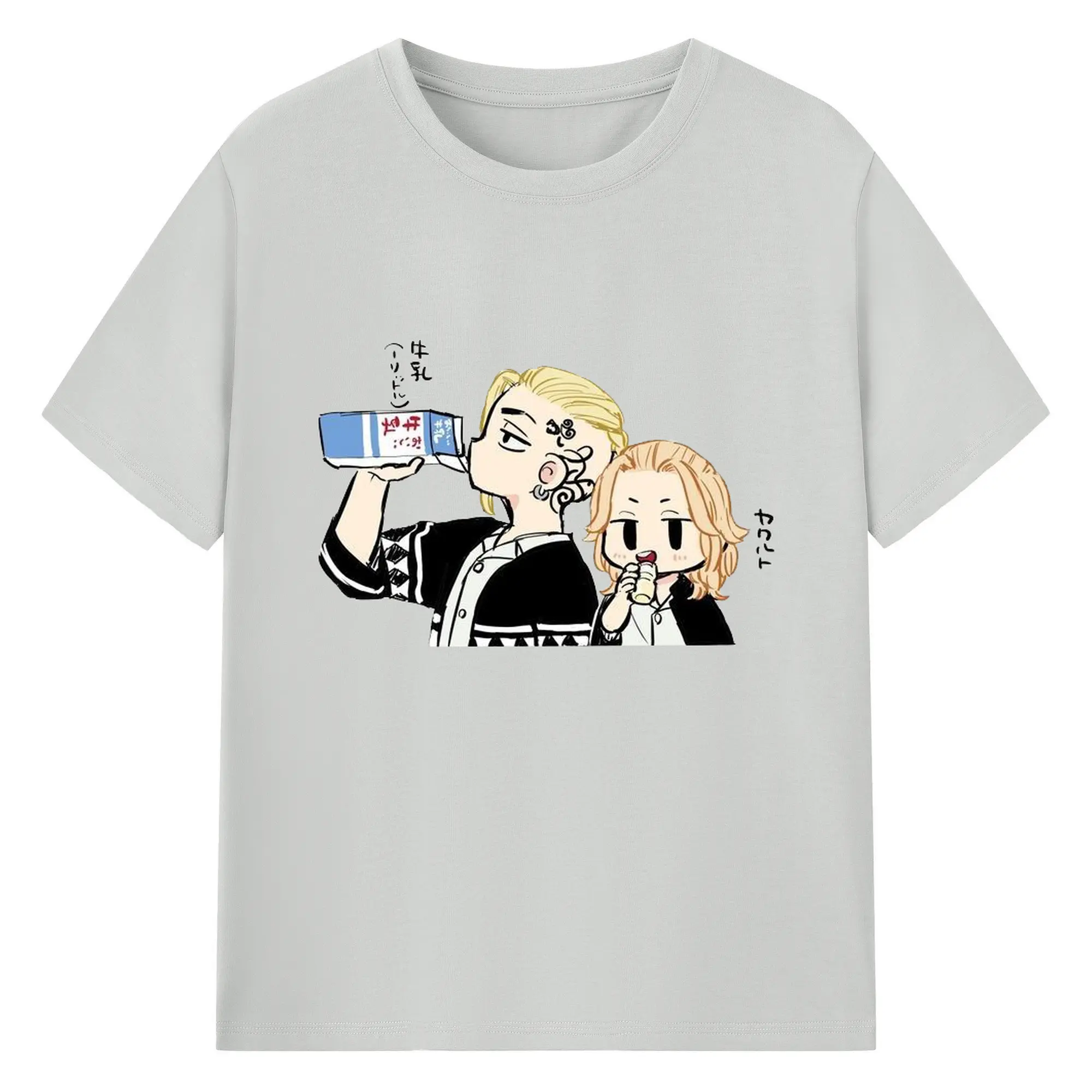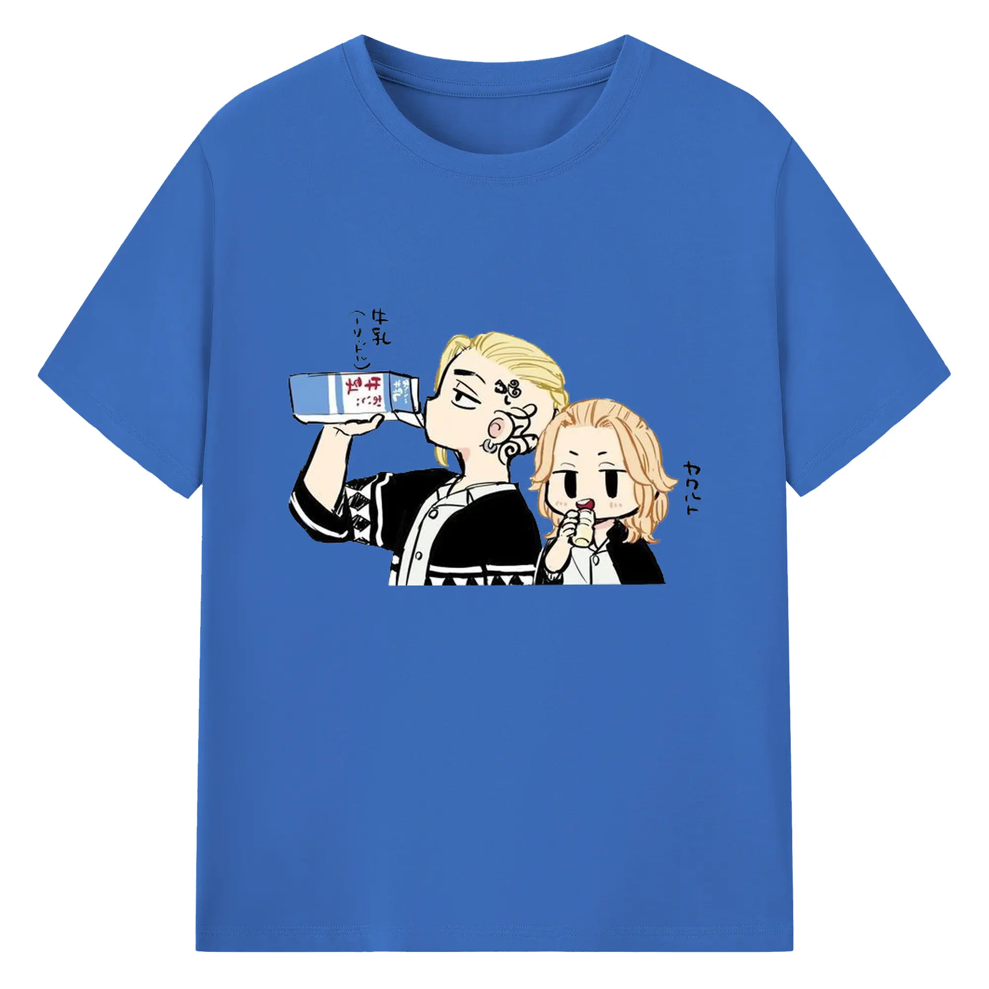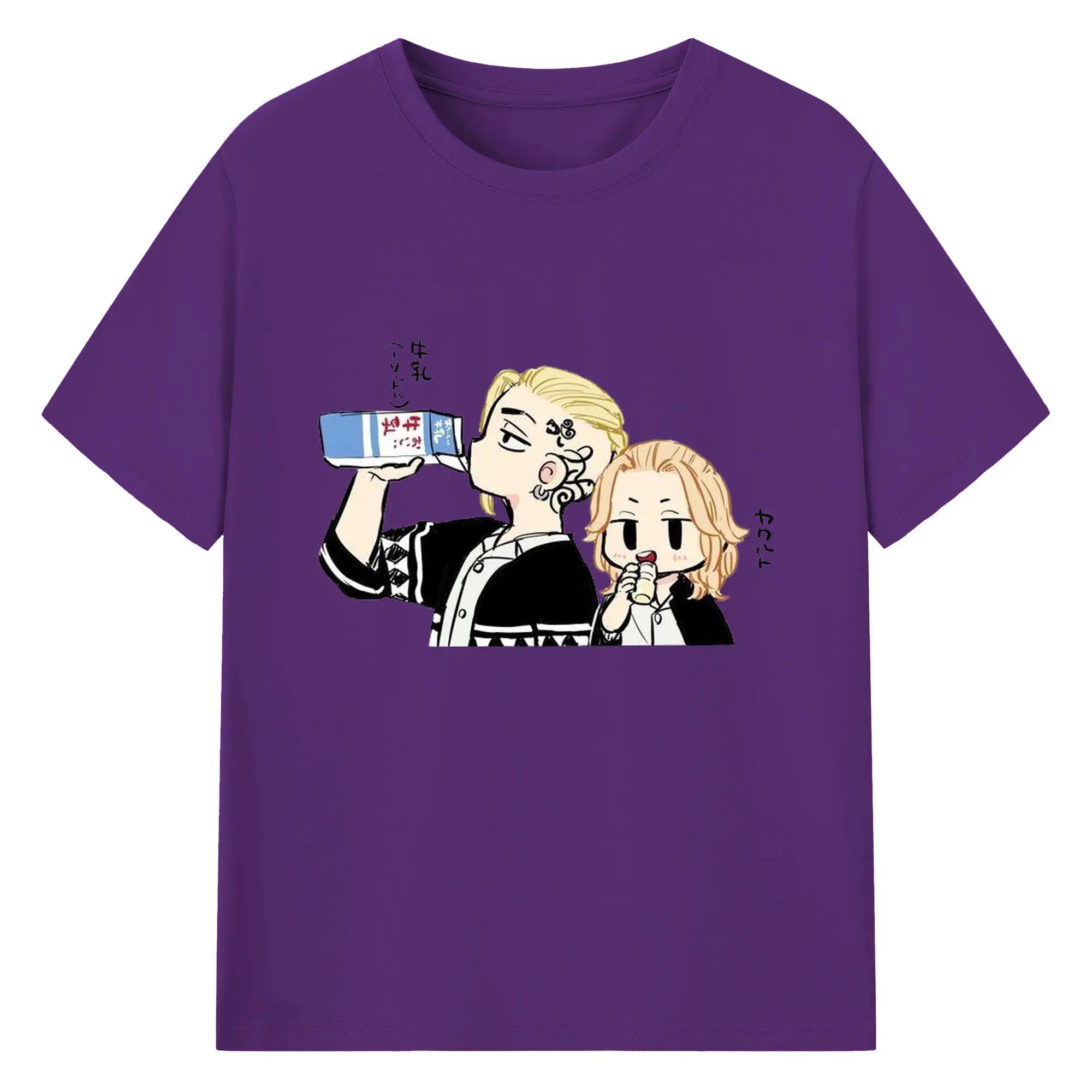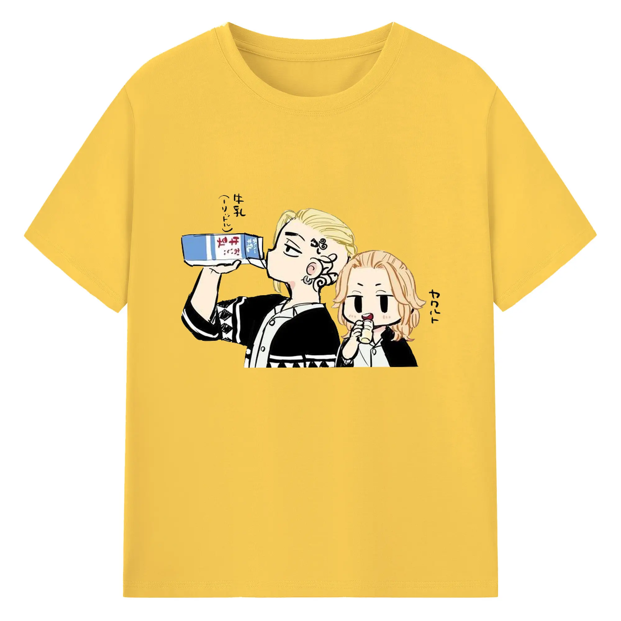 東京卍リベンジャーズ デフォルト ドラケンマイキー - 綿100% 半袖Tシャツ ・ フロントプリント ・ 快適 通気性 ・ 日常使い 散歩 スポーツ用
