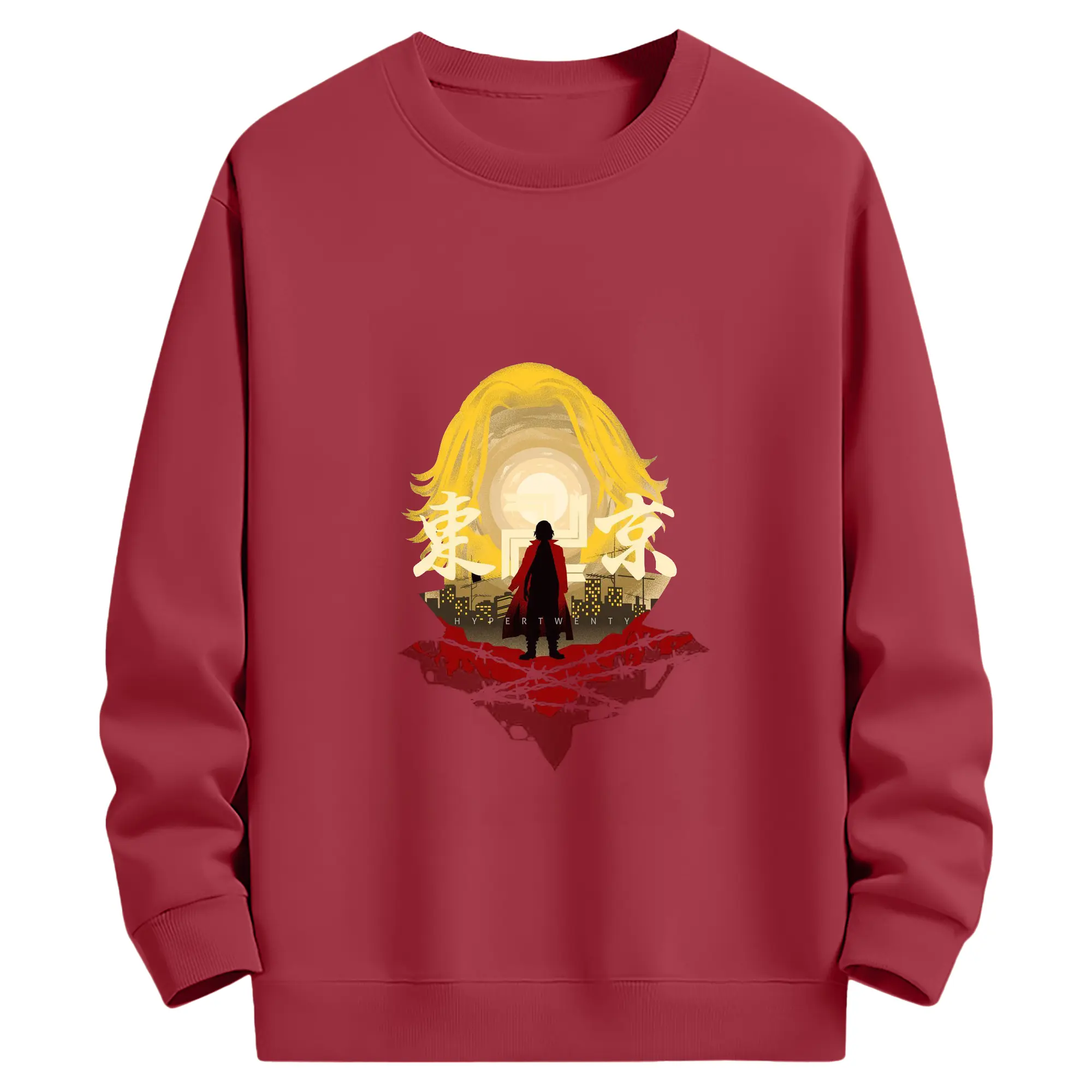 東京卍リベンジャーズ 東リベ佐野万次郎 - 高品質 クルーネック スウェット ・ コットン59% ポリエステル41% ・ ユニセックス 長袖 トレーナー ・ カジュアル デイリー スポーツ 散歩用