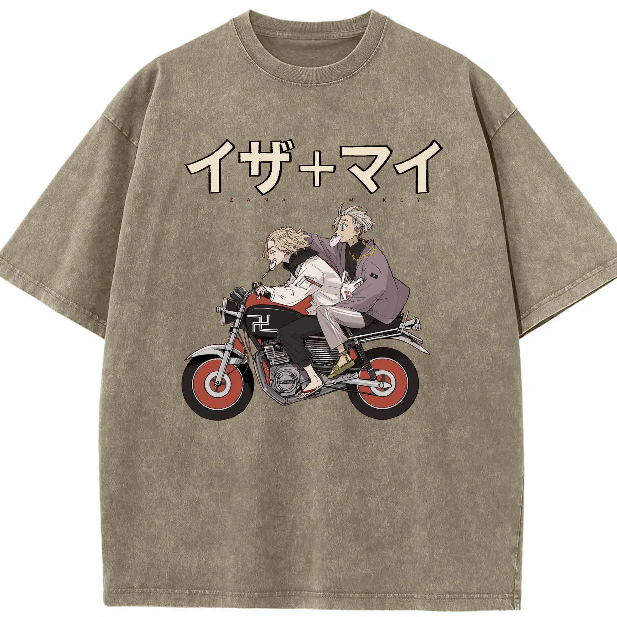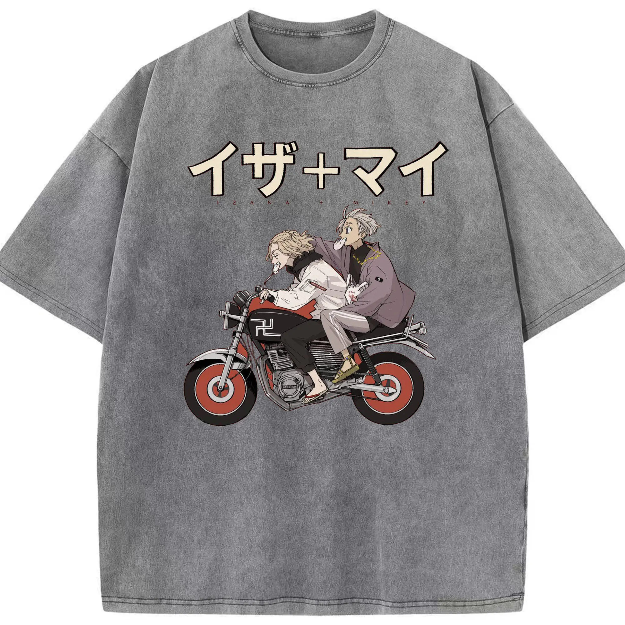 東京卍リベンジャーズ イザ+マイ - 綿100% ヴィンテージ風 半袖Tシャツ ・ フロントプリント ・ 柔らか肌触り ・ 通気性 快適 ・ スポーツ カジュアル 外出用