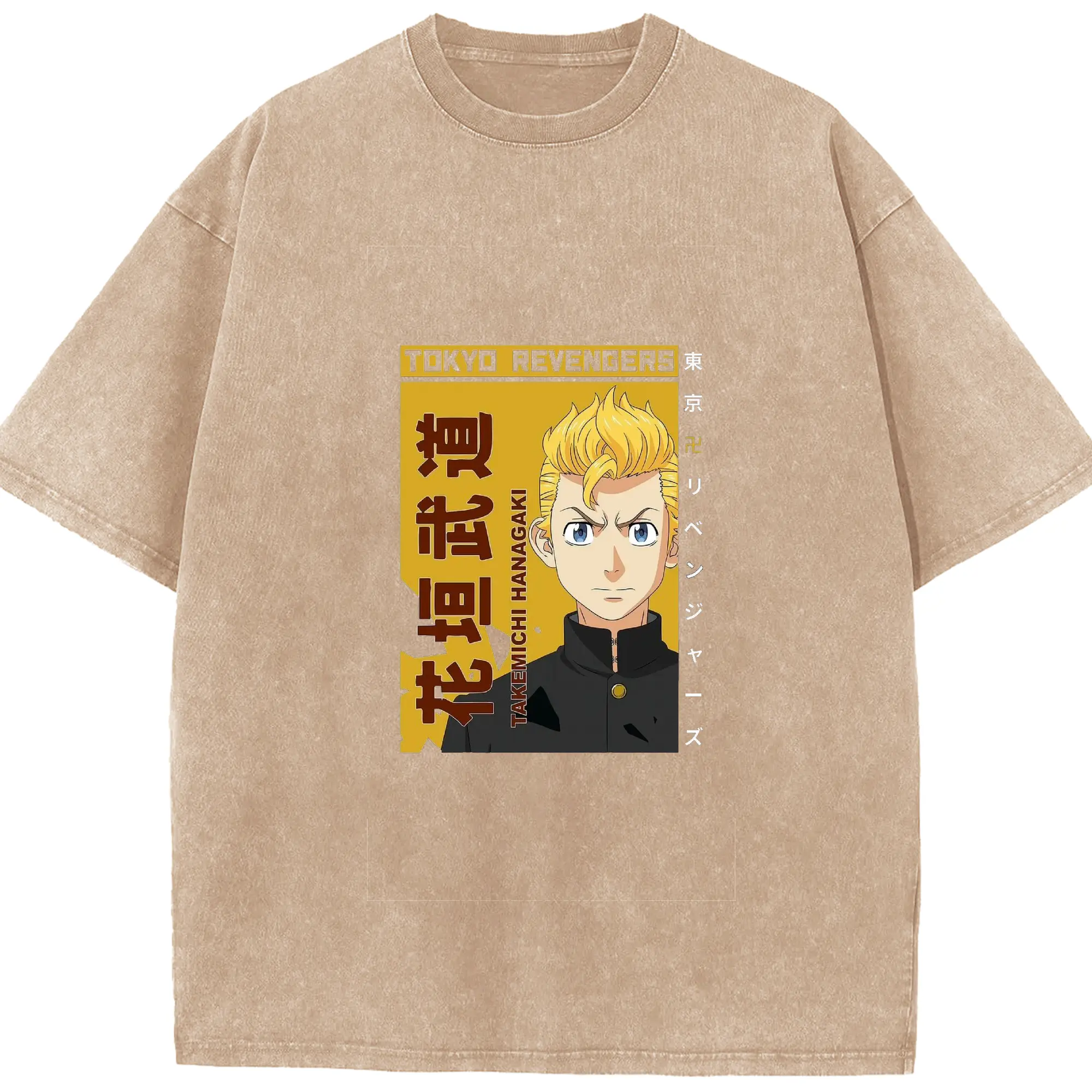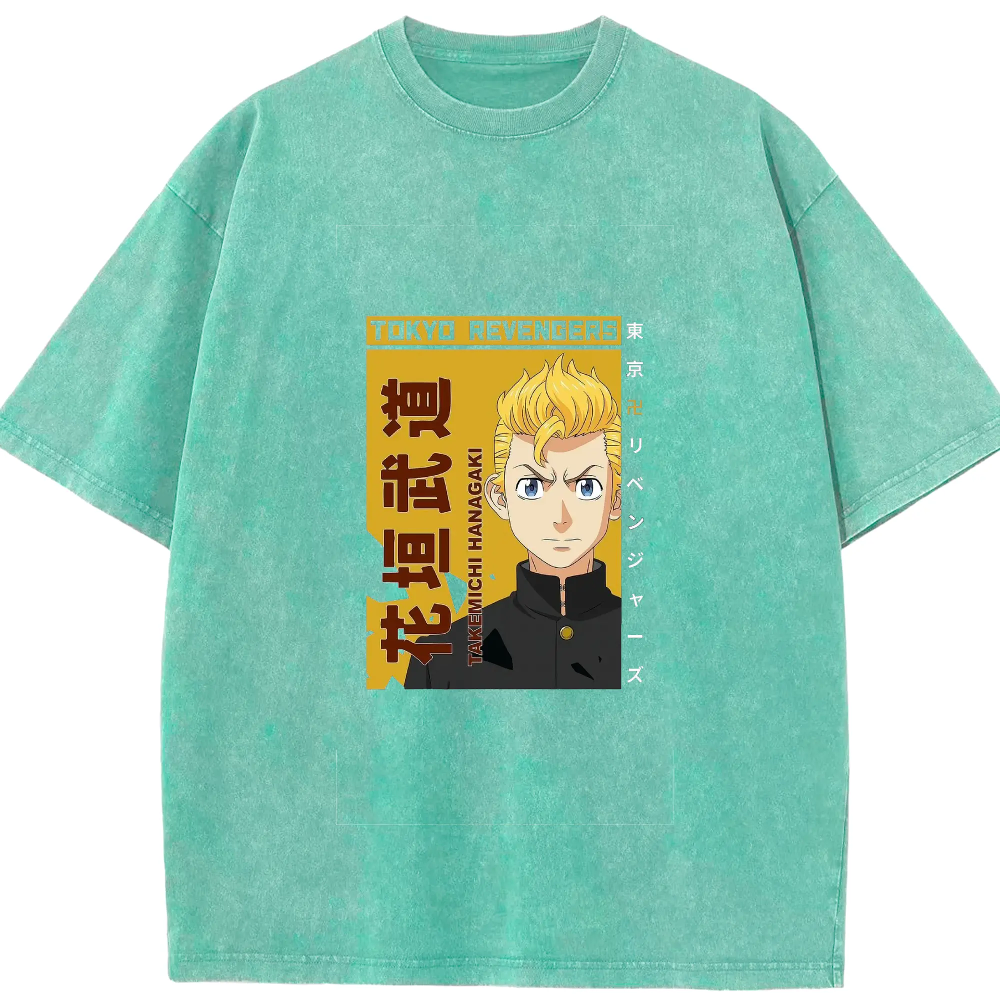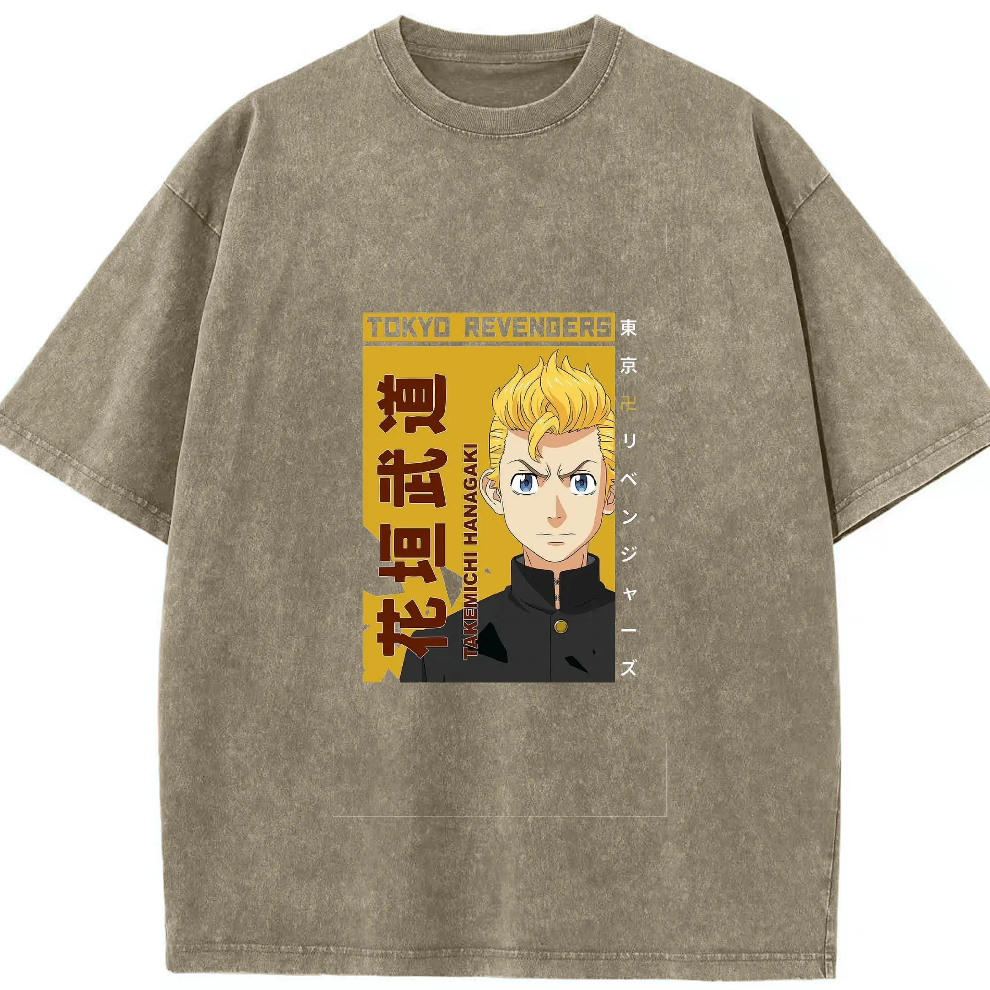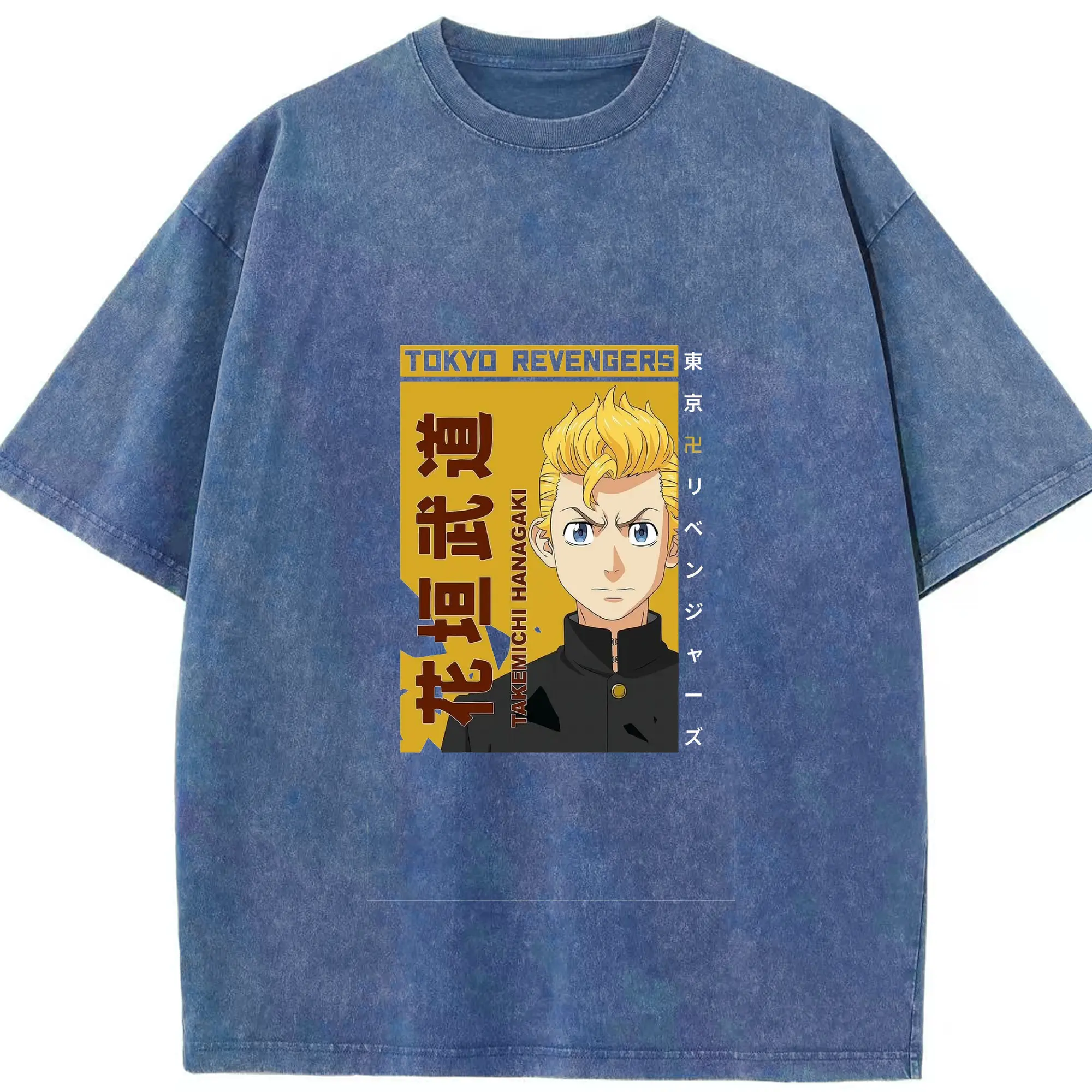 東京卍リベンジャーズ 東リベ花垣武道 - 綿100% ヴィンテージ風 半袖Tシャツ ・ フロントプリント ・ 柔らか肌触り ・ 通気性 快適 ・ スポーツ カジュアル 外出用