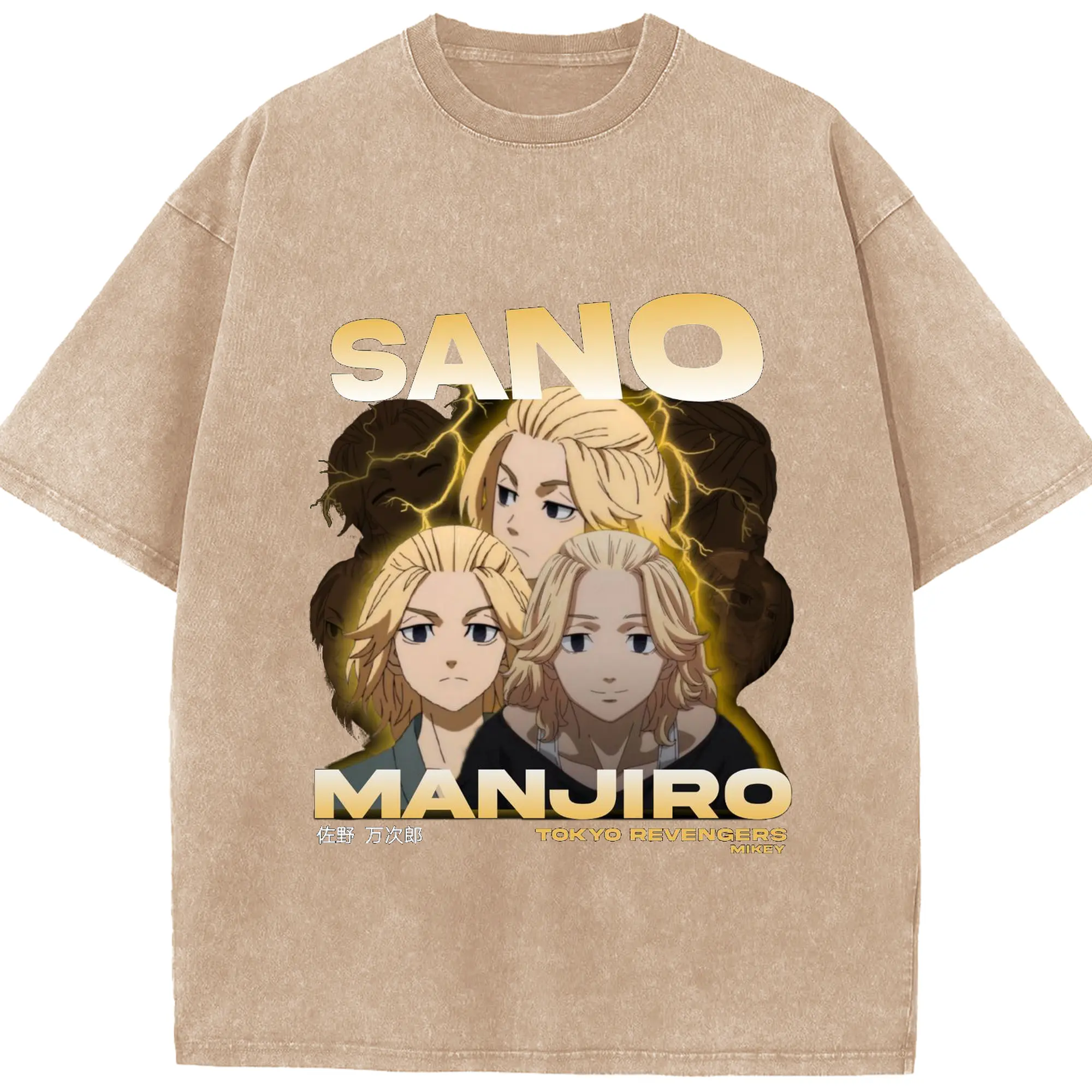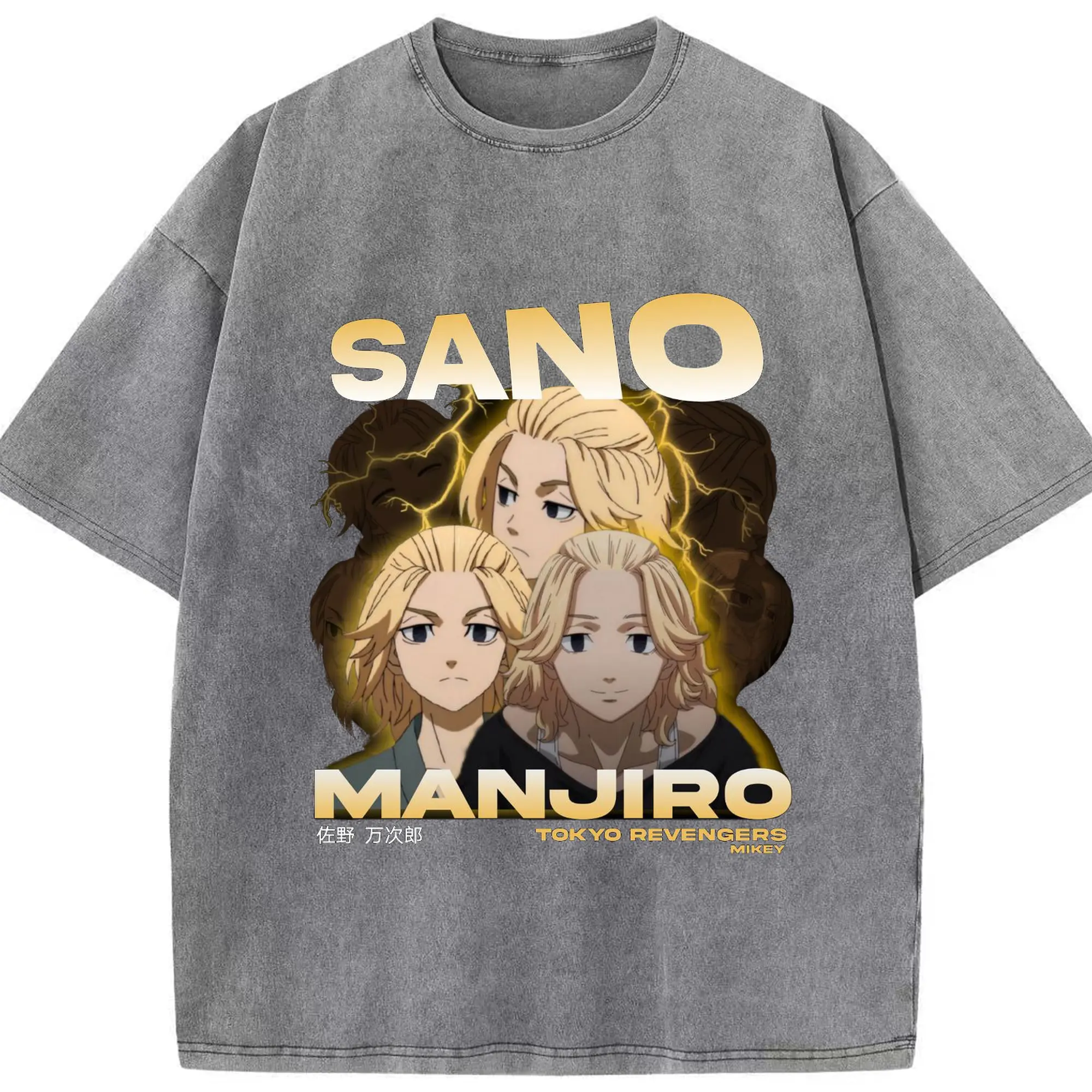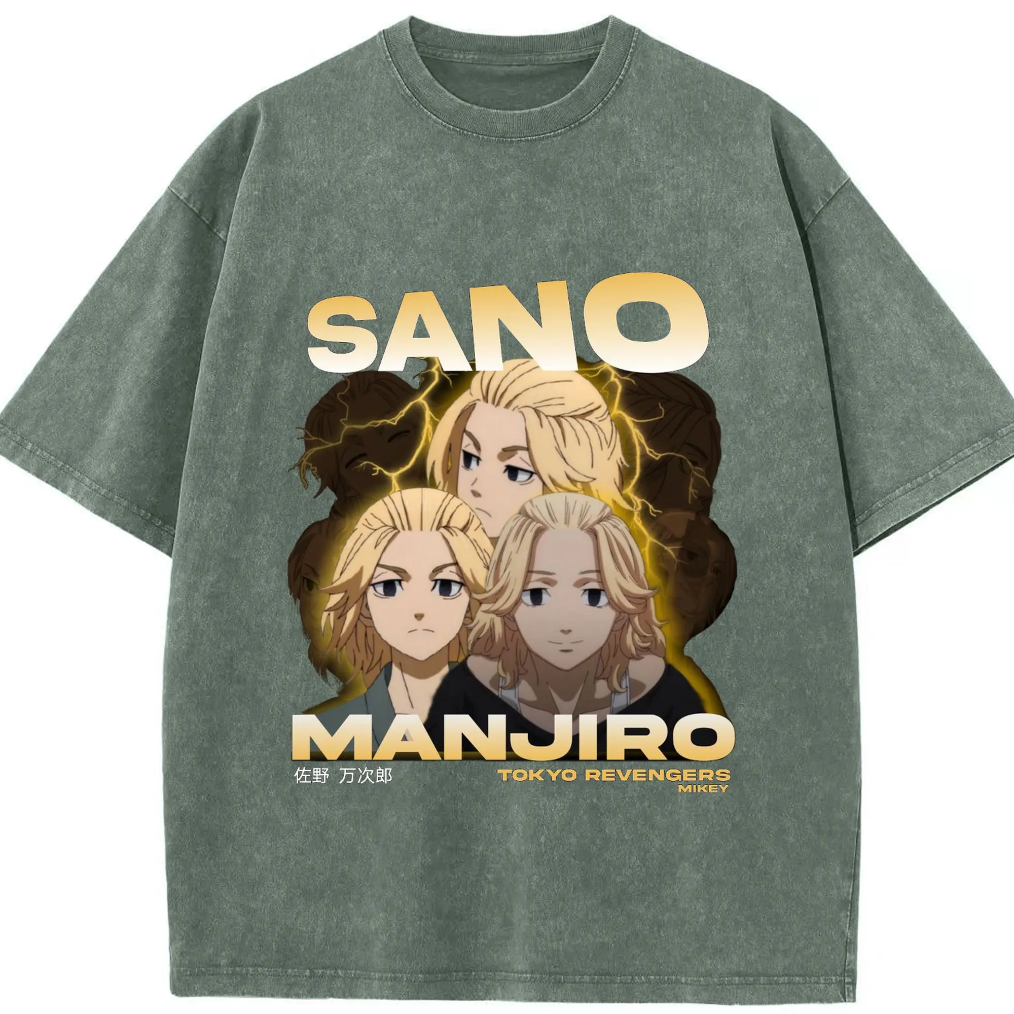 東京卍リベンジャーズ 東リベ佐野万次郎 - 綿100% ヴィンテージ風 半袖Tシャツ ・ フロントプリント ・ 柔らか肌触り ・ 通気性 快適 ・ スポーツ カジュアル 外出用