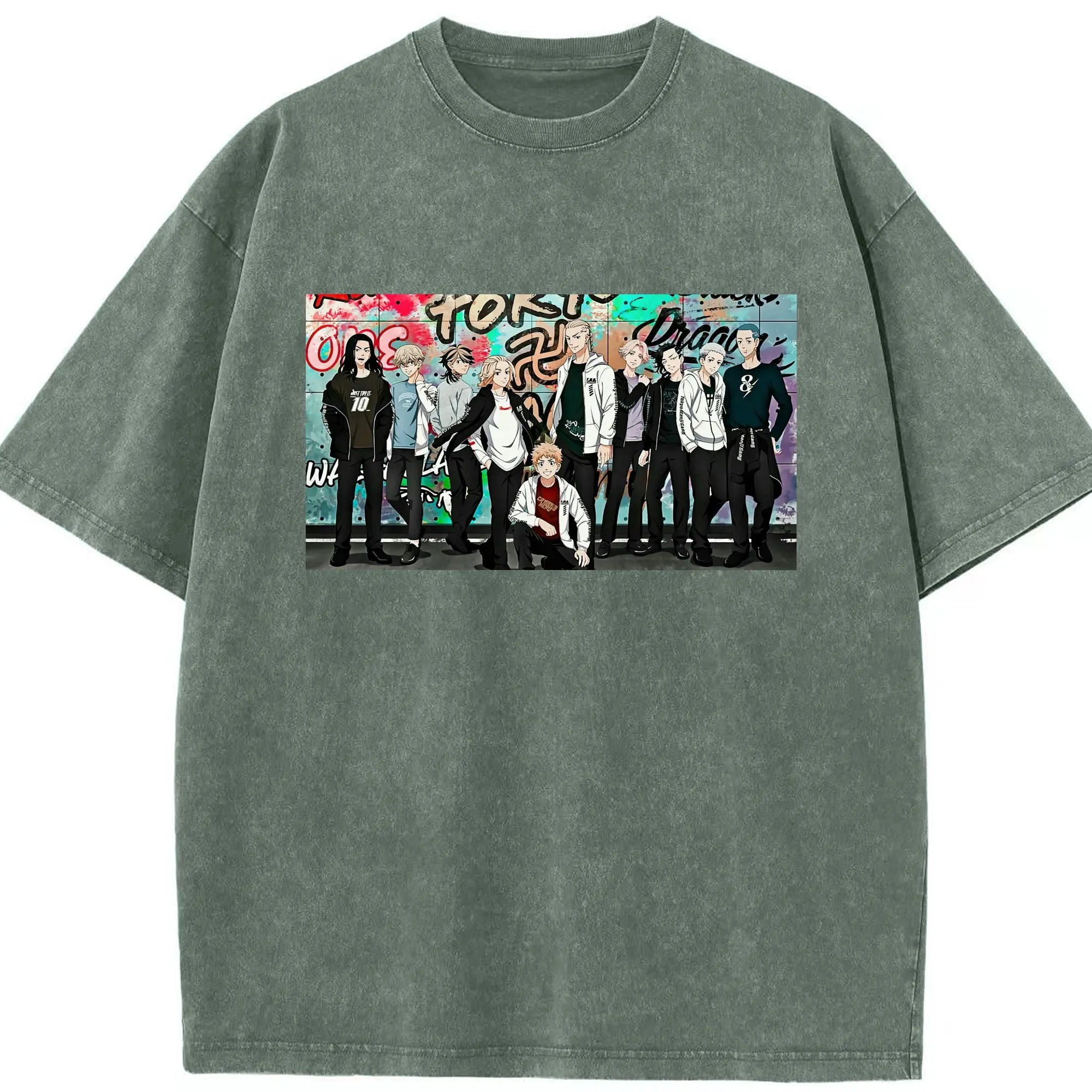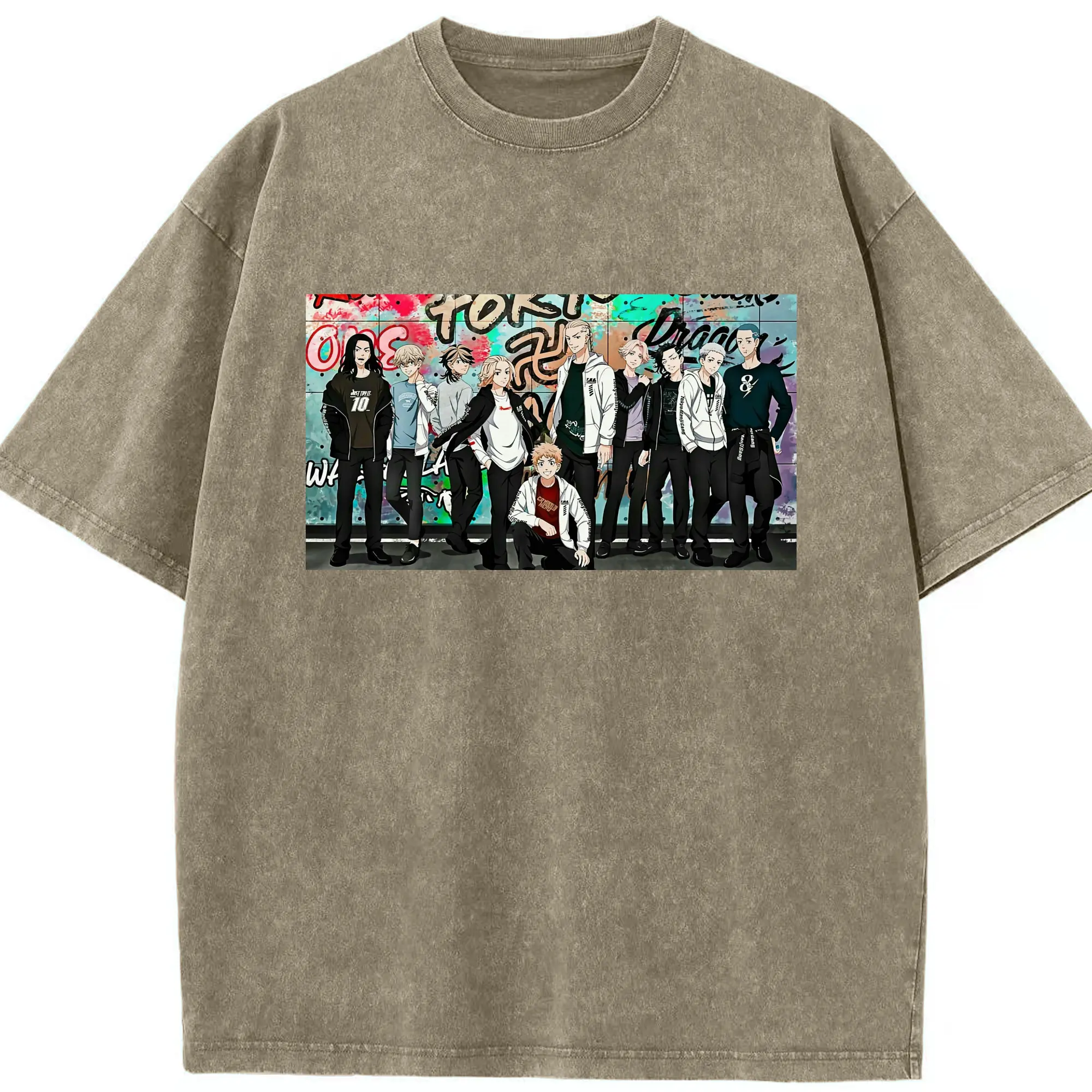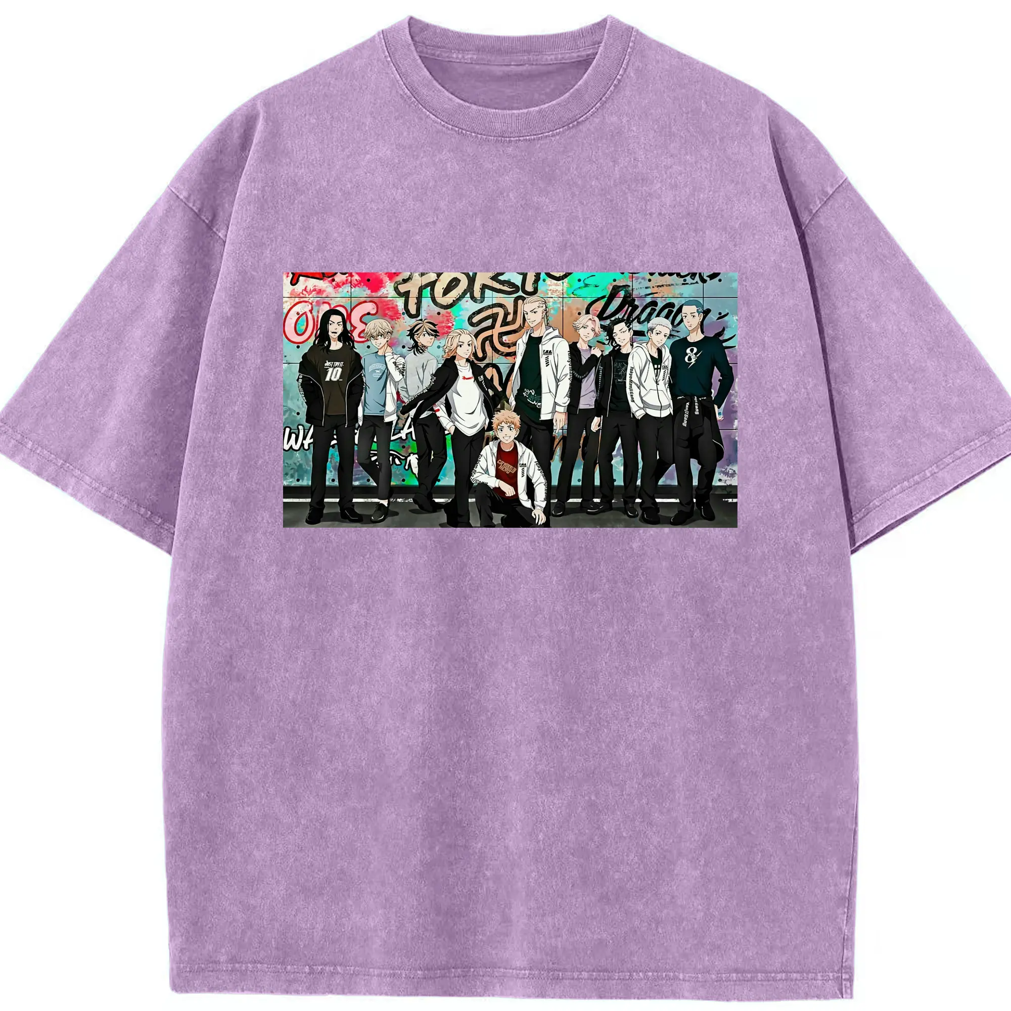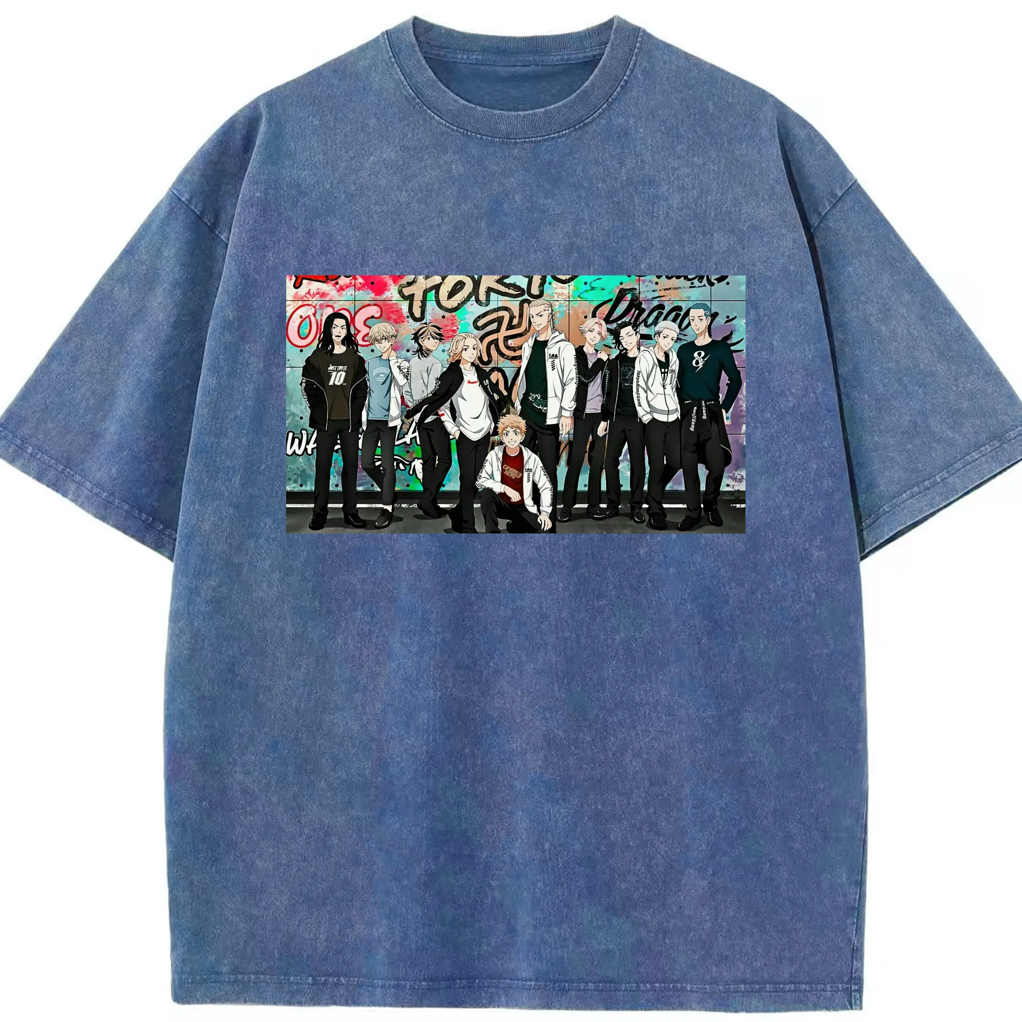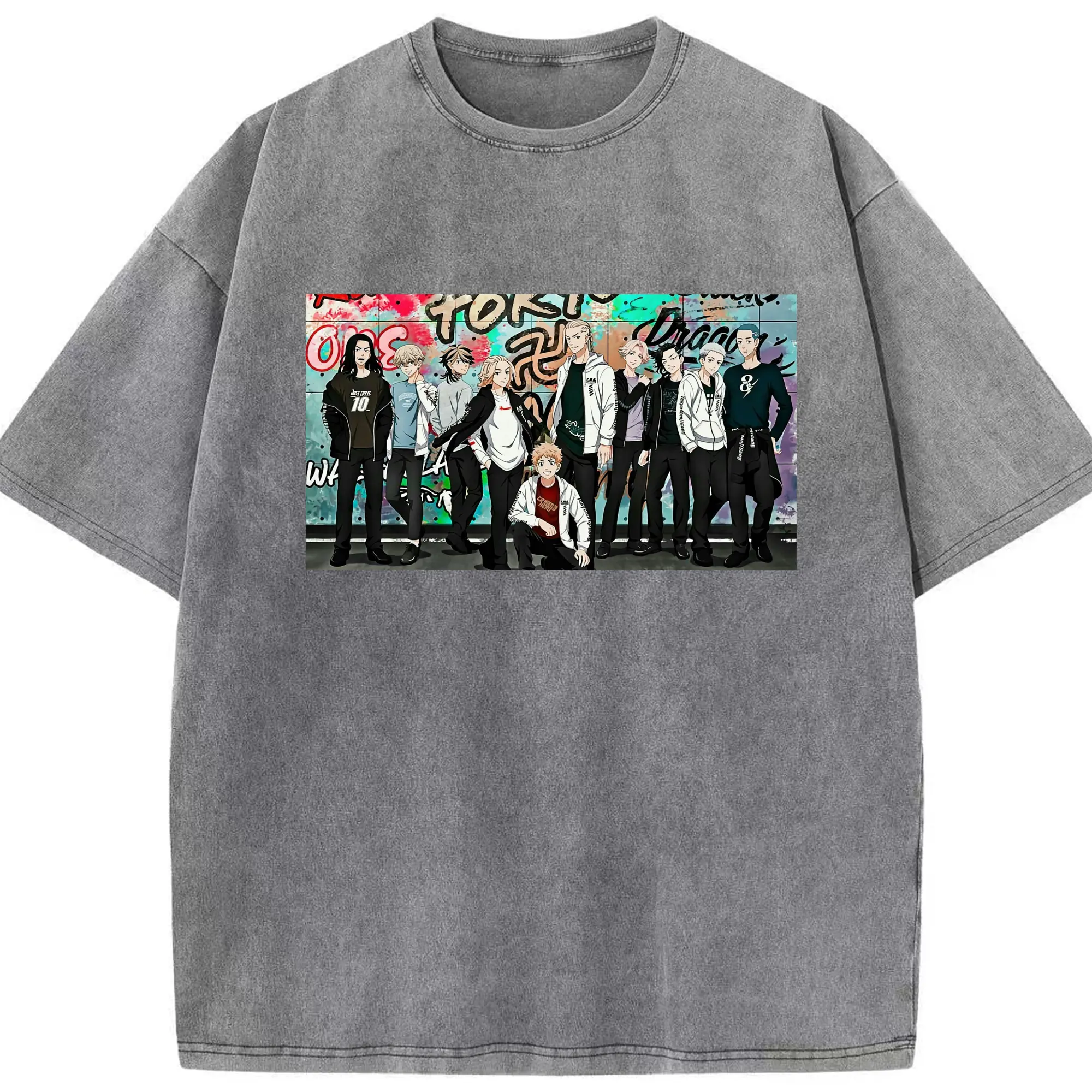 東京卍リベンジャーズ - 綿100% ヴィンテージ風 半袖Tシャツ ・ フロントプリント ・ 柔らか肌触り ・ 通気性 快適 ・ スポーツ カジュアル 外出用