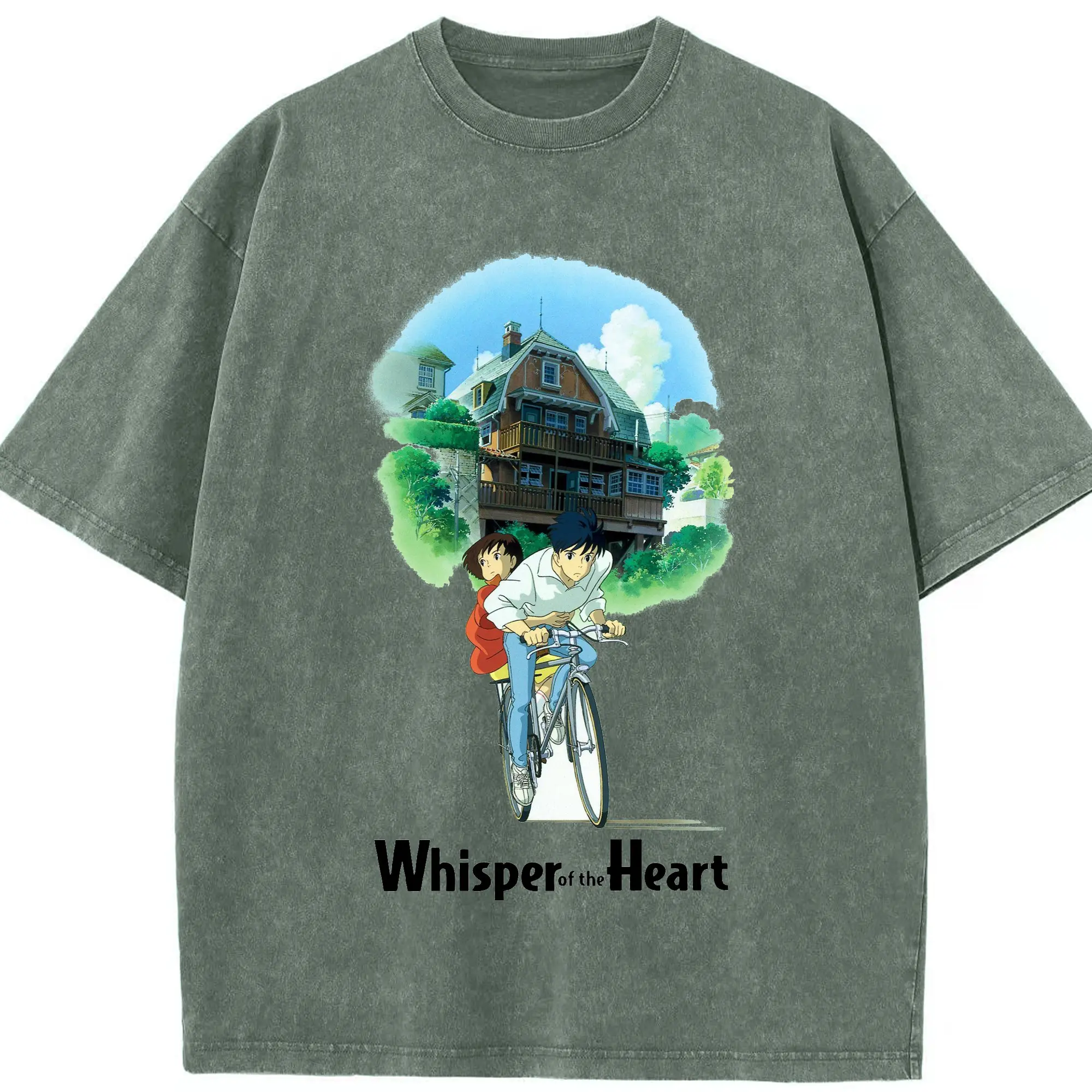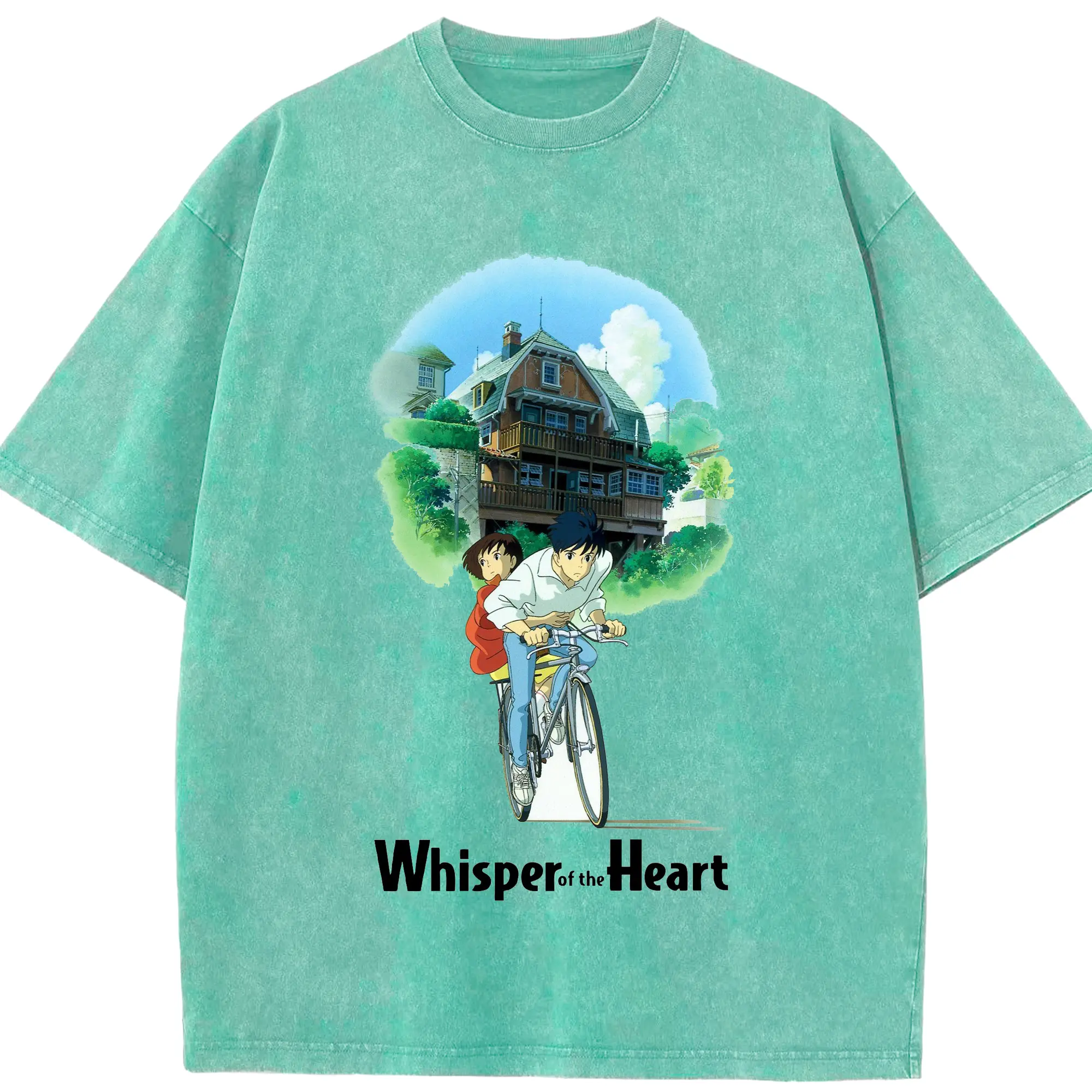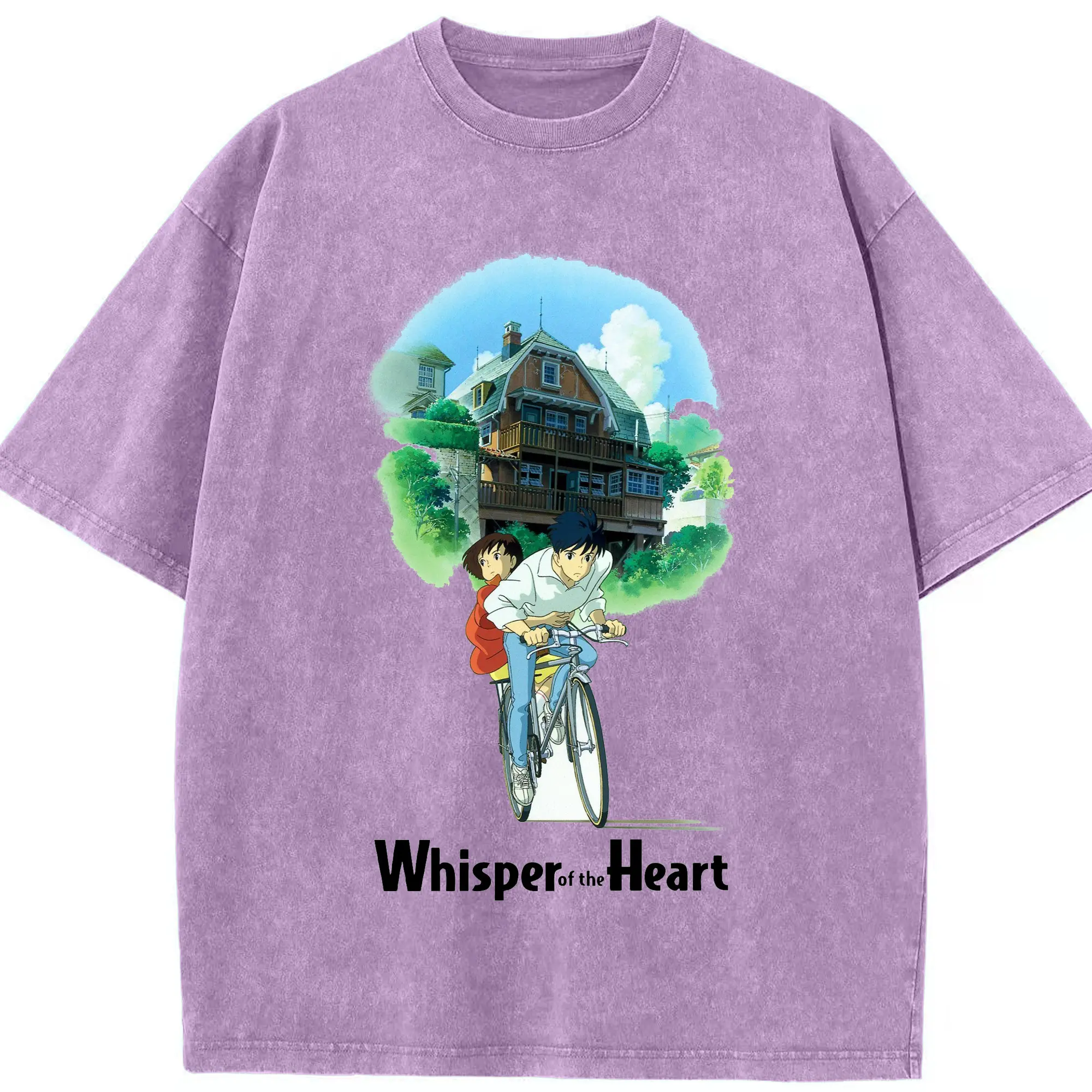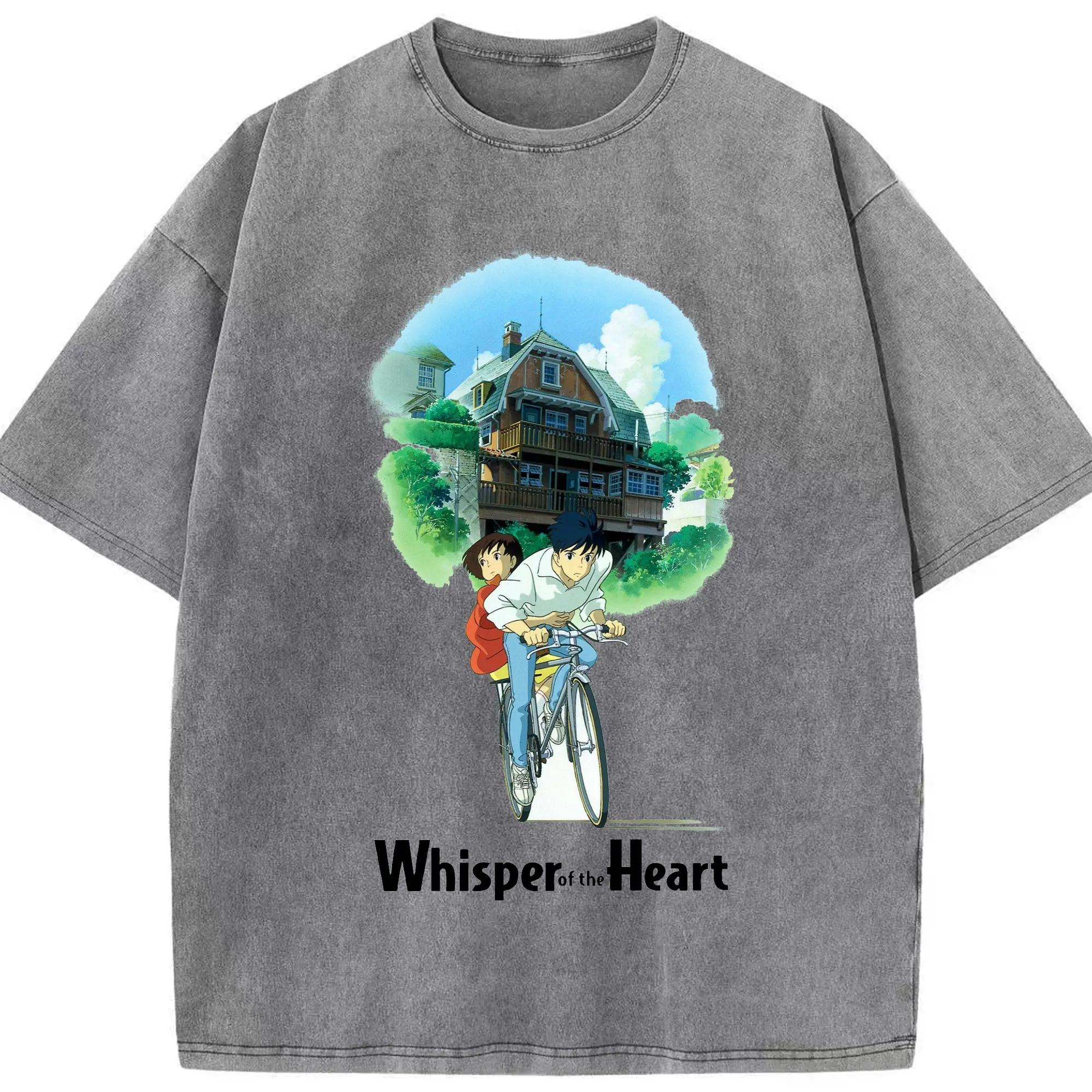 耳をすませば WhisperOfTheHeart - 綿100% 半袖Tシャツ ・ フロントプリント ・ 快適 通気性 ・ 日常使い 散歩 スポーツ用