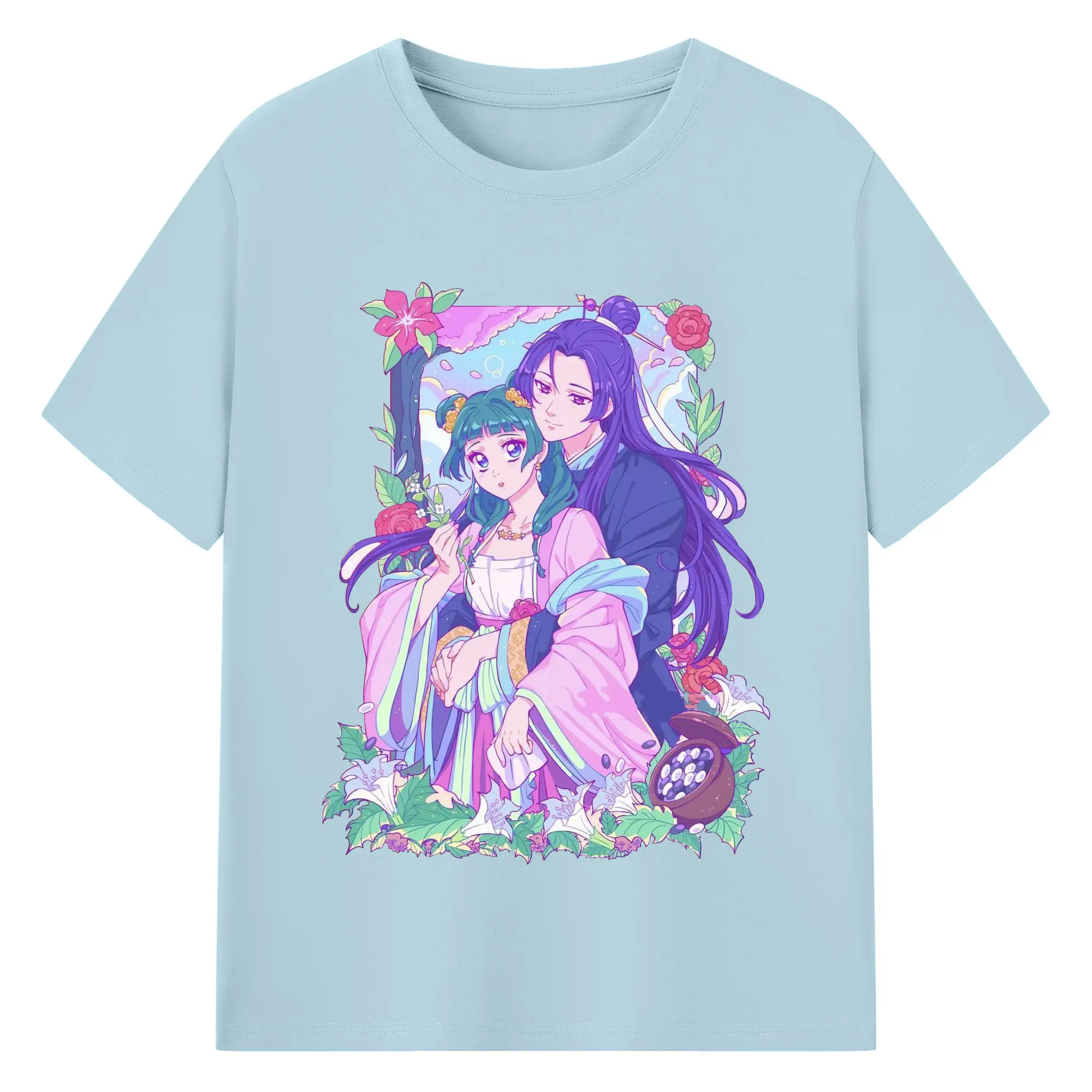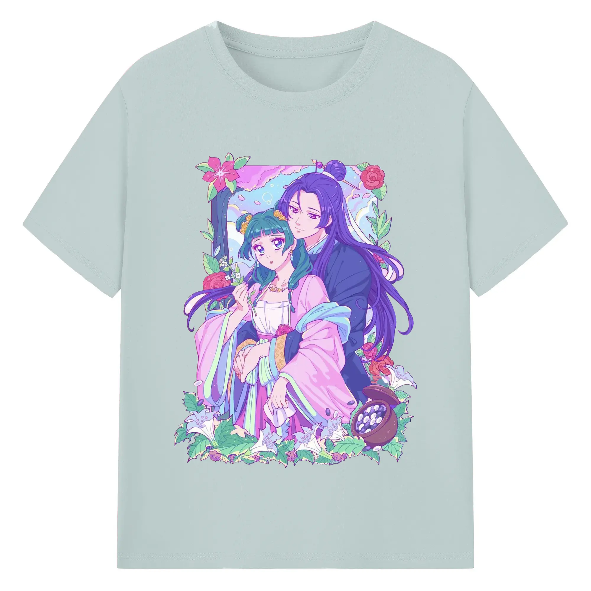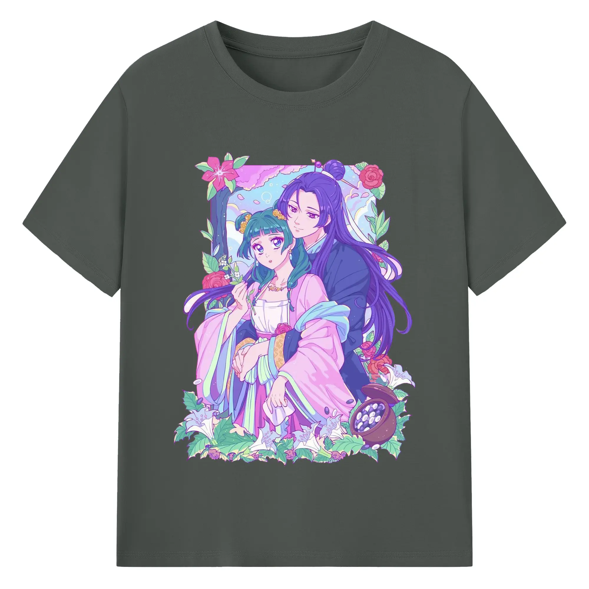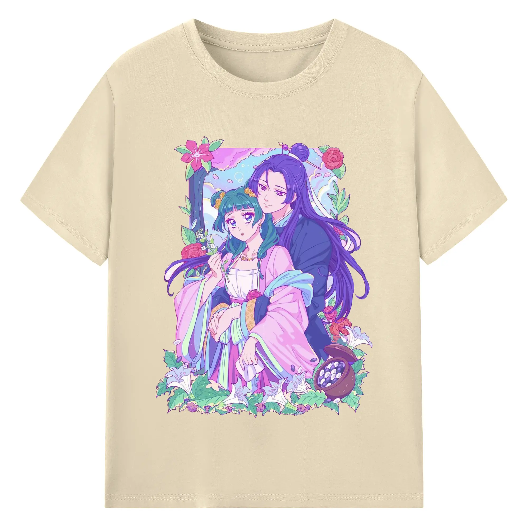 薬屋のひとりごと 猫猫・壬氏 - 綿100% ヴィンテージ風 半袖Tシャツ ・ フロントプリント ・ 柔らか肌触り ・ 通気性 快適 ・ スポーツ カジュアル 外出用