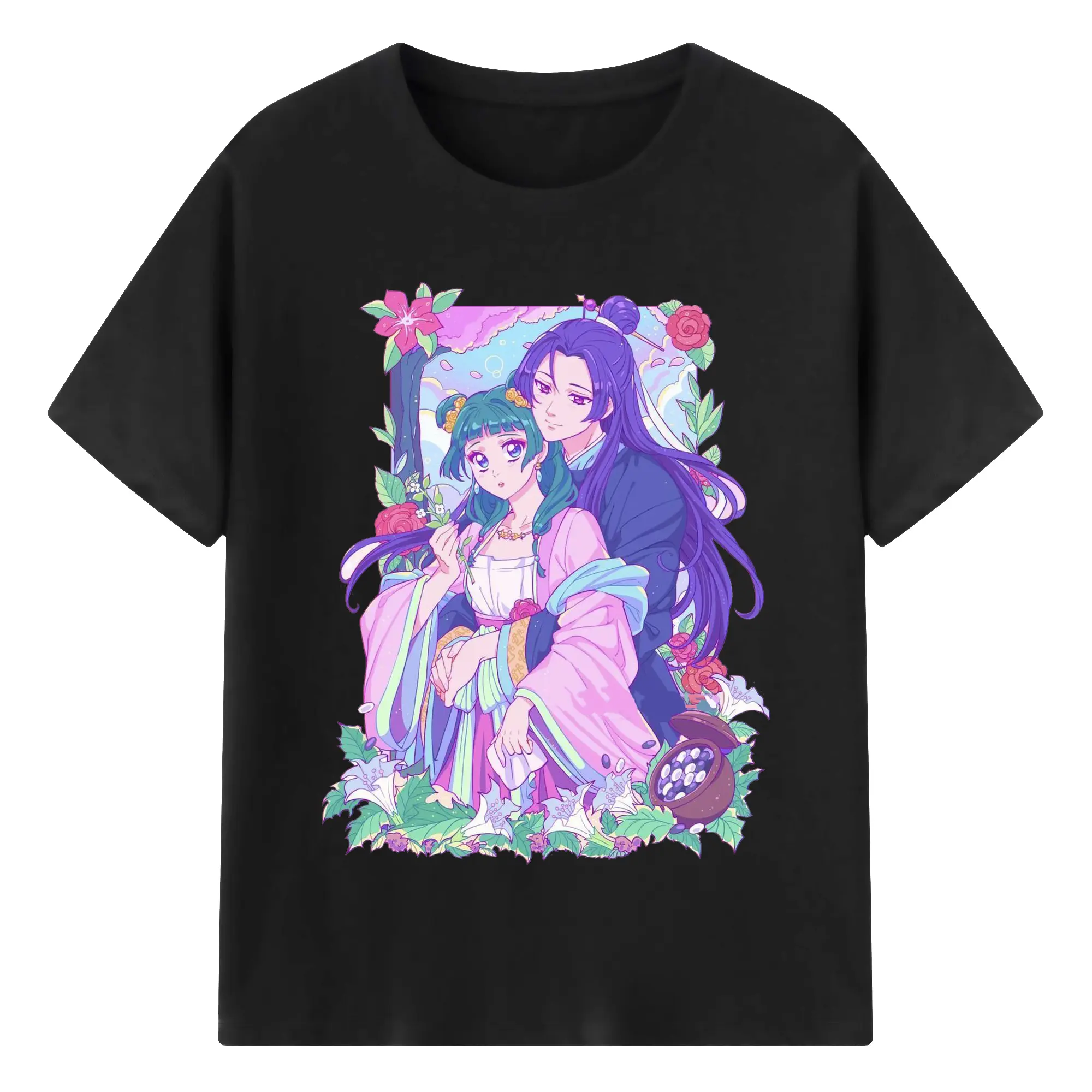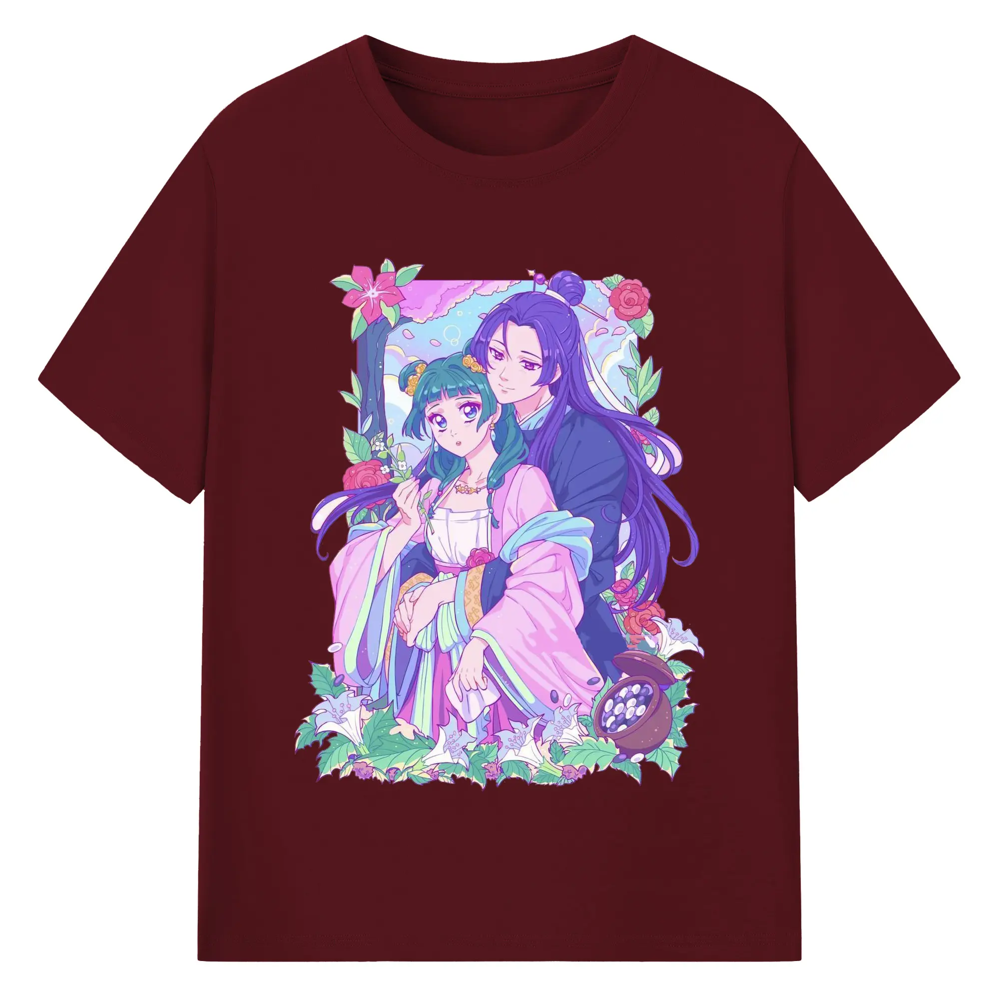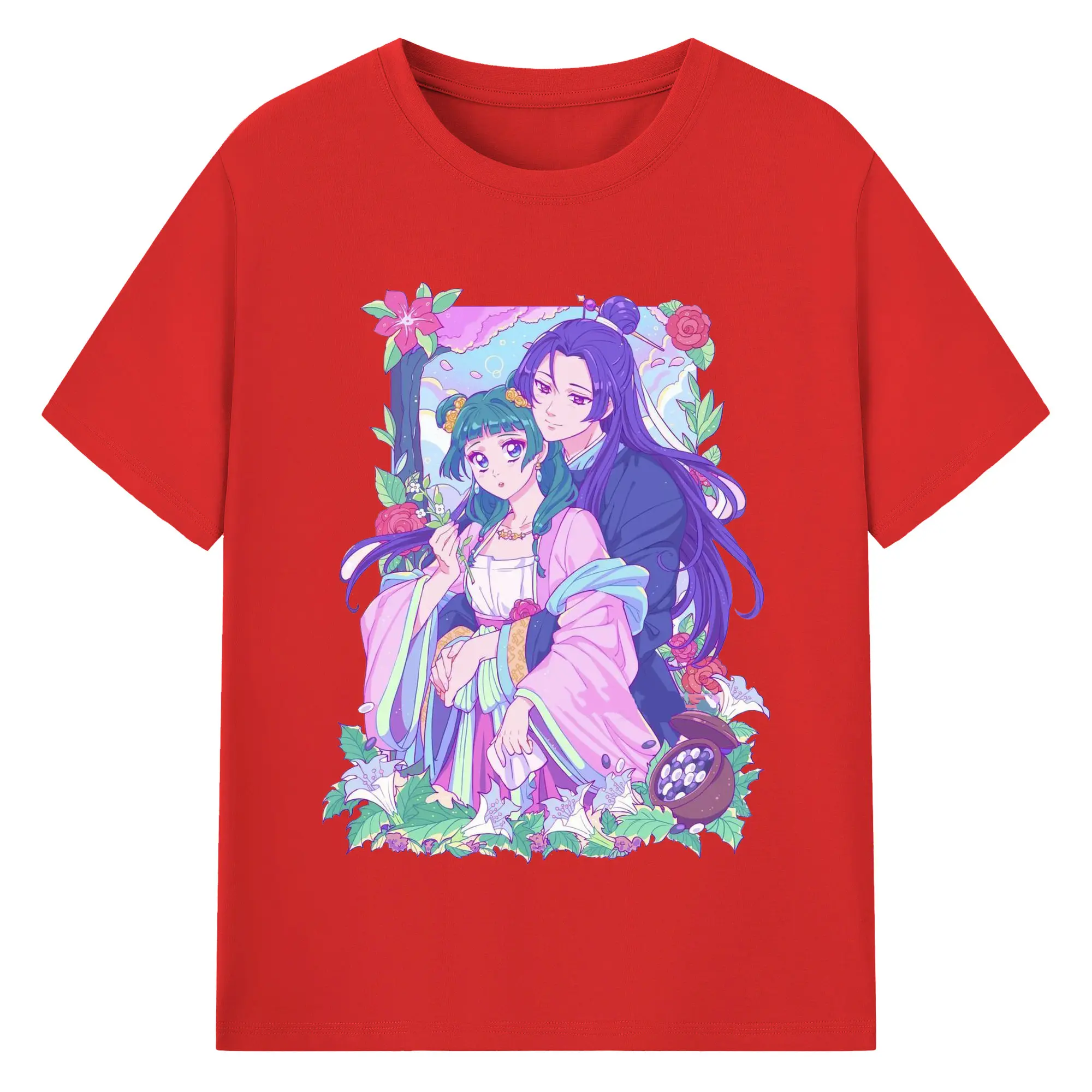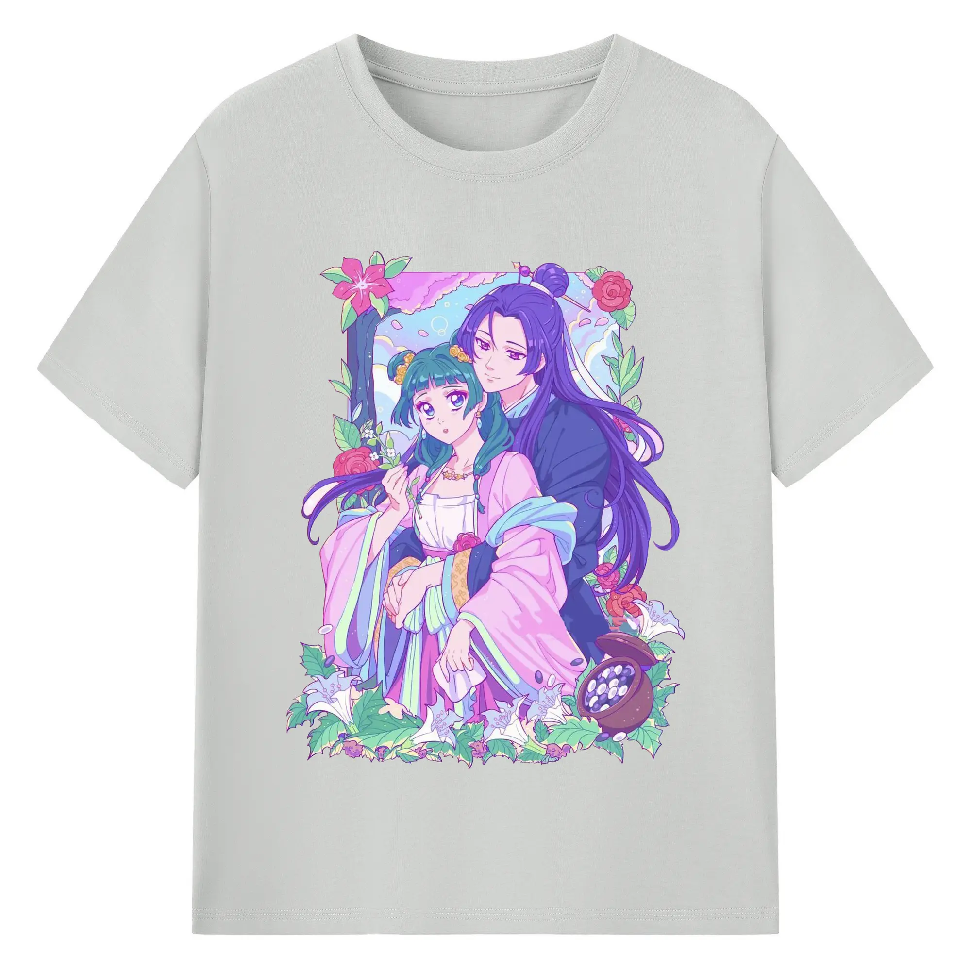 薬屋のひとりごと 猫猫・壬氏 - 綿100% ヴィンテージ風 半袖Tシャツ ・ フロントプリント ・ 柔らか肌触り ・ 通気性 快適 ・ スポーツ カジュアル 外出用