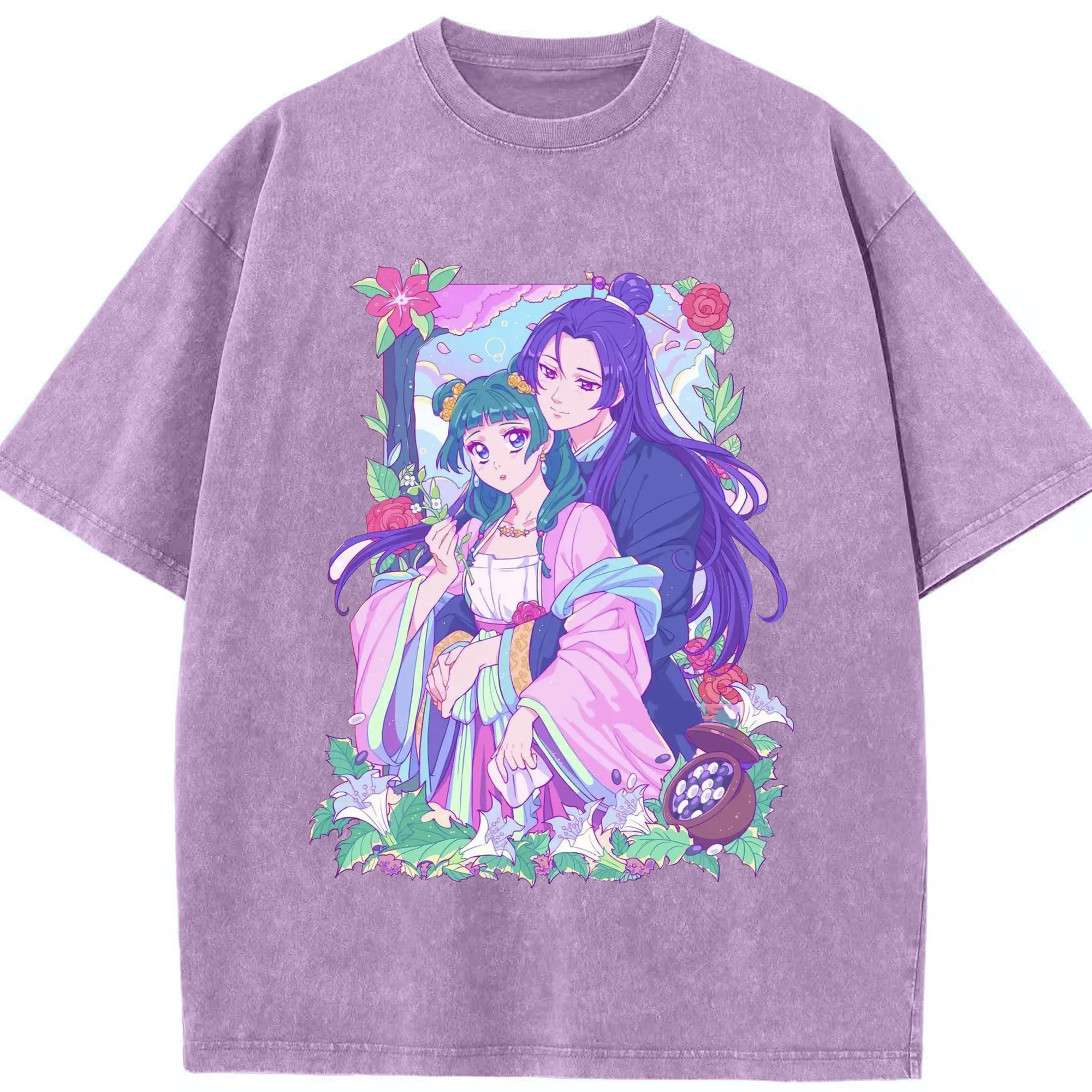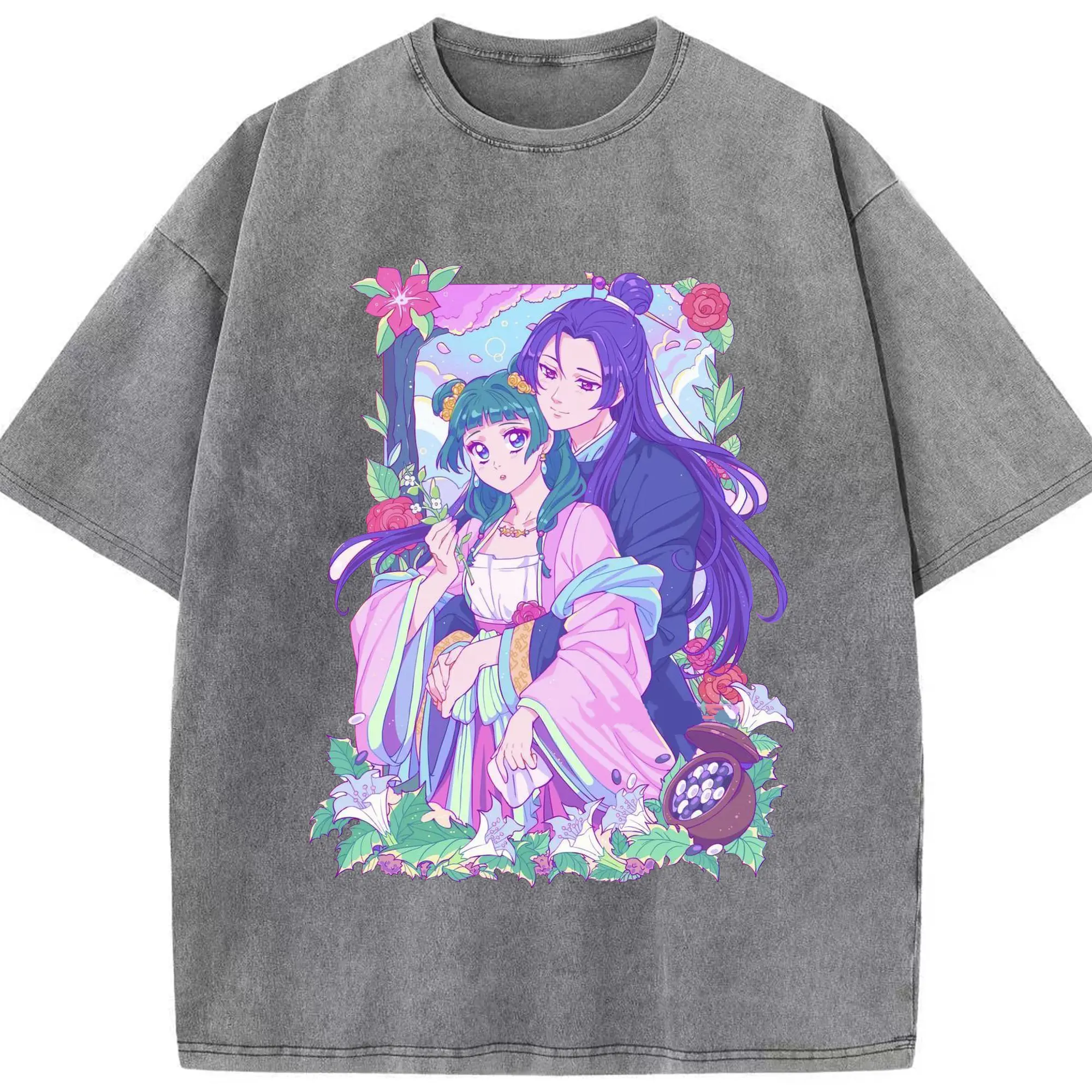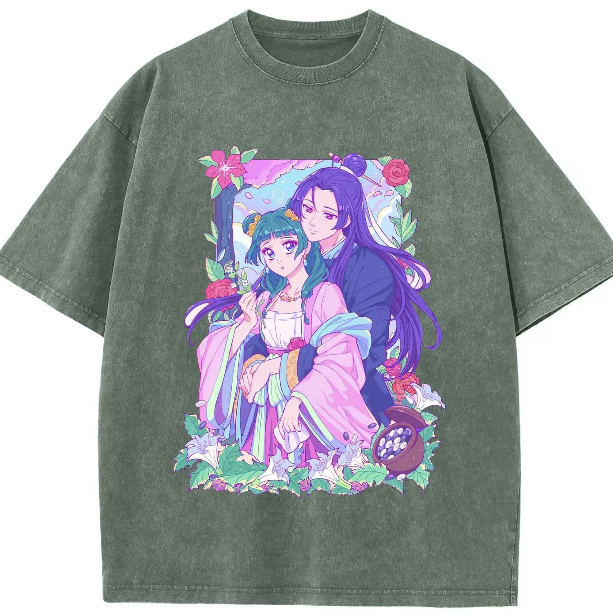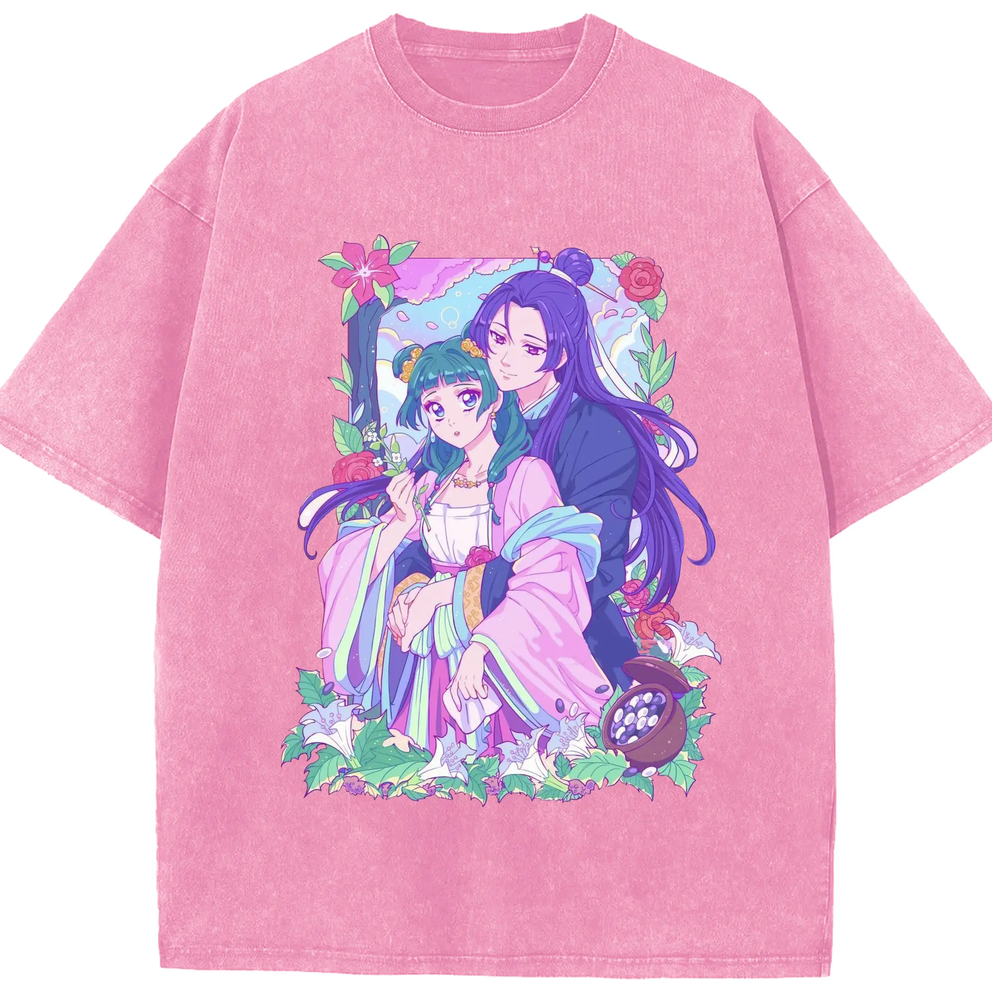 薬屋のひとりごと 猫猫・壬氏 - 綿100% 半袖Tシャツ ・ フロントプリント ・ 快適 通気性 ・ 日常使い 散歩 スポーツ用