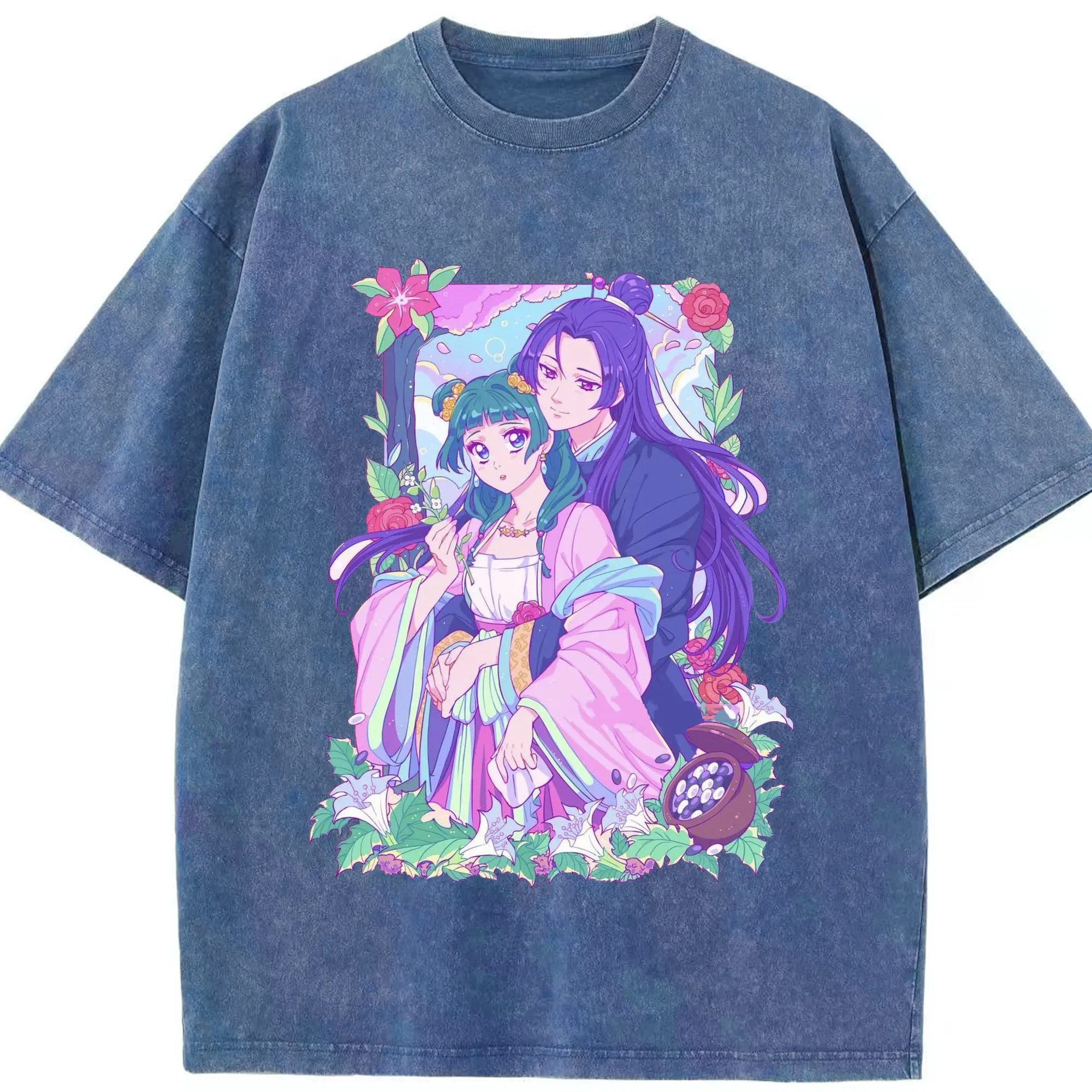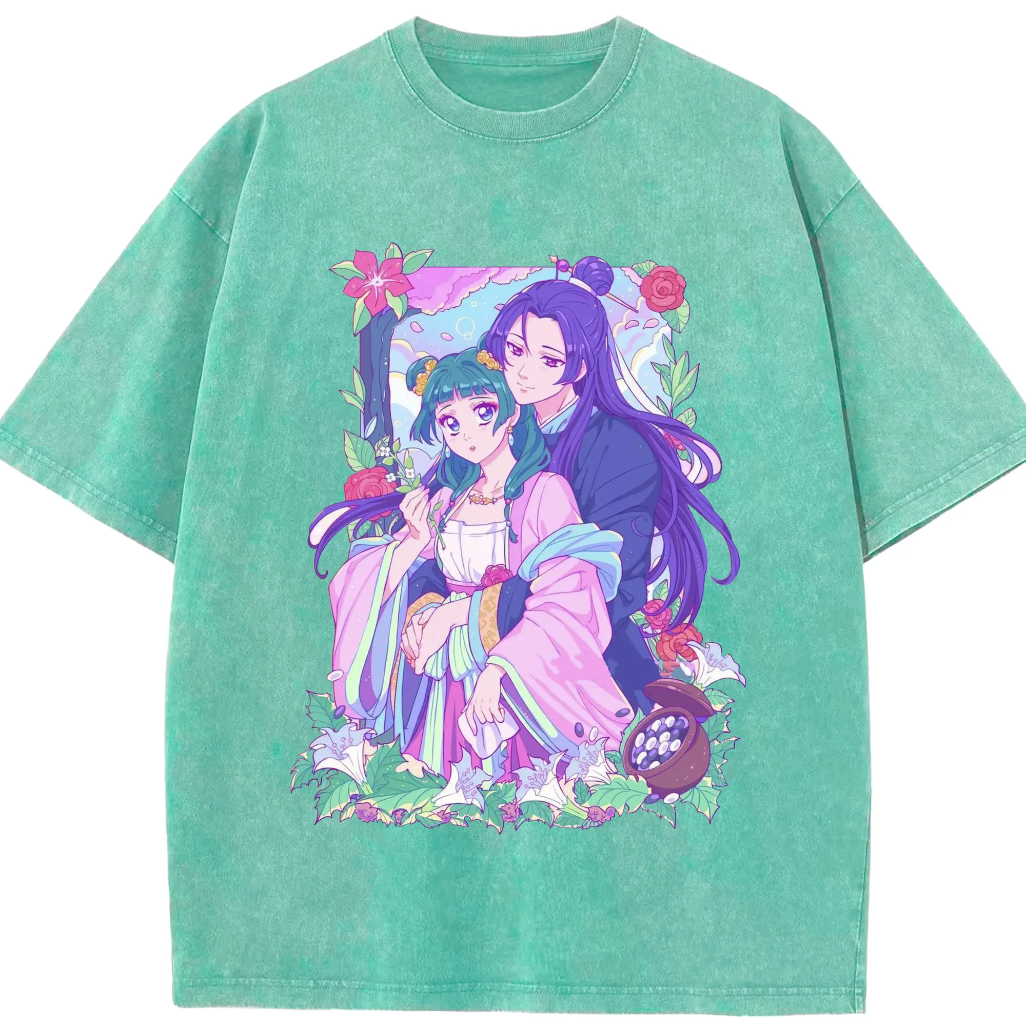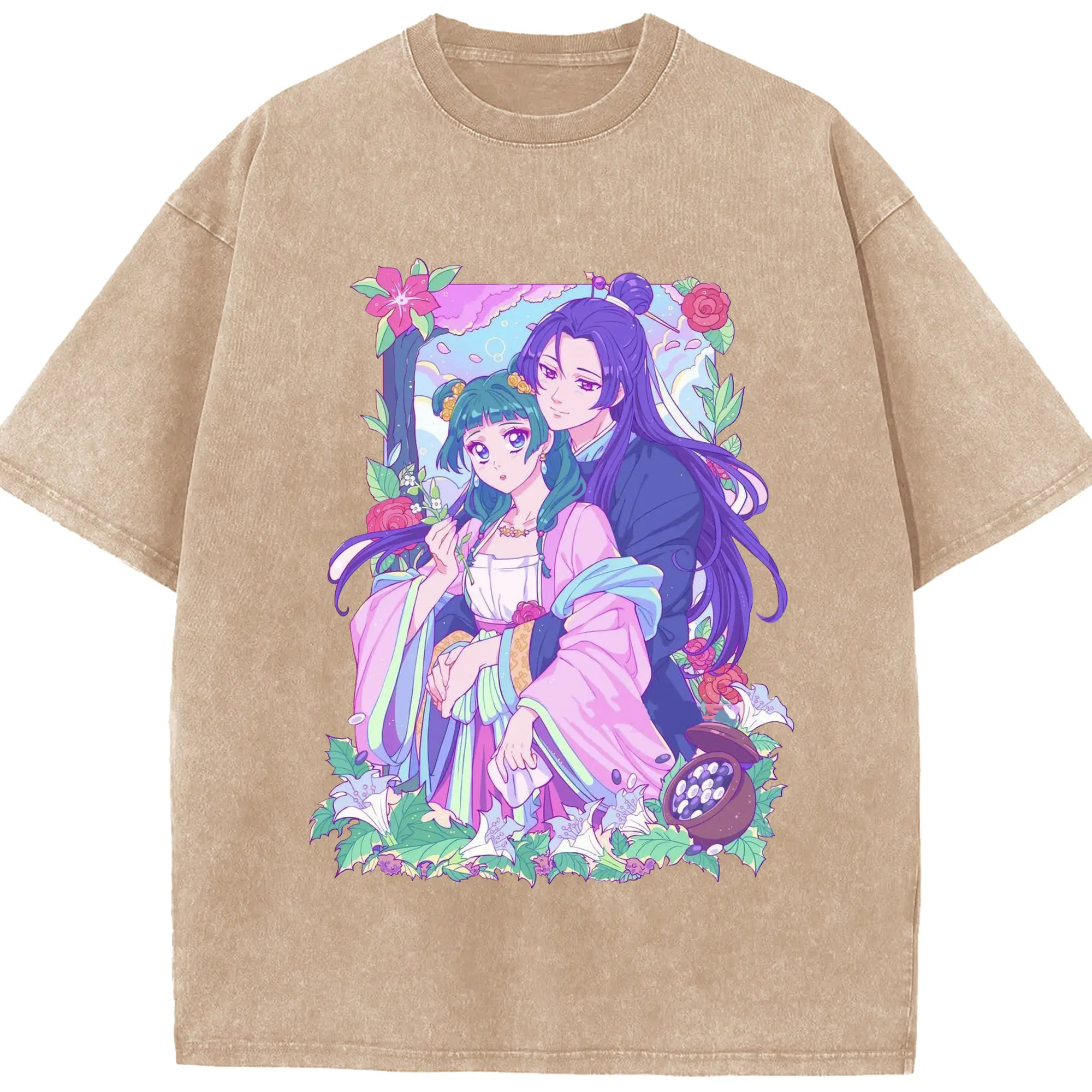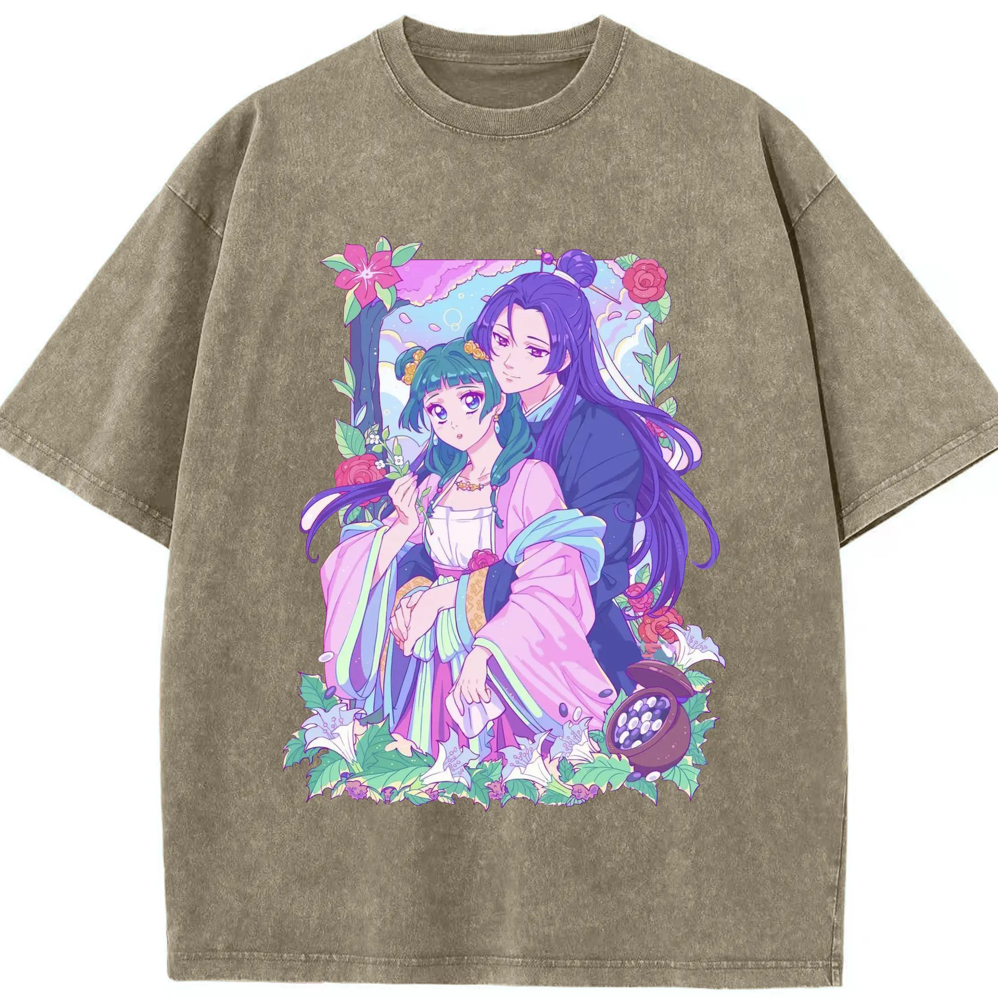 薬屋のひとりごと 猫猫・壬氏 - 綿100% 半袖Tシャツ ・ フロントプリント ・ 快適 通気性 ・ 日常使い 散歩 スポーツ用