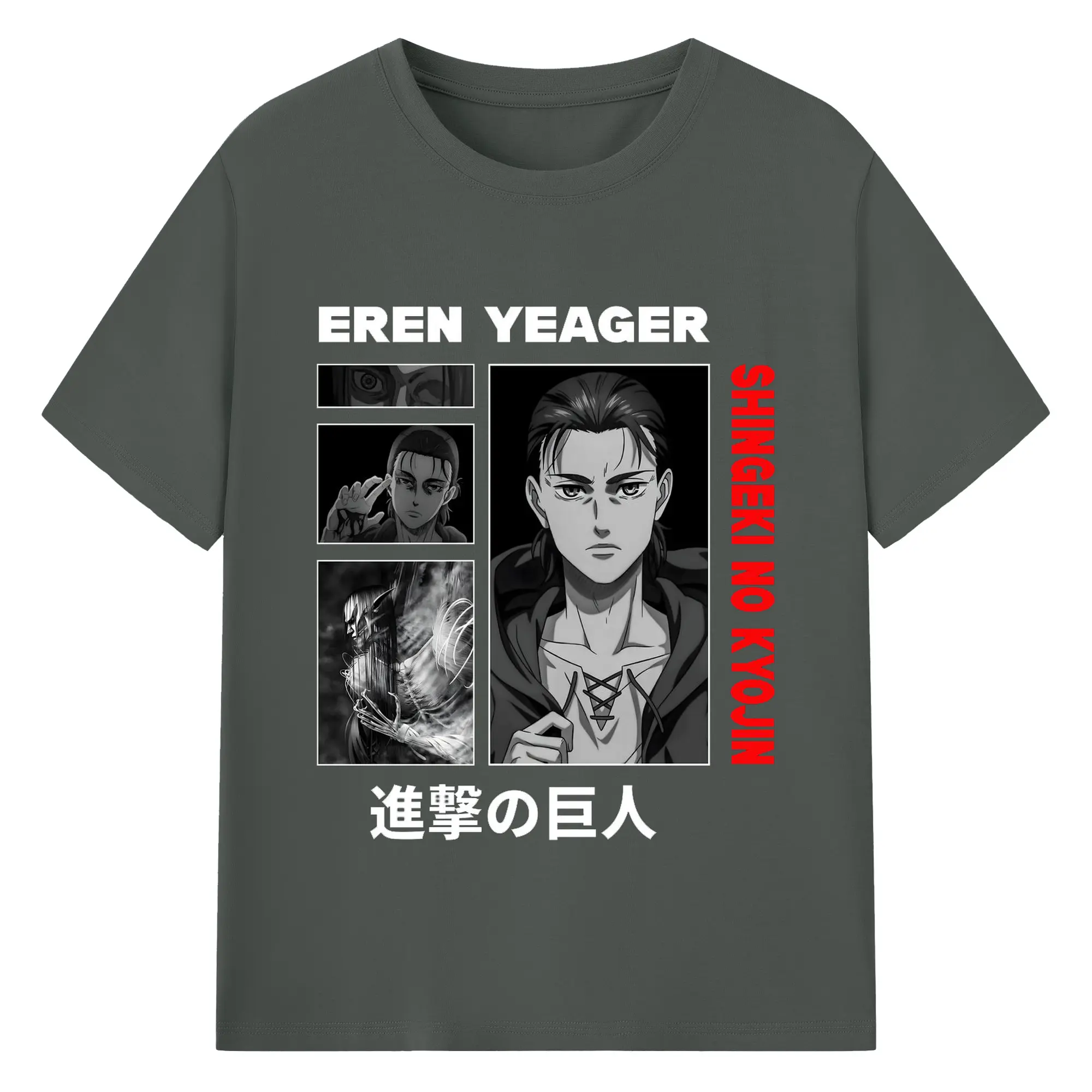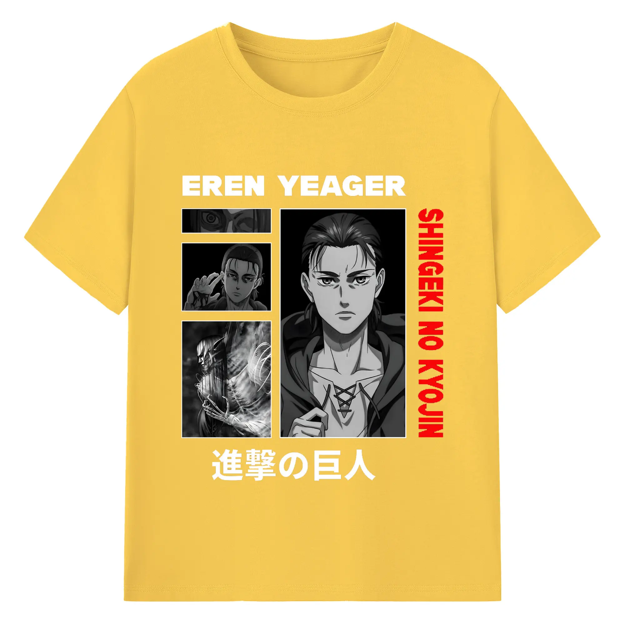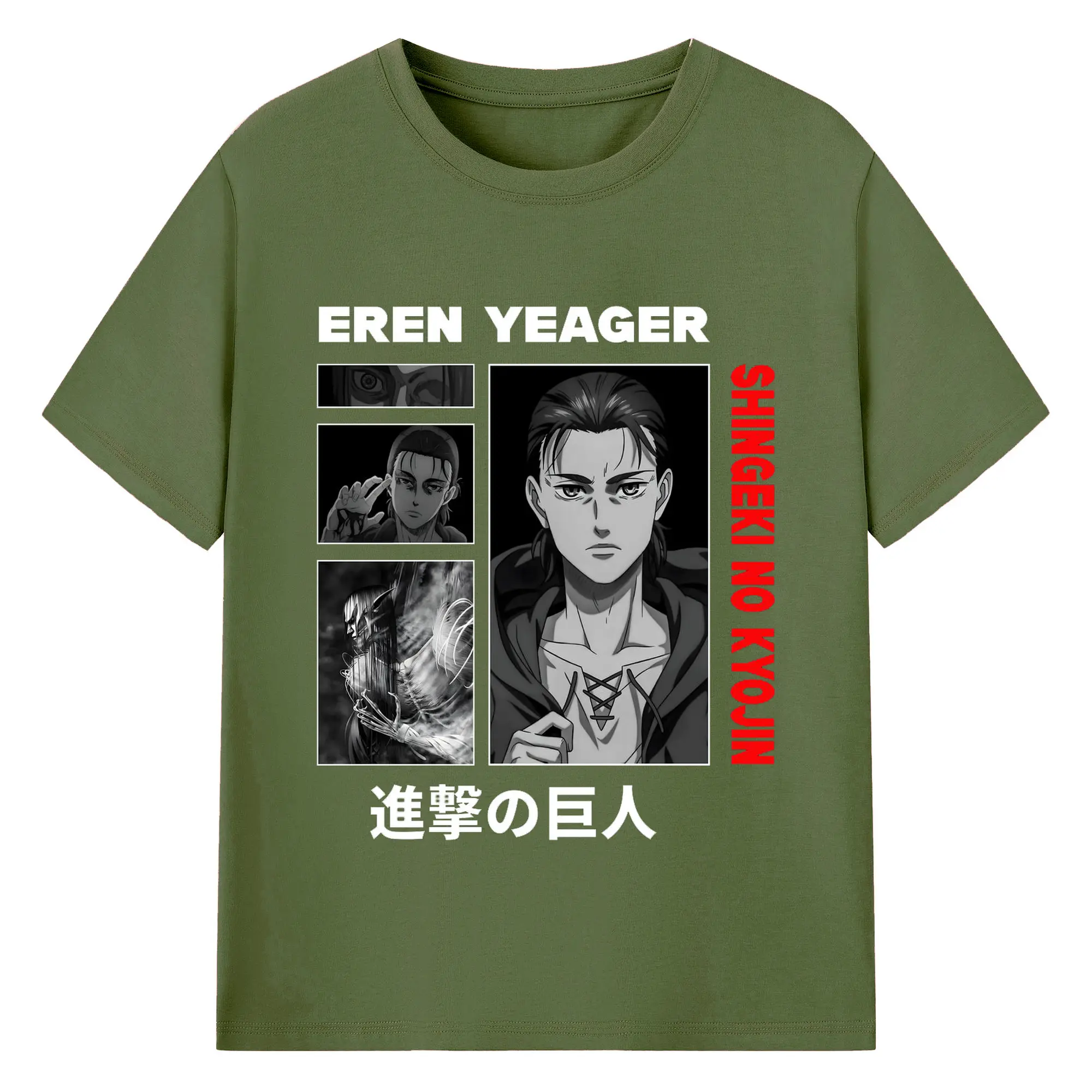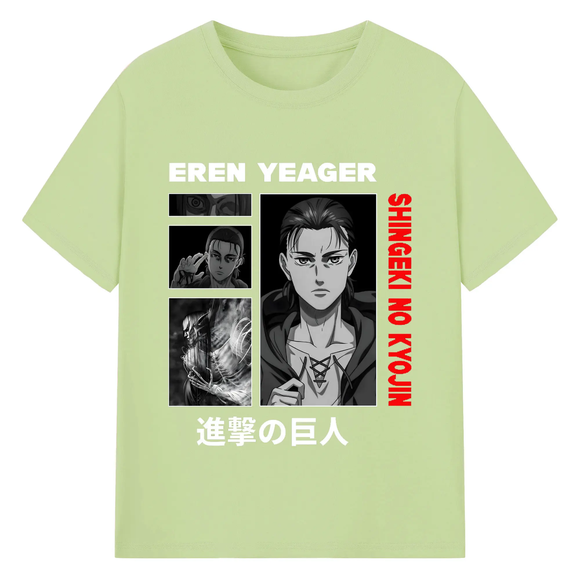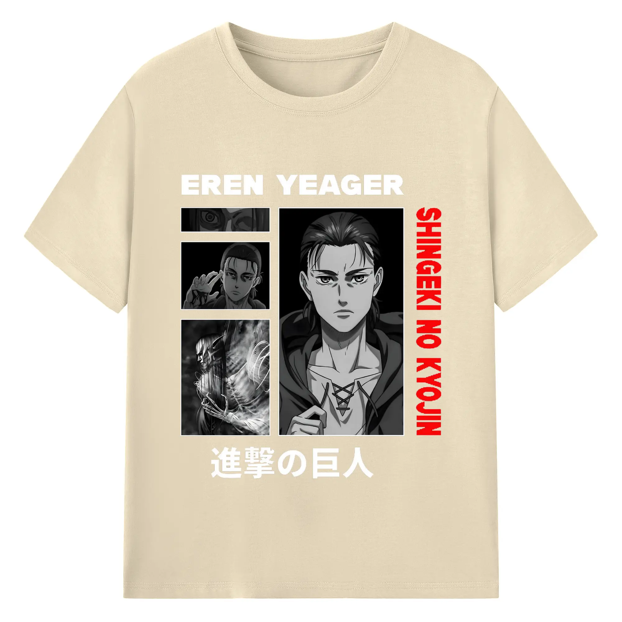 進撃の巨人 エレン - 綿100% ヴィンテージ風 半袖Tシャツ ・ フロントプリント ・ 柔らか肌触り ・ 通気性 快適 ・ スポーツ カジュアル 外出用