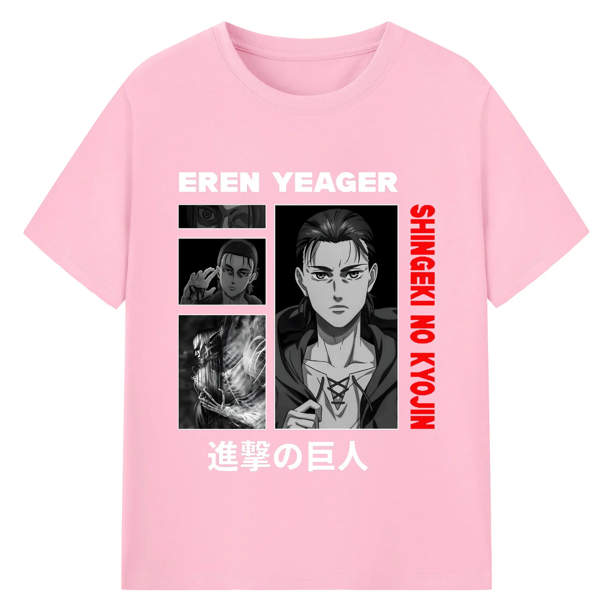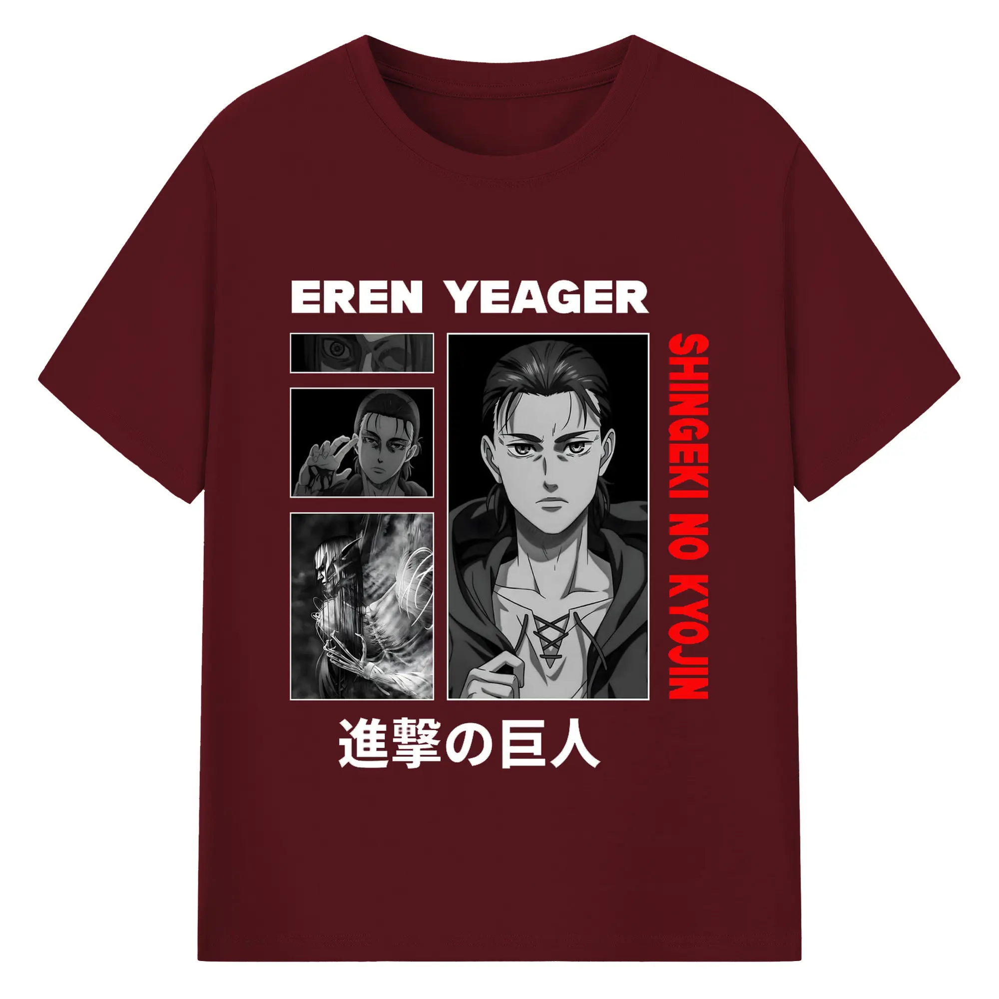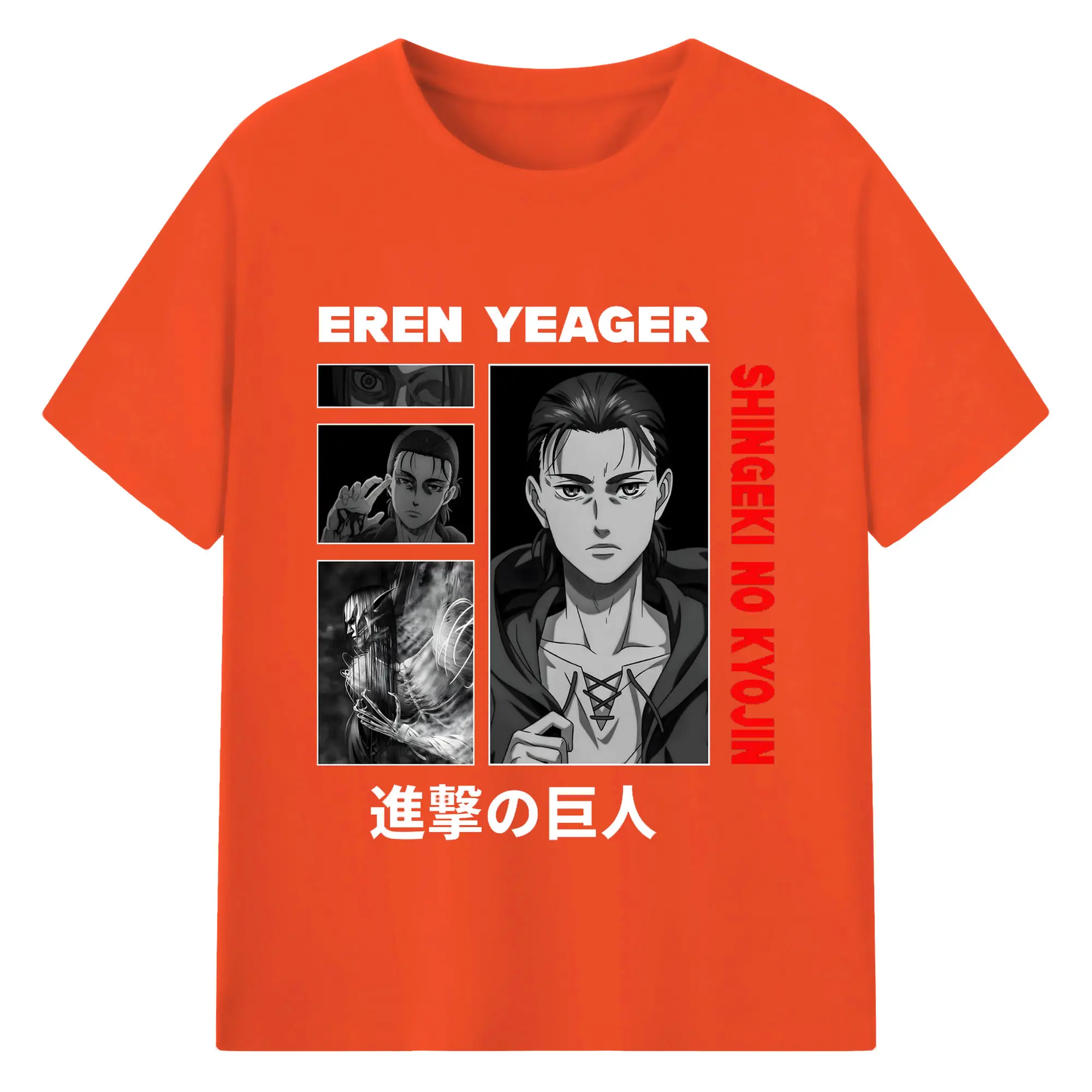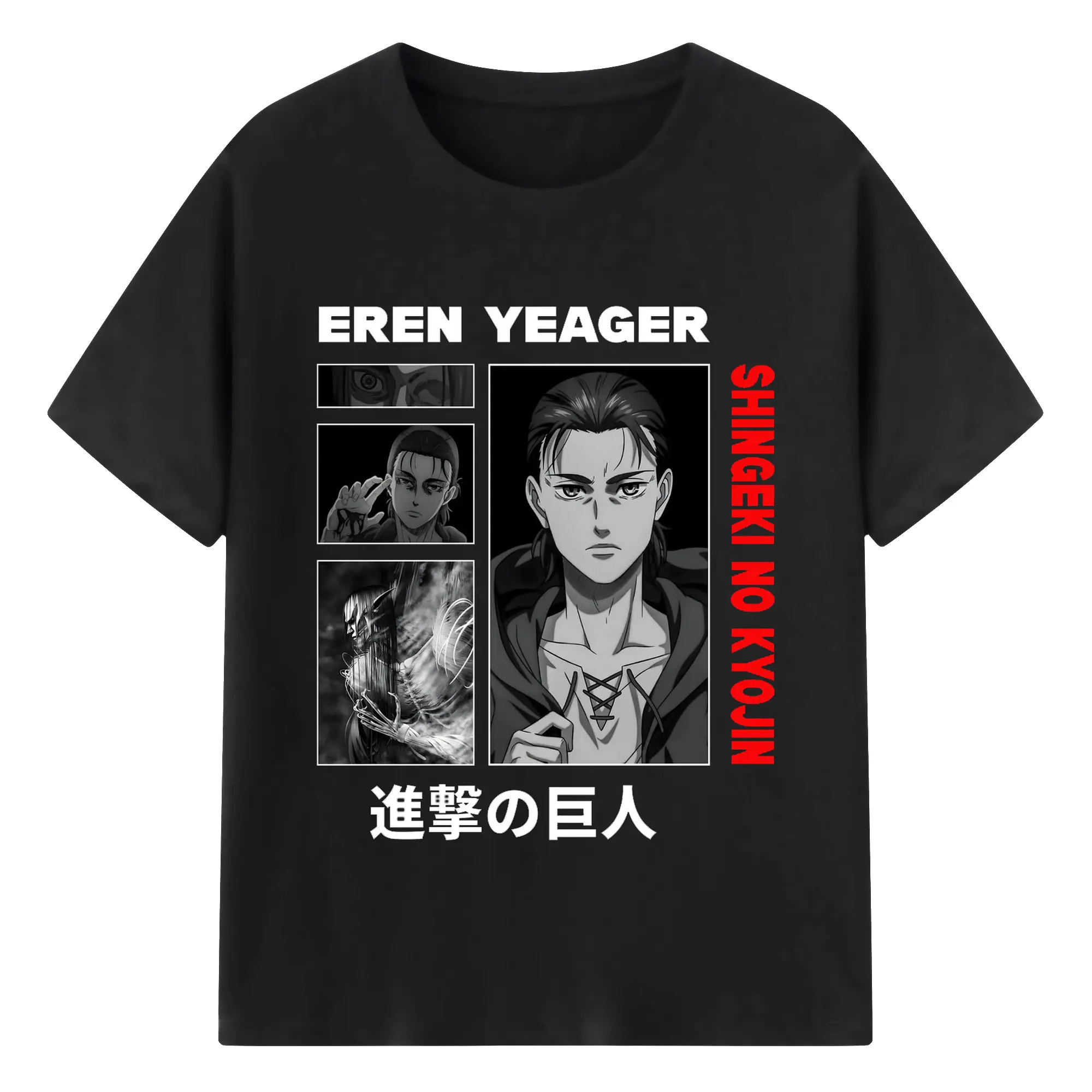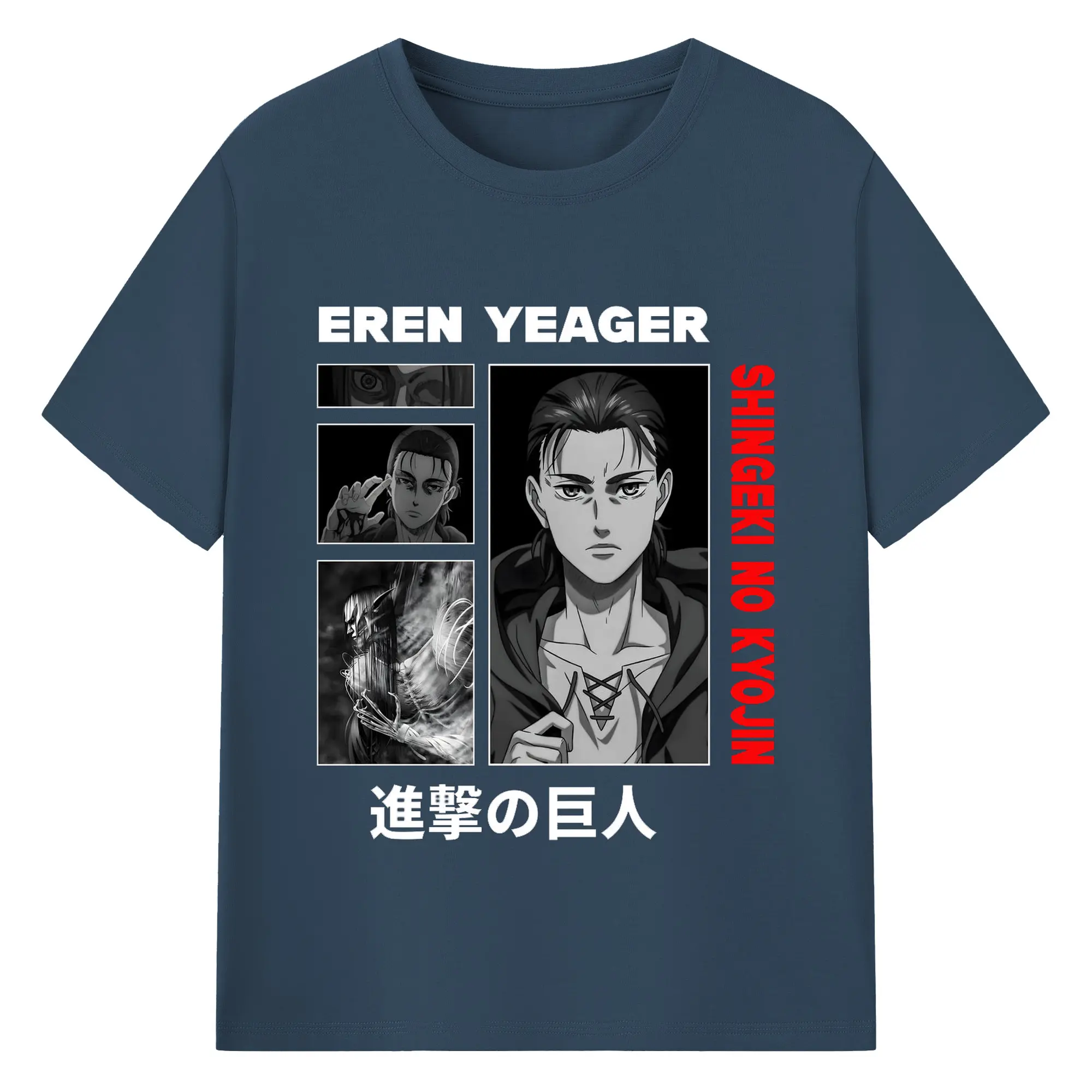 進撃の巨人 エレン - 綿100% ヴィンテージ風 半袖Tシャツ ・ フロントプリント ・ 柔らか肌触り ・ 通気性 快適 ・ スポーツ カジュアル 外出用