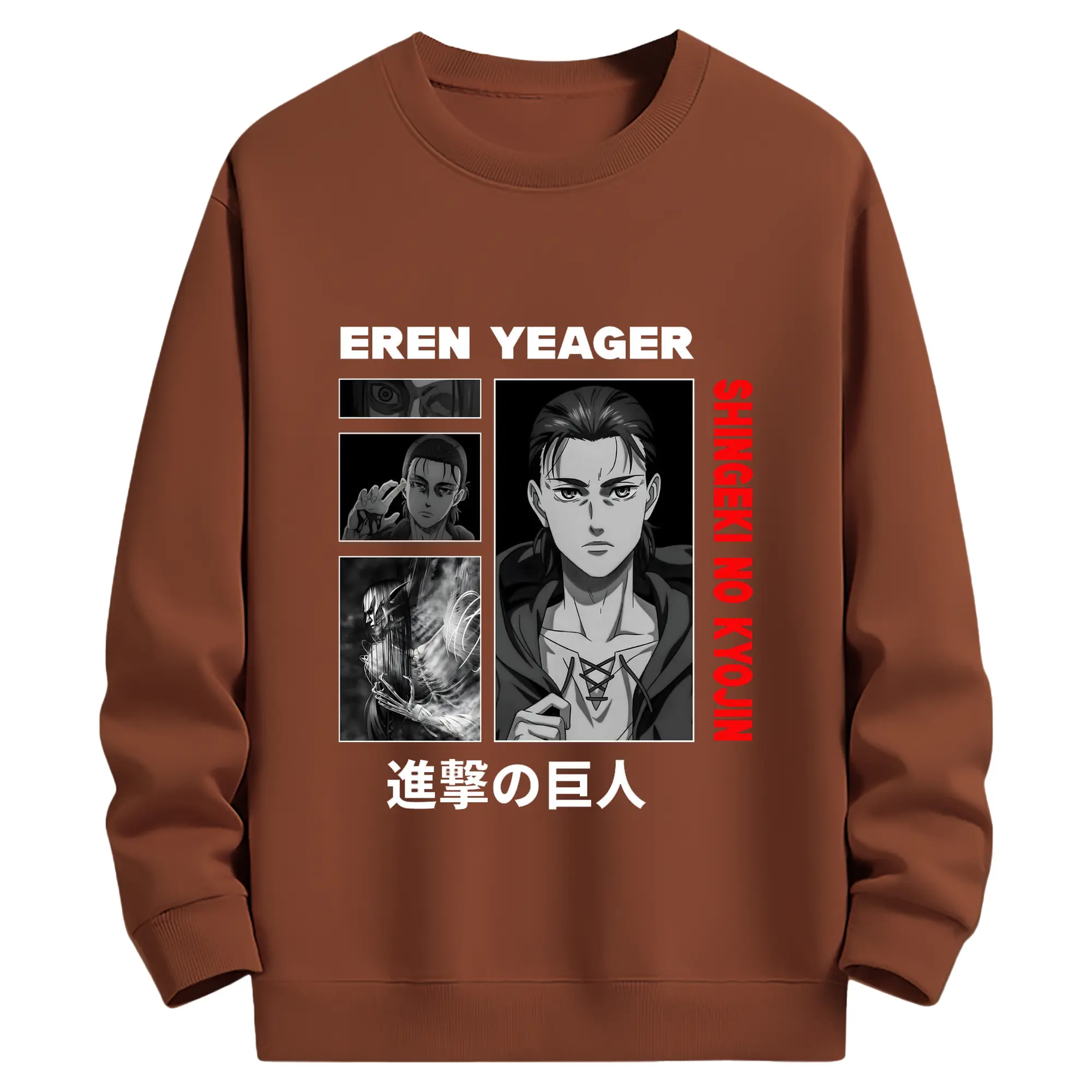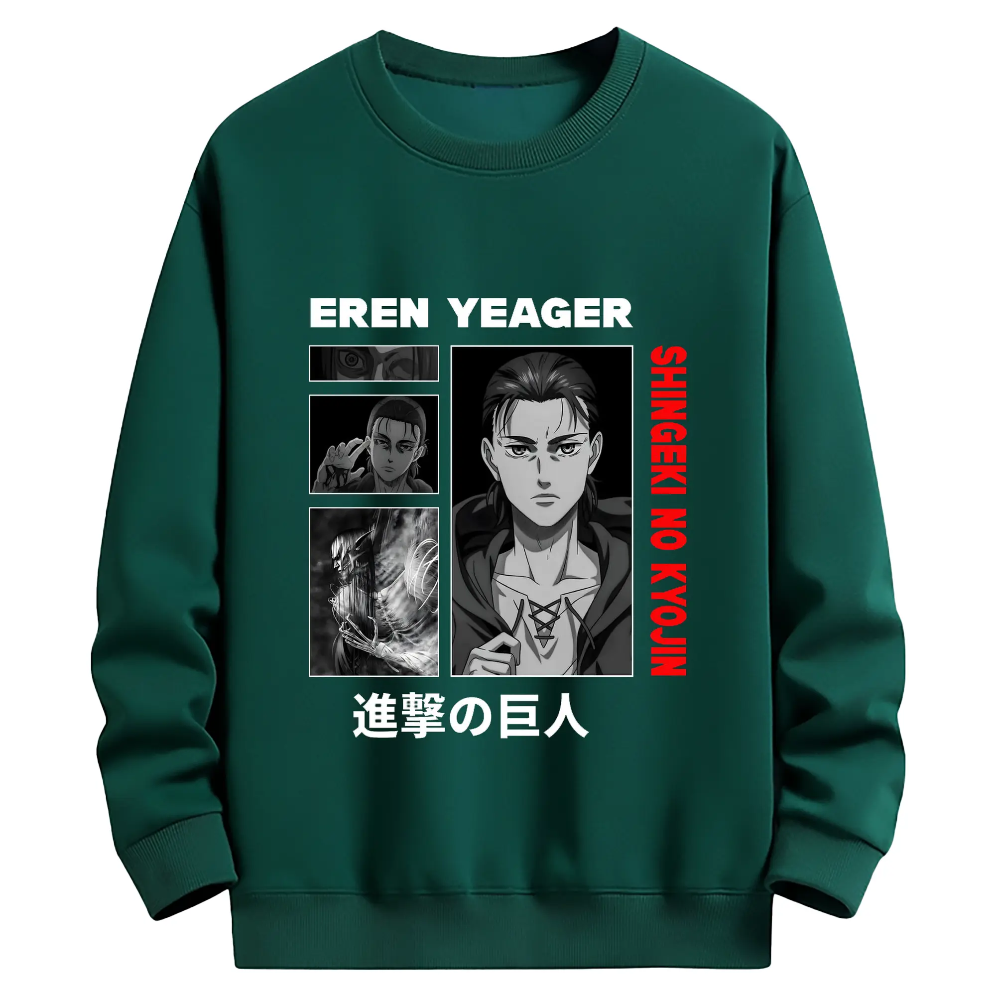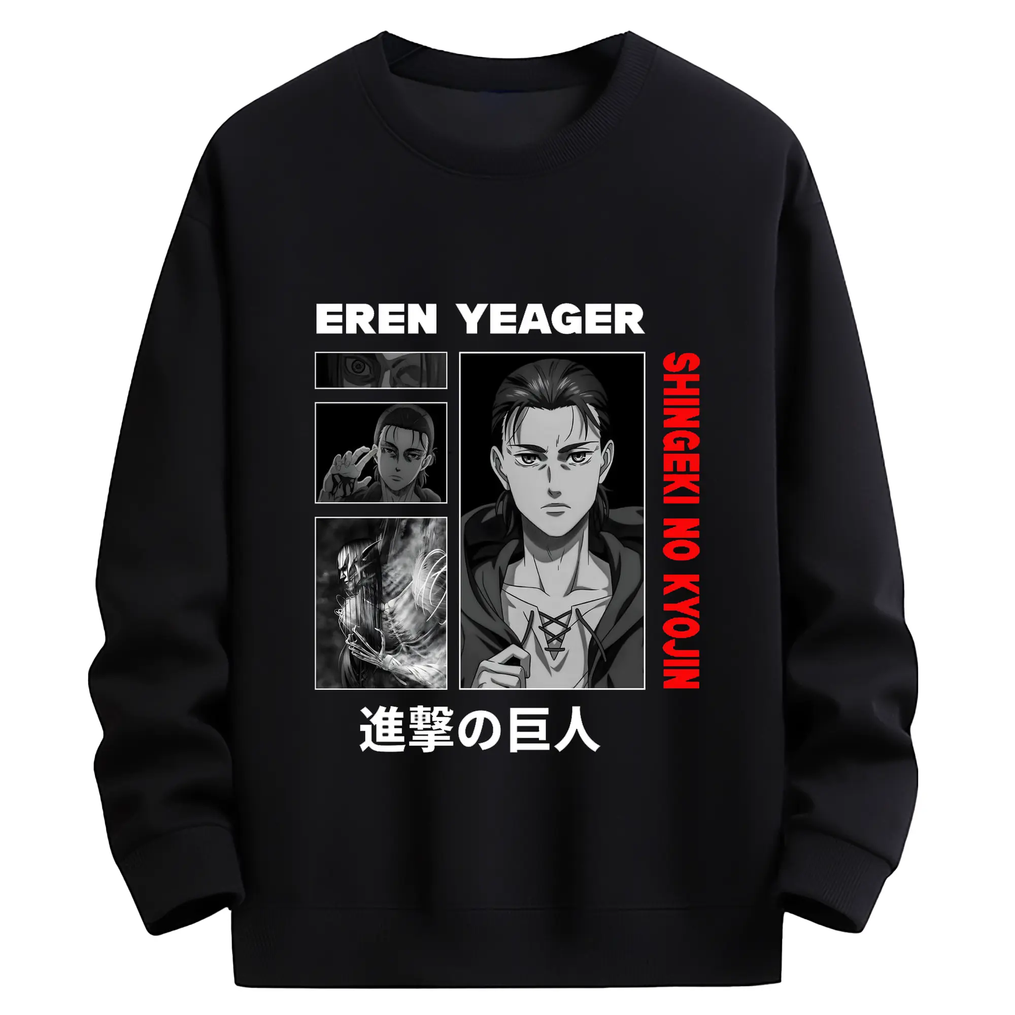 進撃の巨人 エレン - 綿100% 半袖Tシャツ ・ フロントプリント ・ 快適 通気性 ・ 日常使い 散歩 スポーツ用