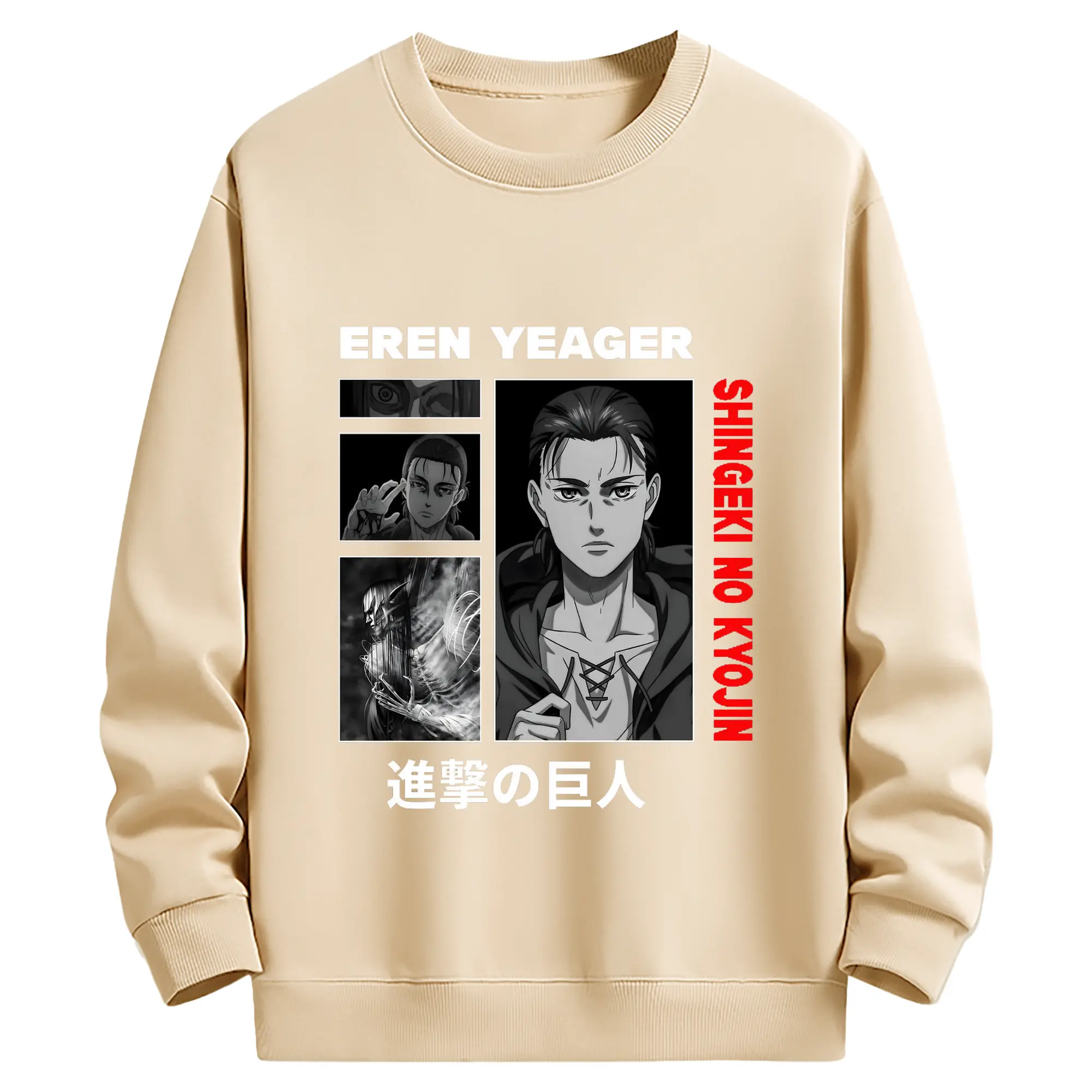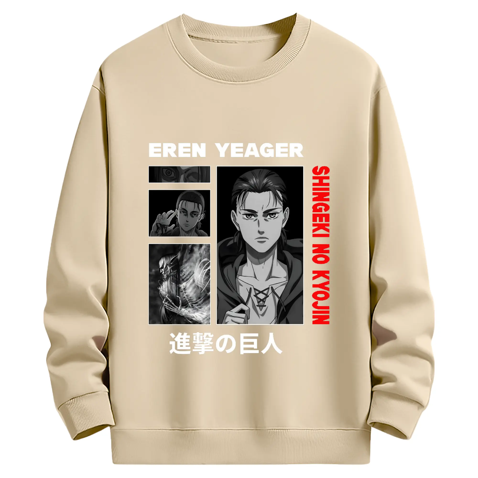 進撃の巨人 エレン - 綿100% ヴィンテージ風 半袖Tシャツ ・ フロントプリント ・ 柔らか肌触り ・ 通気性 快適 ・ スポーツ カジュアル 外出用