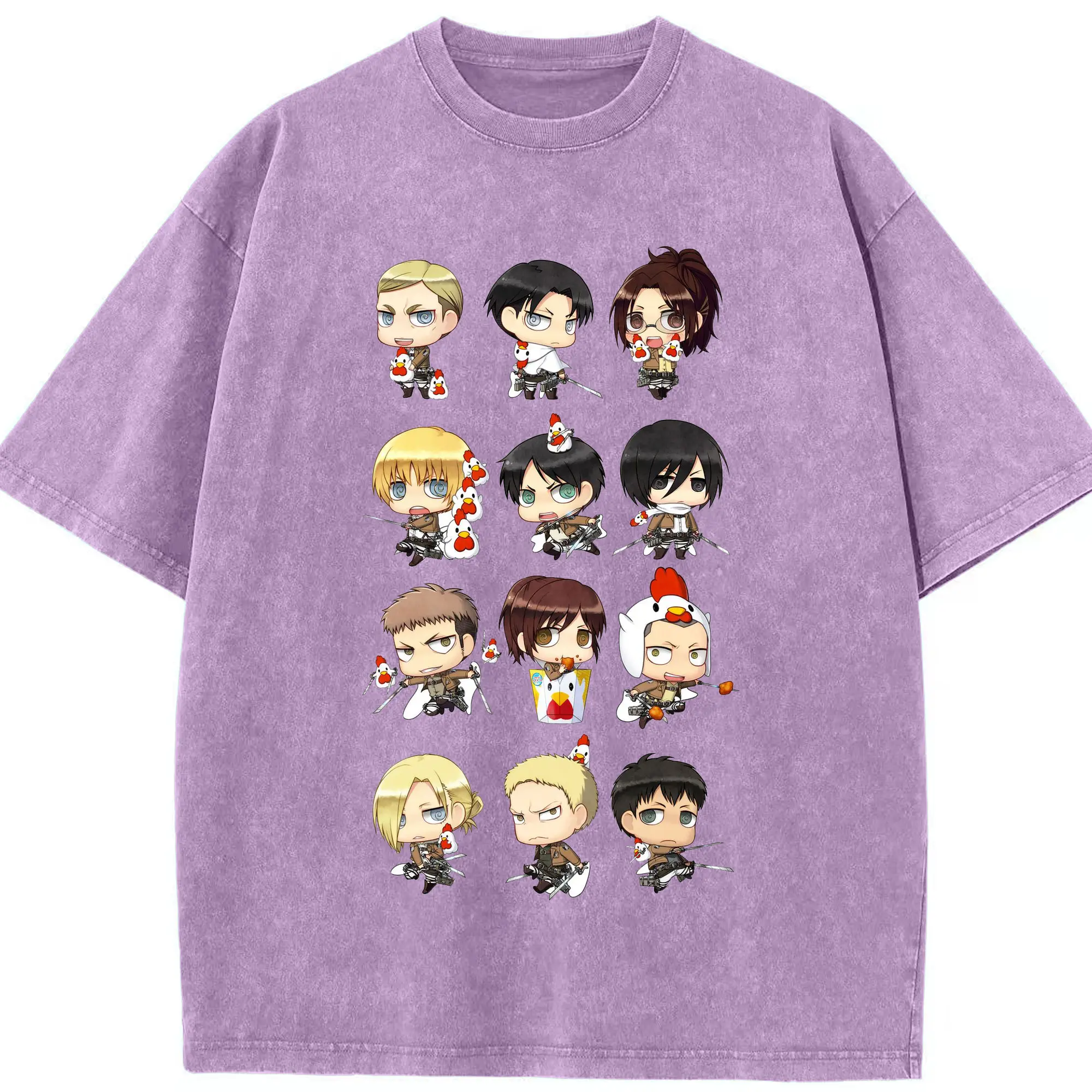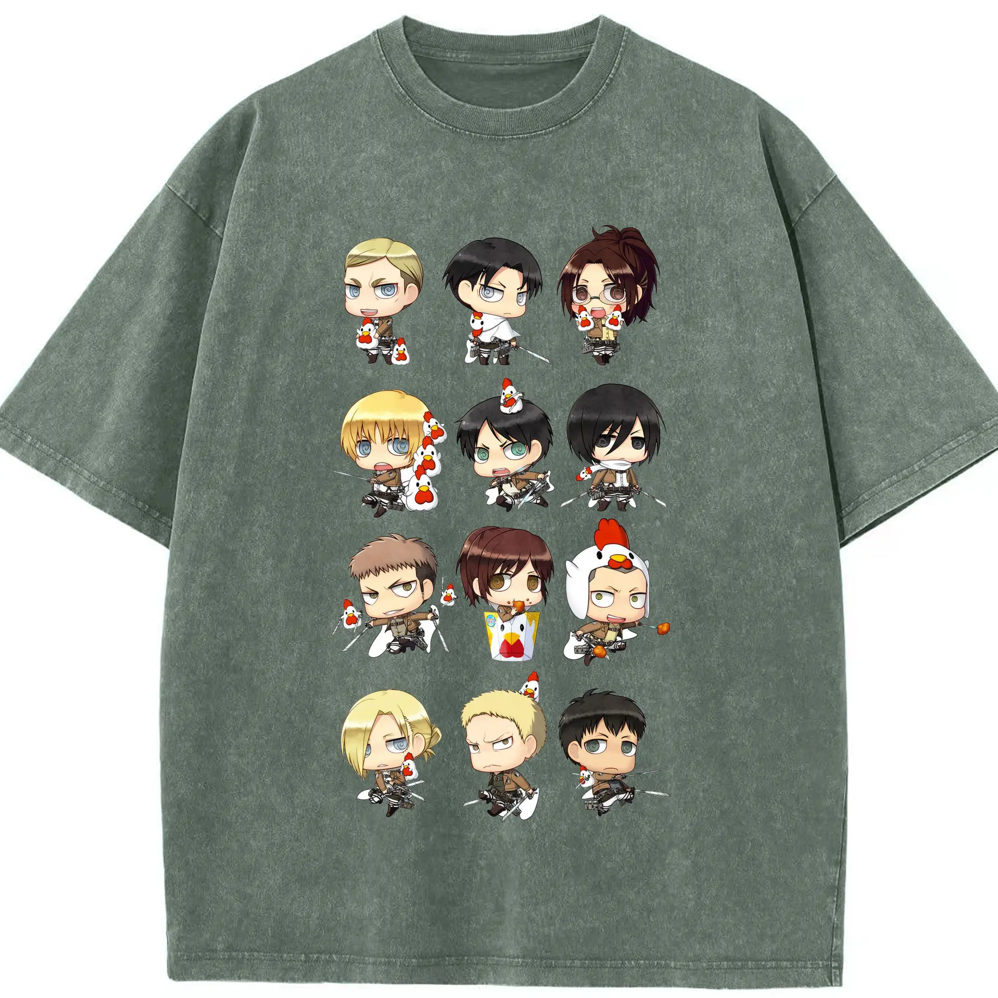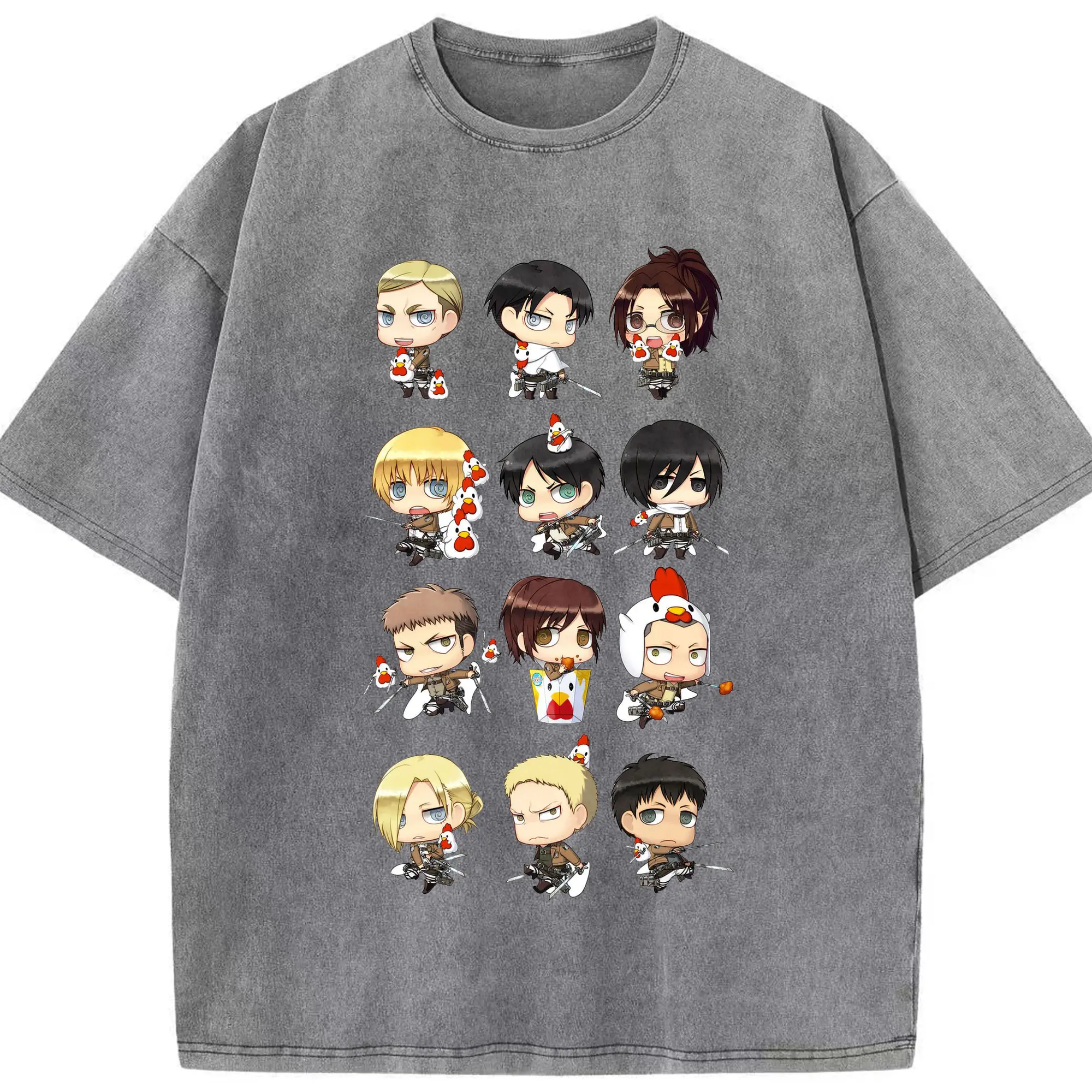 進撃の巨人デフォルトキャラ大集合 - 綿100% 半袖Tシャツ ・ フロントプリント ・ 快適 通気性 ・ 日常使い 散歩 スポーツ用