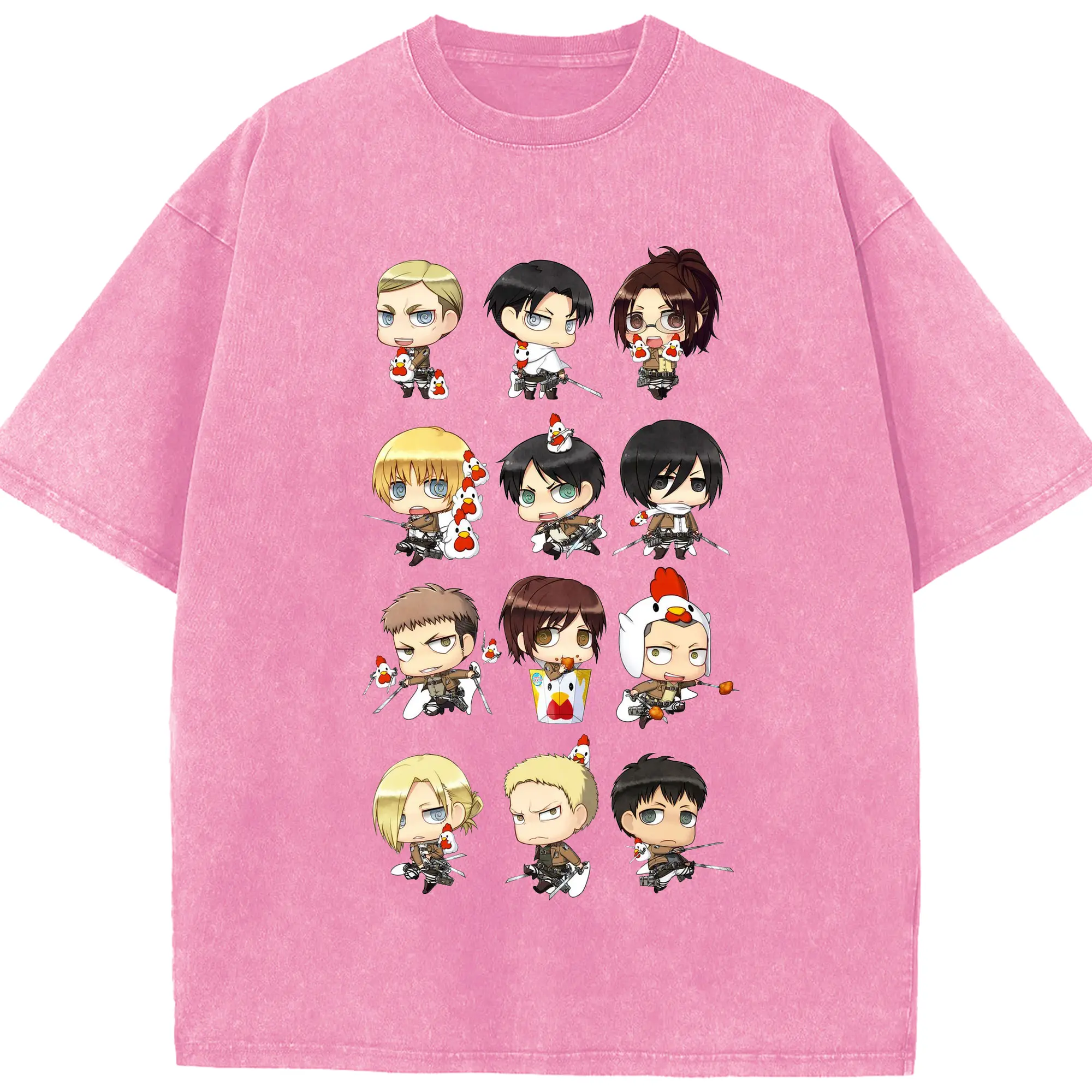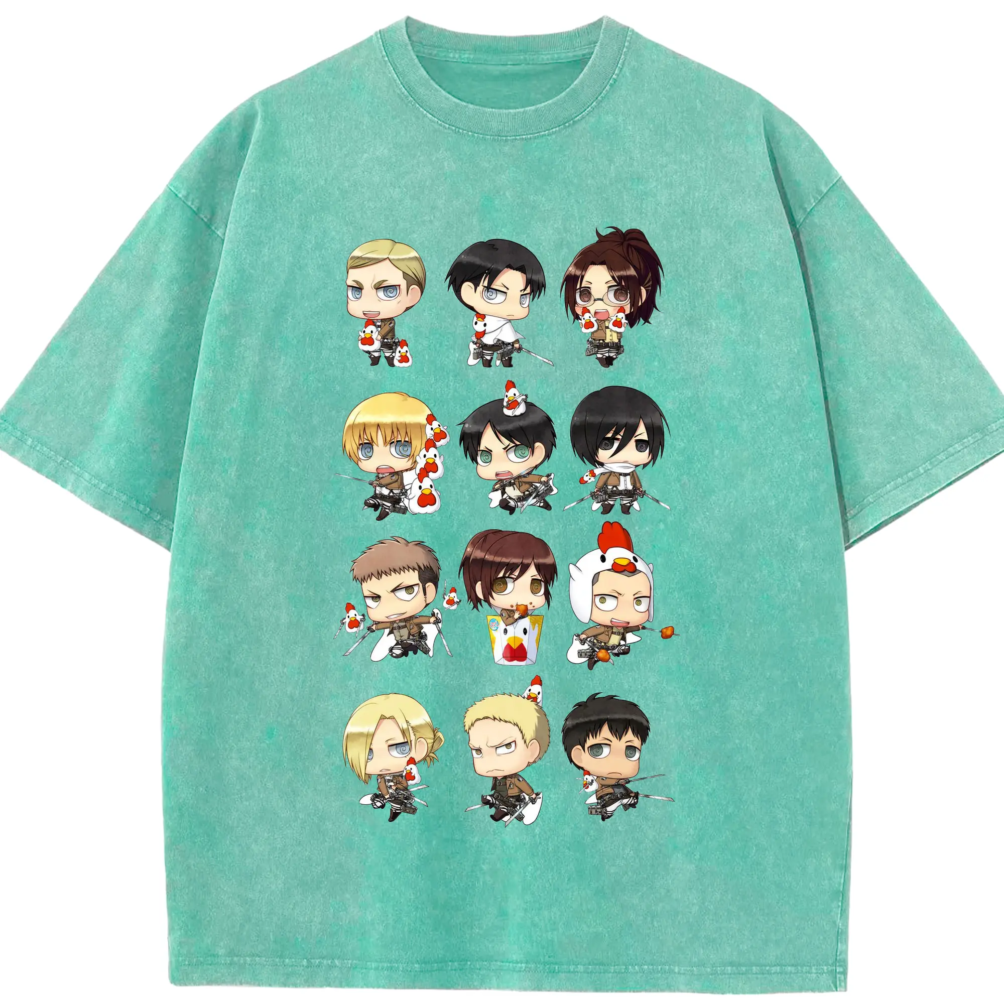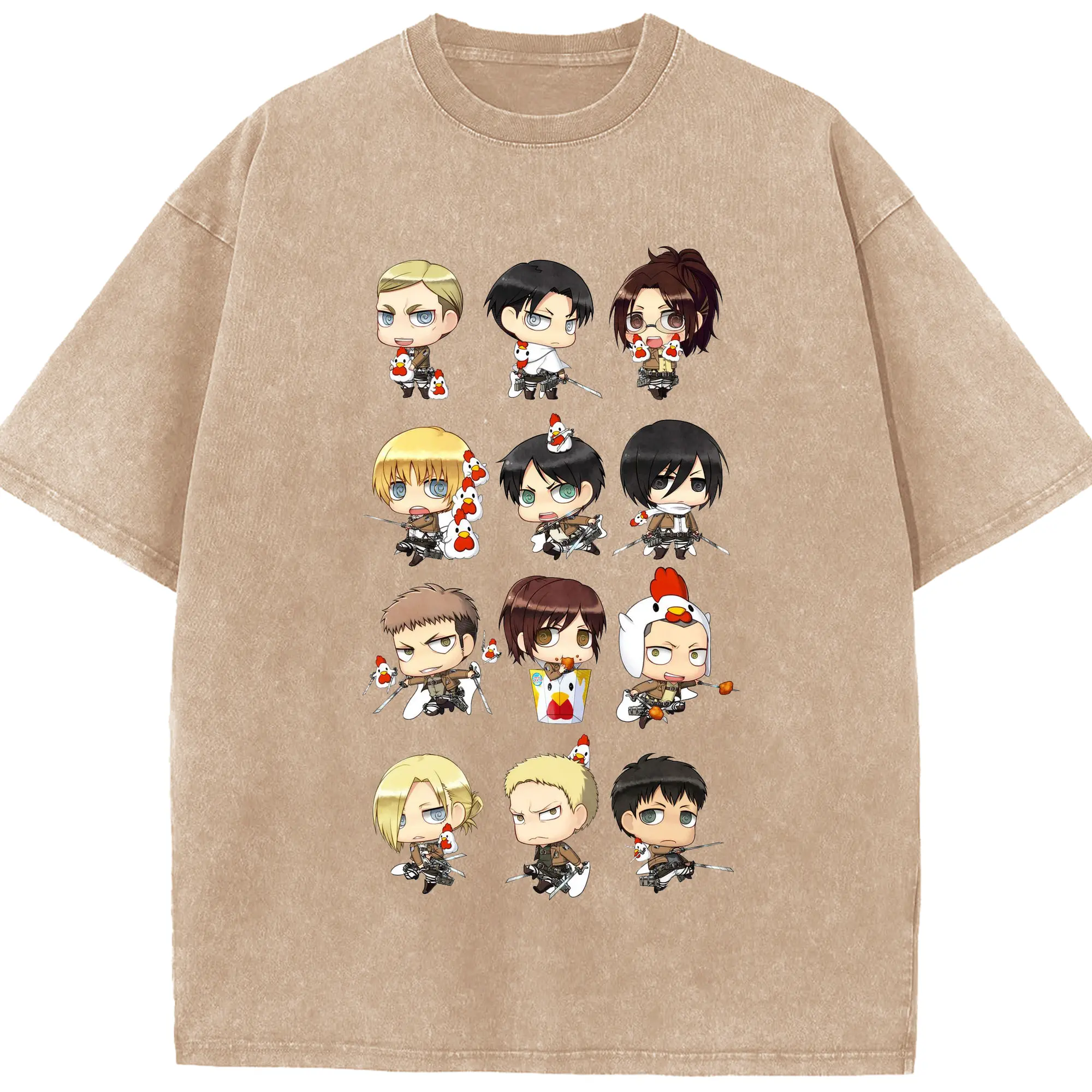 進撃の巨人デフォルトキャラ大集合 - 綿100% 半袖Tシャツ ・ フロントプリント ・ 快適 通気性 ・ 日常使い 散歩 スポーツ用