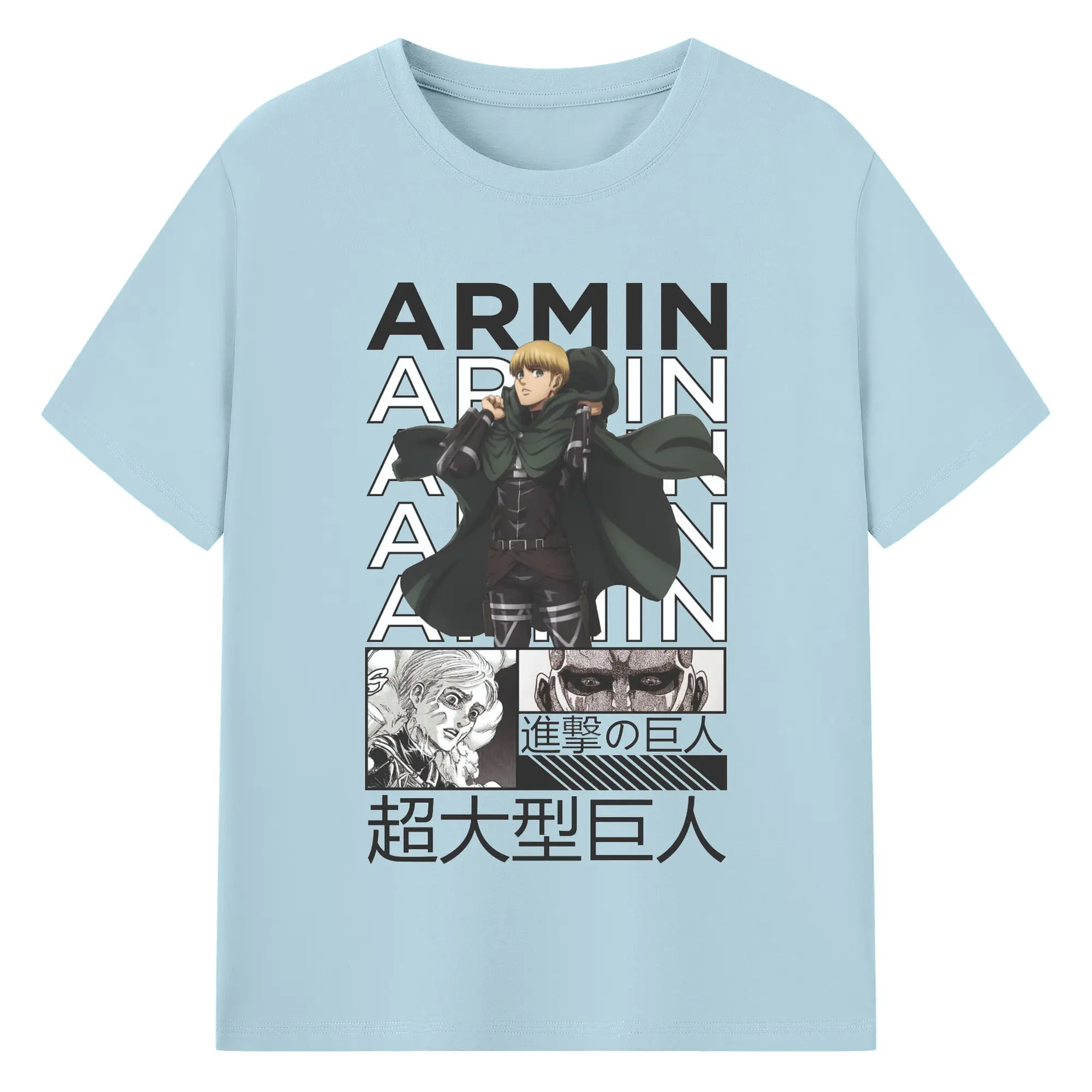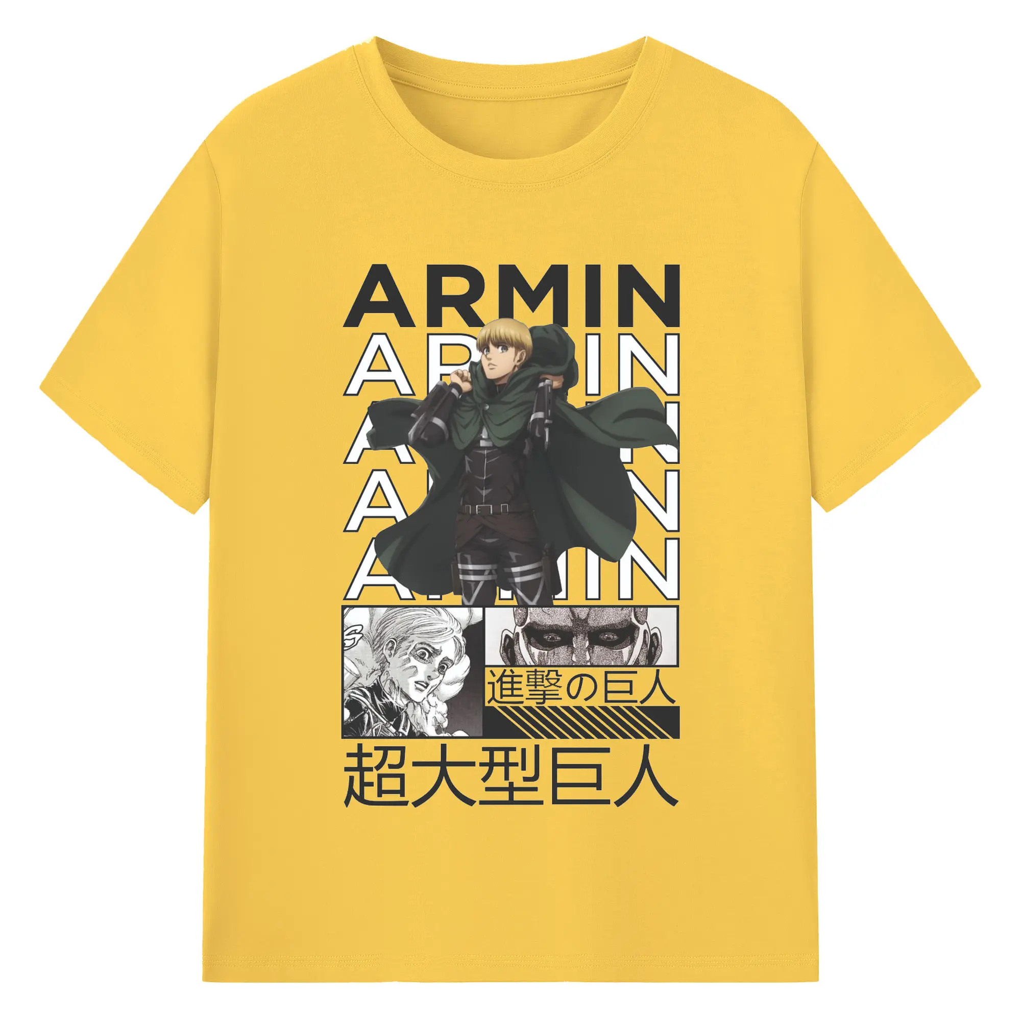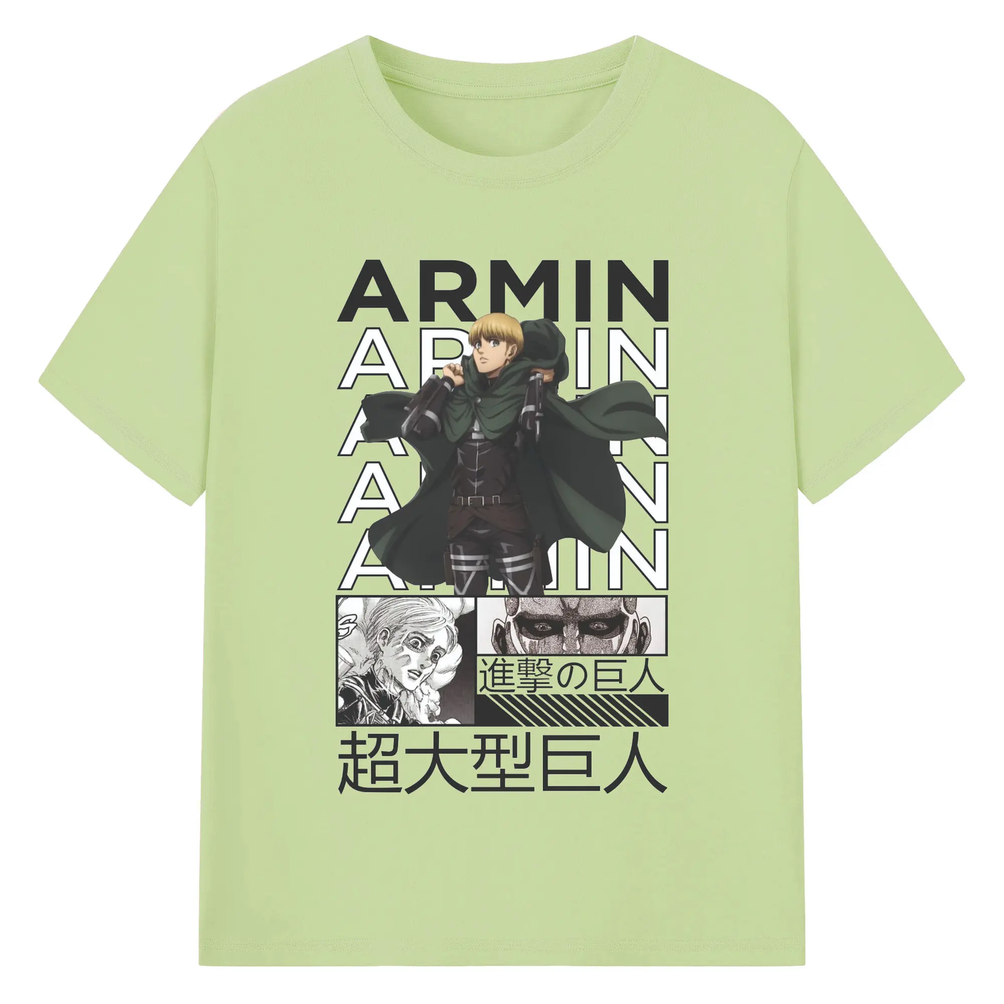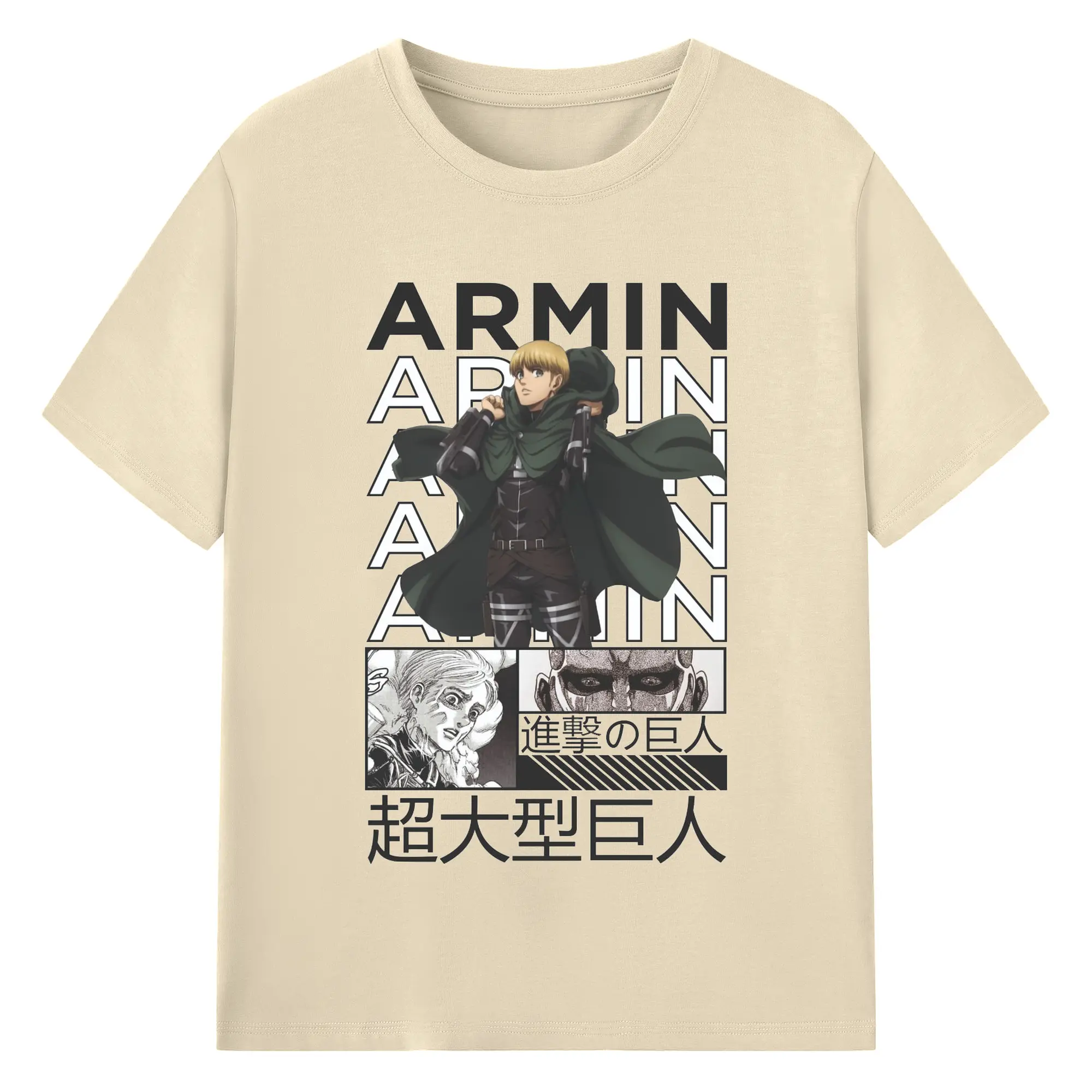進撃の巨人 アルミン - 綿100% ヴィンテージ風 半袖Tシャツ ・ フロントプリント ・ 柔らか肌触り ・ 通気性 快適 ・ スポーツ カジュアル 外出用