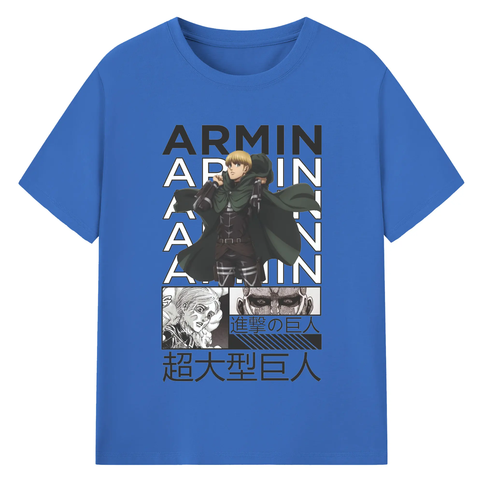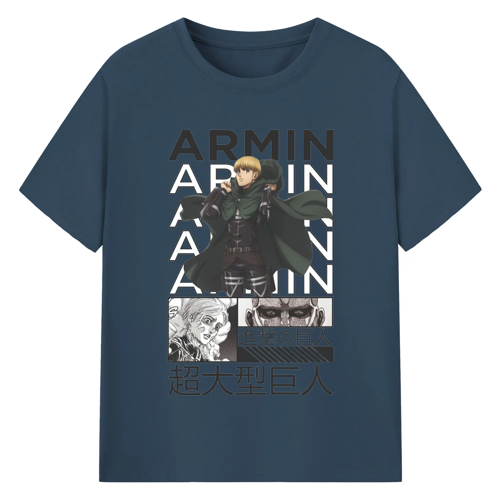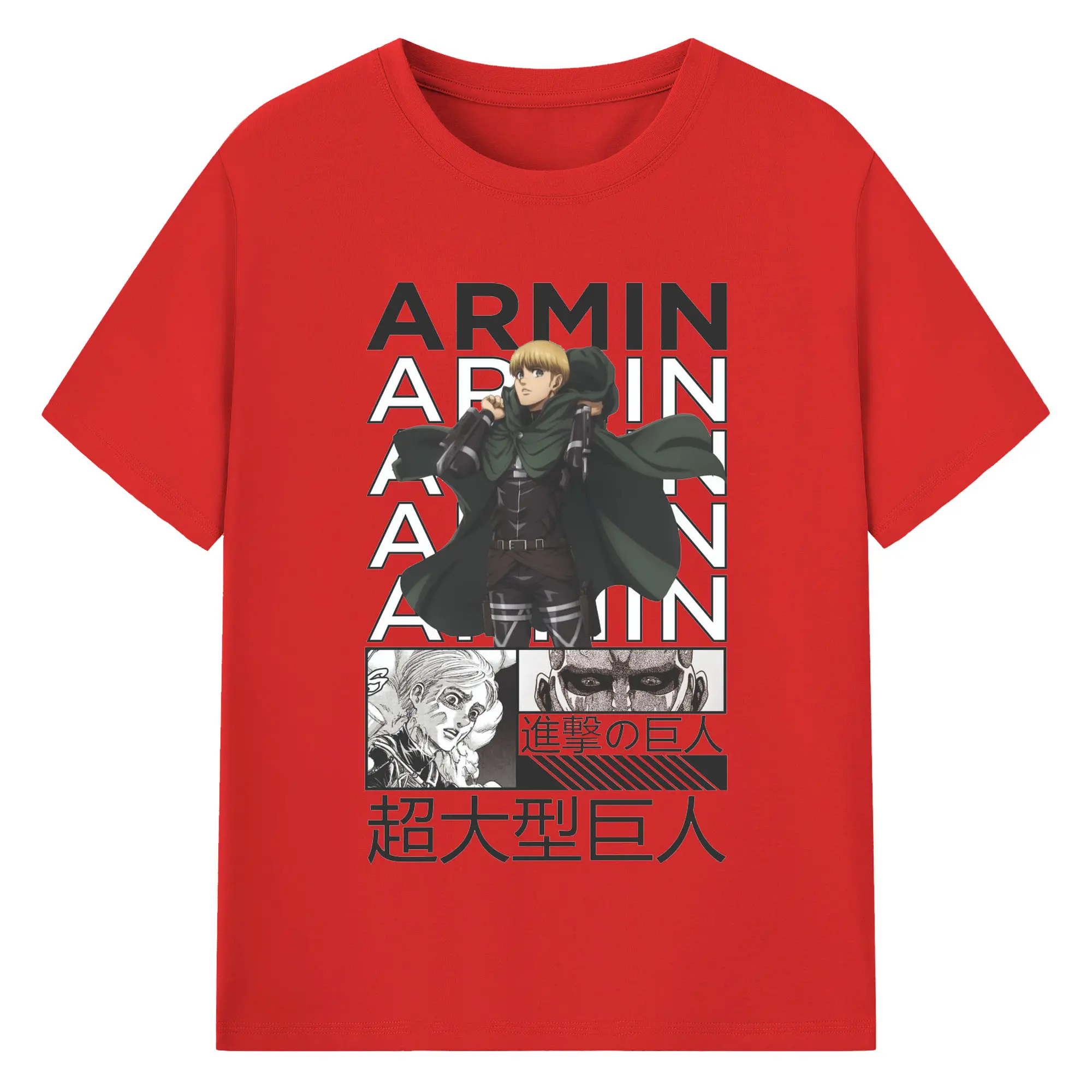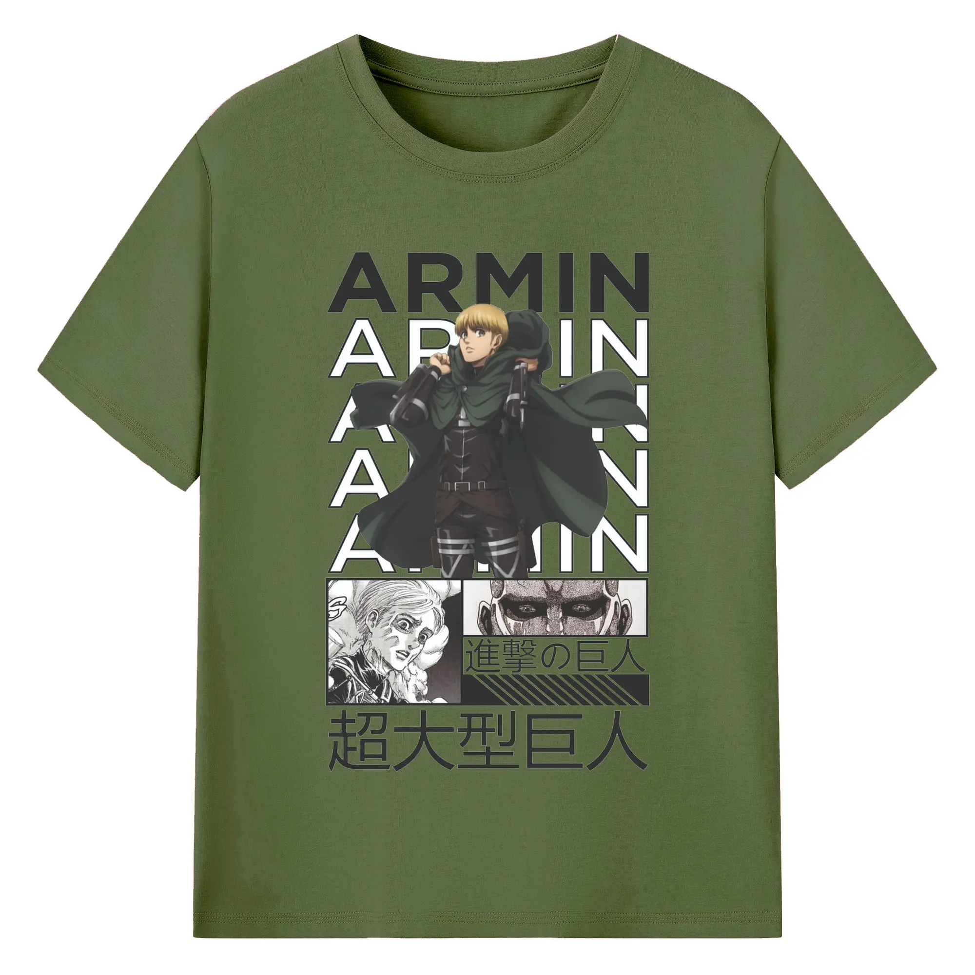 進撃の巨人 アルミン - 綿100% ヴィンテージ風 半袖Tシャツ ・ フロントプリント ・ 柔らか肌触り ・ 通気性 快適 ・ スポーツ カジュアル 外出用