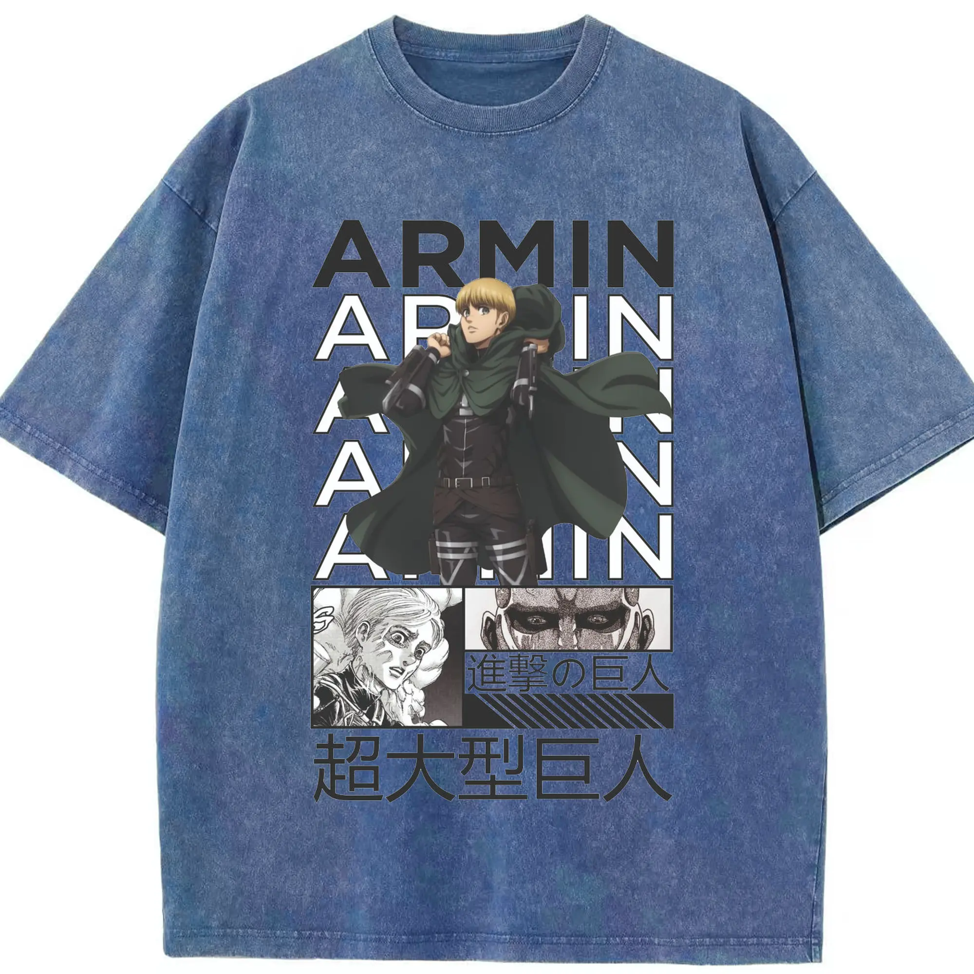 進撃の巨人 アルミン - 綿100% 半袖Tシャツ ・ フロントプリント ・ 快適 通気性 ・ 日常使い 散歩 スポーツ用