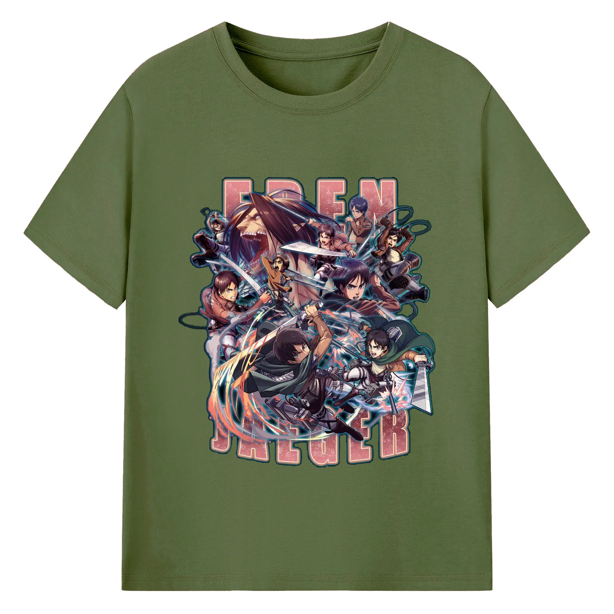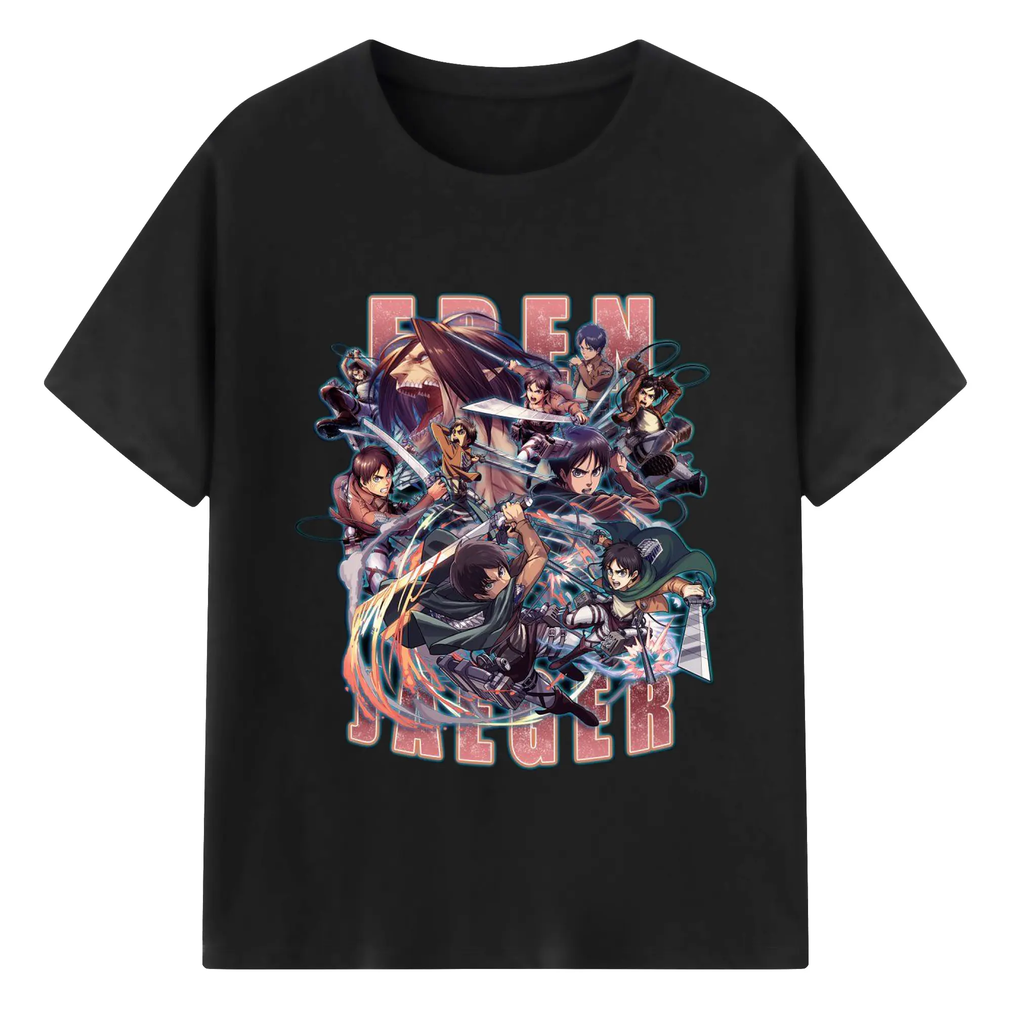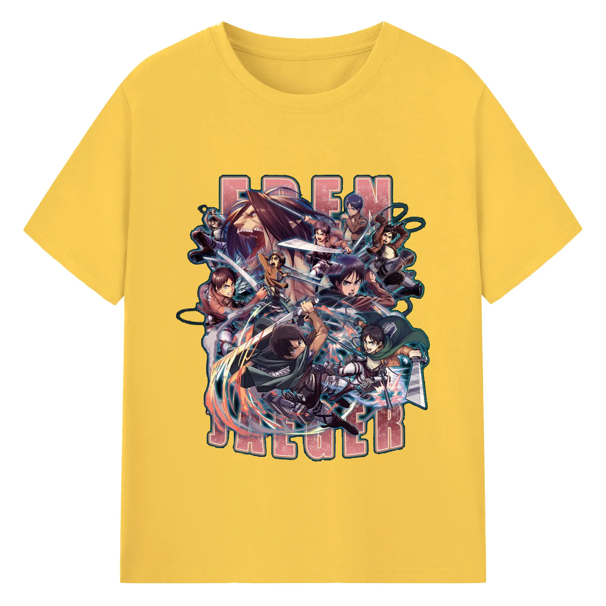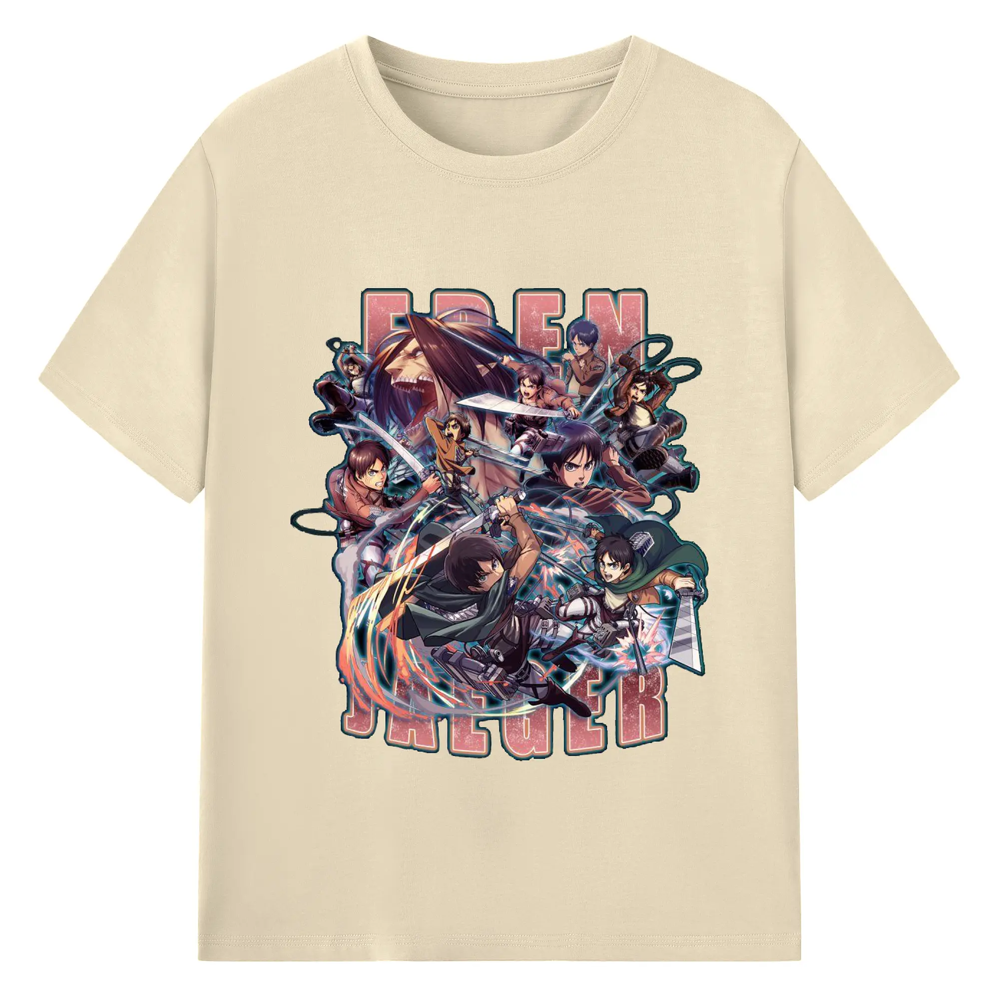 進撃の巨人 エレン - 綿100% ヴィンテージ風 半袖Tシャツ ・ フロントプリント ・ 柔らか肌触り ・ 通気性 快適 ・ スポーツ カジュアル 外出用