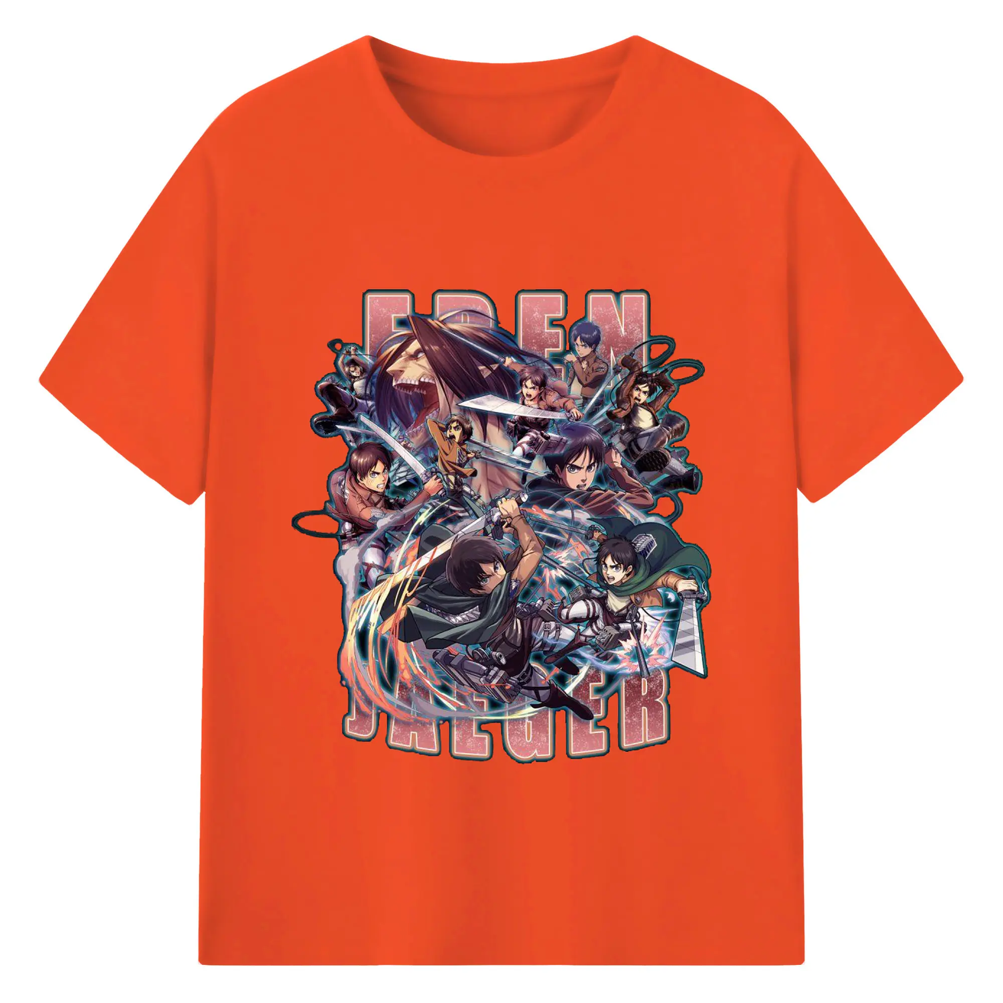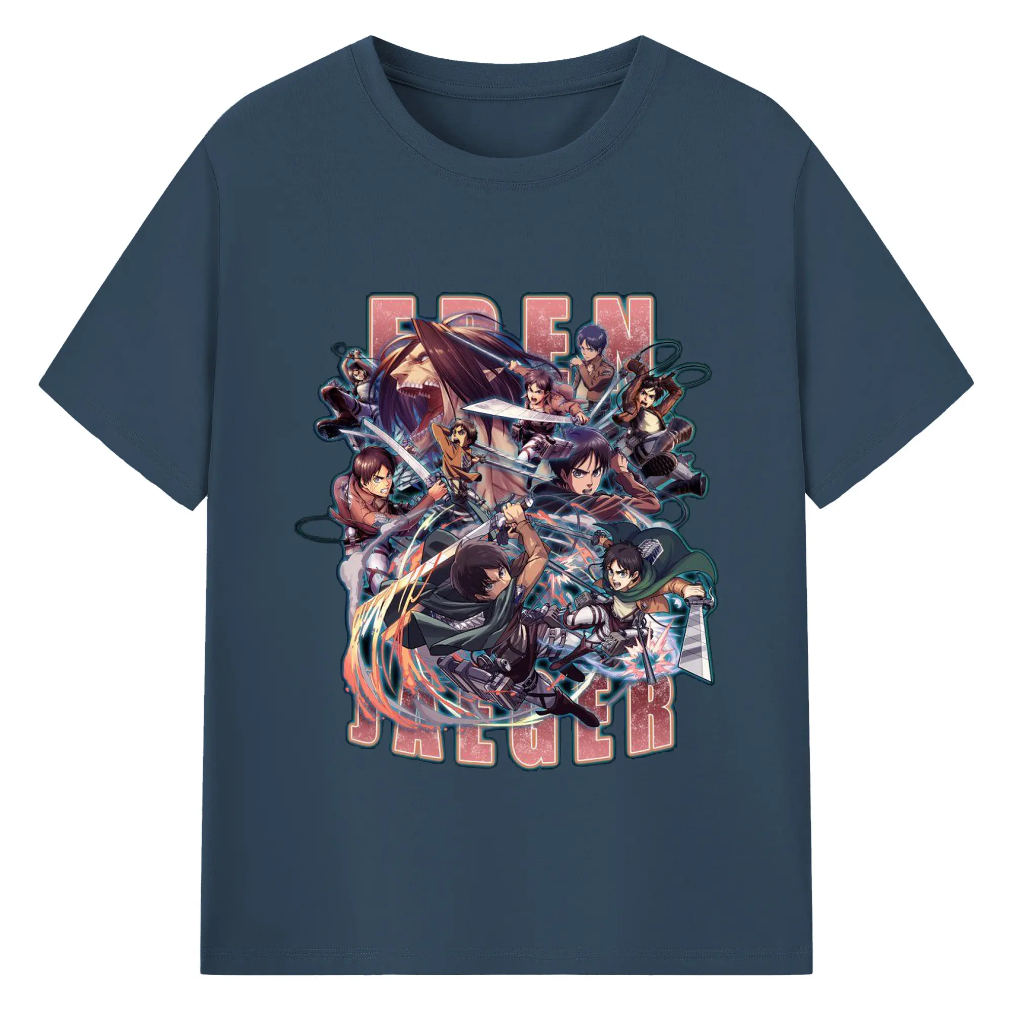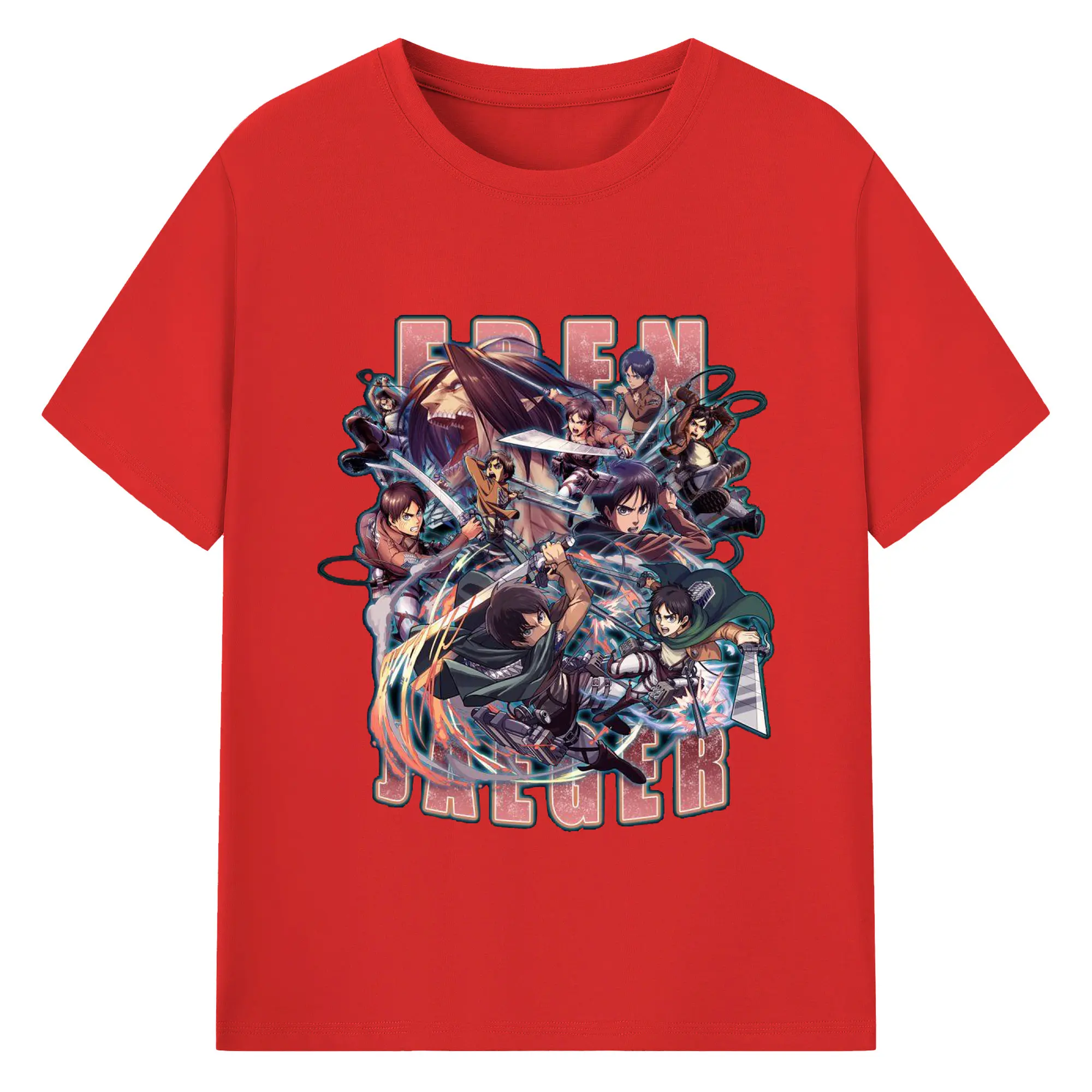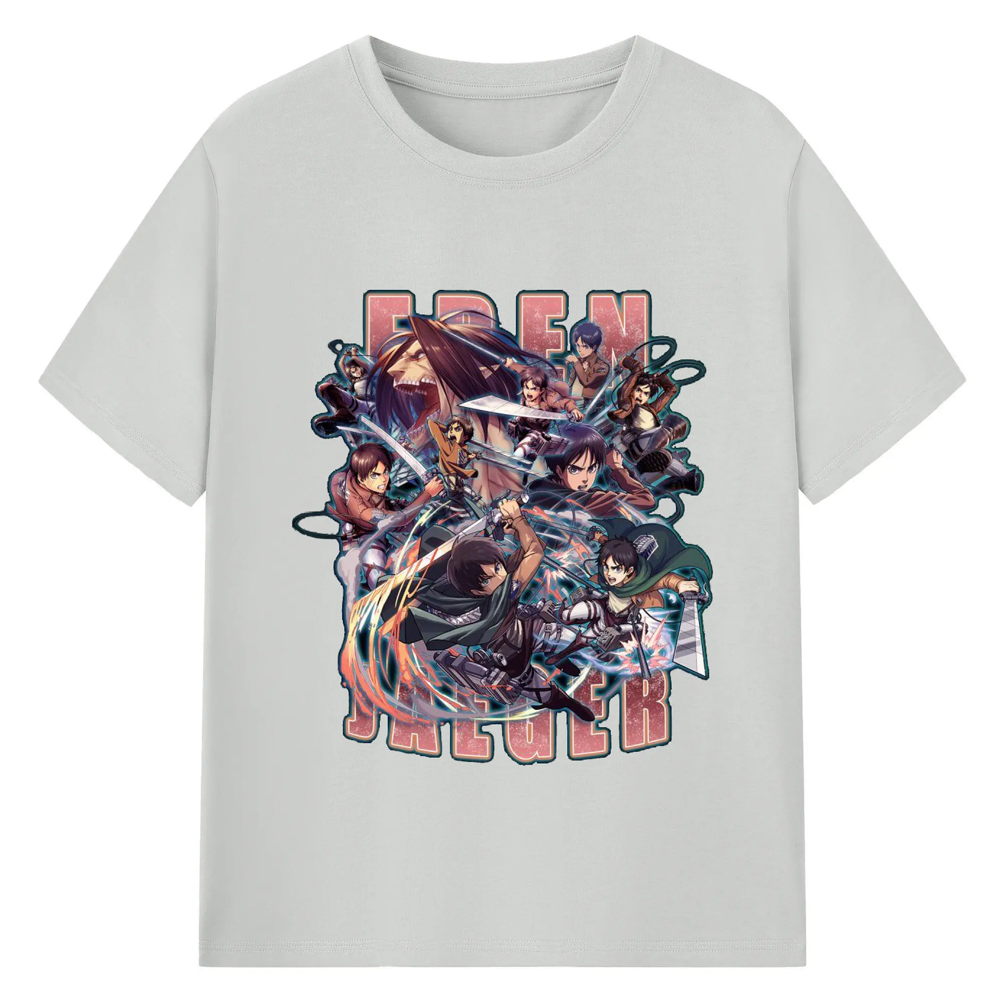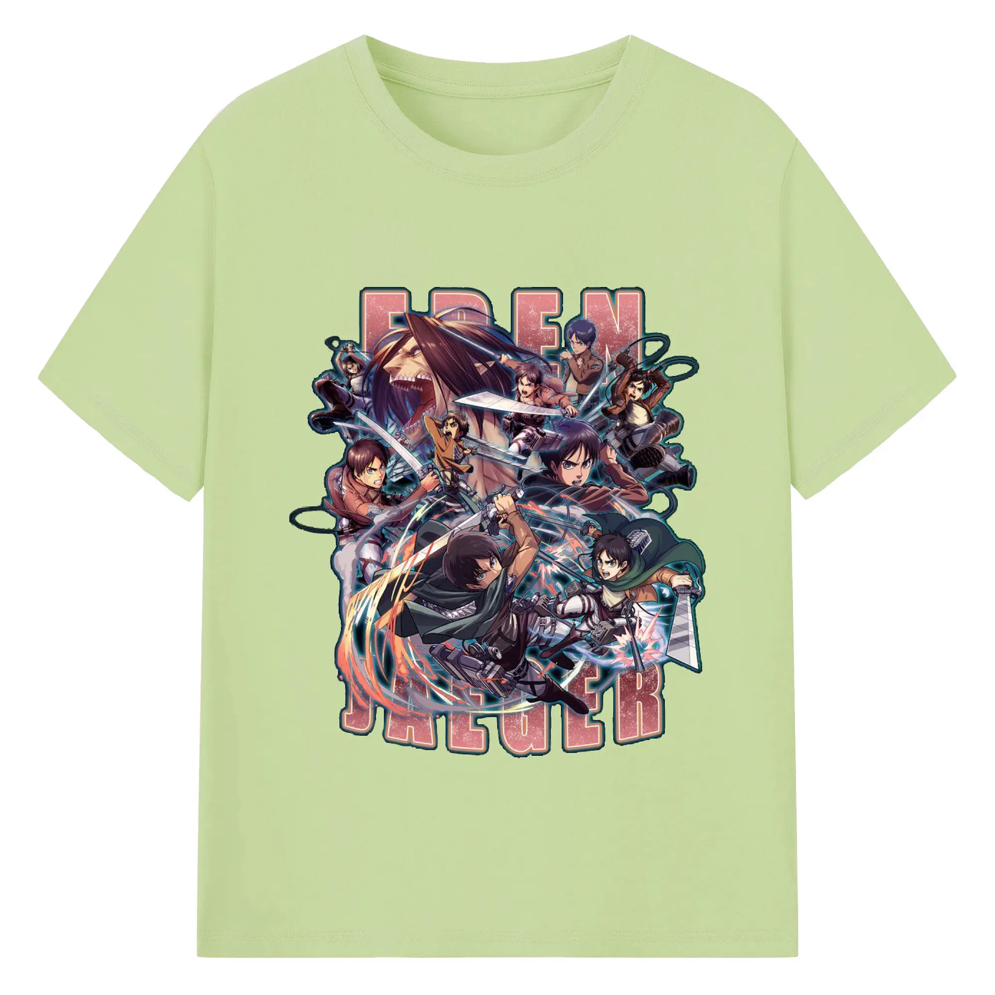 進撃の巨人 エレン - 綿100% ヴィンテージ風 半袖Tシャツ ・ フロントプリント ・ 柔らか肌触り ・ 通気性 快適 ・ スポーツ カジュアル 外出用