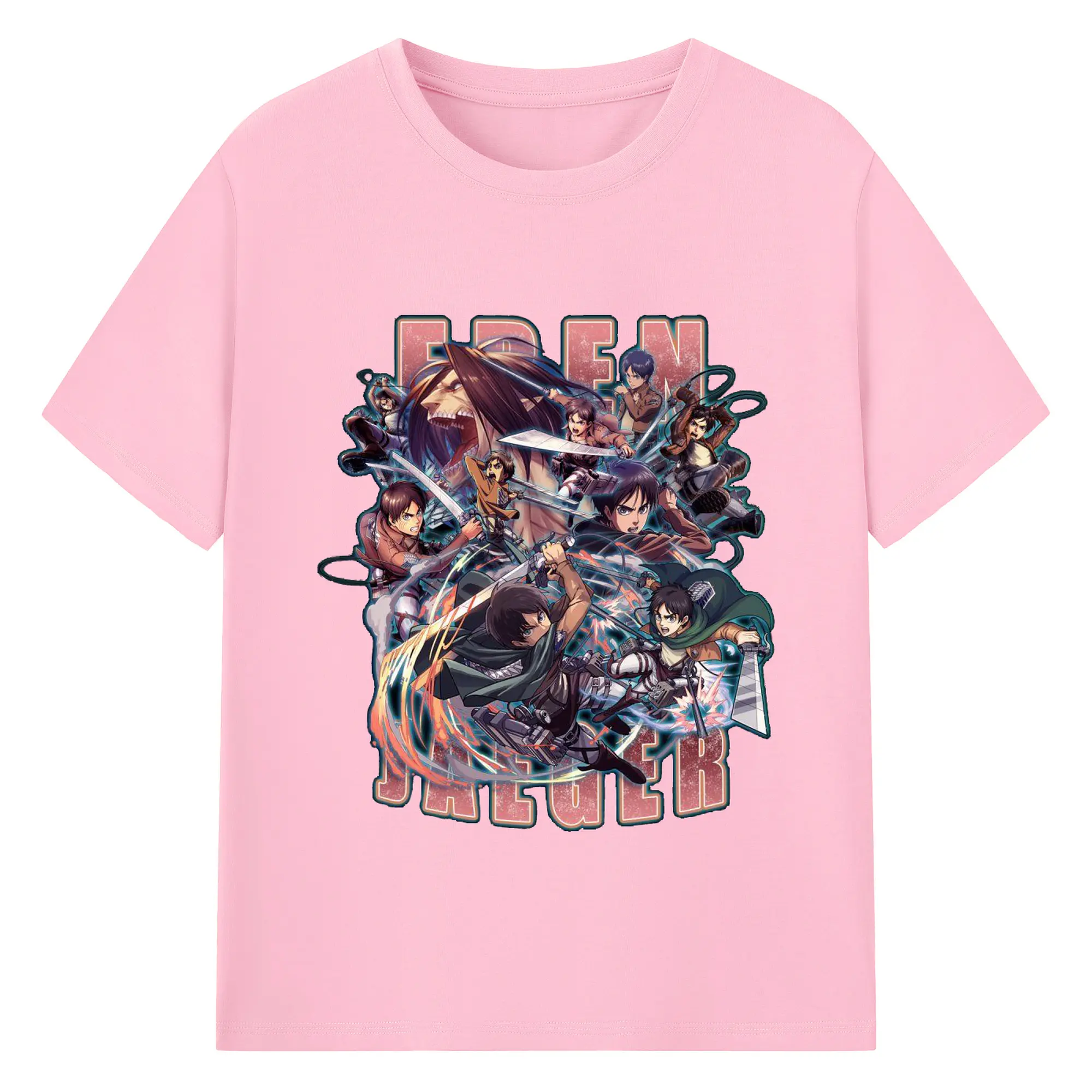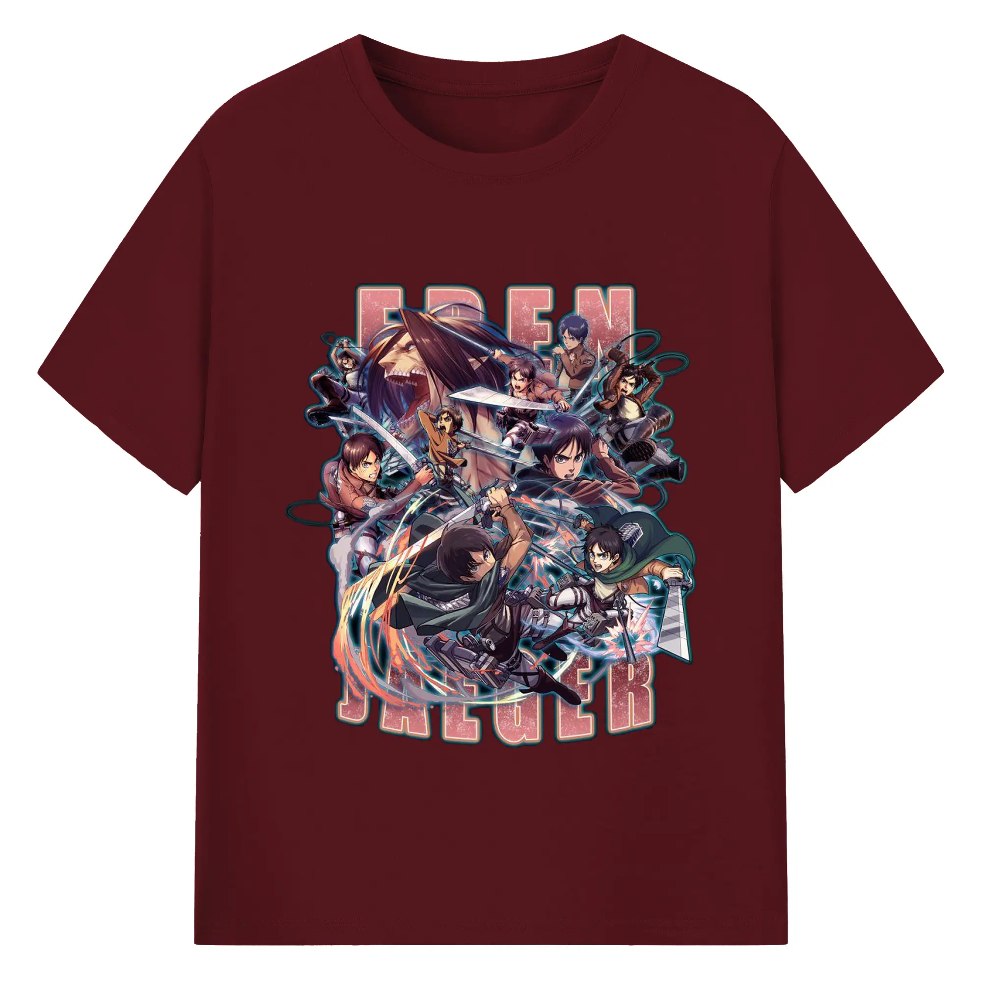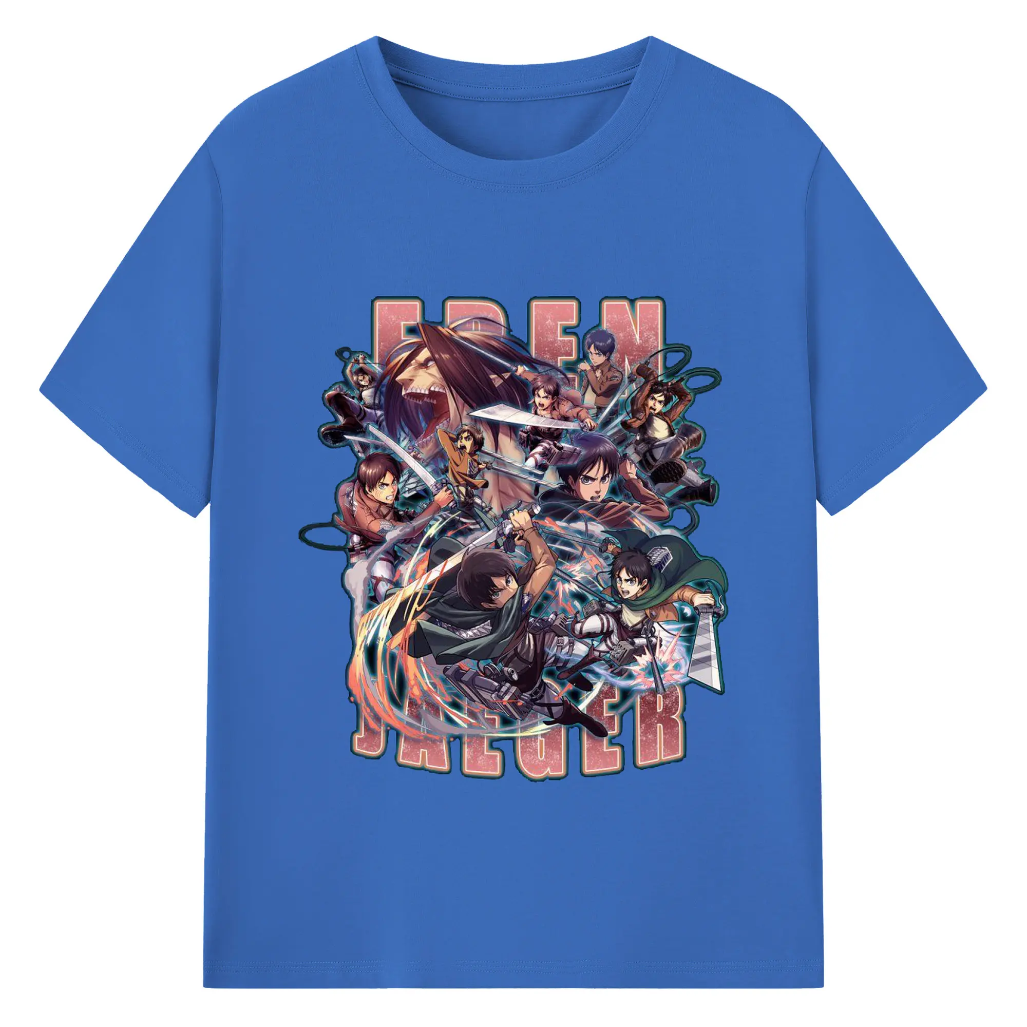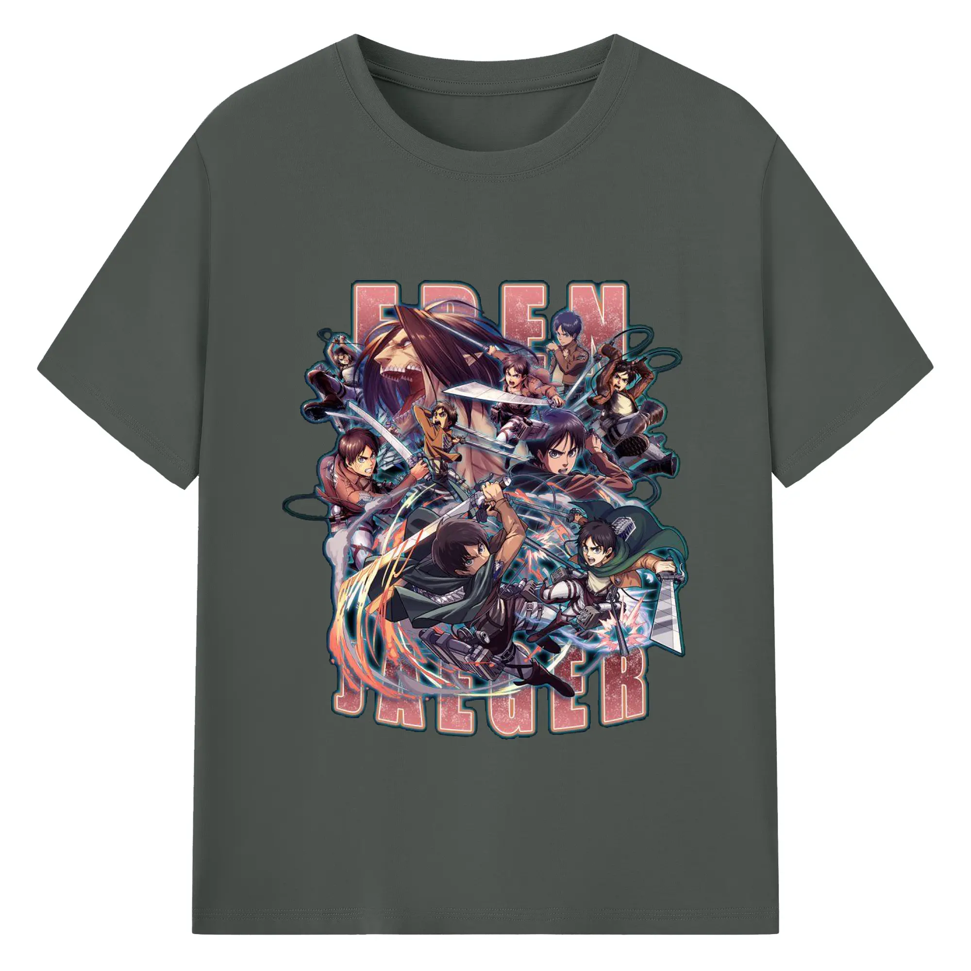 進撃の巨人 エレン - 綿100% ヴィンテージ風 半袖Tシャツ ・ フロントプリント ・ 柔らか肌触り ・ 通気性 快適 ・ スポーツ カジュアル 外出用