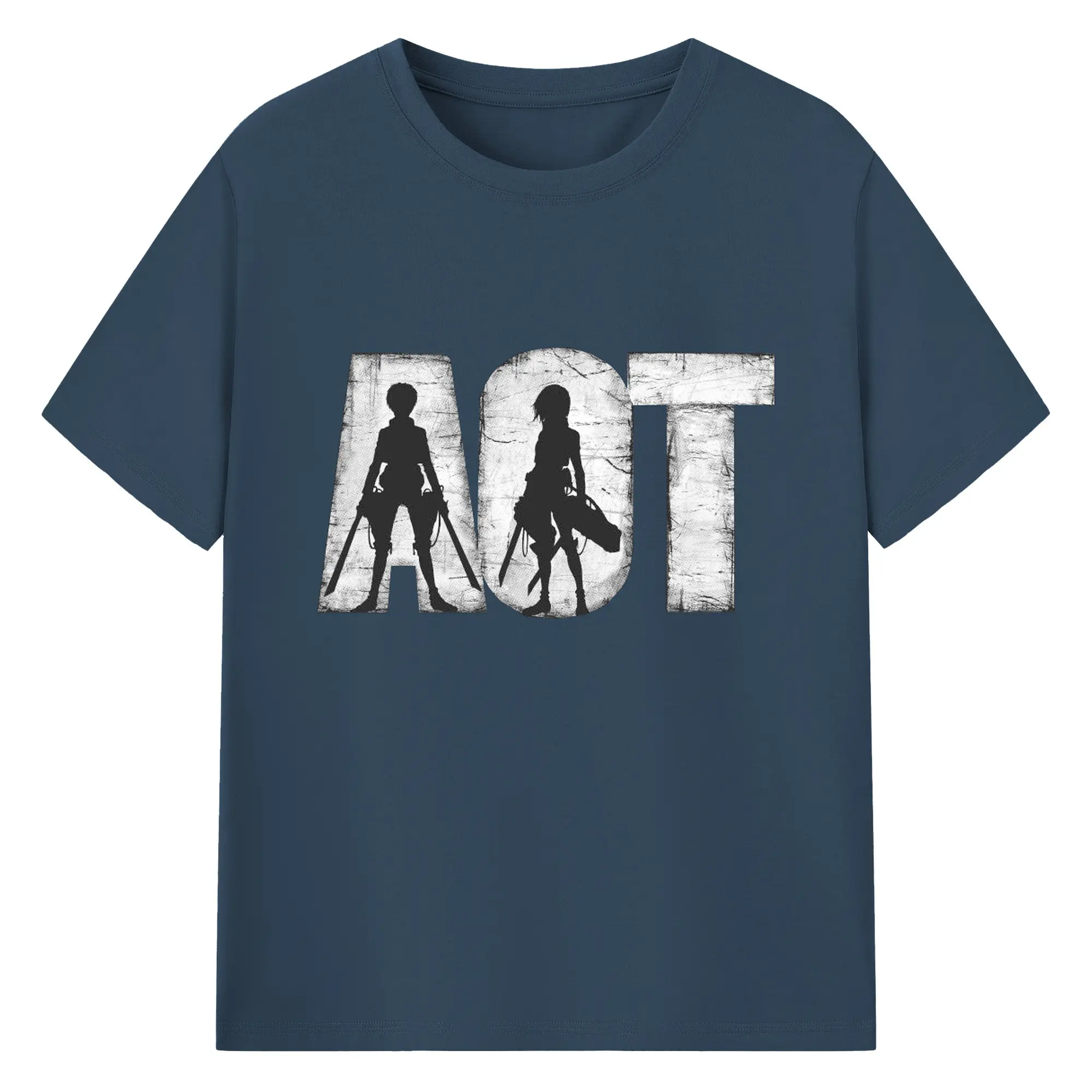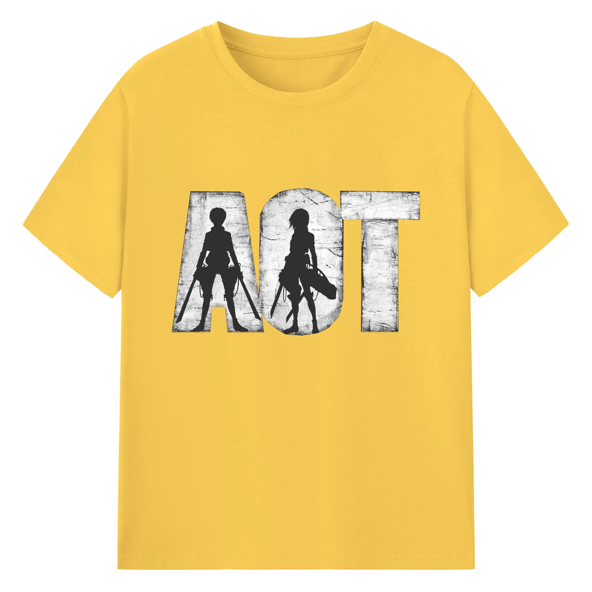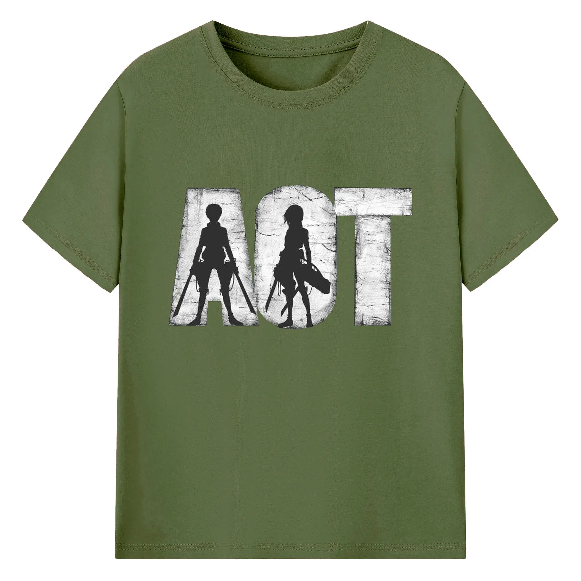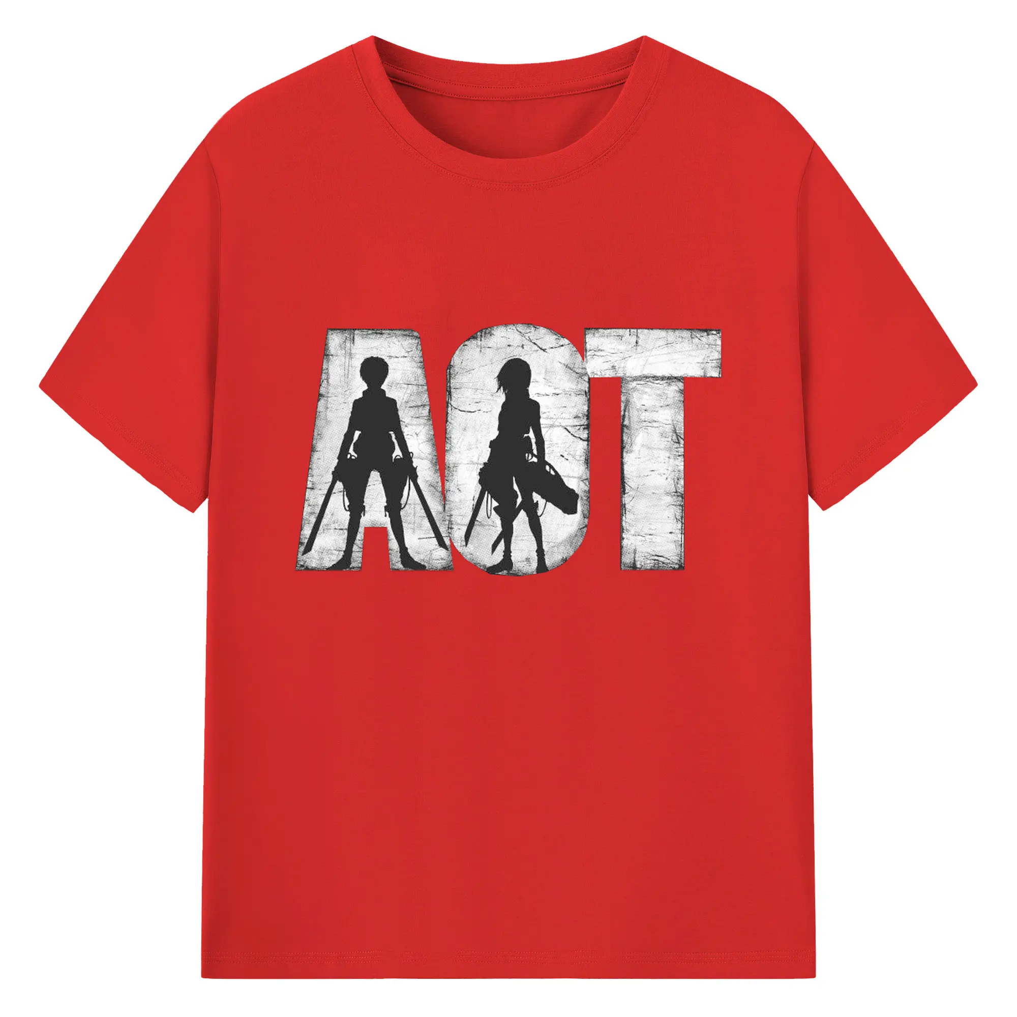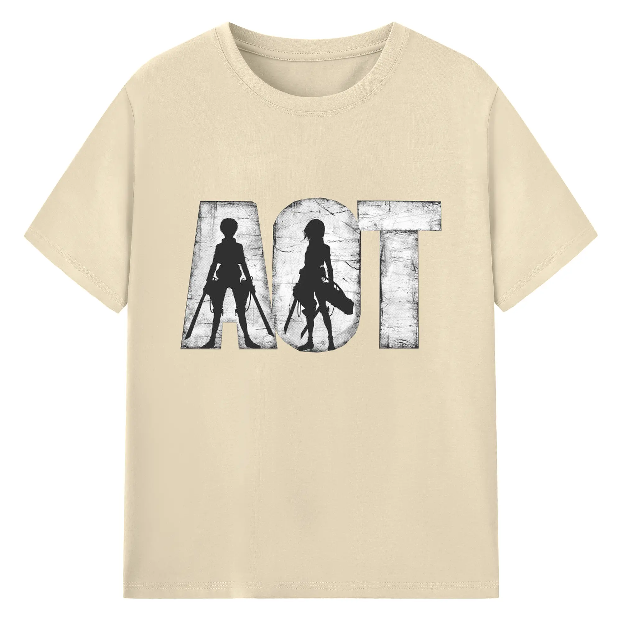 進撃の巨人 エレンミカサ - 綿100% ヴィンテージ風 半袖Tシャツ ・ フロントプリント ・ 柔らか肌触り ・ 通気性 快適 ・ スポーツ カジュアル 外出用