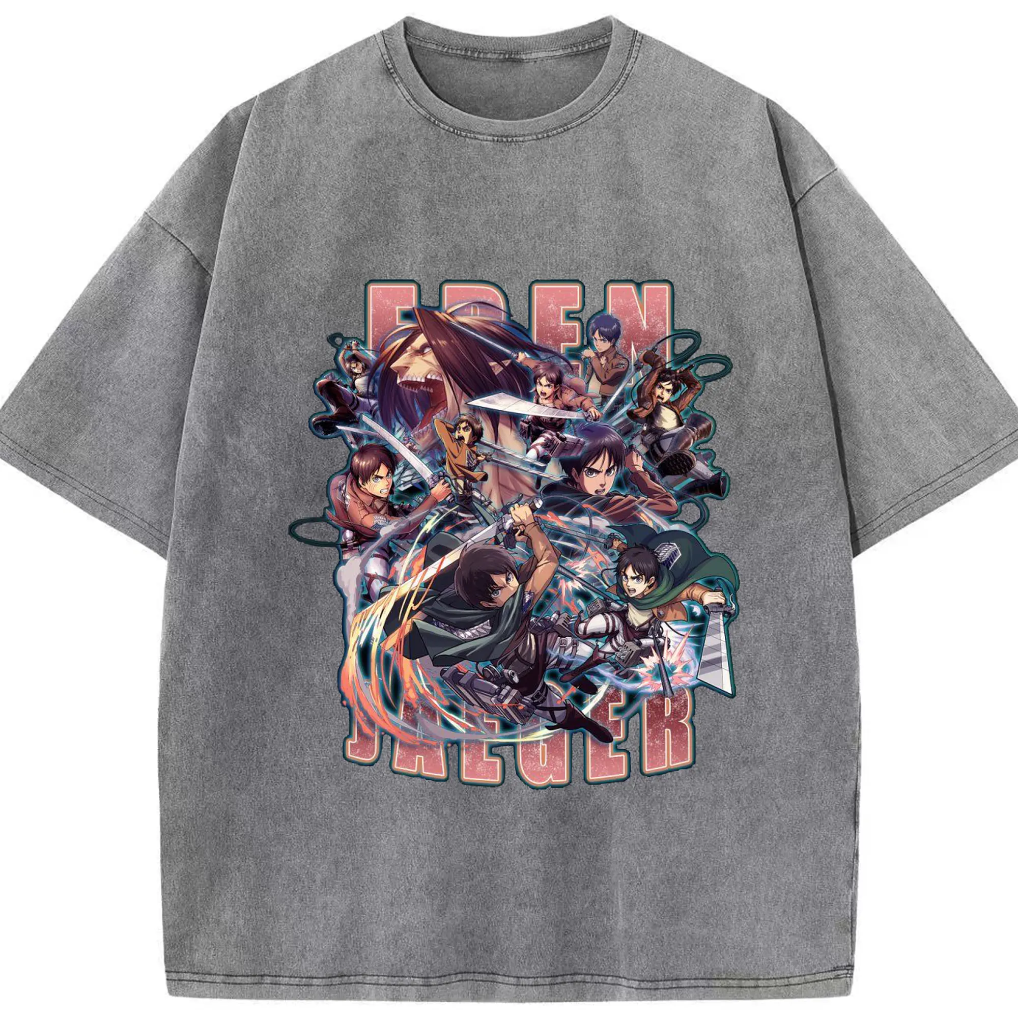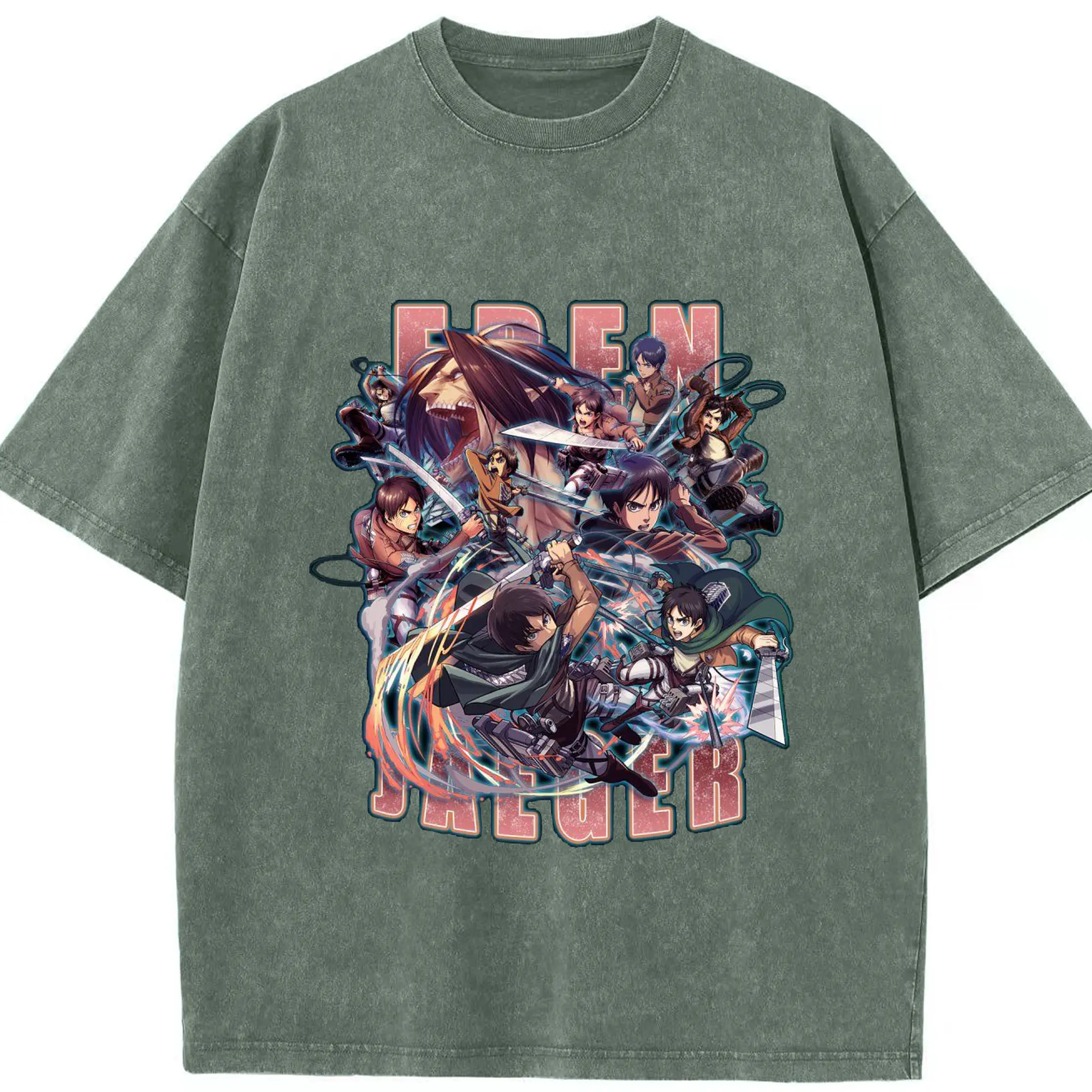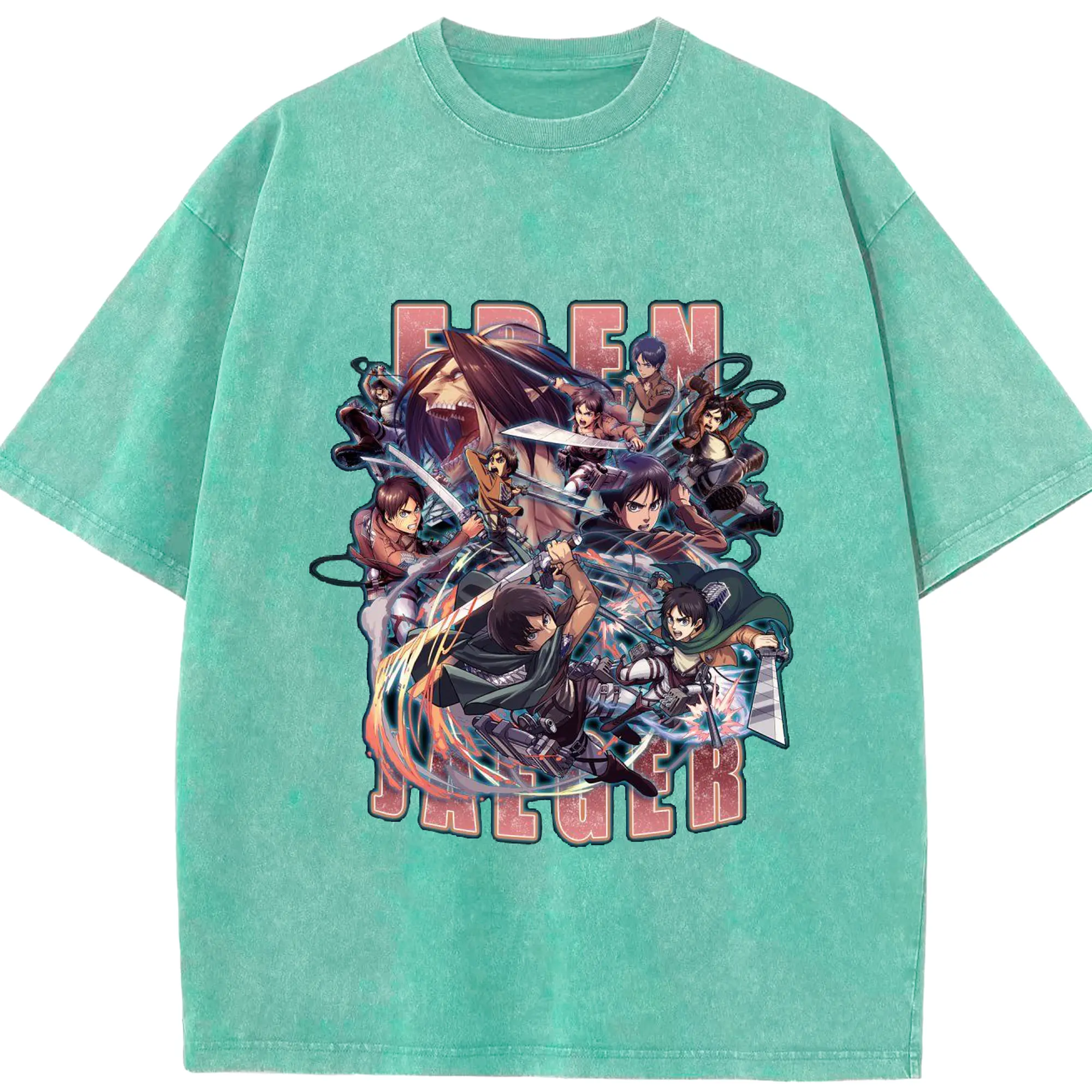 進撃の巨人 エレン - 綿100% 半袖Tシャツ ・ フロントプリント ・ 快適 通気性 ・ 日常使い 散歩 スポーツ用
