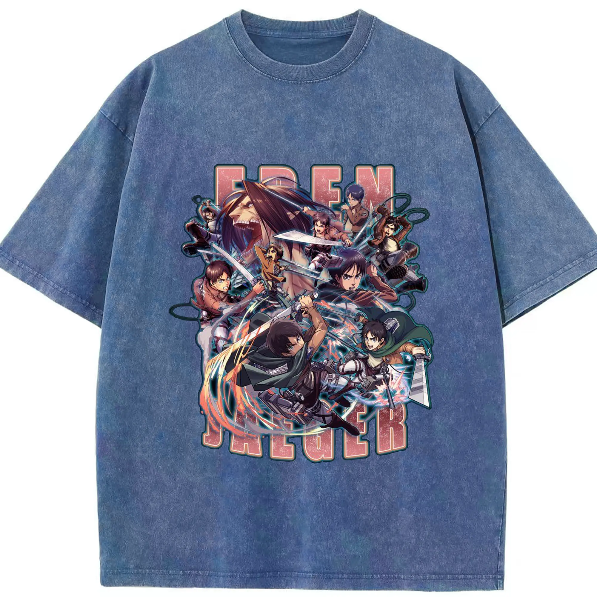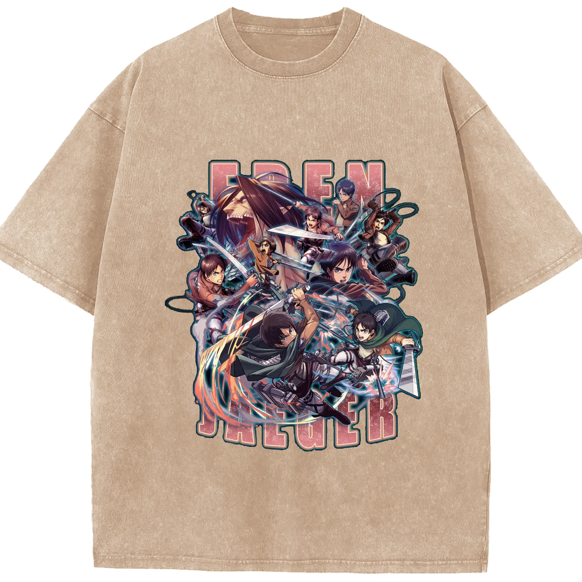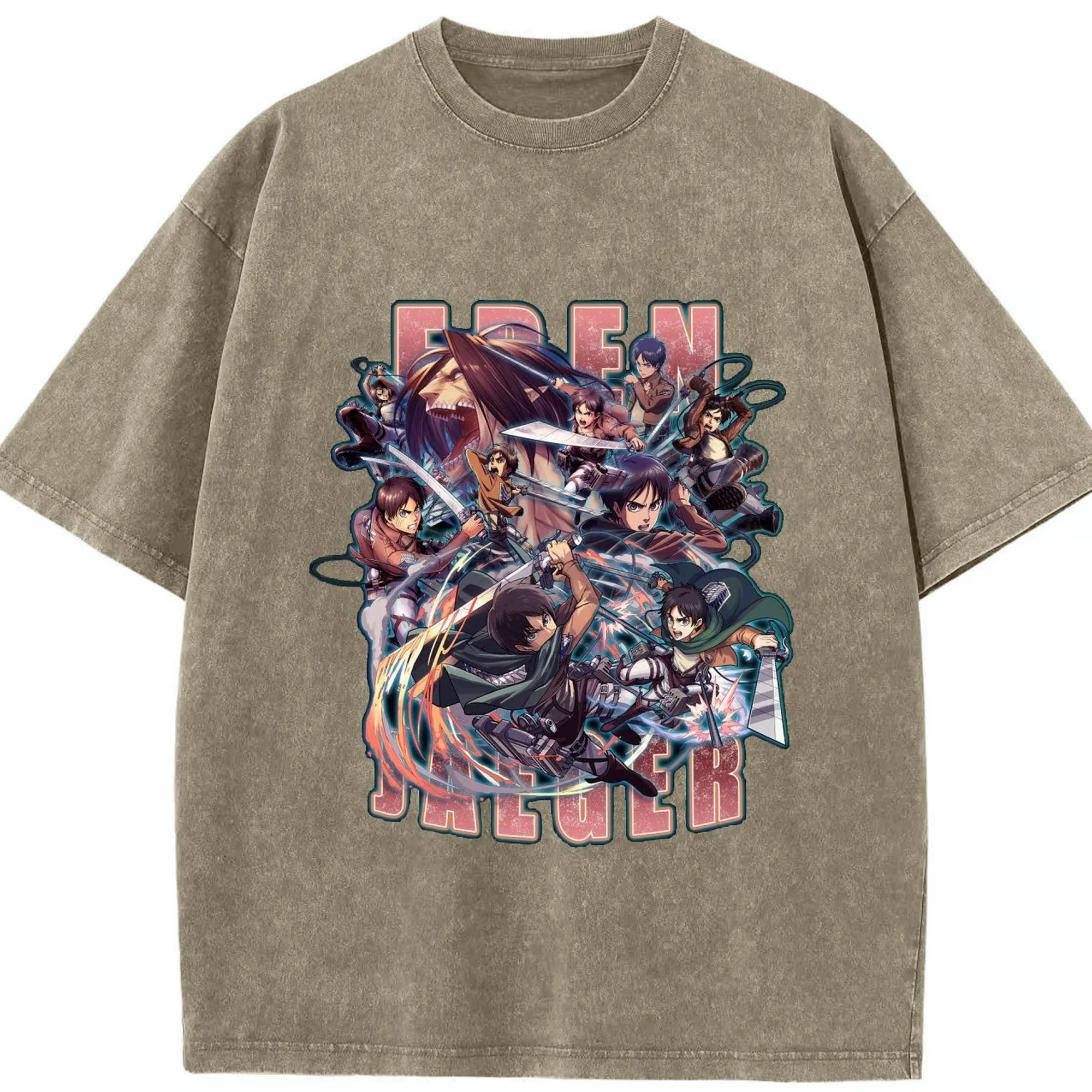 進撃の巨人 エレン - 綿100% 半袖Tシャツ ・ フロントプリント ・ 快適 通気性 ・ 日常使い 散歩 スポーツ用
