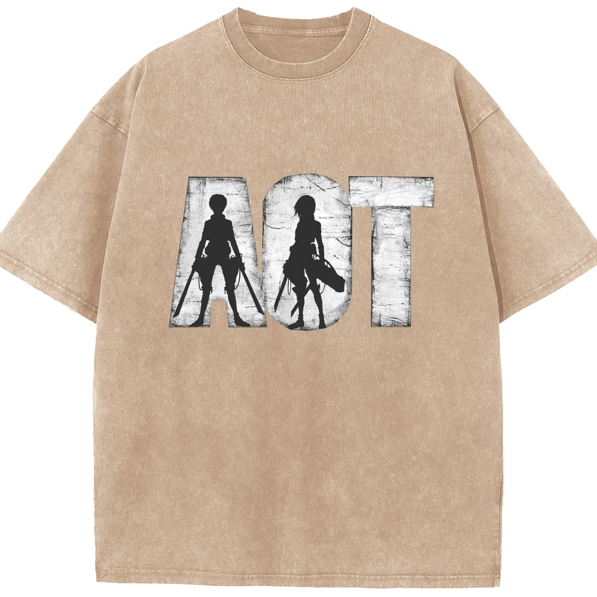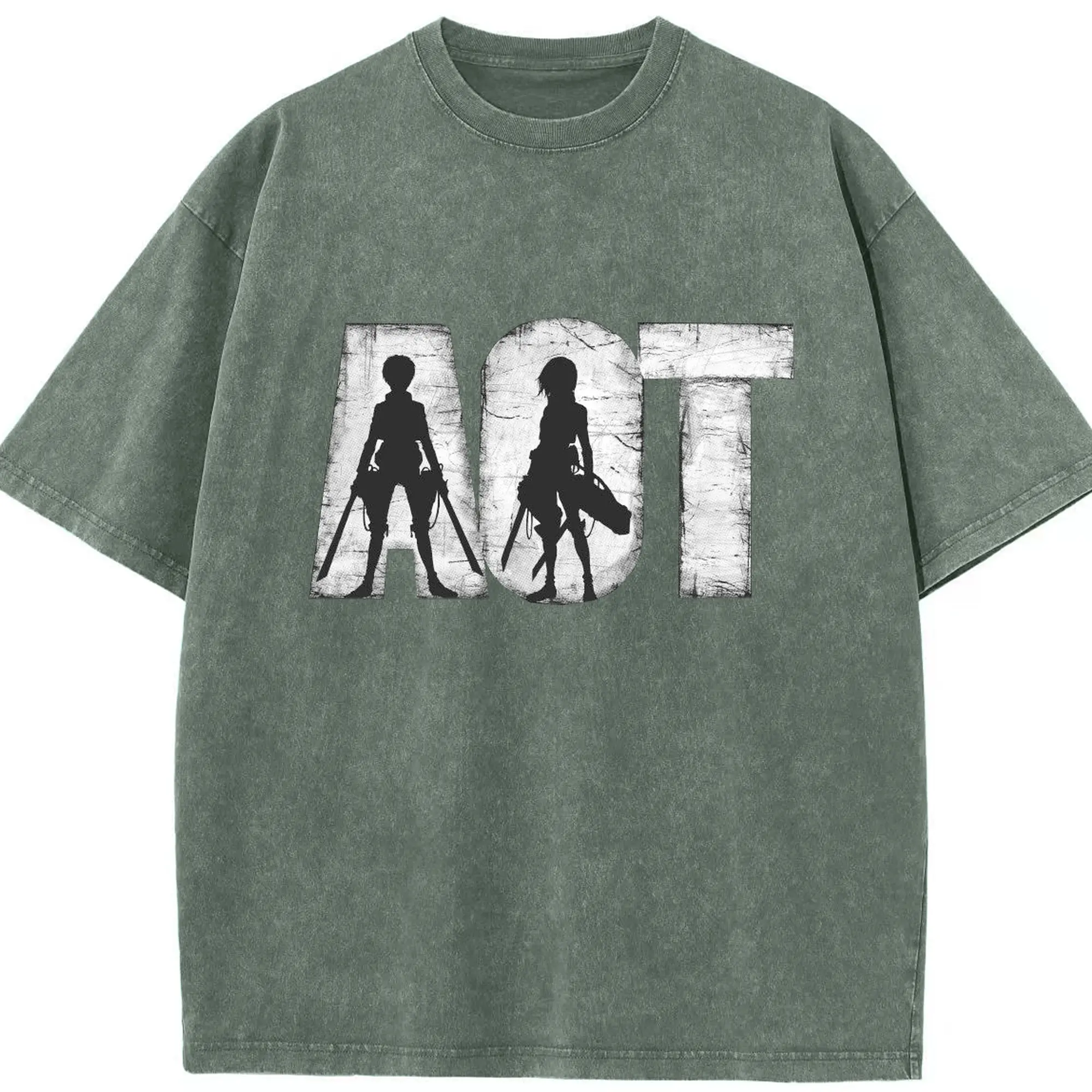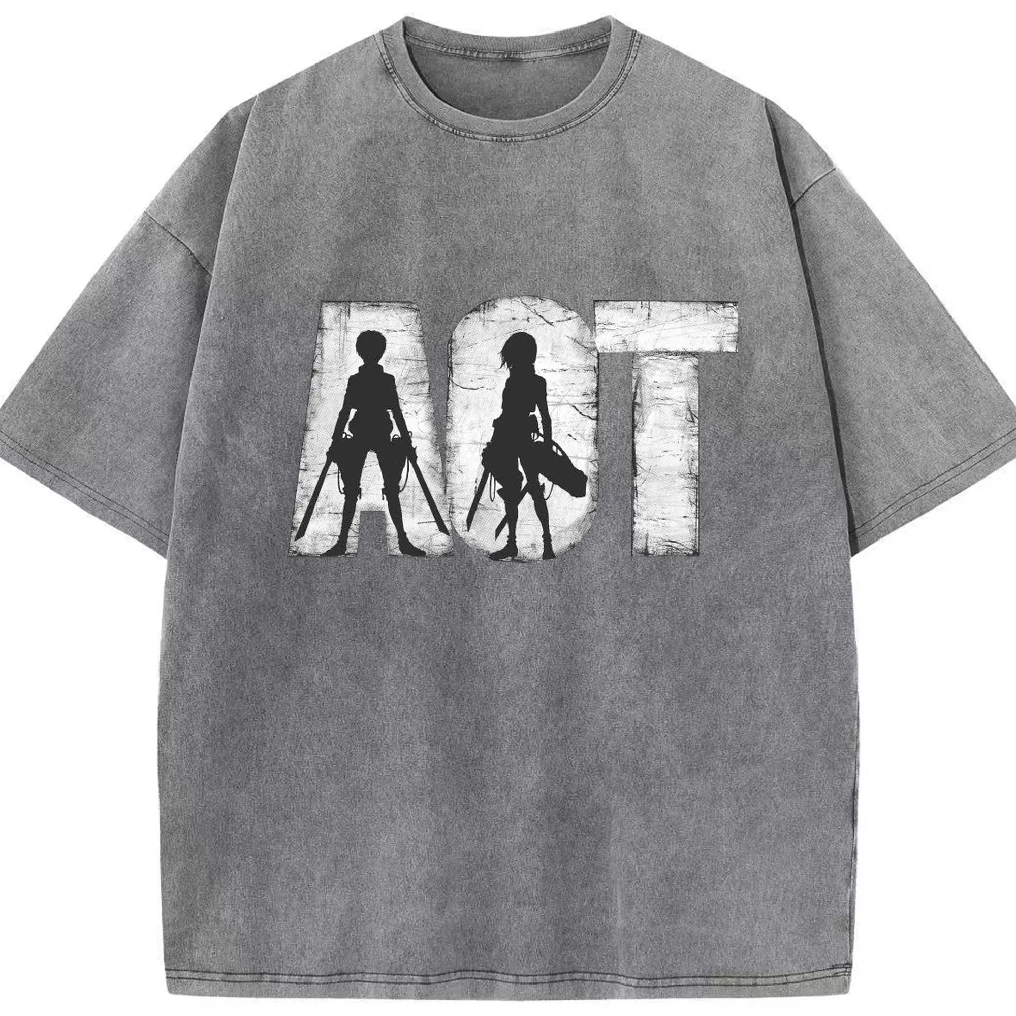 進撃の巨人 エレンミカサ - 綿100% 半袖Tシャツ ・ フロントプリント ・ 快適 通気性 ・ 日常使い 散歩 スポーツ用