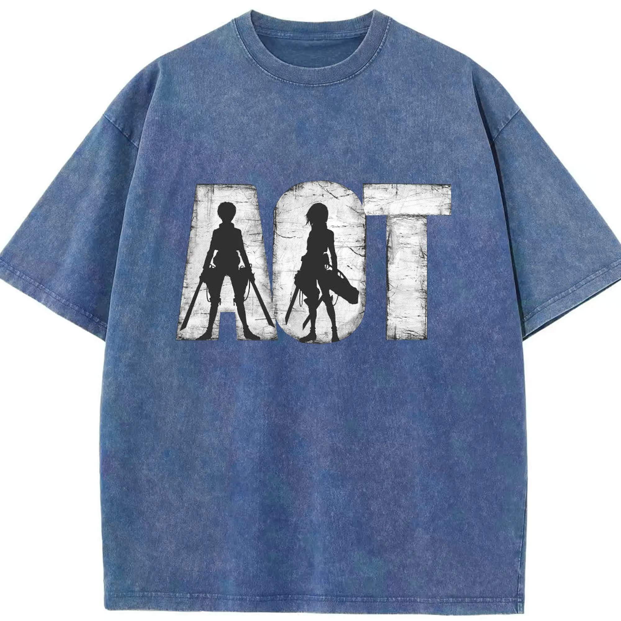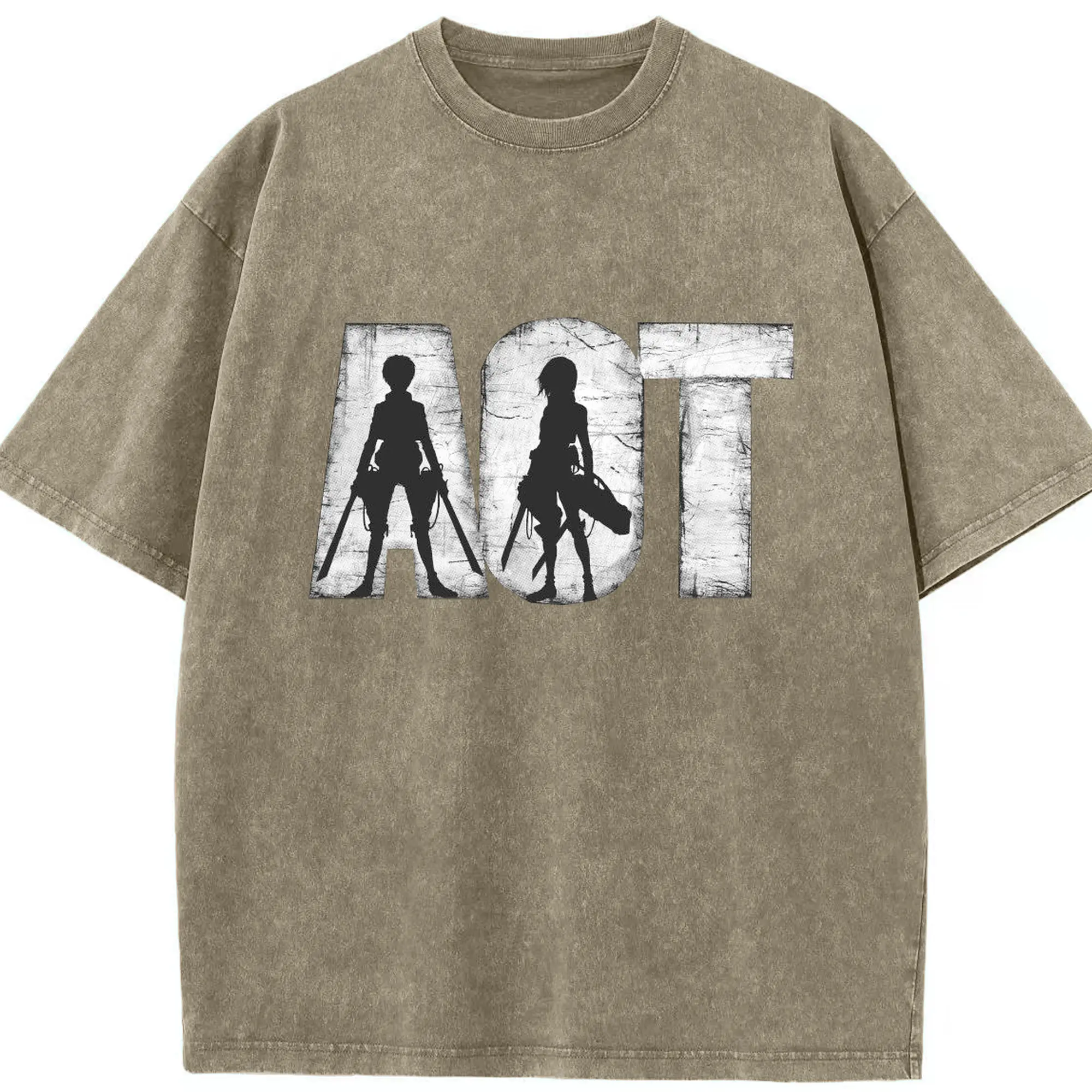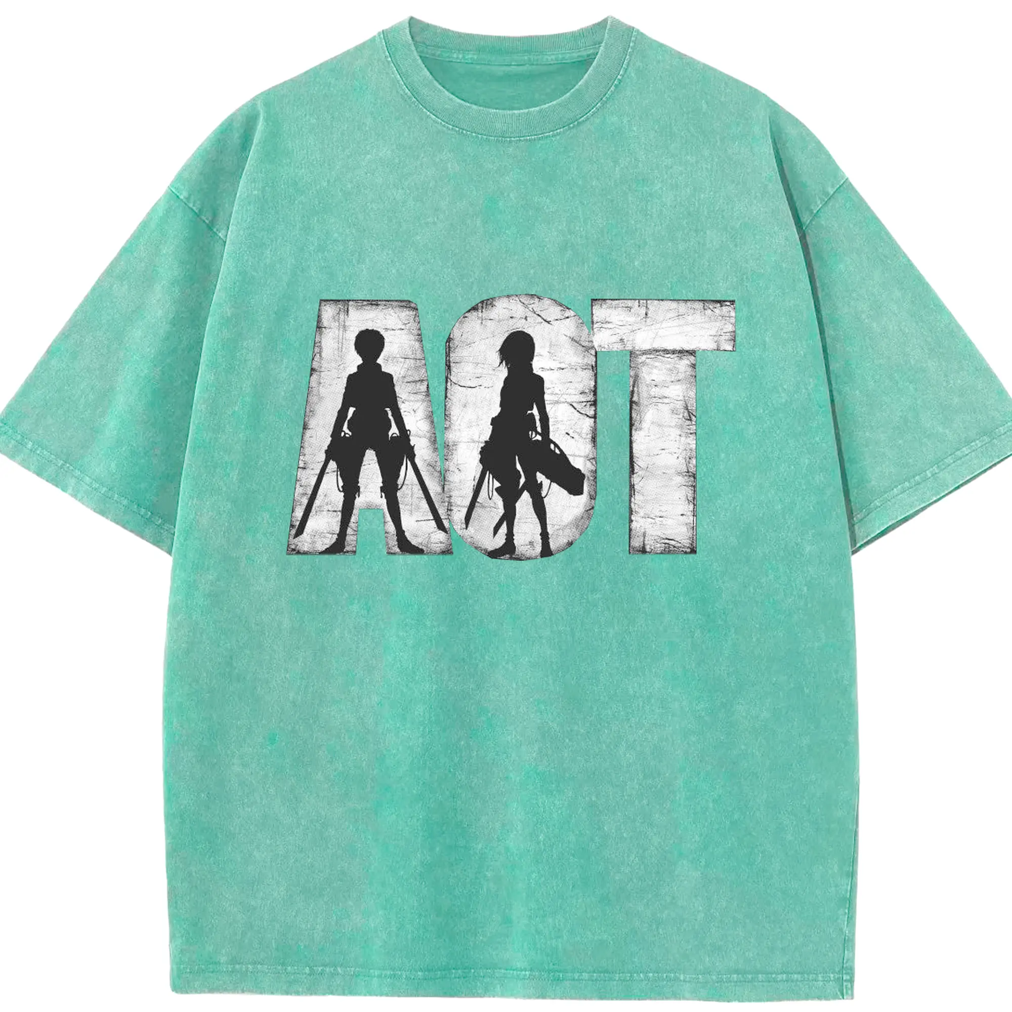 進撃の巨人 エレンミカサ - 綿100% 半袖Tシャツ ・ フロントプリント ・ 快適 通気性 ・ 日常使い 散歩 スポーツ用