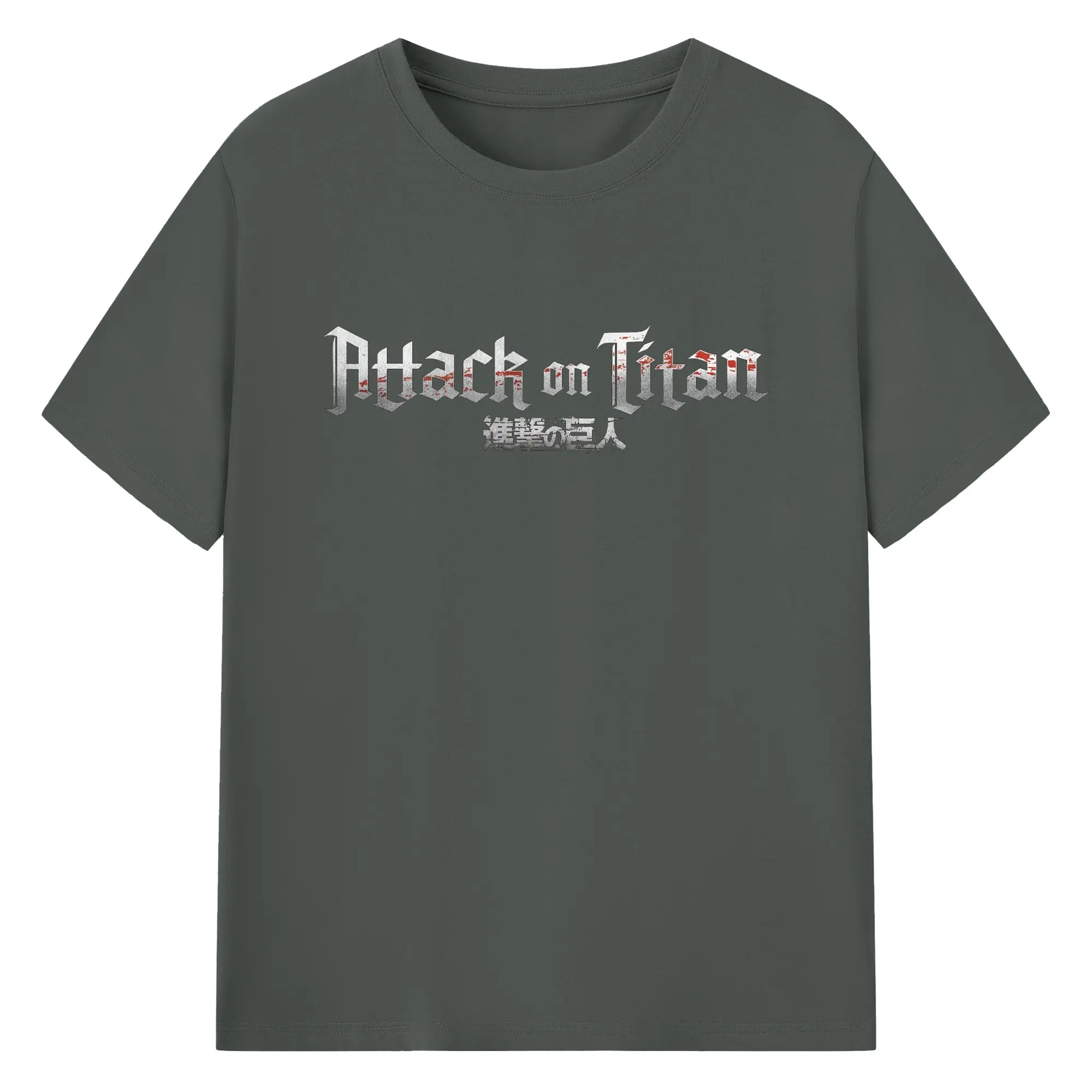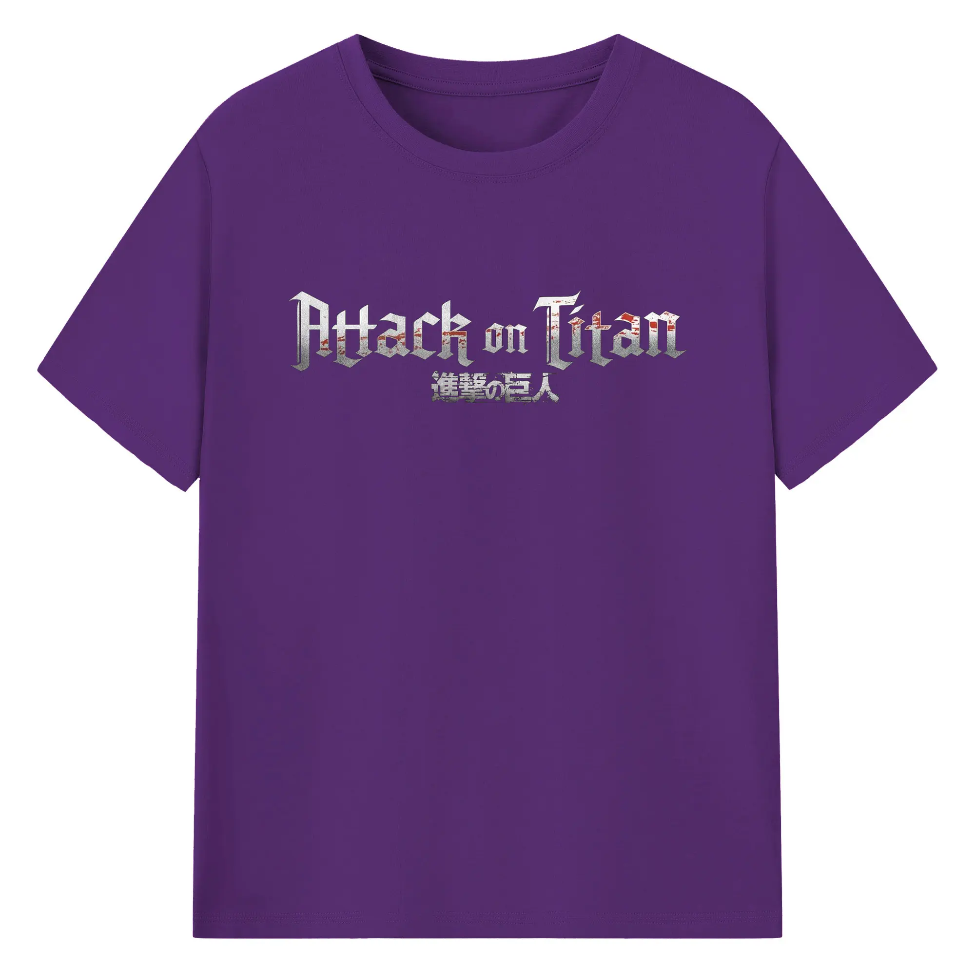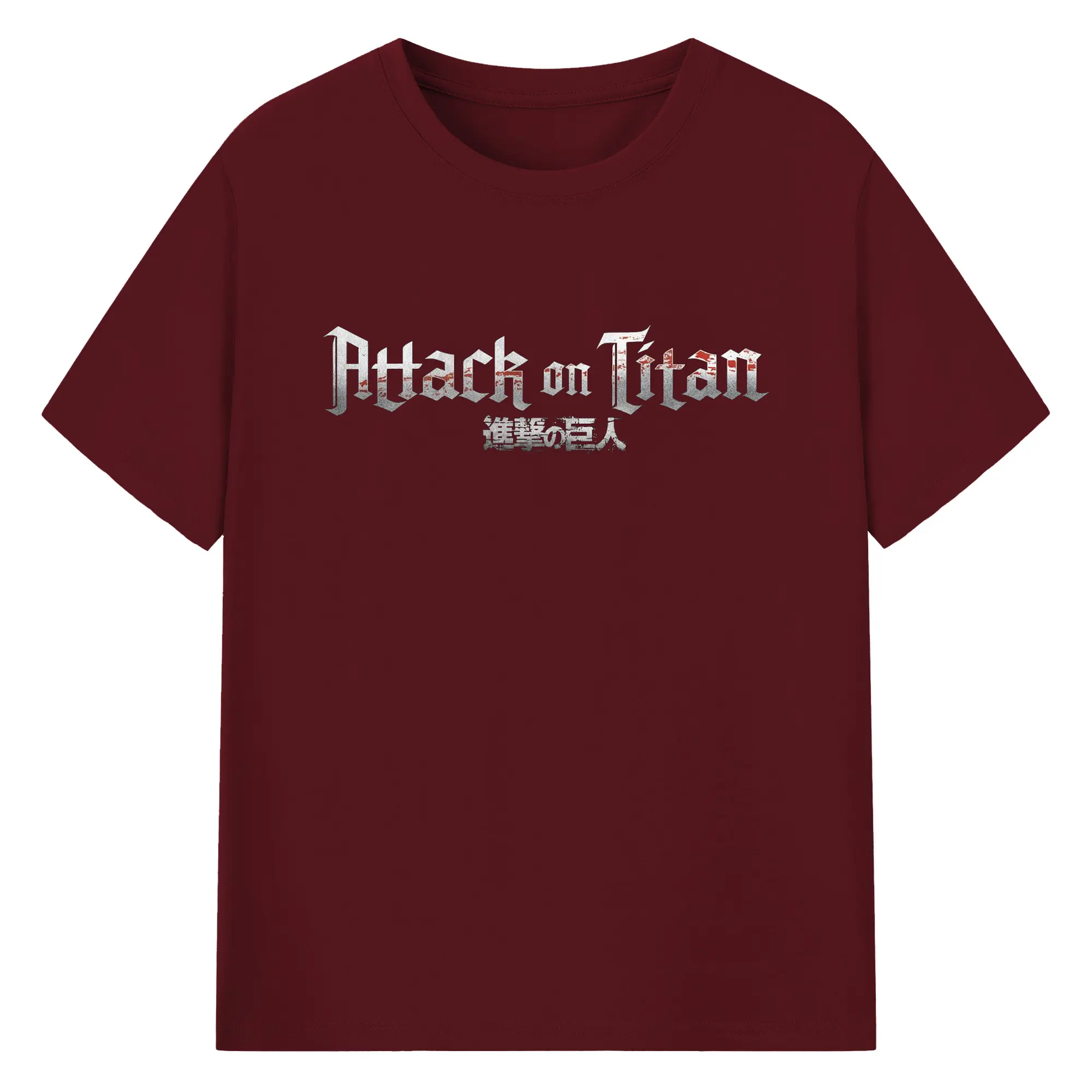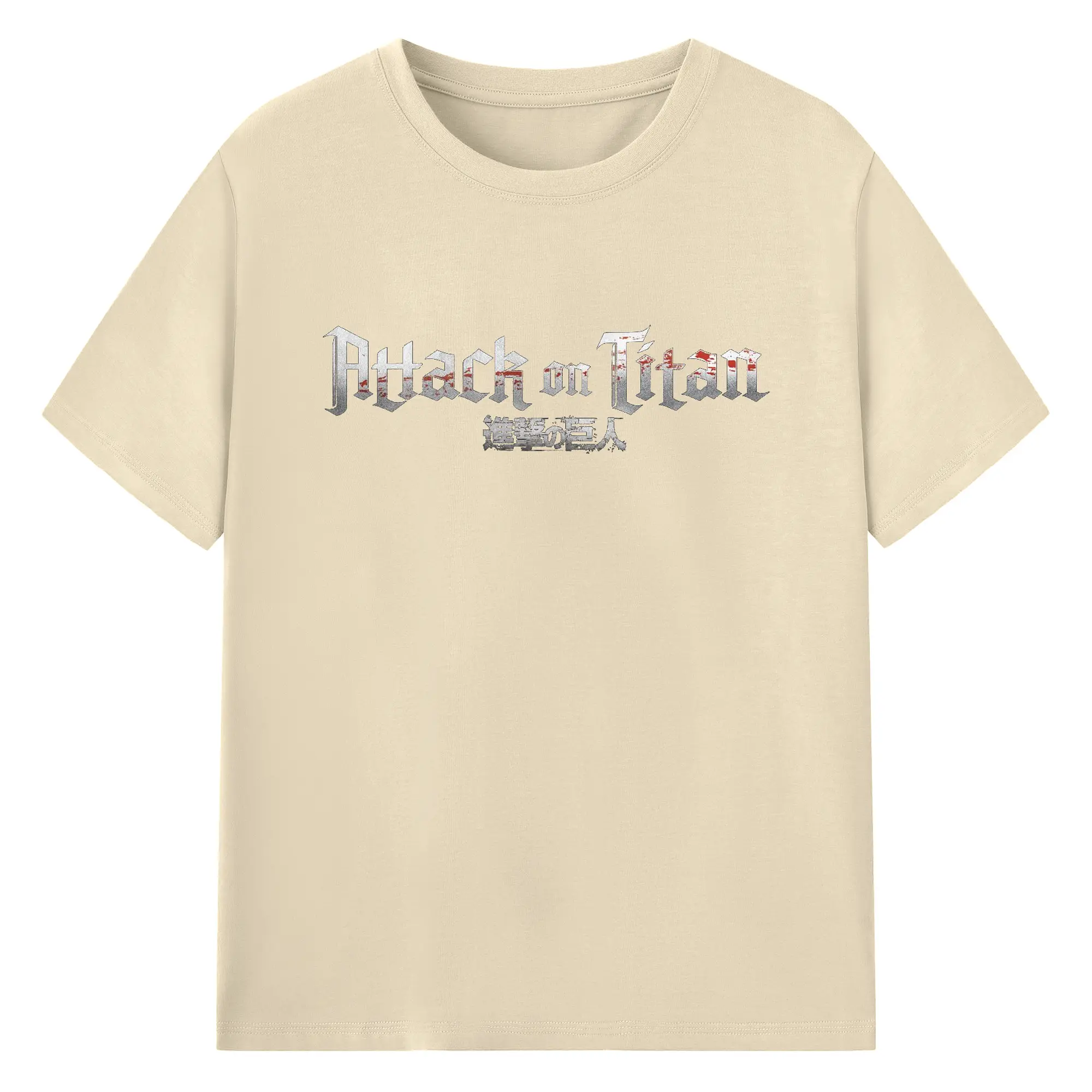 進撃の巨人 シンプルロゴ - 綿100% ヴィンテージ風 半袖Tシャツ ・ フロントプリント ・ 柔らか肌触り ・ 通気性 快適 ・ スポーツ カジュアル 外出用