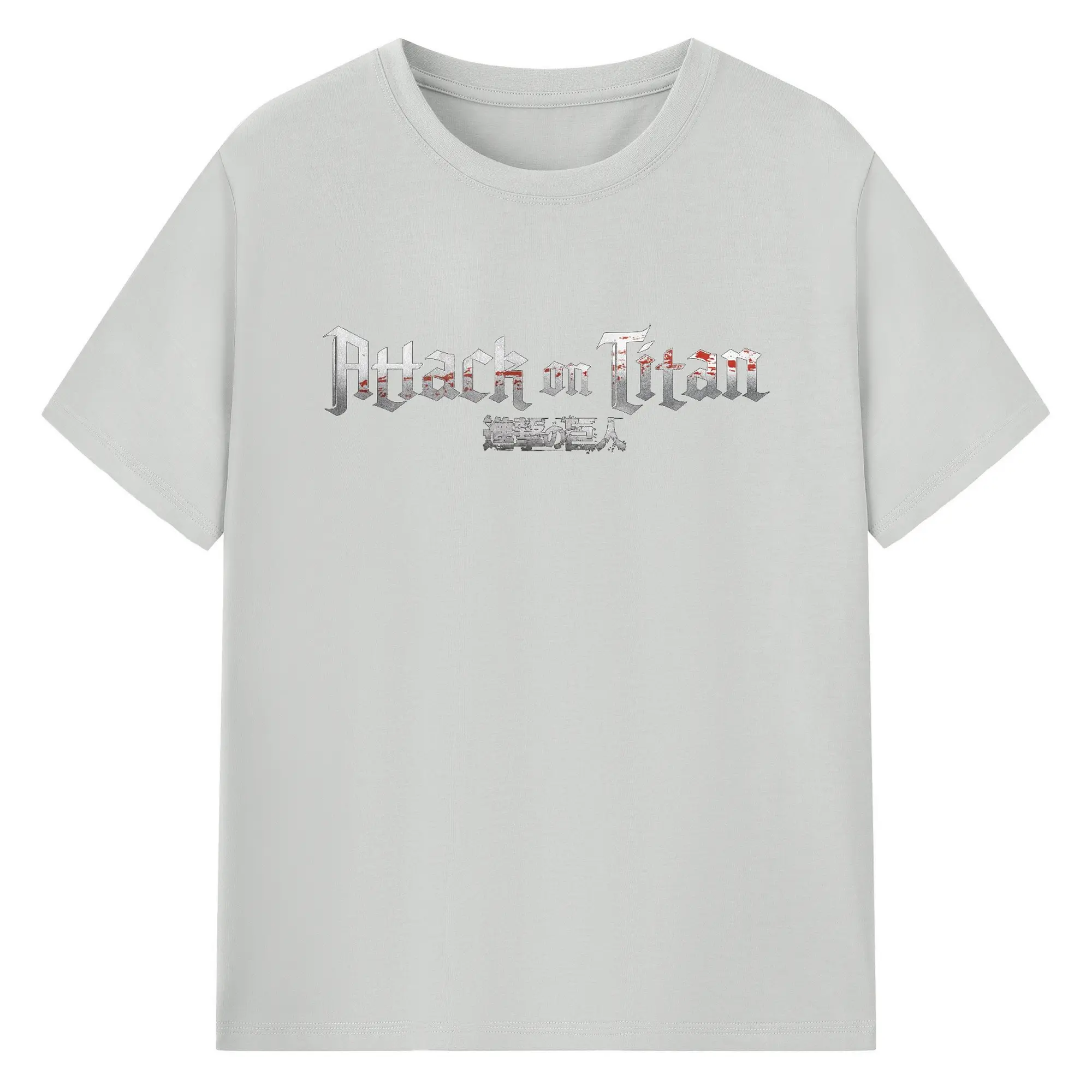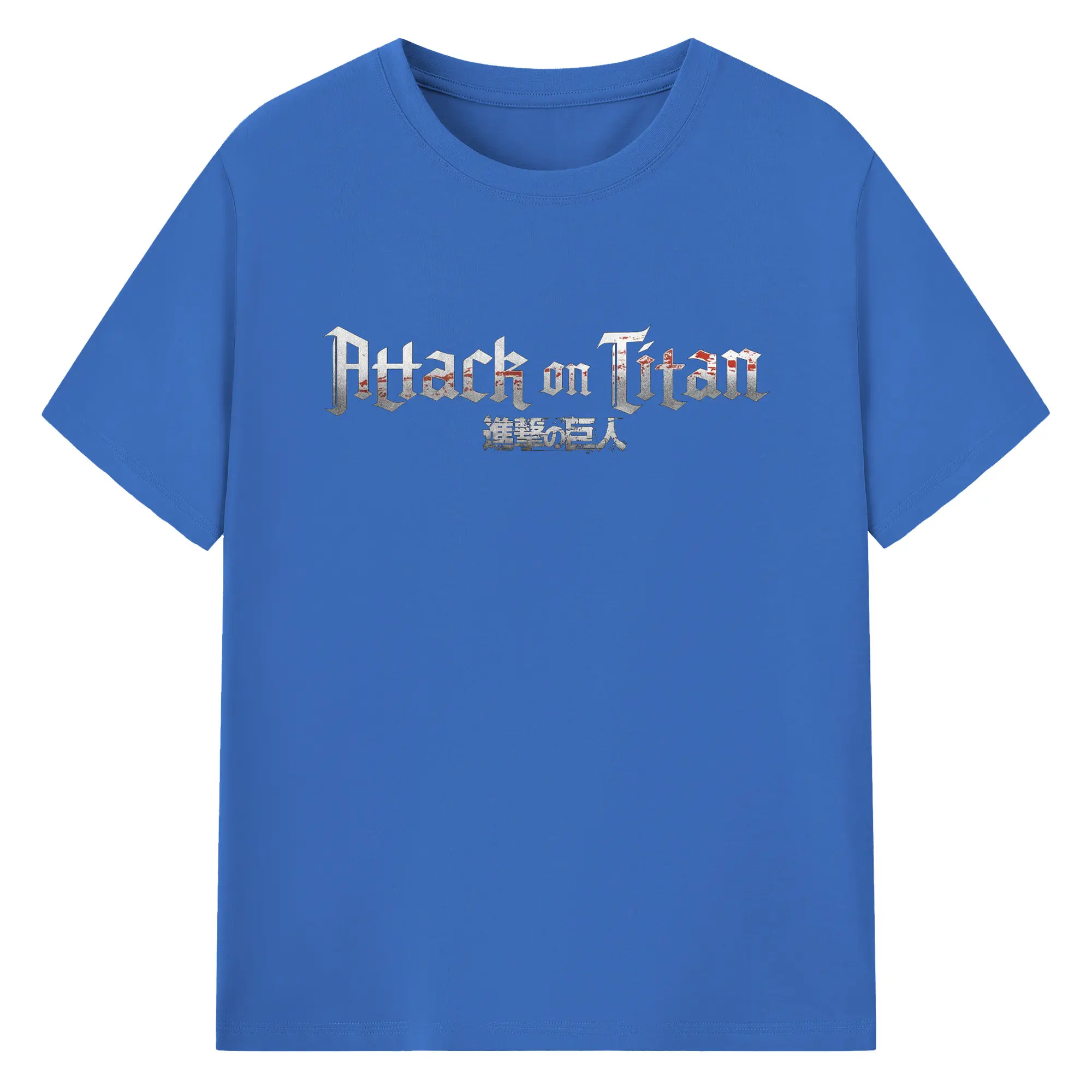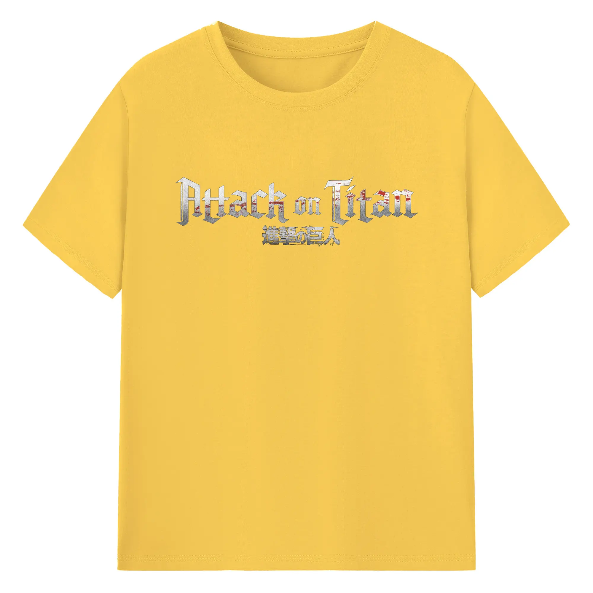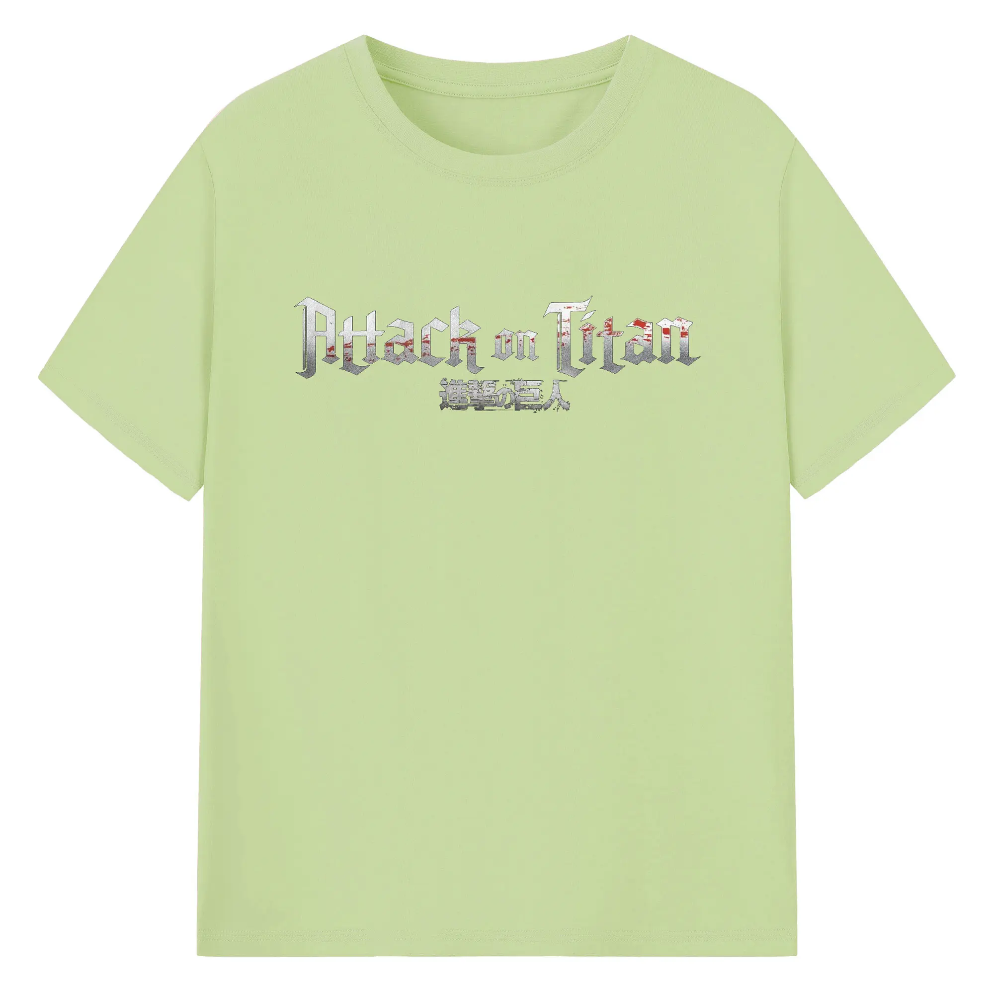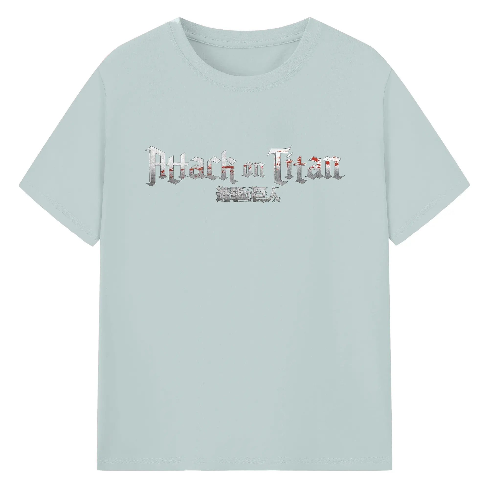 進撃の巨人 シンプルロゴ - 綿100% ヴィンテージ風 半袖Tシャツ ・ フロントプリント ・ 柔らか肌触り ・ 通気性 快適 ・ スポーツ カジュアル 外出用