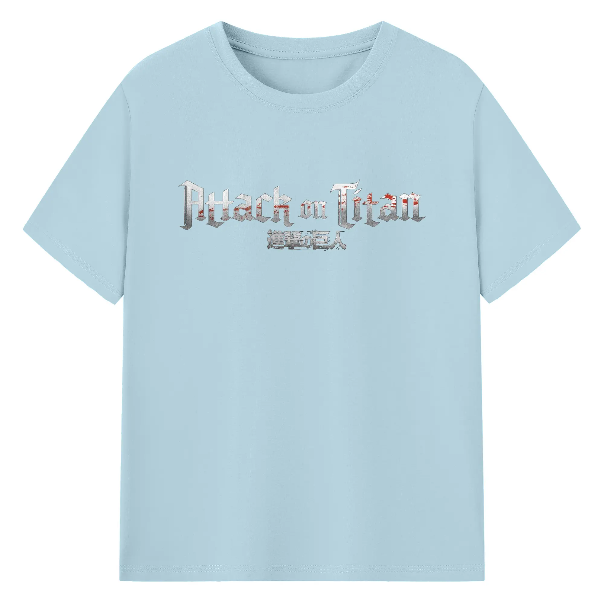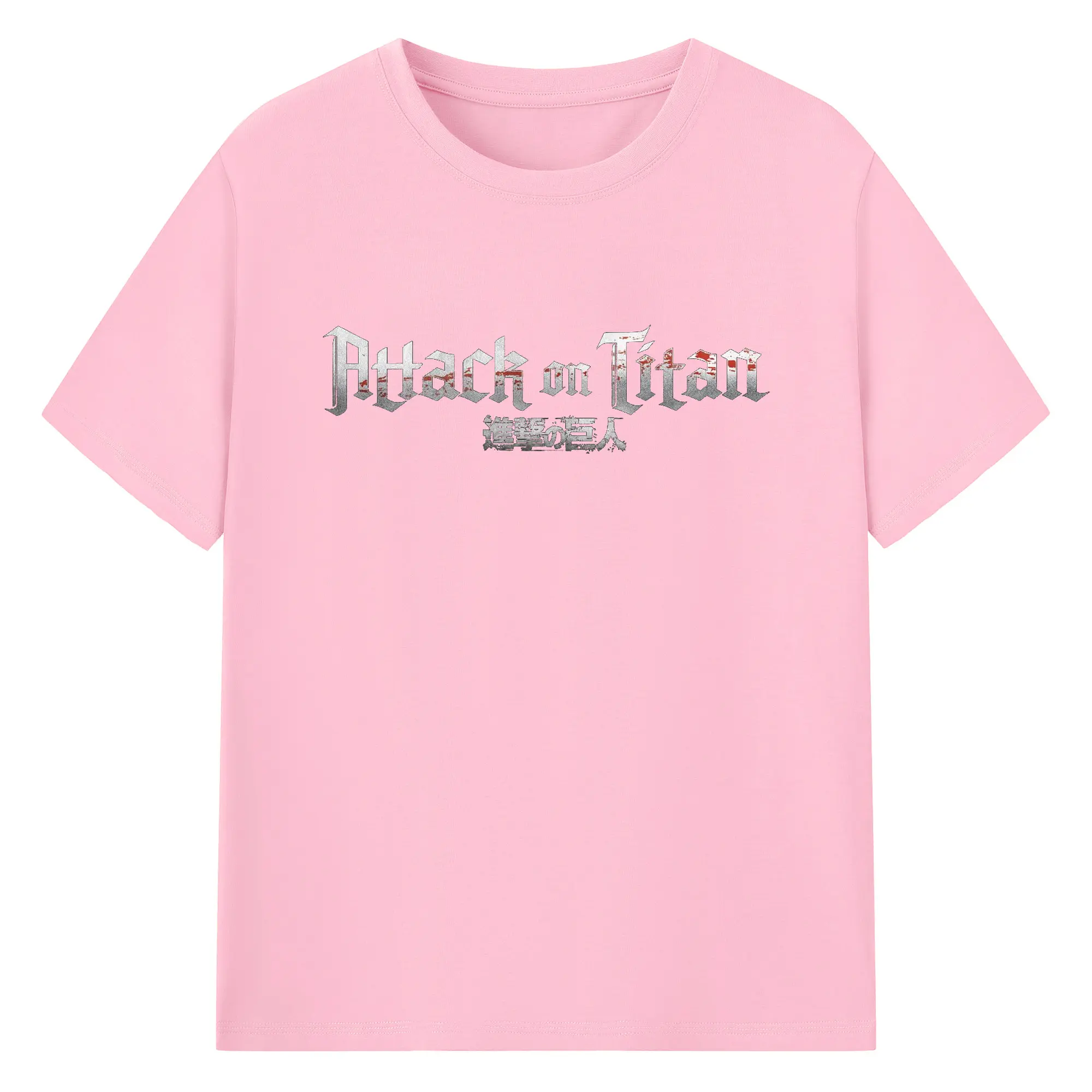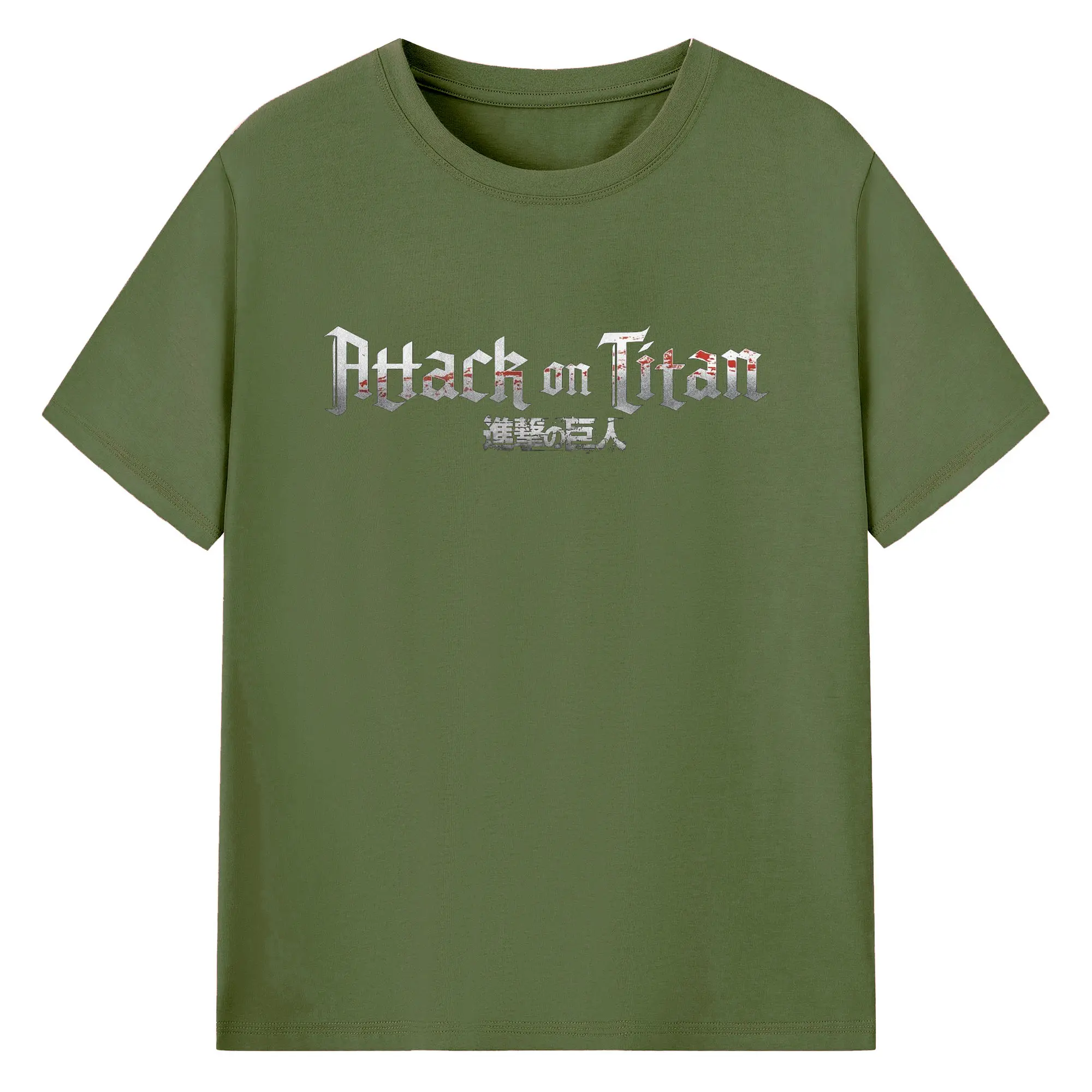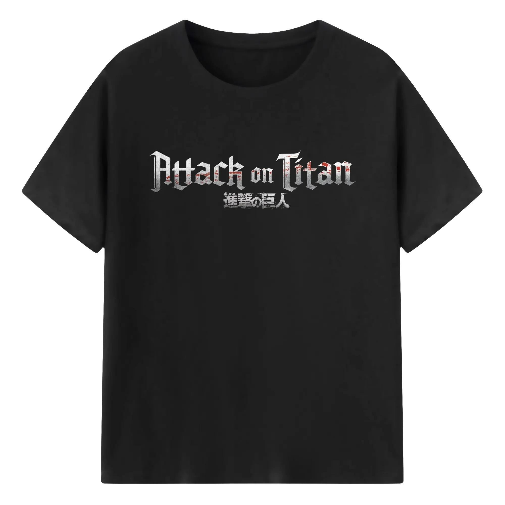 進撃の巨人 シンプルロゴ - 綿100% ヴィンテージ風 半袖Tシャツ ・ フロントプリント ・ 柔らか肌触り ・ 通気性 快適 ・ スポーツ カジュアル 外出用