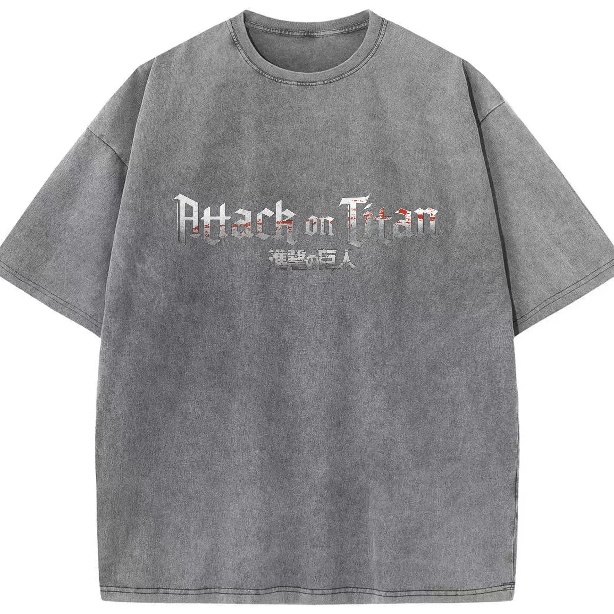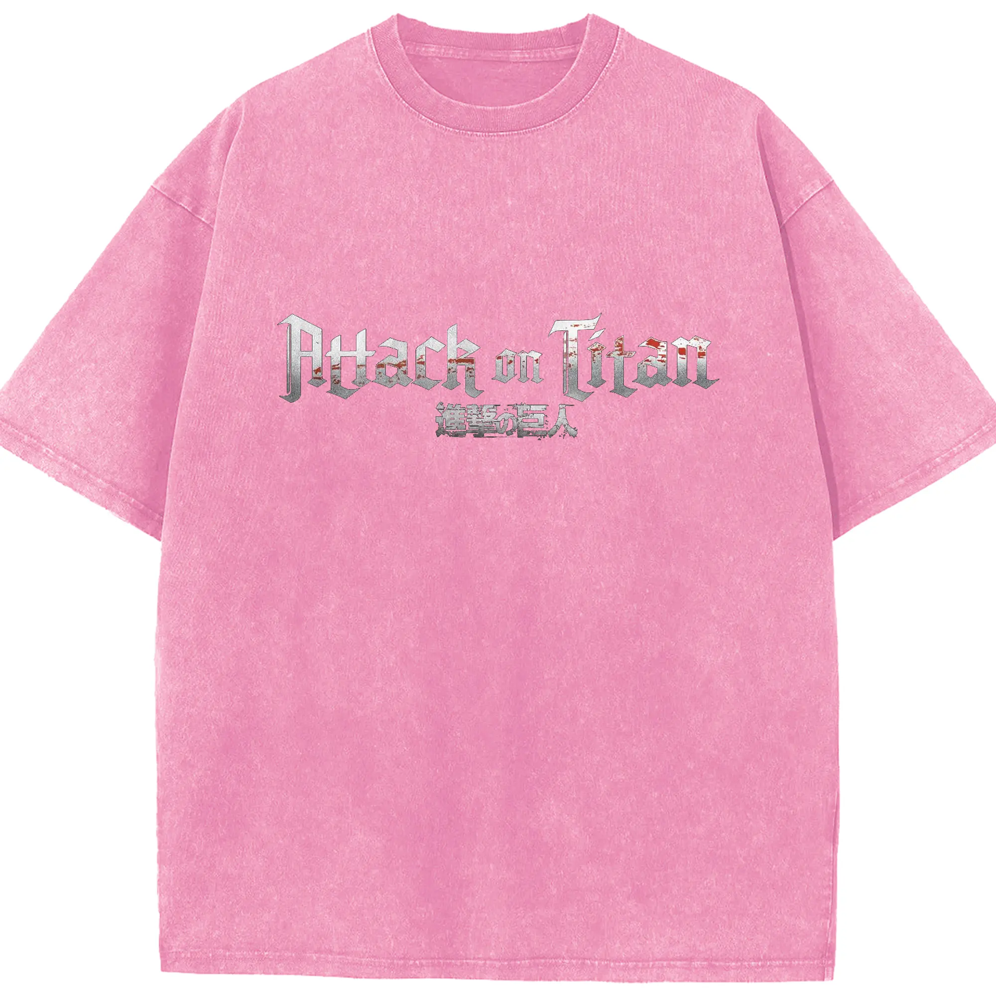 進撃の巨人 シンプルロゴ - 綿100% 半袖Tシャツ ・ フロントプリント ・ 快適 通気性 ・ 日常使い 散歩 スポーツ用