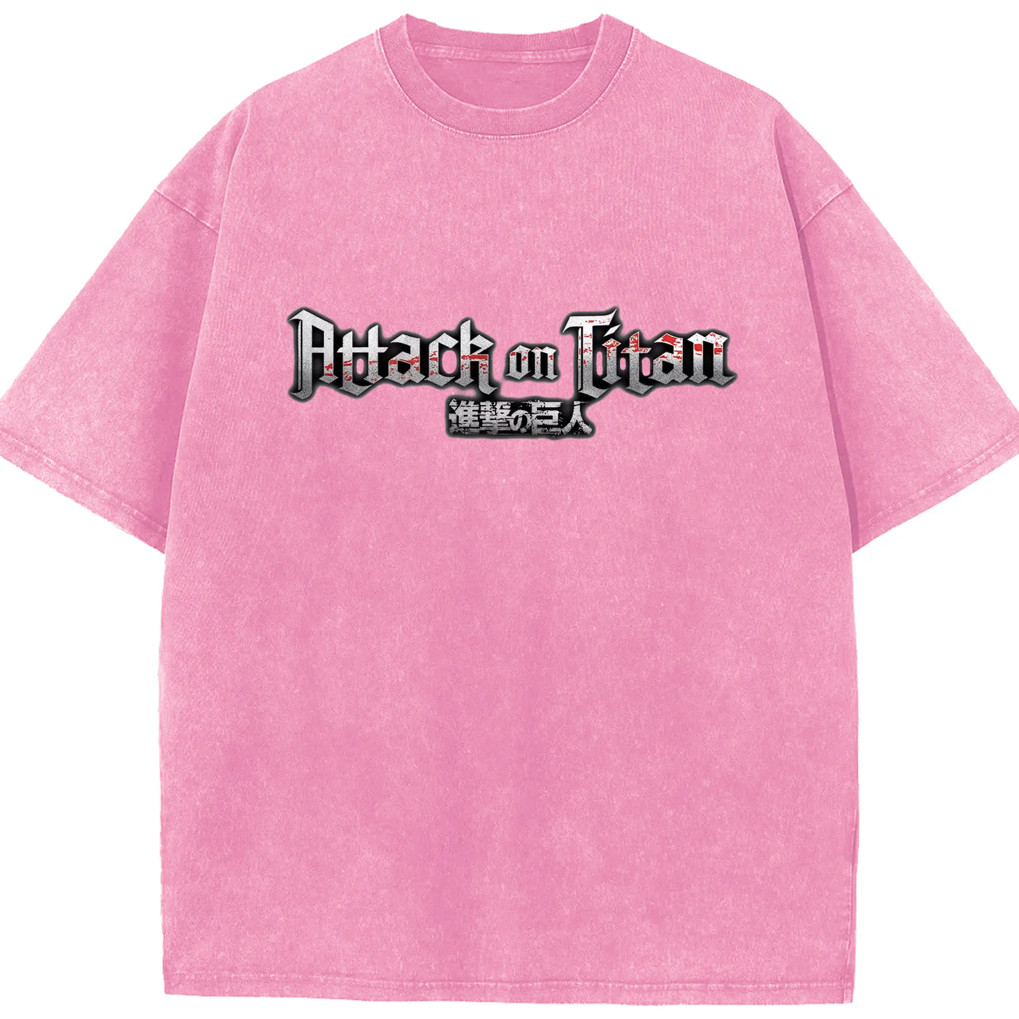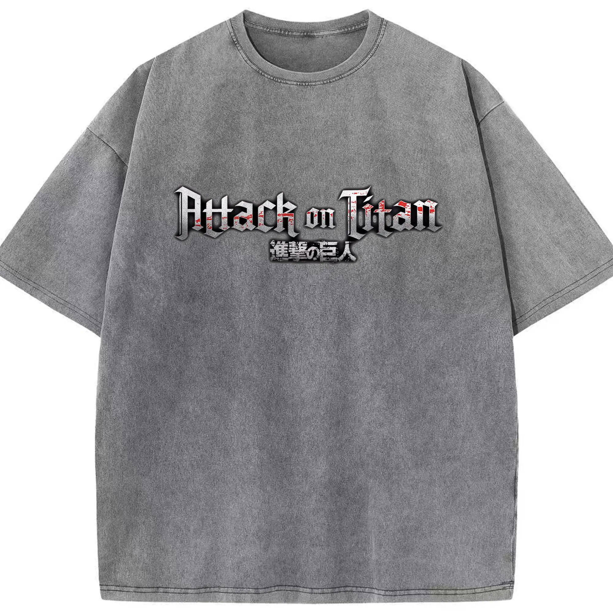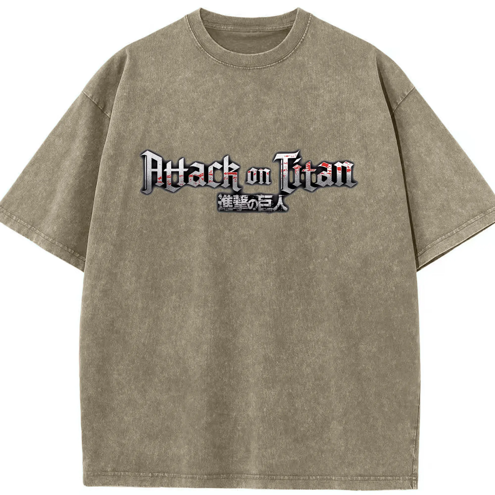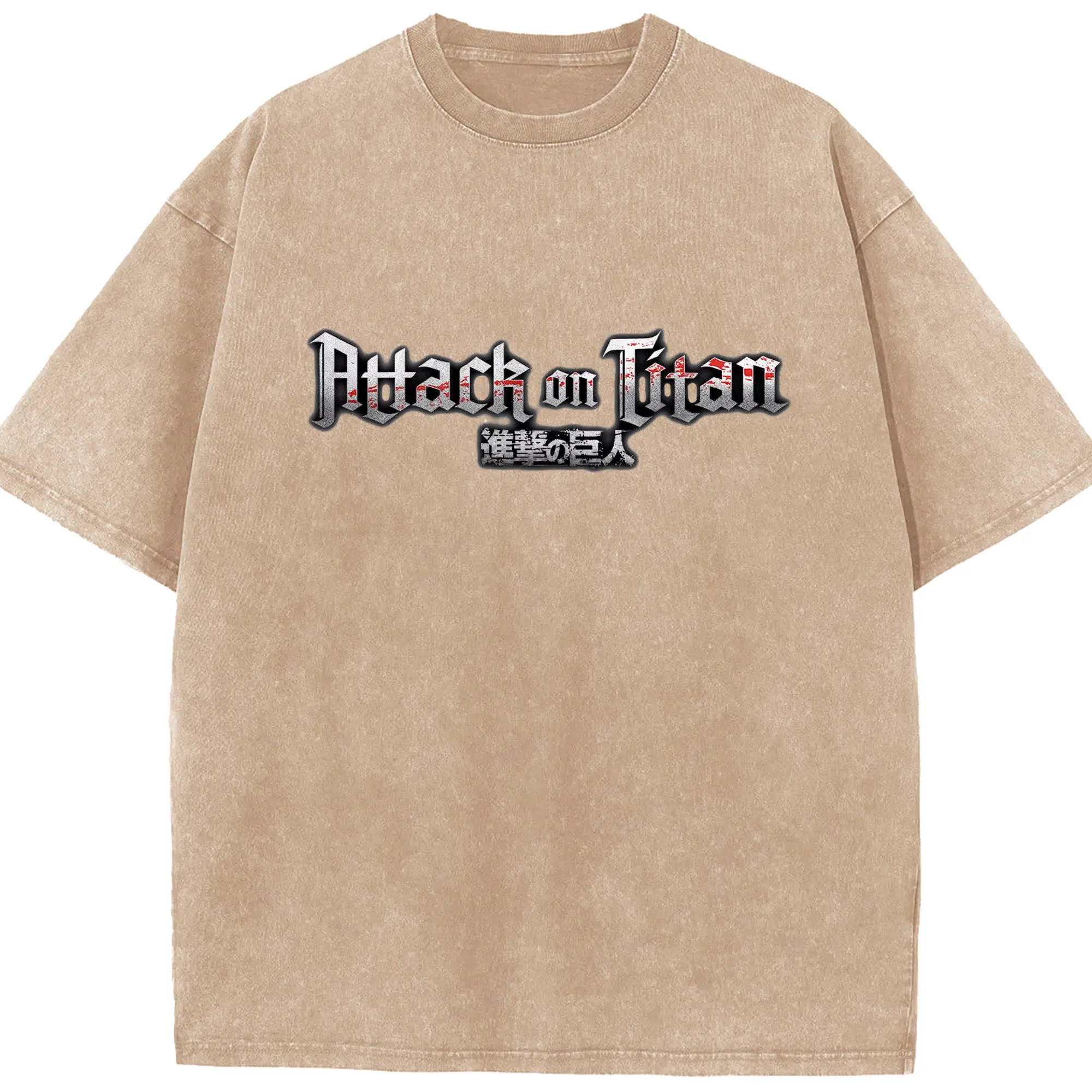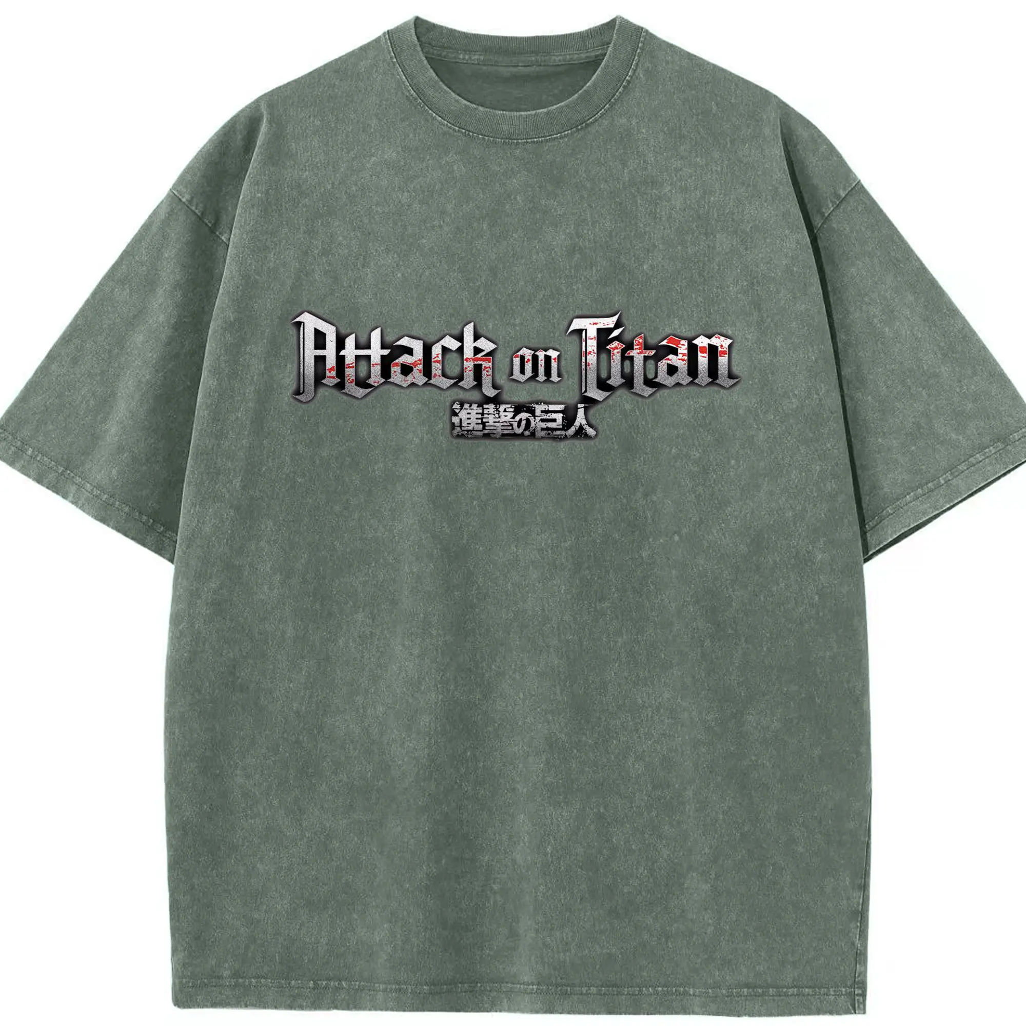 進撃の巨人 文字ロゴ - 綿100% ヴィンテージ風 半袖Tシャツ ・ フロントプリント ・ 柔らか肌触り ・ 通気性 快適 ・ スポーツ カジュアル 外出用