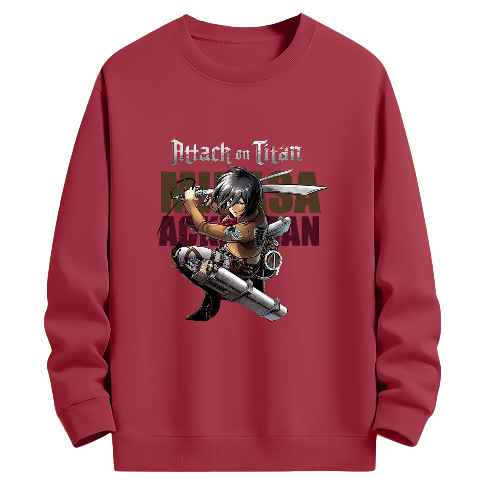 進撃の巨人 ミカサ - 綿100% 半袖Tシャツ ・ フロントプリント ・ 快適 通気性 ・ 日常使い 散歩 スポーツ用