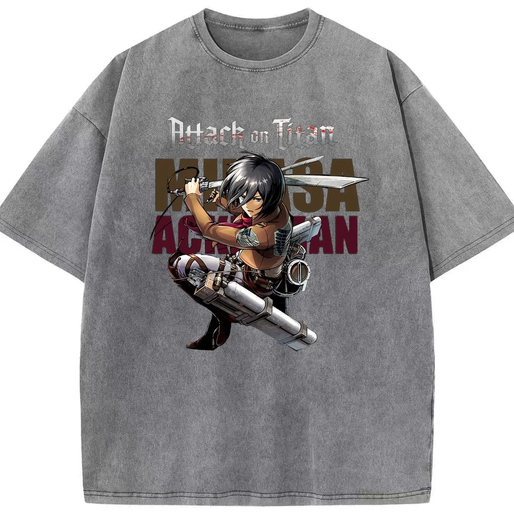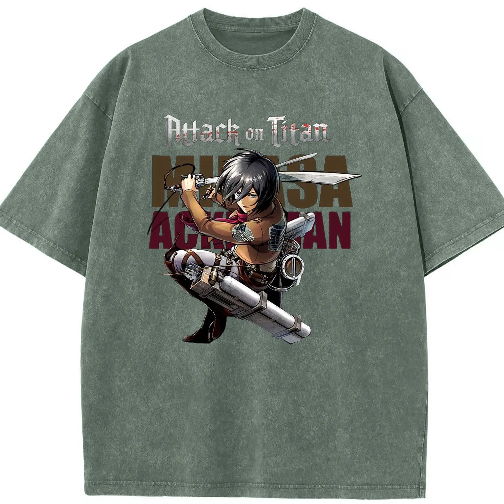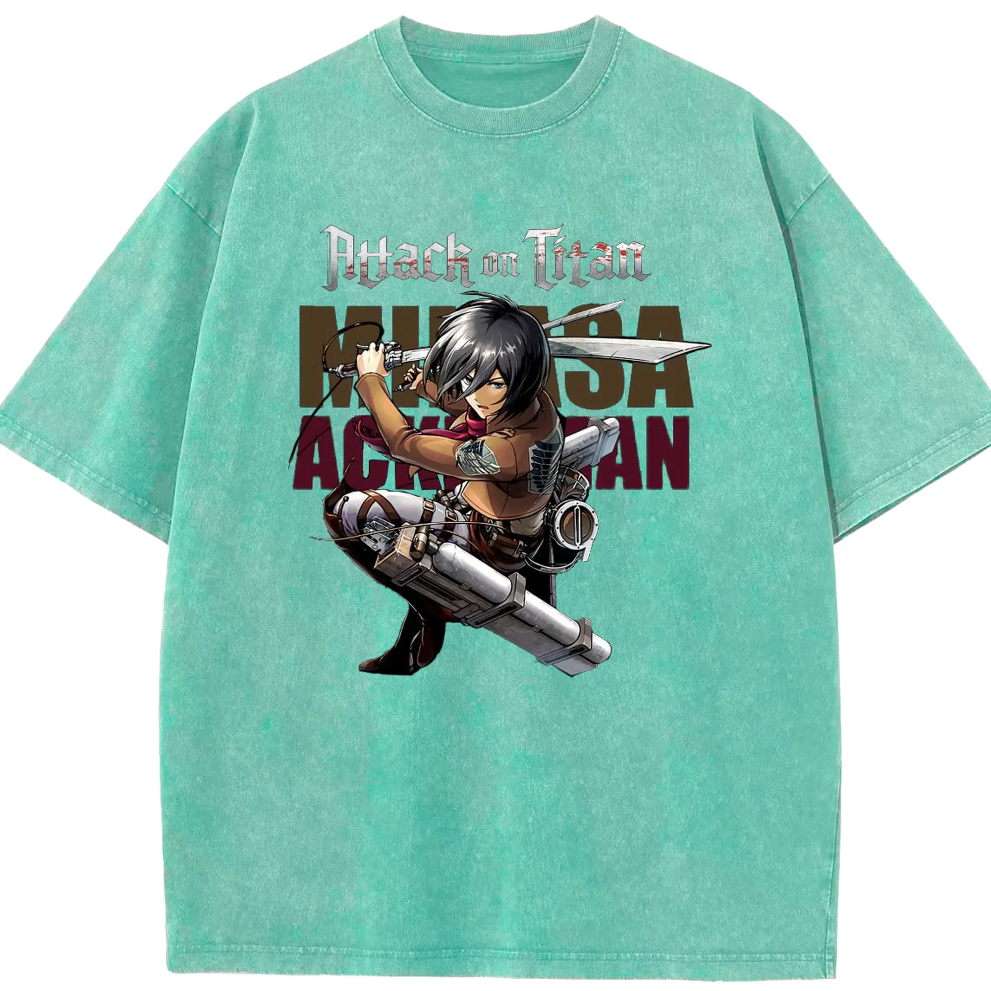 進撃の巨人 ミカサ - 綿100% 半袖Tシャツ ・ フロントプリント ・ 快適 通気性 ・ 日常使い 散歩 スポーツ用