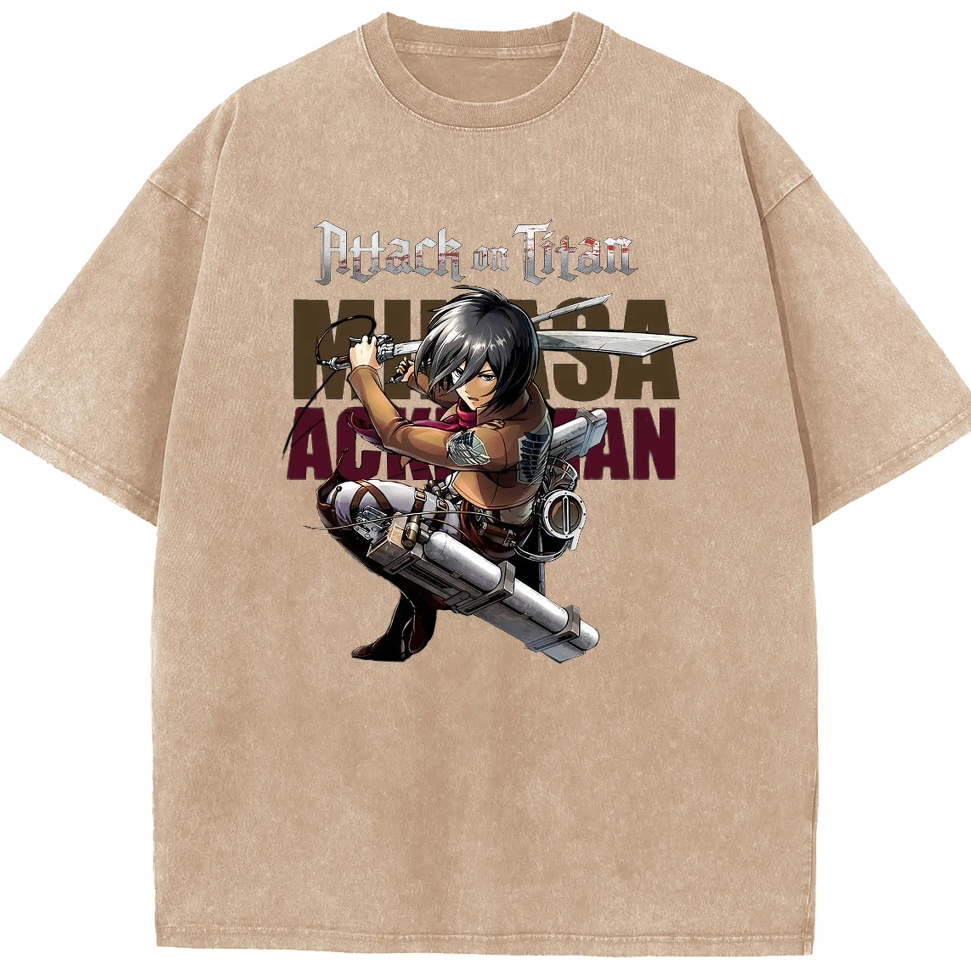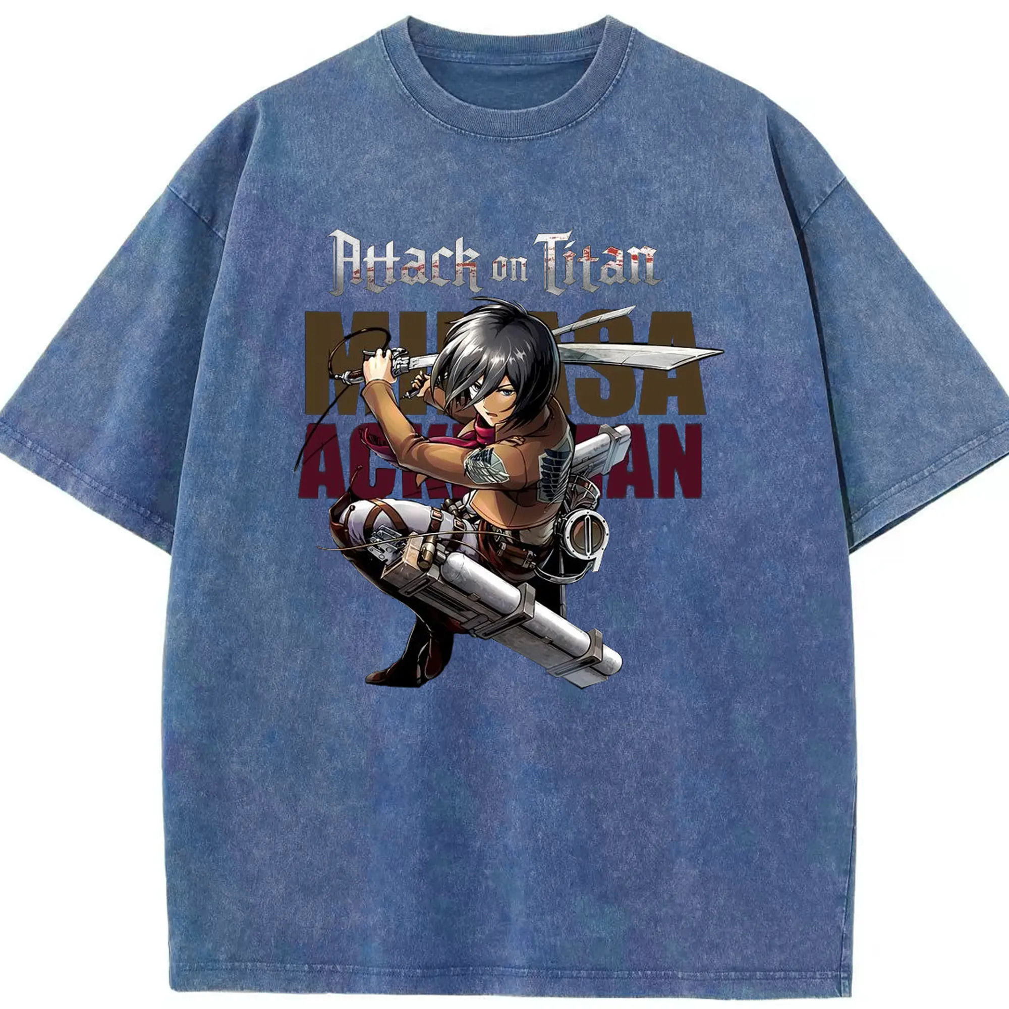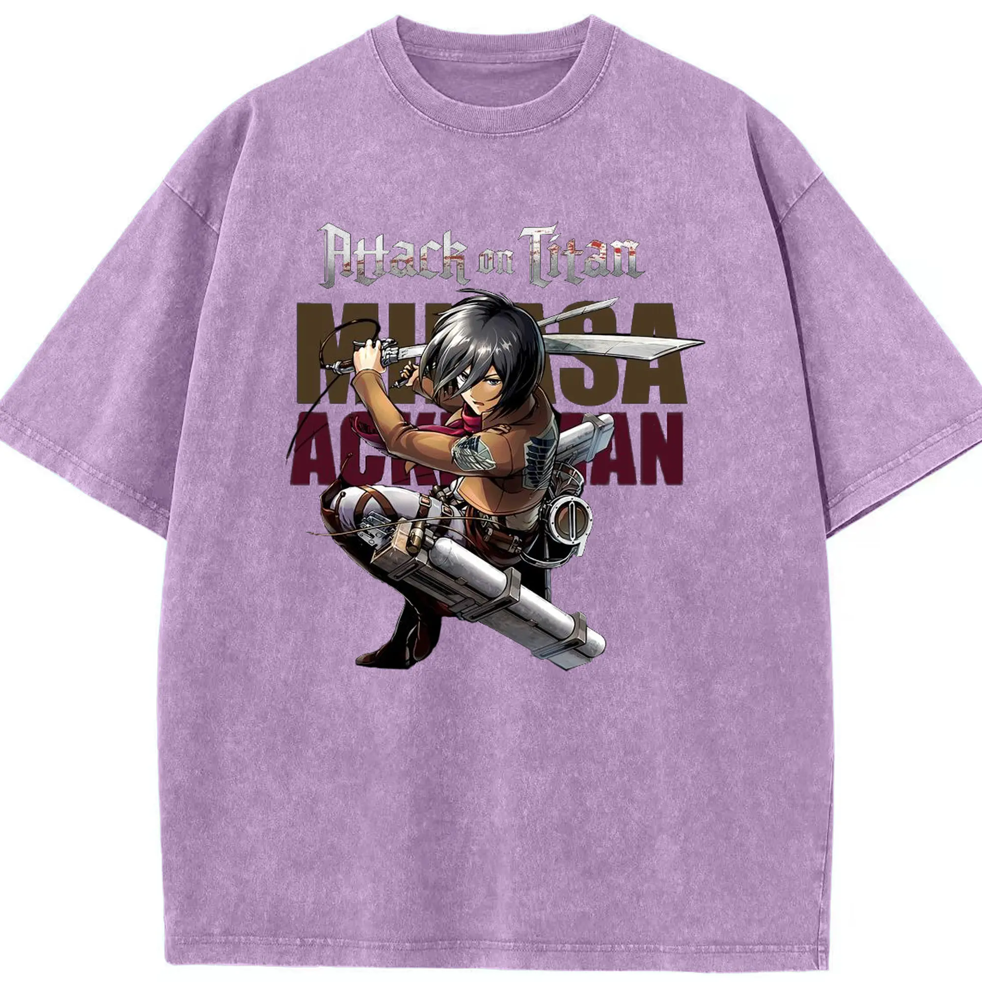 進撃の巨人 ミカサ - 綿100% 半袖Tシャツ ・ フロントプリント ・ 快適 通気性 ・ 日常使い 散歩 スポーツ用