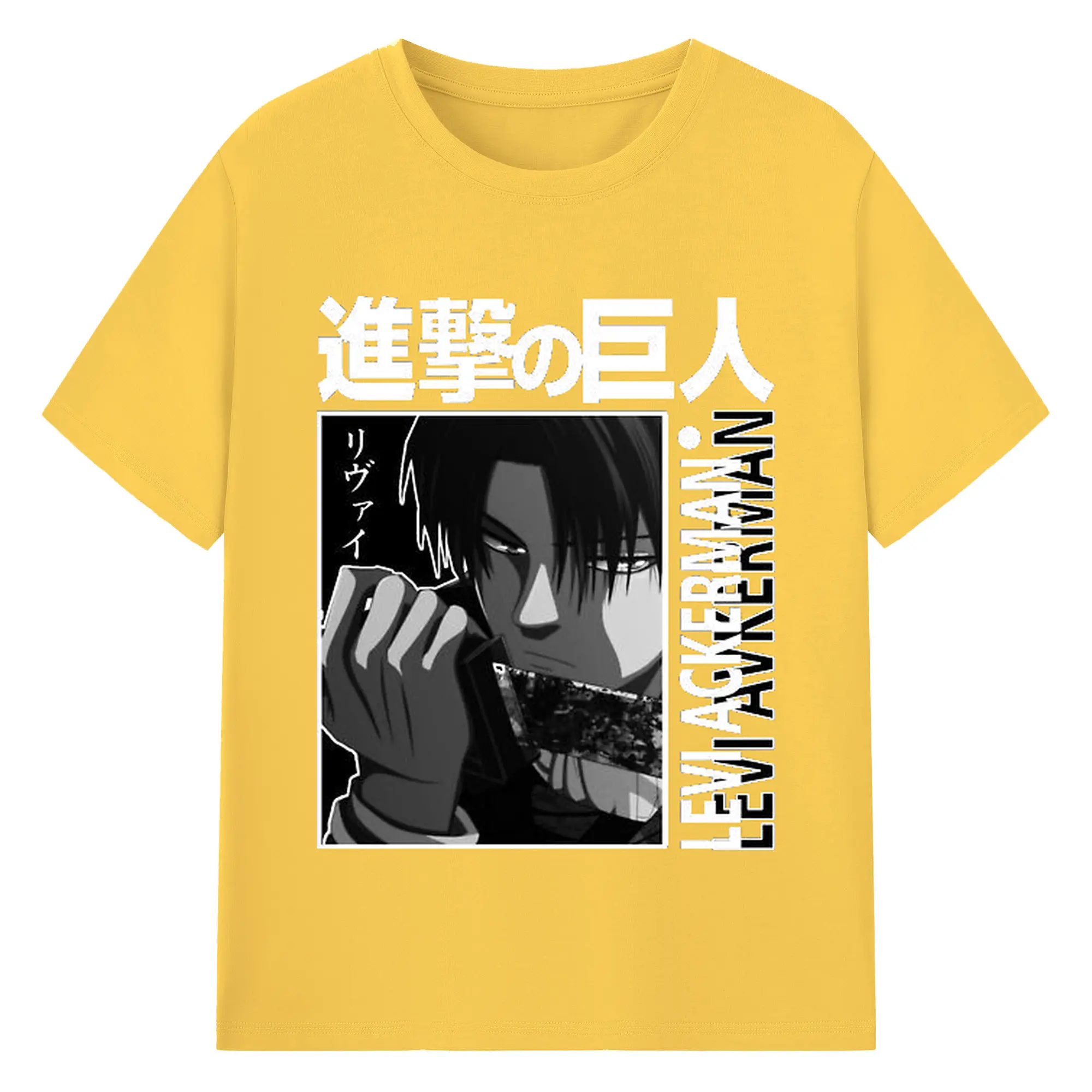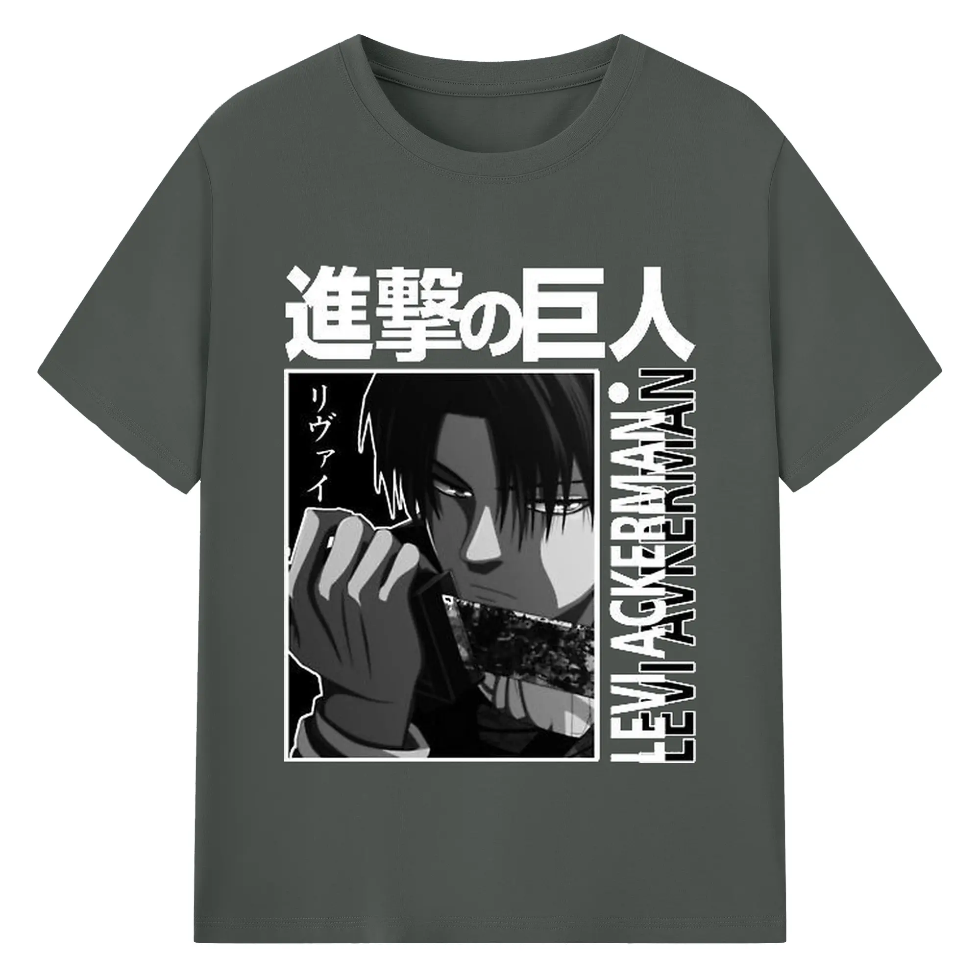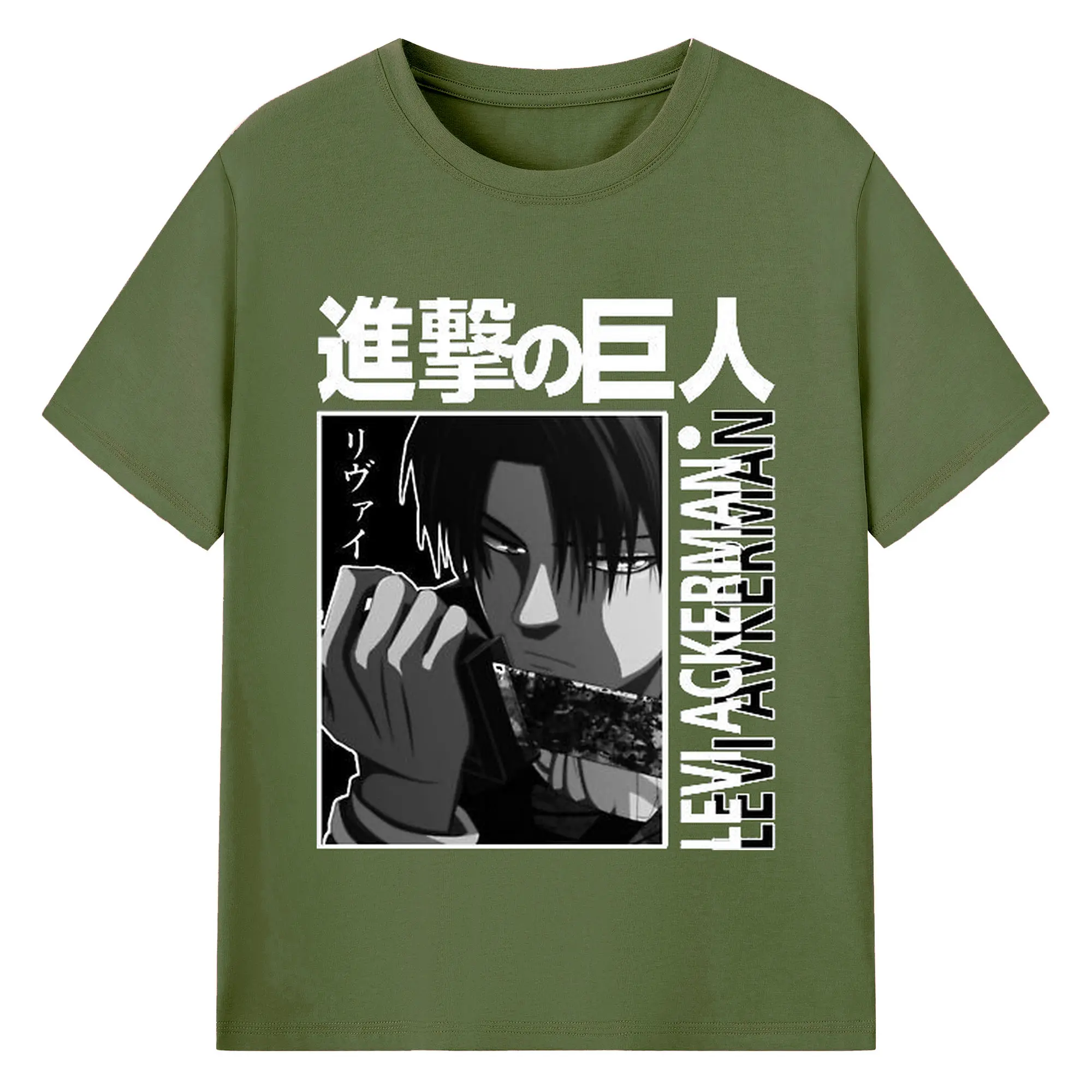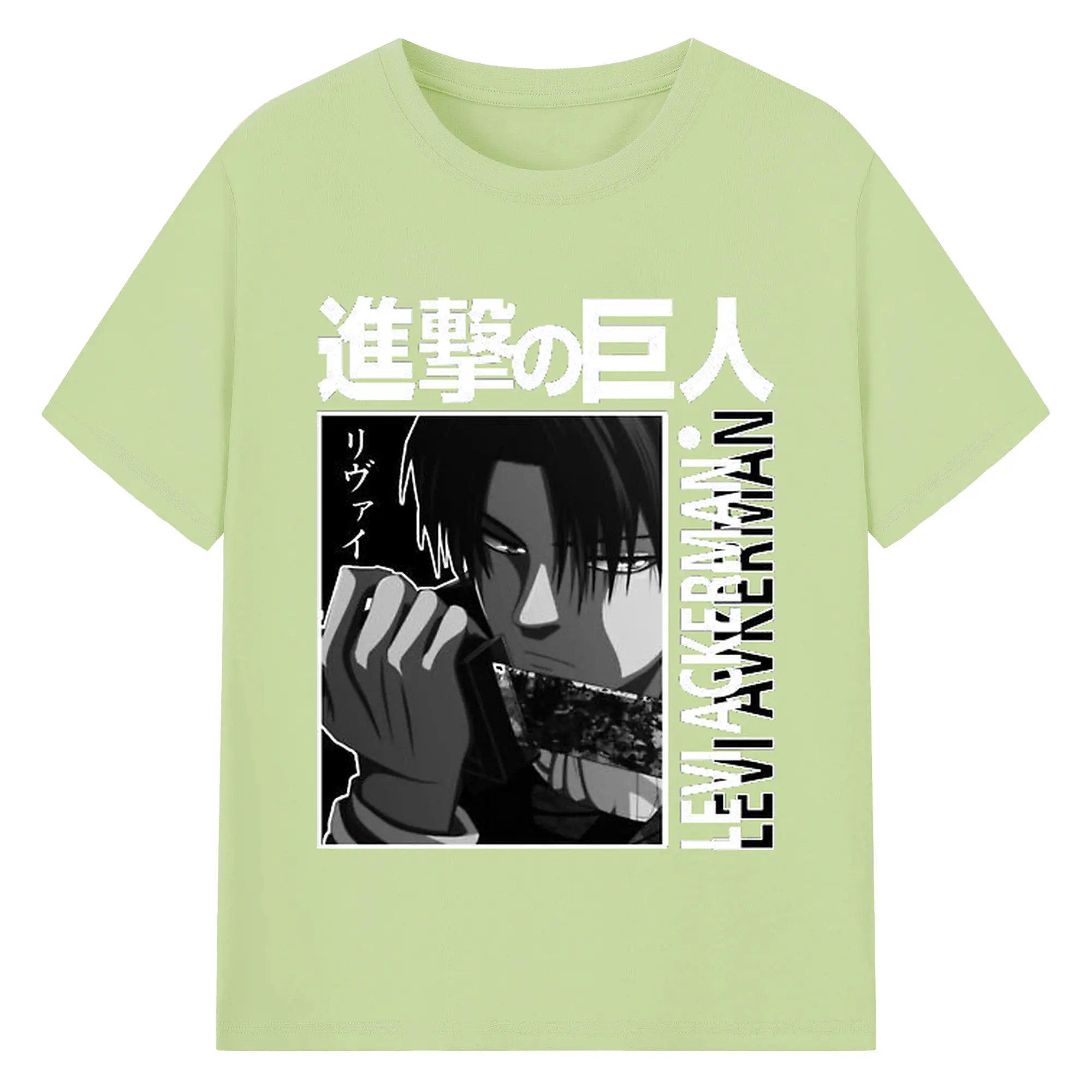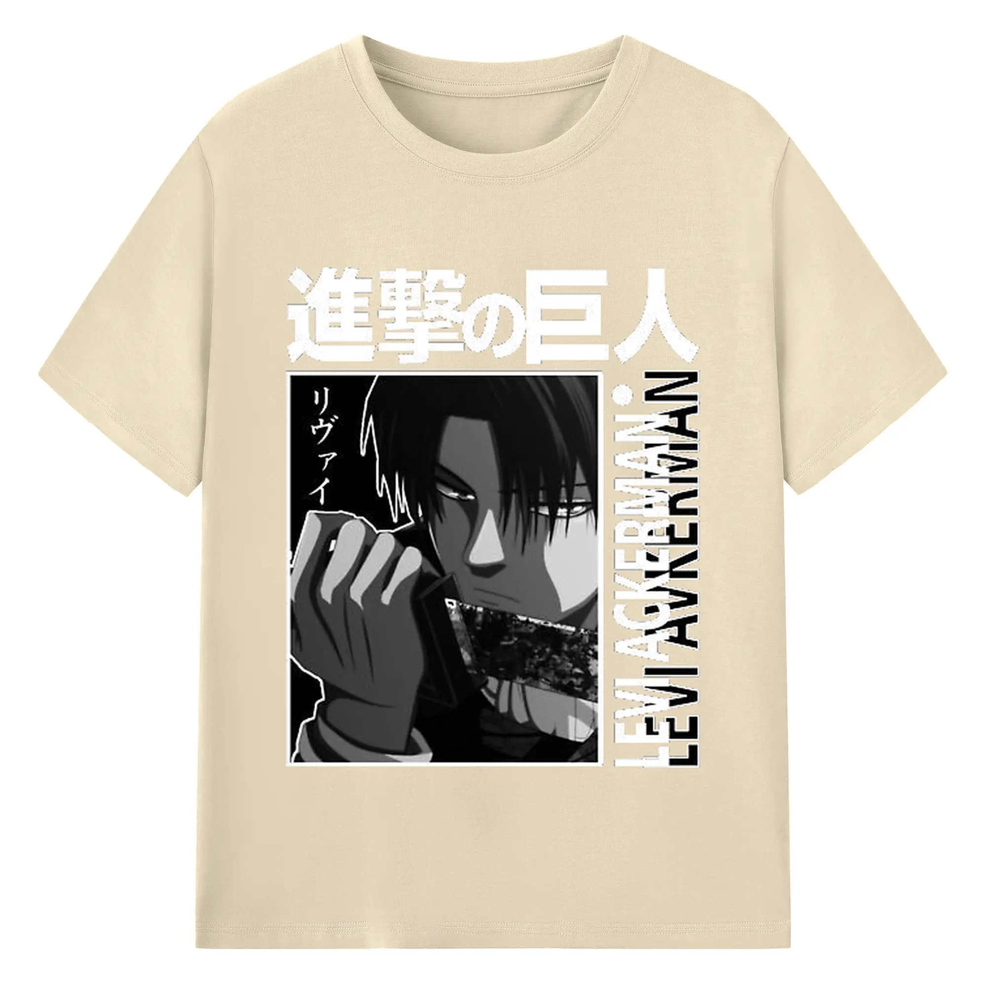 進撃の巨人 リヴァイ - 綿100% ヴィンテージ風 半袖Tシャツ ・ フロントプリント ・ 柔らか肌触り ・ 通気性 快適 ・ スポーツ カジュアル 外出用