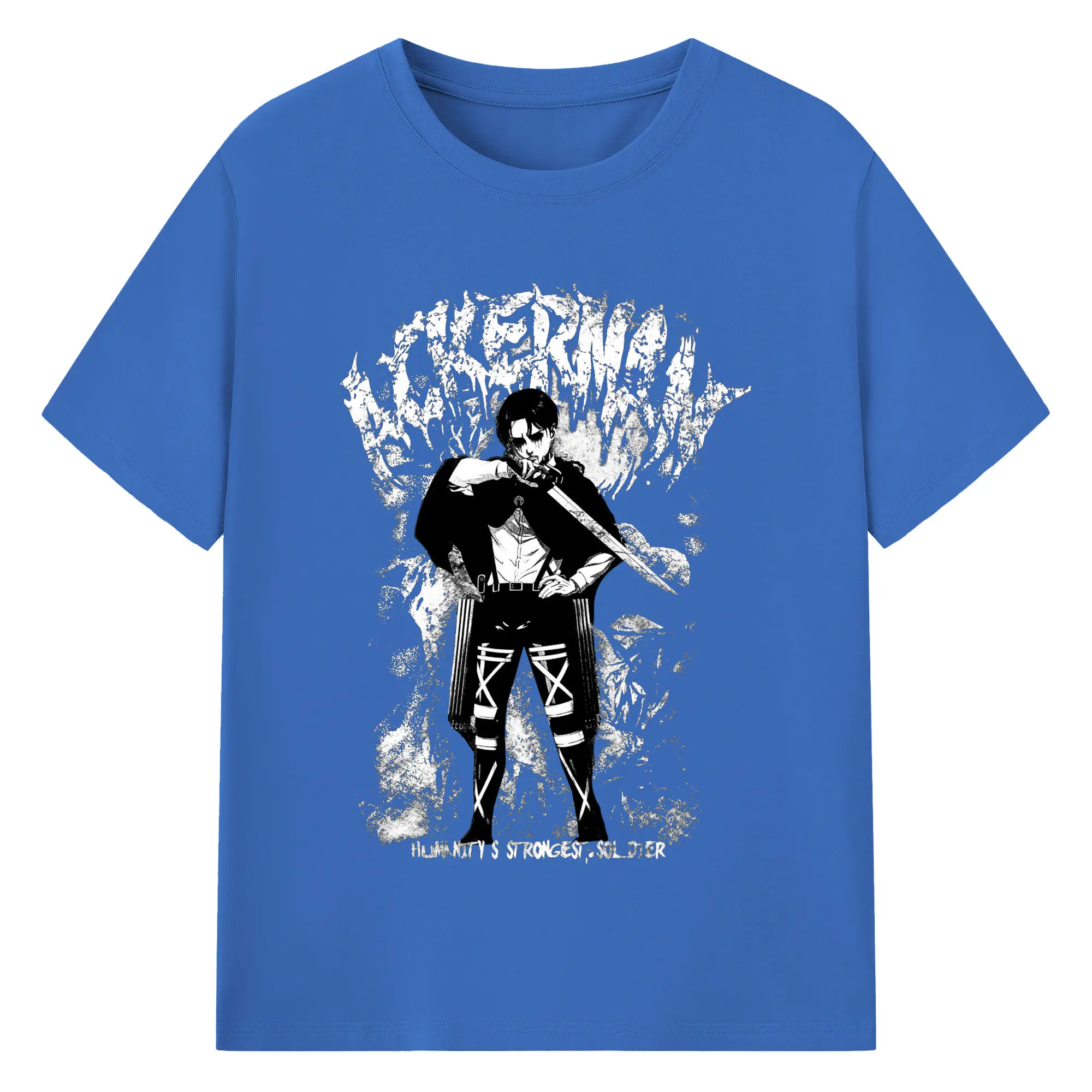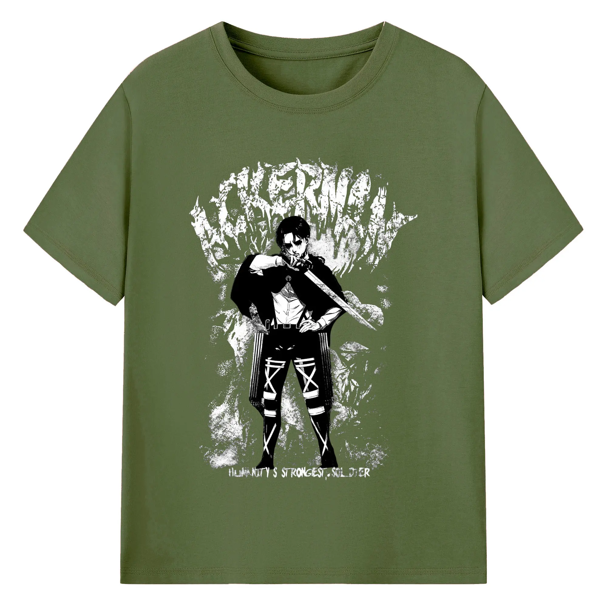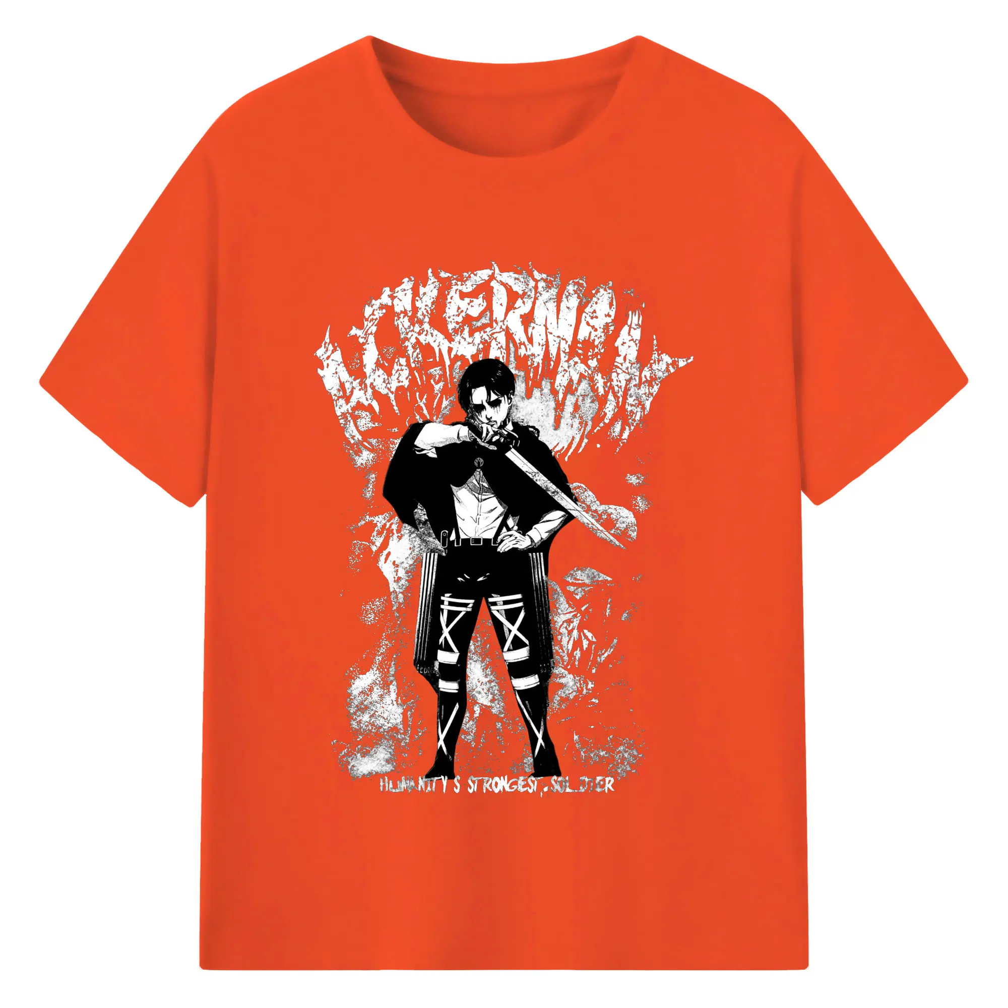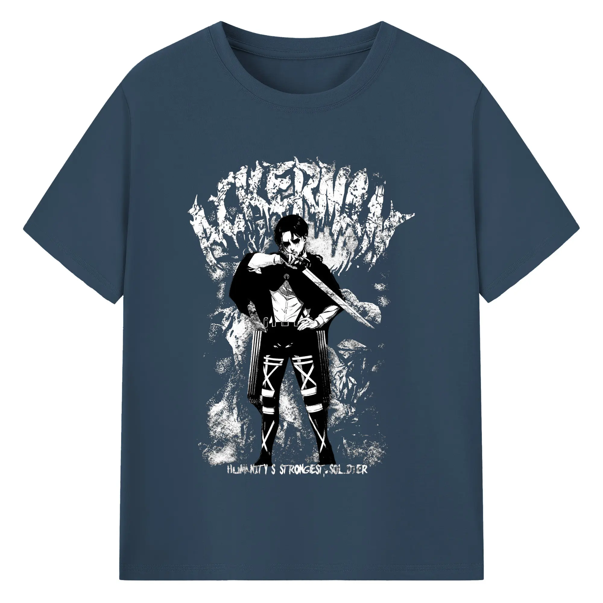 進撃の巨人 リヴァイ - 綿100% ヴィンテージ風 半袖Tシャツ ・ フロントプリント ・ 柔らか肌触り ・ 通気性 快適 ・ スポーツ カジュアル 外出用