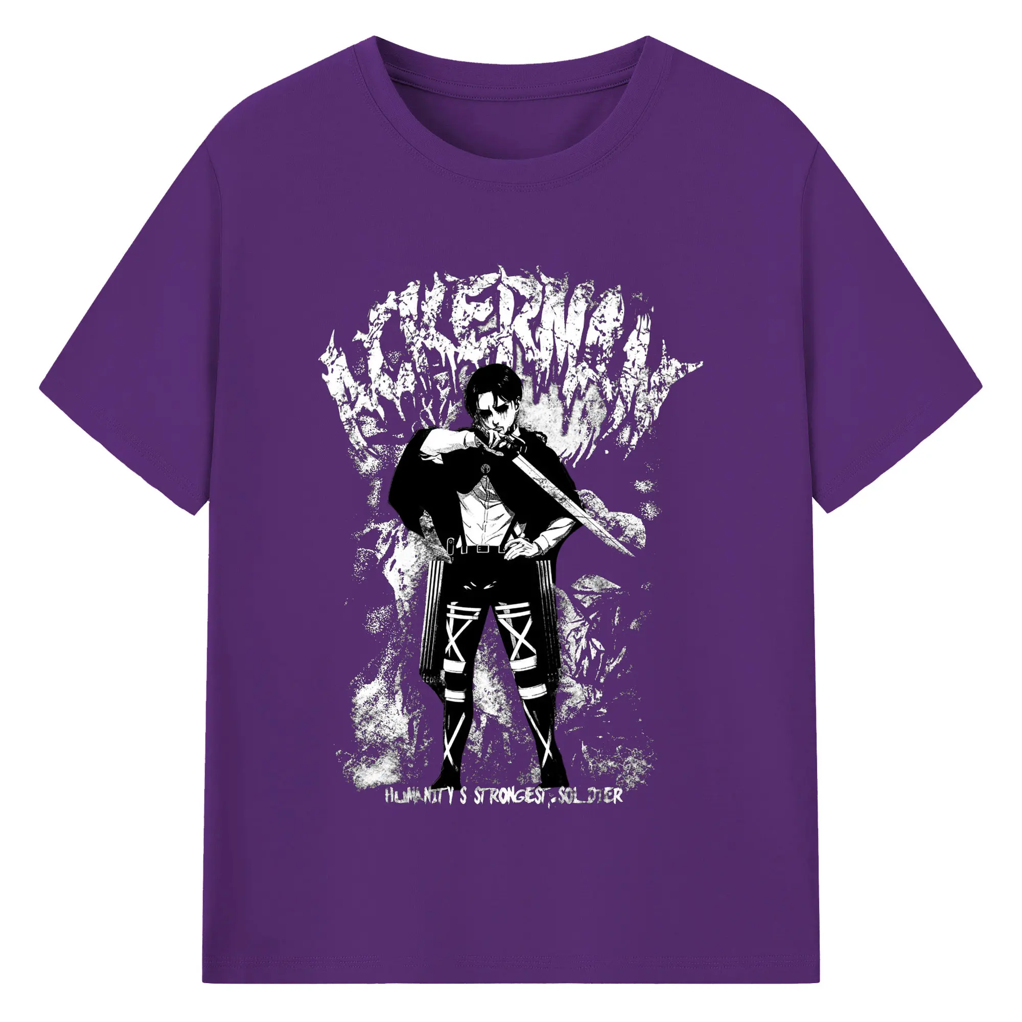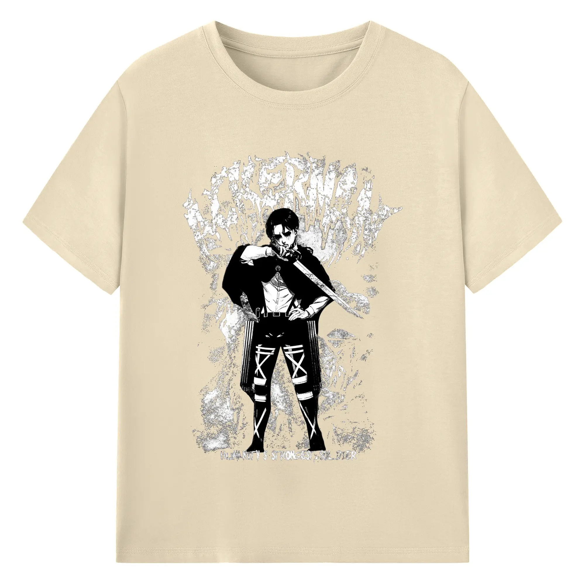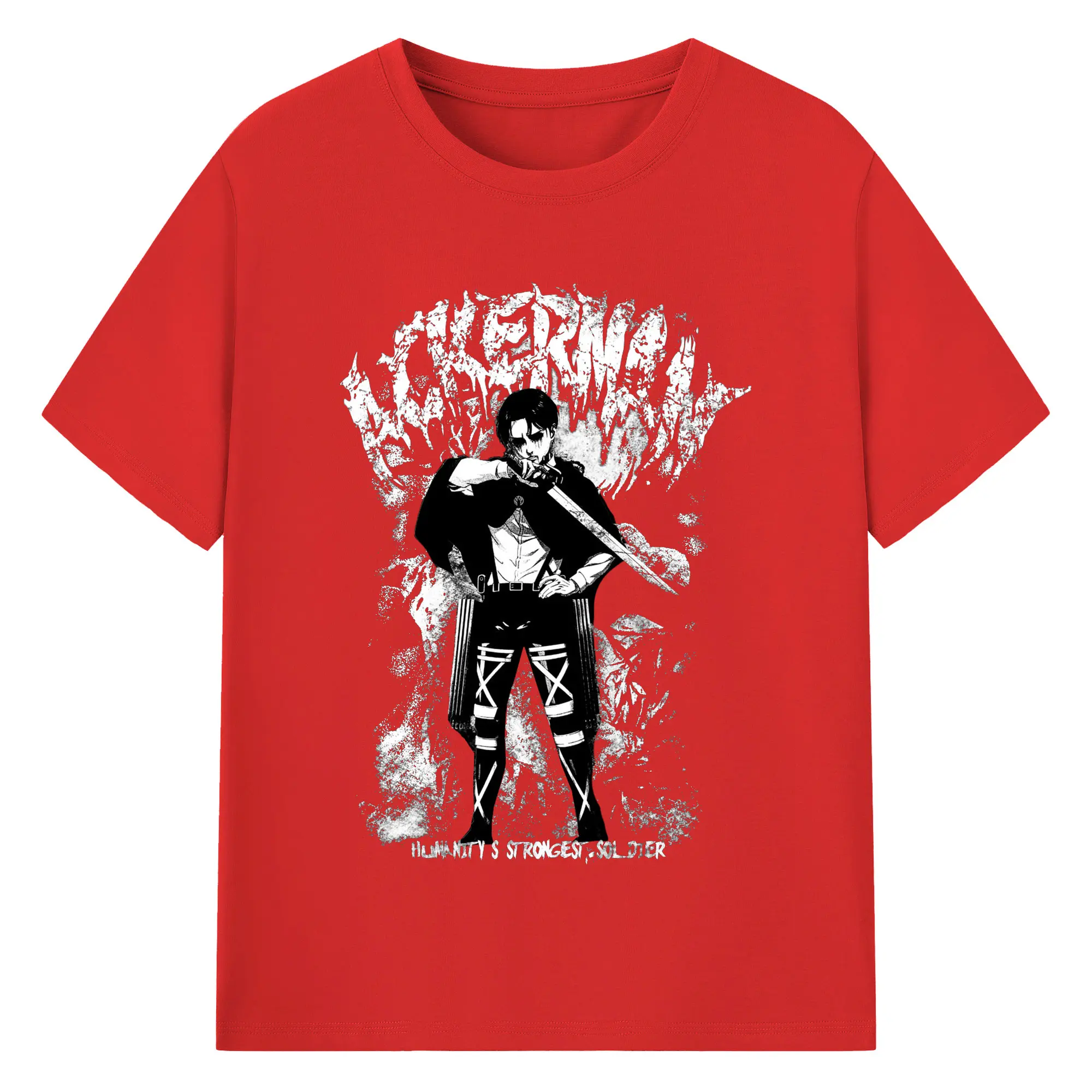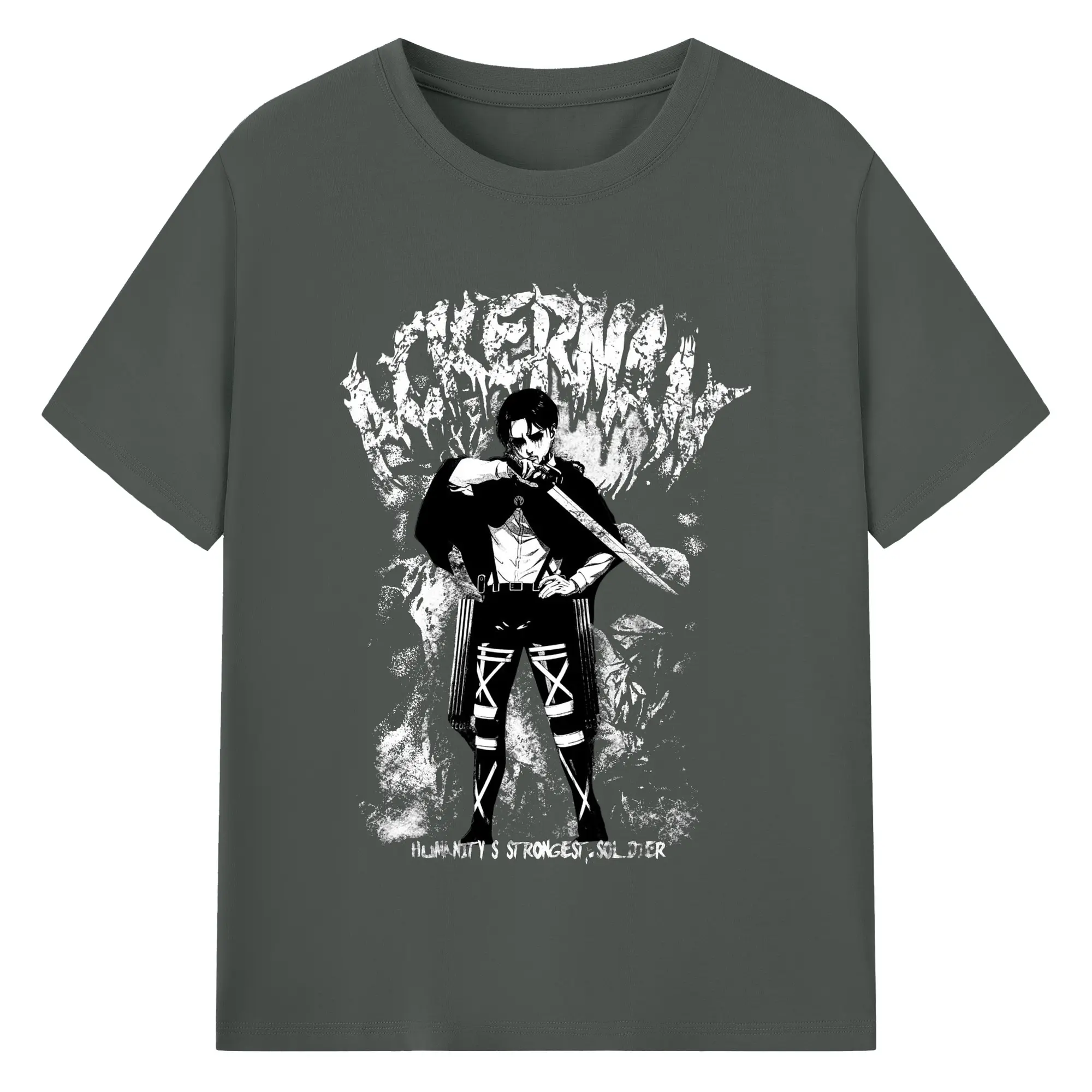 進撃の巨人 リヴァイ - 綿100% ヴィンテージ風 半袖Tシャツ ・ フロントプリント ・ 柔らか肌触り ・ 通気性 快適 ・ スポーツ カジュアル 外出用