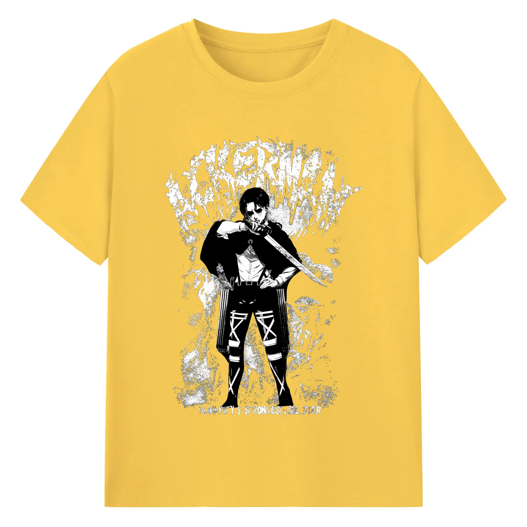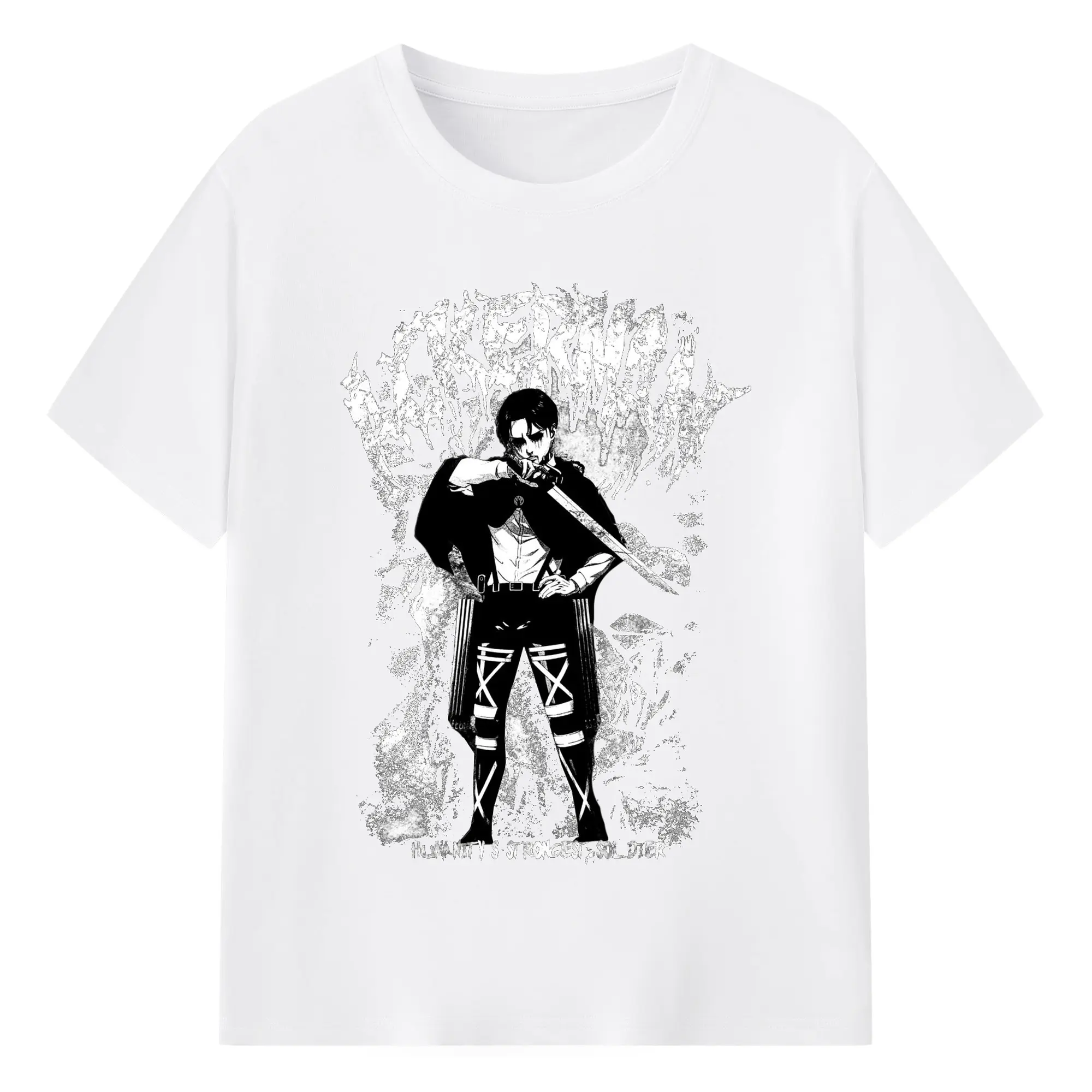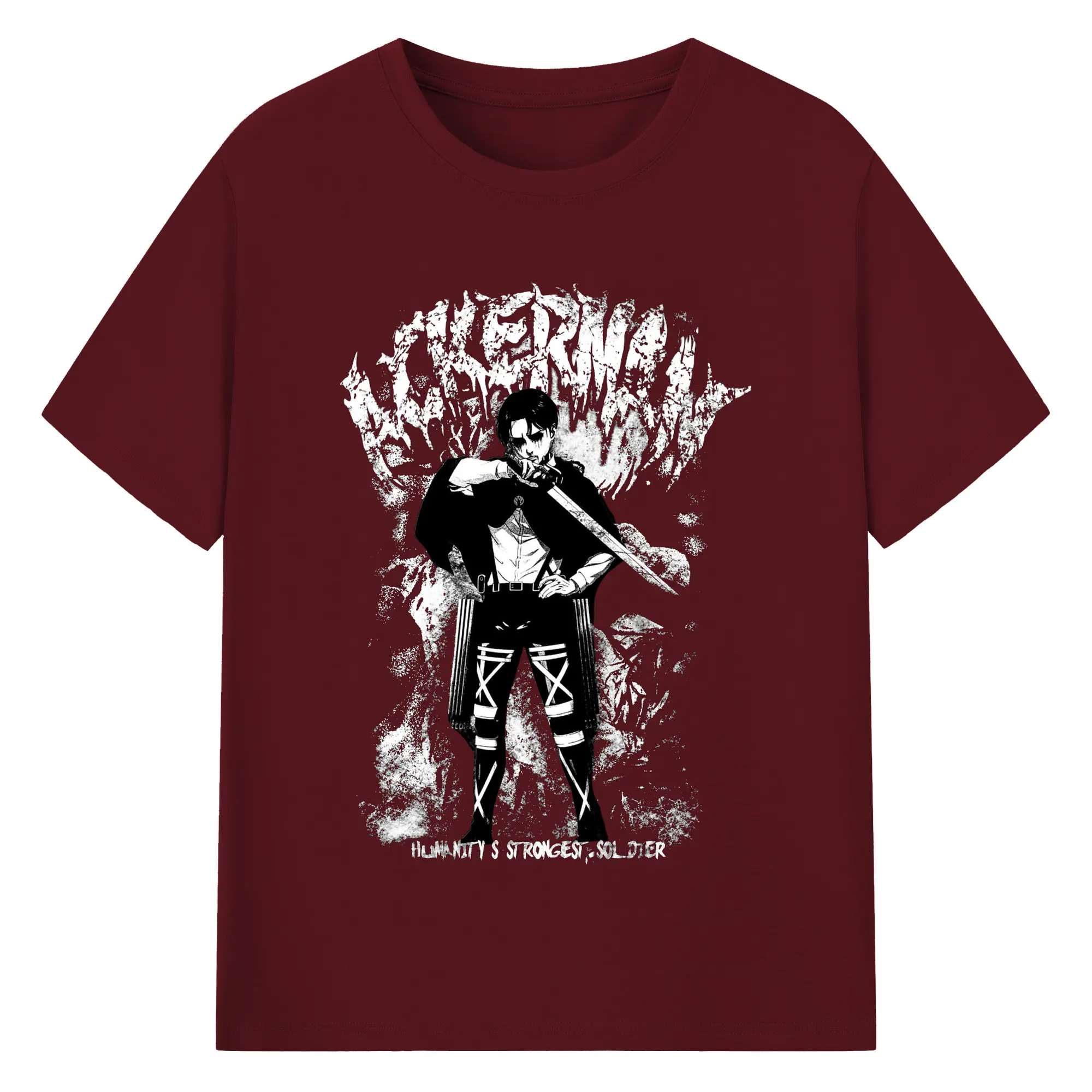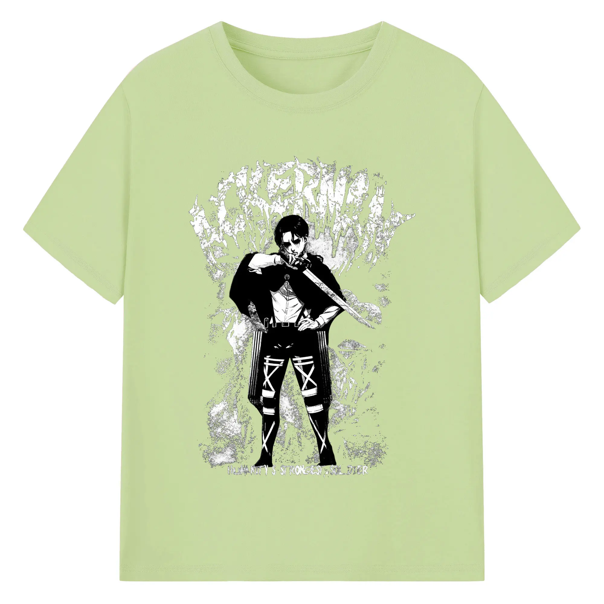 進撃の巨人 リヴァイ - 綿100% ヴィンテージ風 半袖Tシャツ ・ フロントプリント ・ 柔らか肌触り ・ 通気性 快適 ・ スポーツ カジュアル 外出用