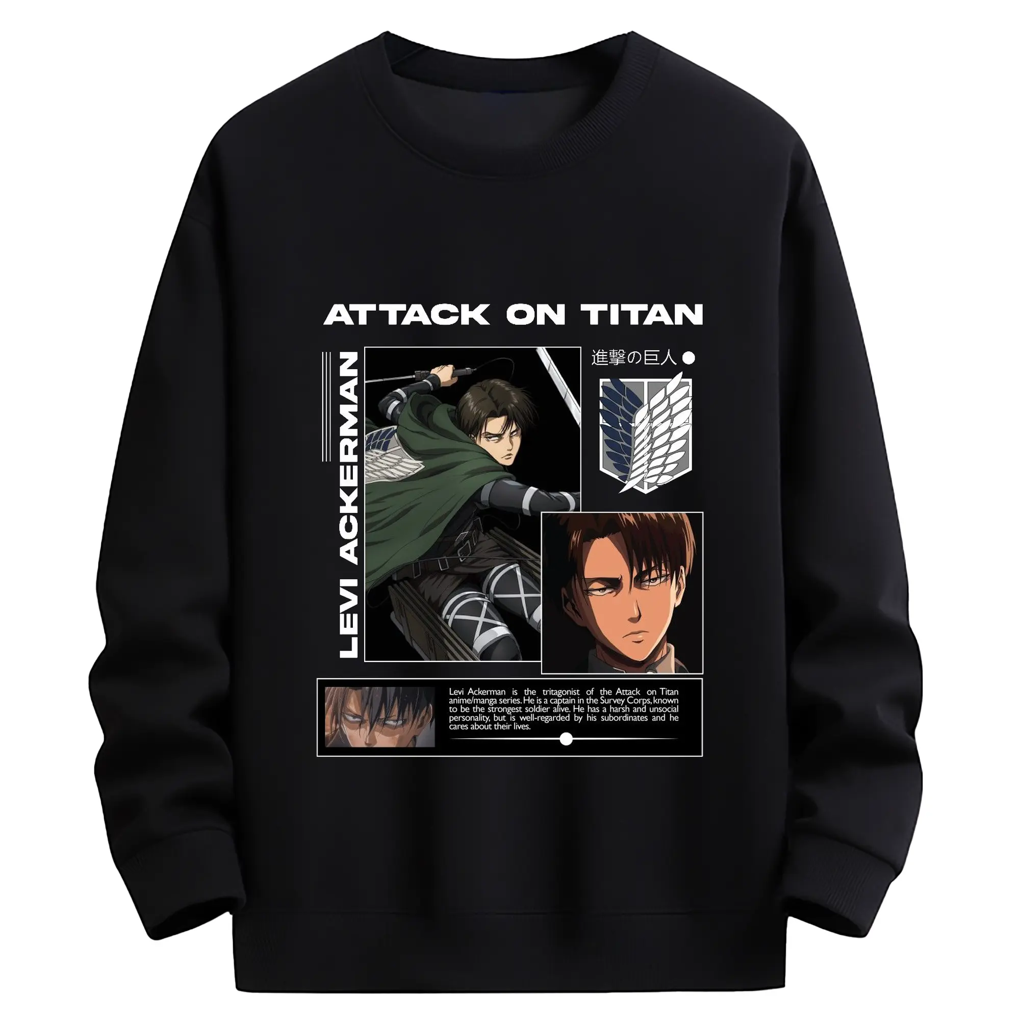 進撃の巨人 リヴァイ - 綿100% 半袖Tシャツ ・ フロントプリント ・ 快適 通気性 ・ 日常使い 散歩 スポーツ用