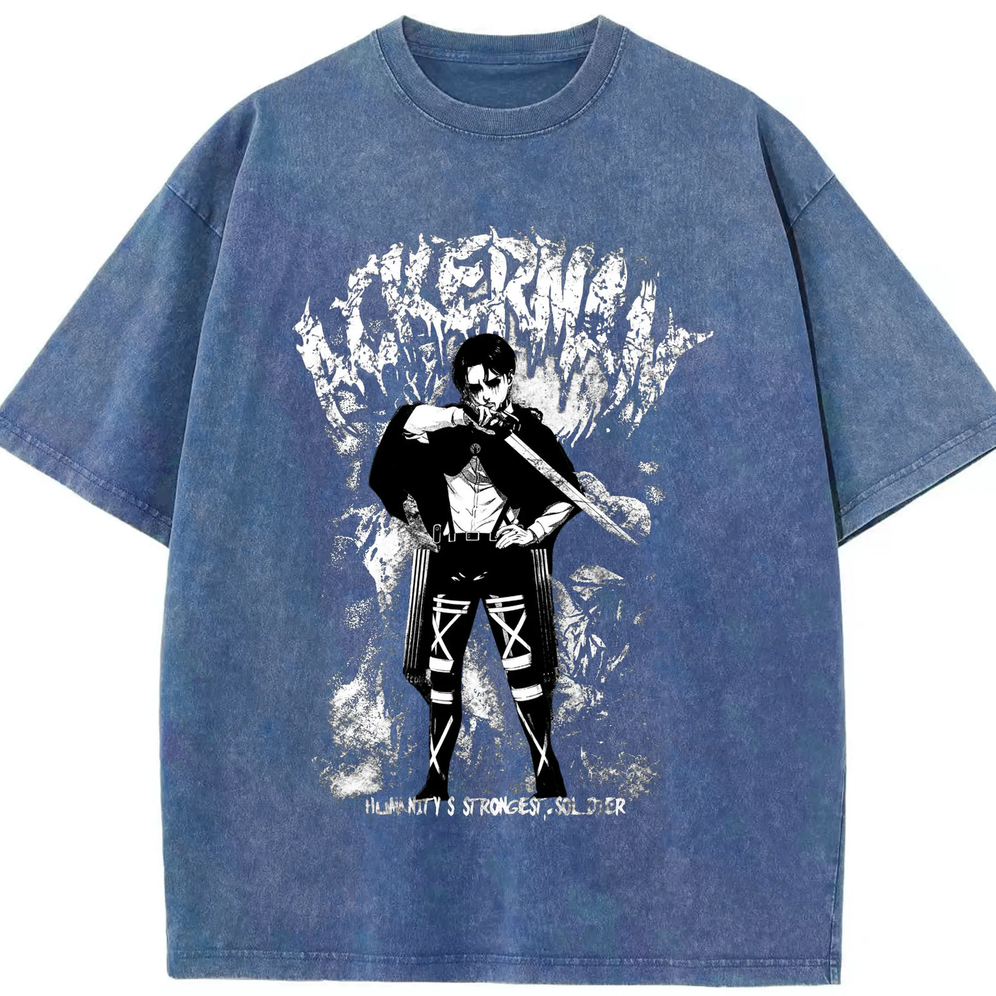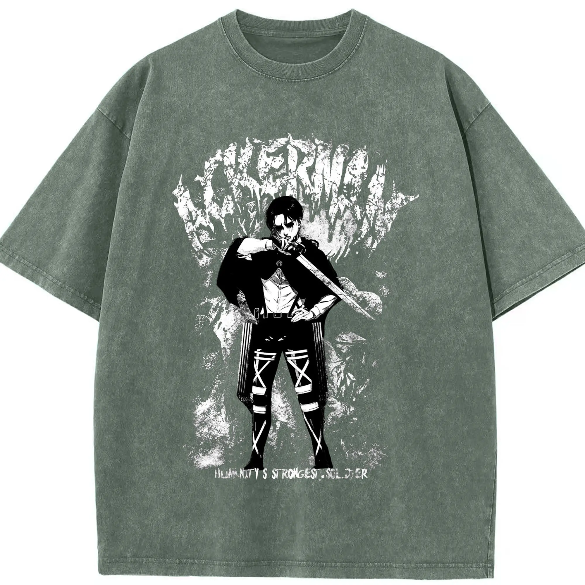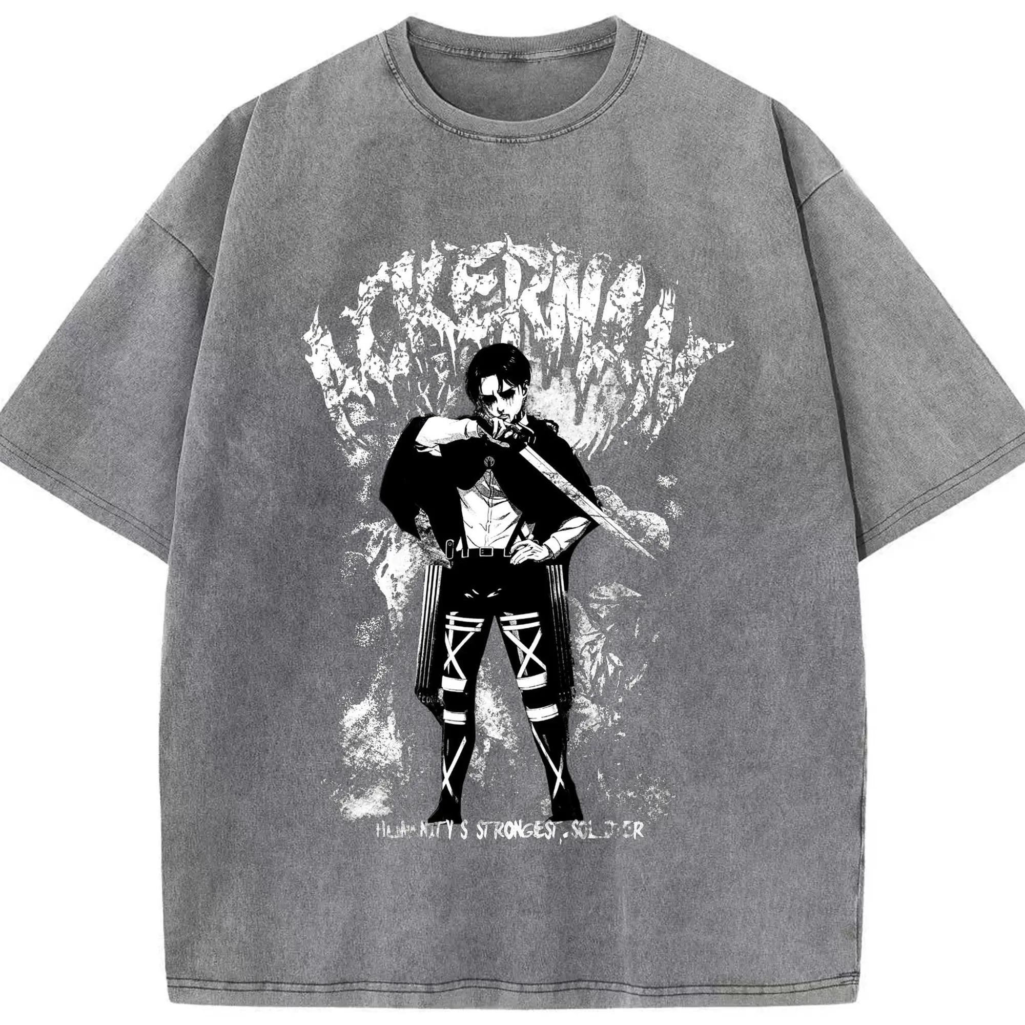 進撃の巨人 リヴァイ - 綿100% 半袖Tシャツ ・ フロントプリント ・ 快適 通気性 ・ 日常使い 散歩 スポーツ用