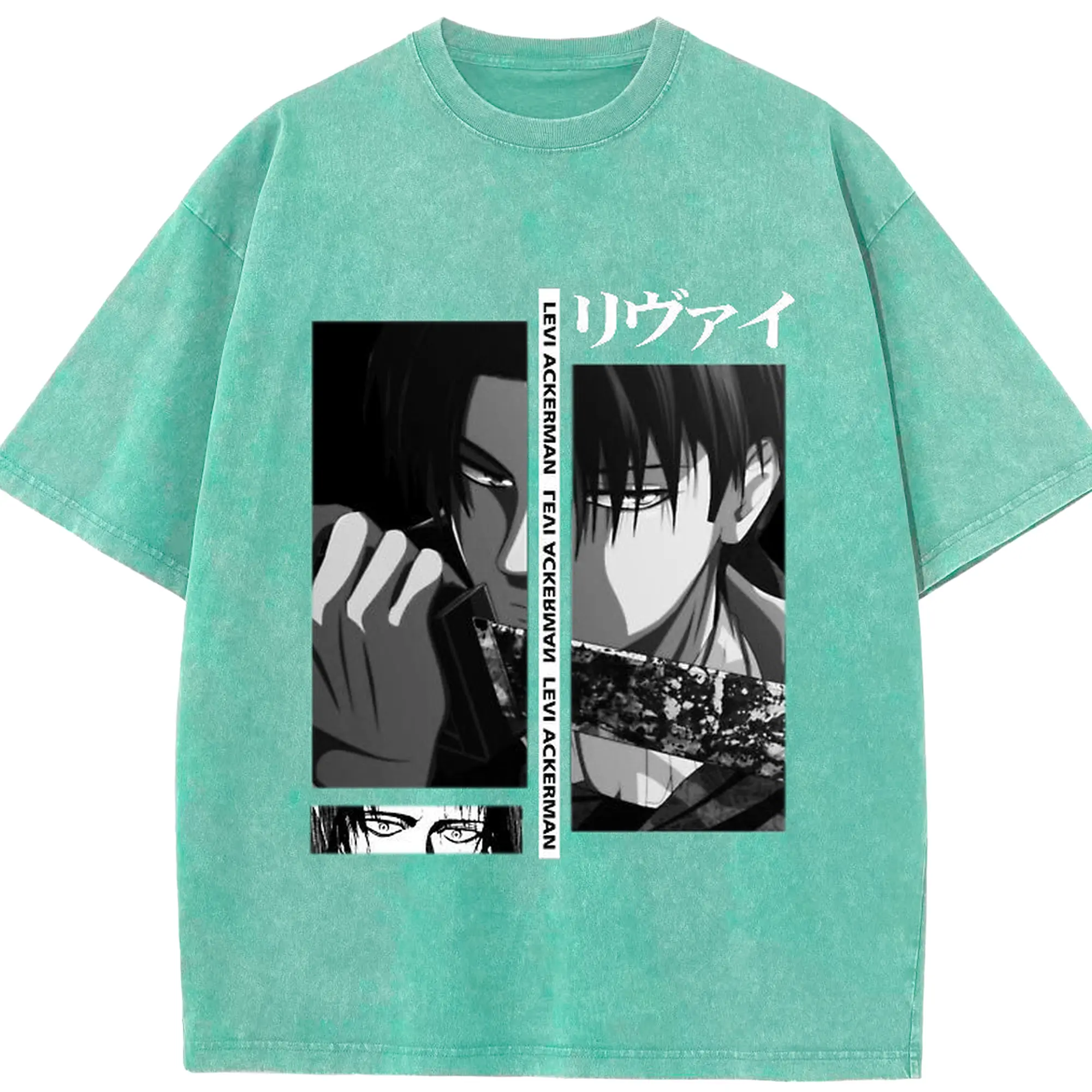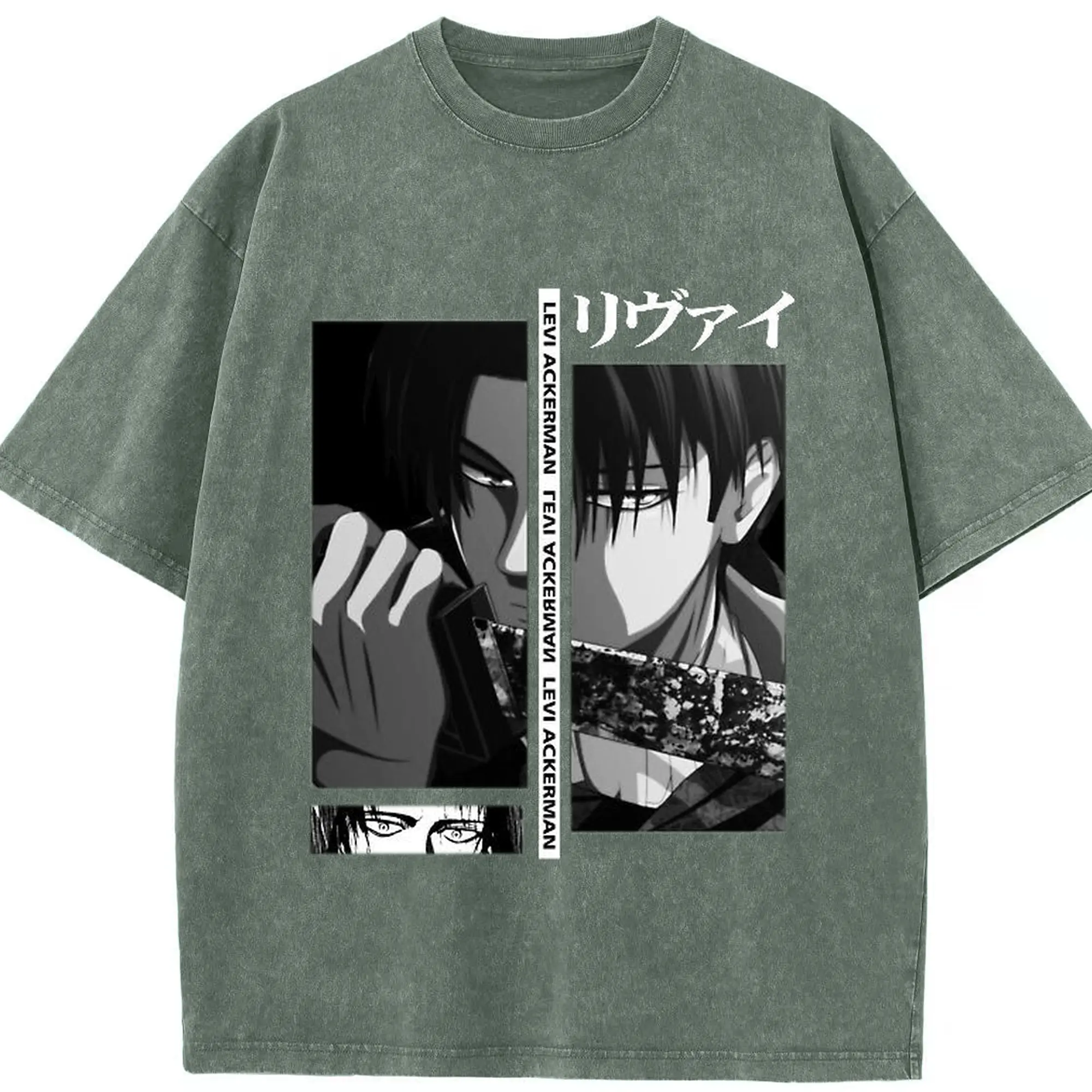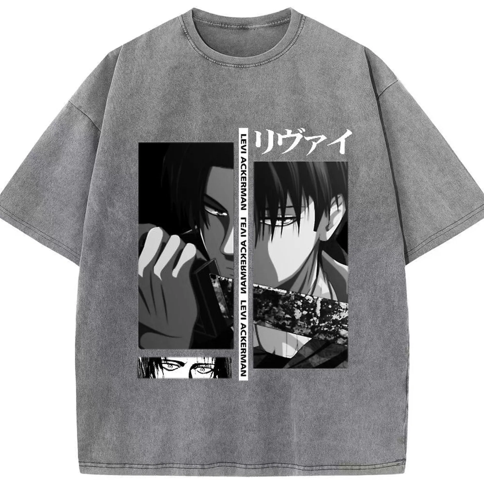 進撃の巨人 リヴァイ - 綿100% 半袖Tシャツ ・ フロントプリント ・ 快適 通気性 ・ 日常使い 散歩 スポーツ用