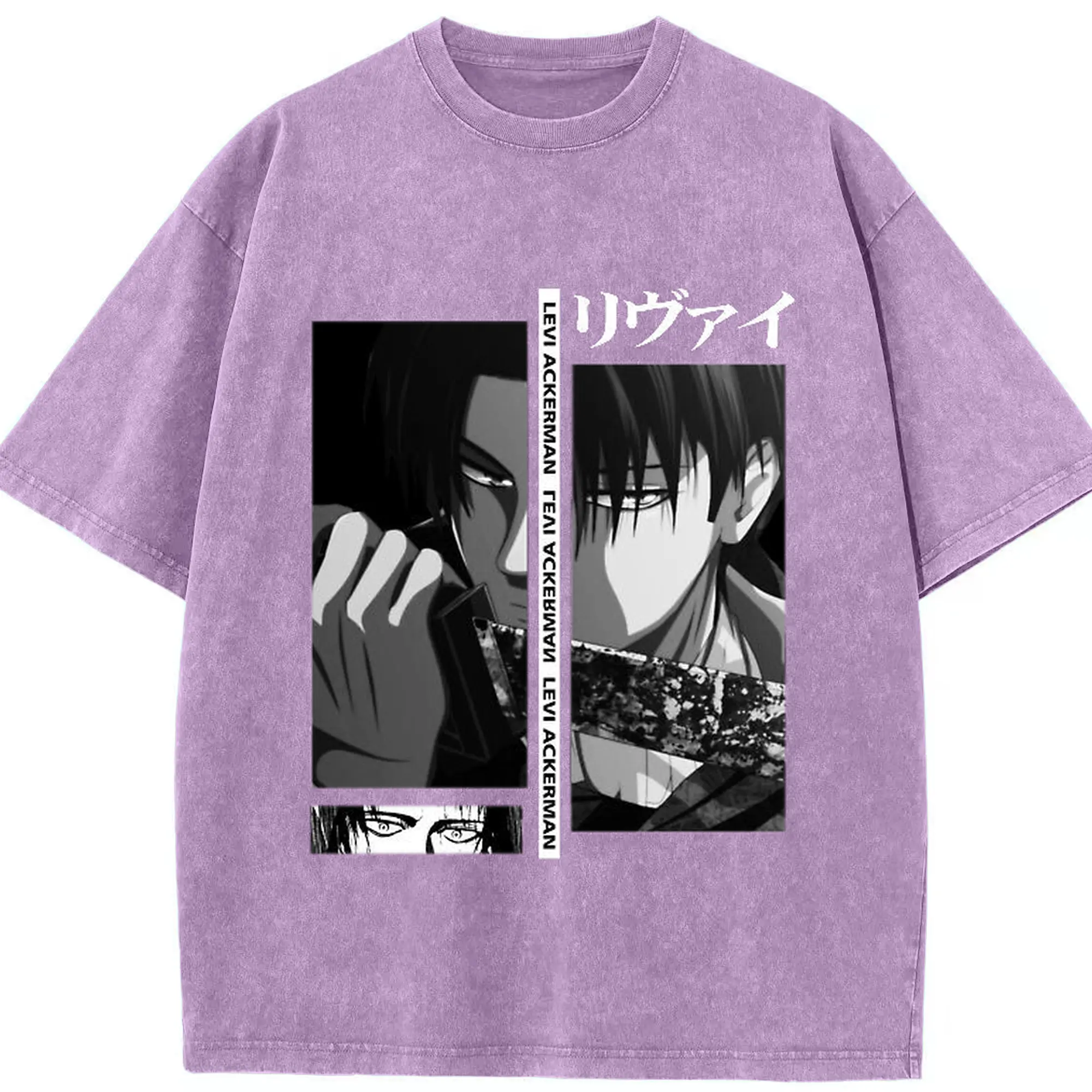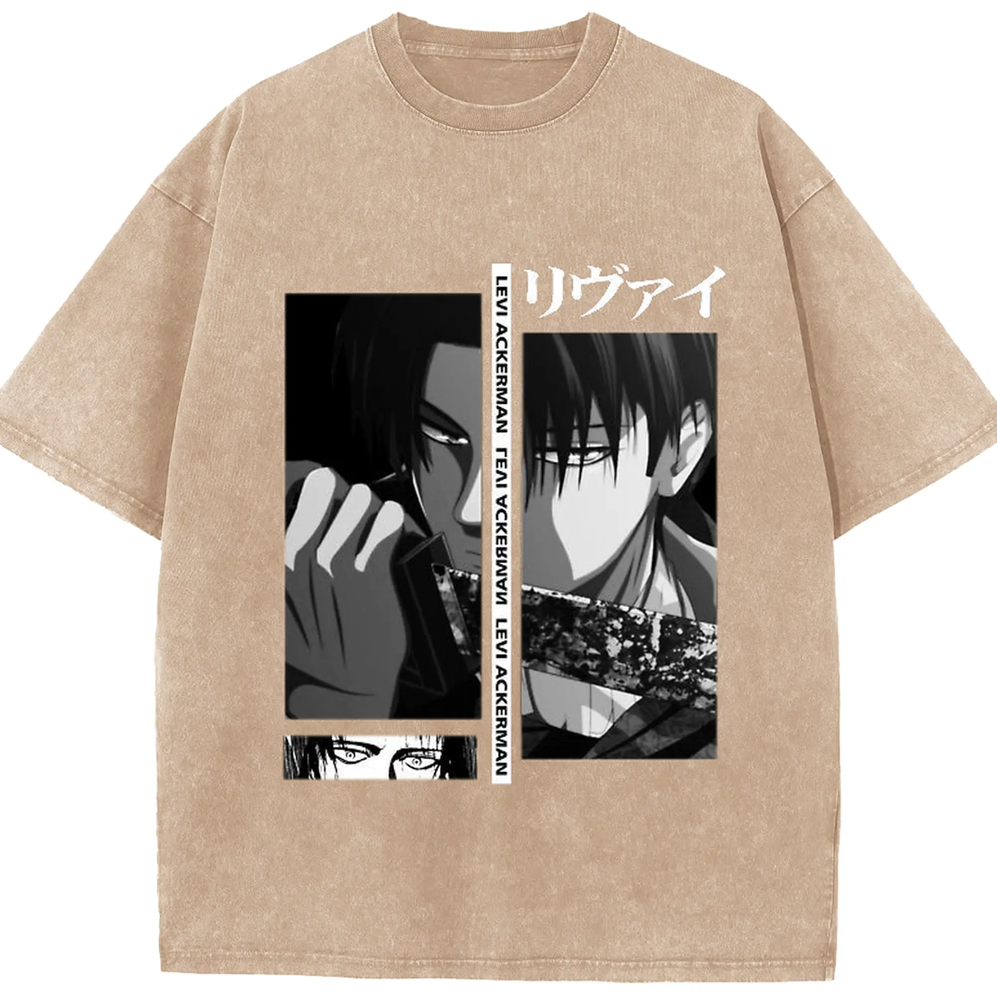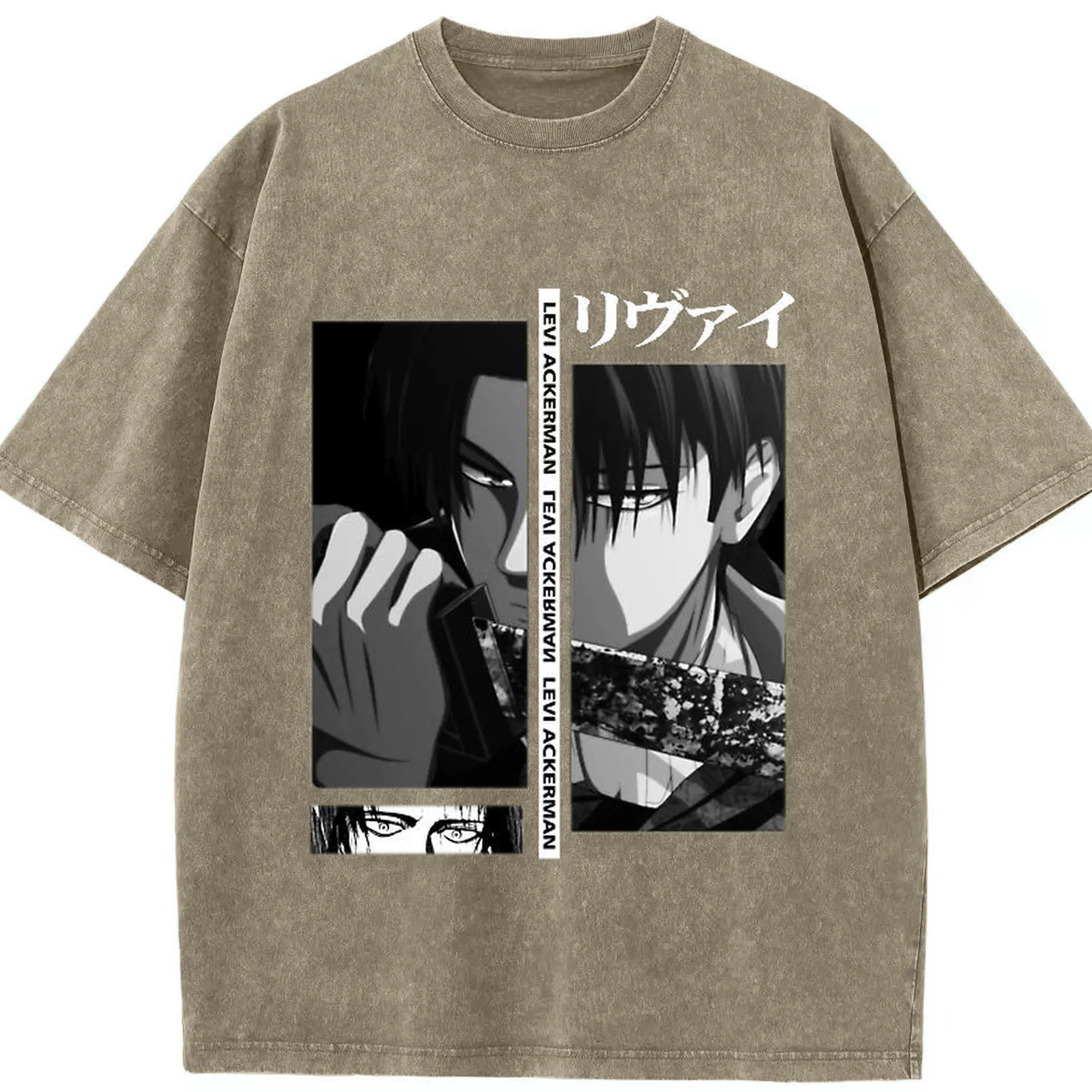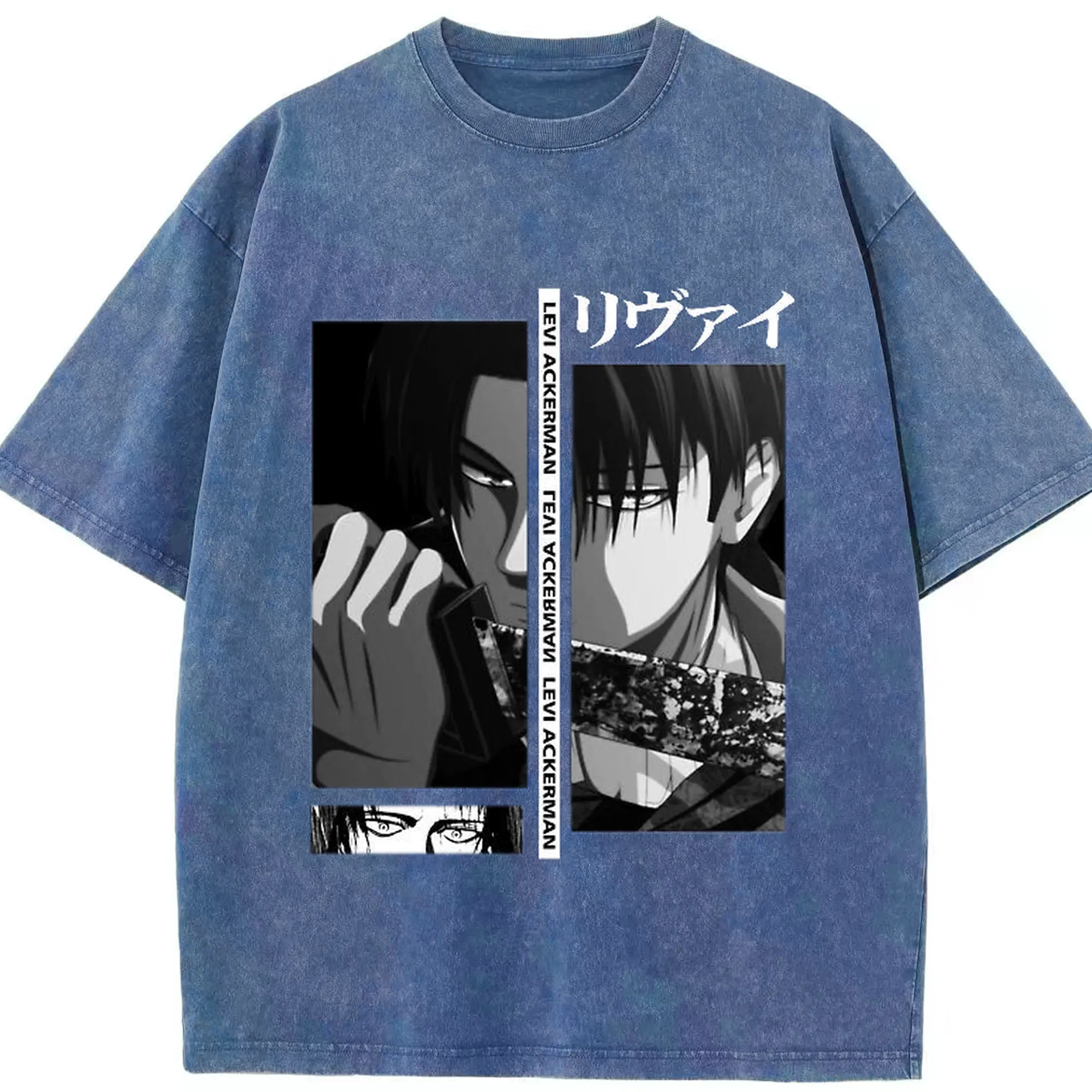 進撃の巨人 リヴァイ - 綿100% 半袖Tシャツ ・ フロントプリント ・ 快適 通気性 ・ 日常使い 散歩 スポーツ用