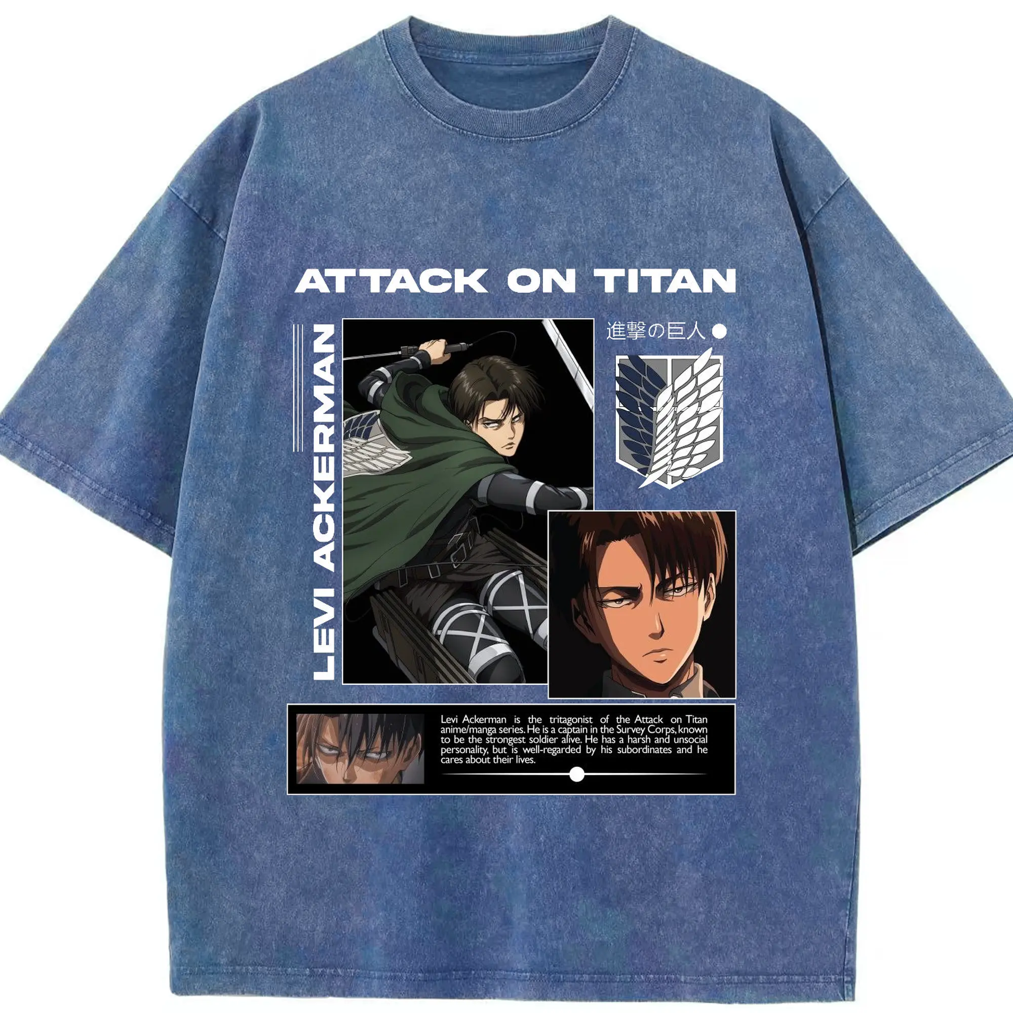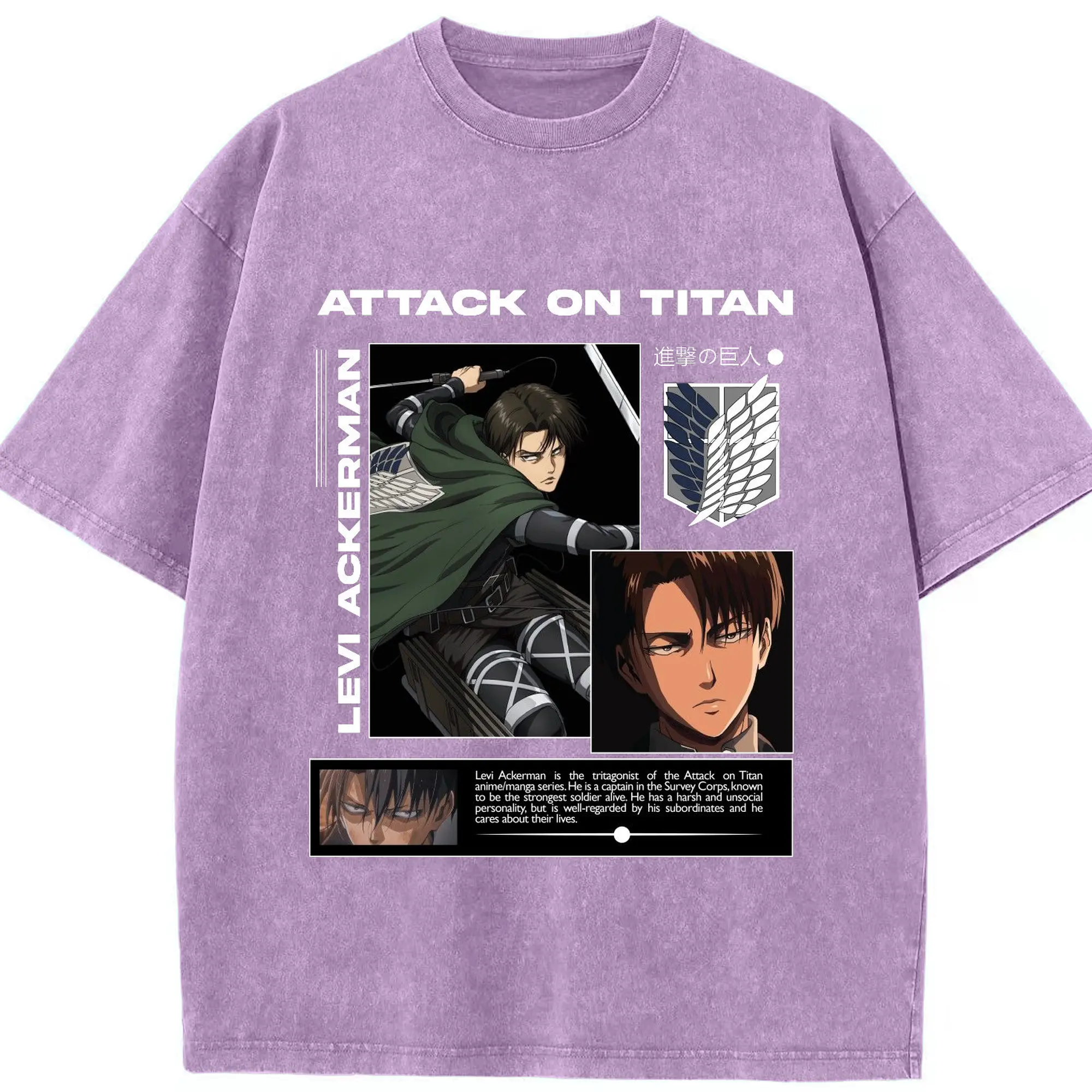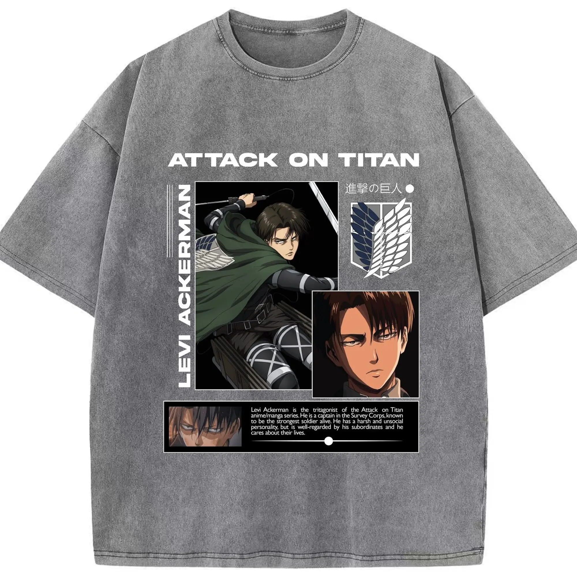 進撃の巨人 リヴァイ - 綿100% 半袖Tシャツ ・ フロントプリント ・ 快適 通気性 ・ 日常使い 散歩 スポーツ用
