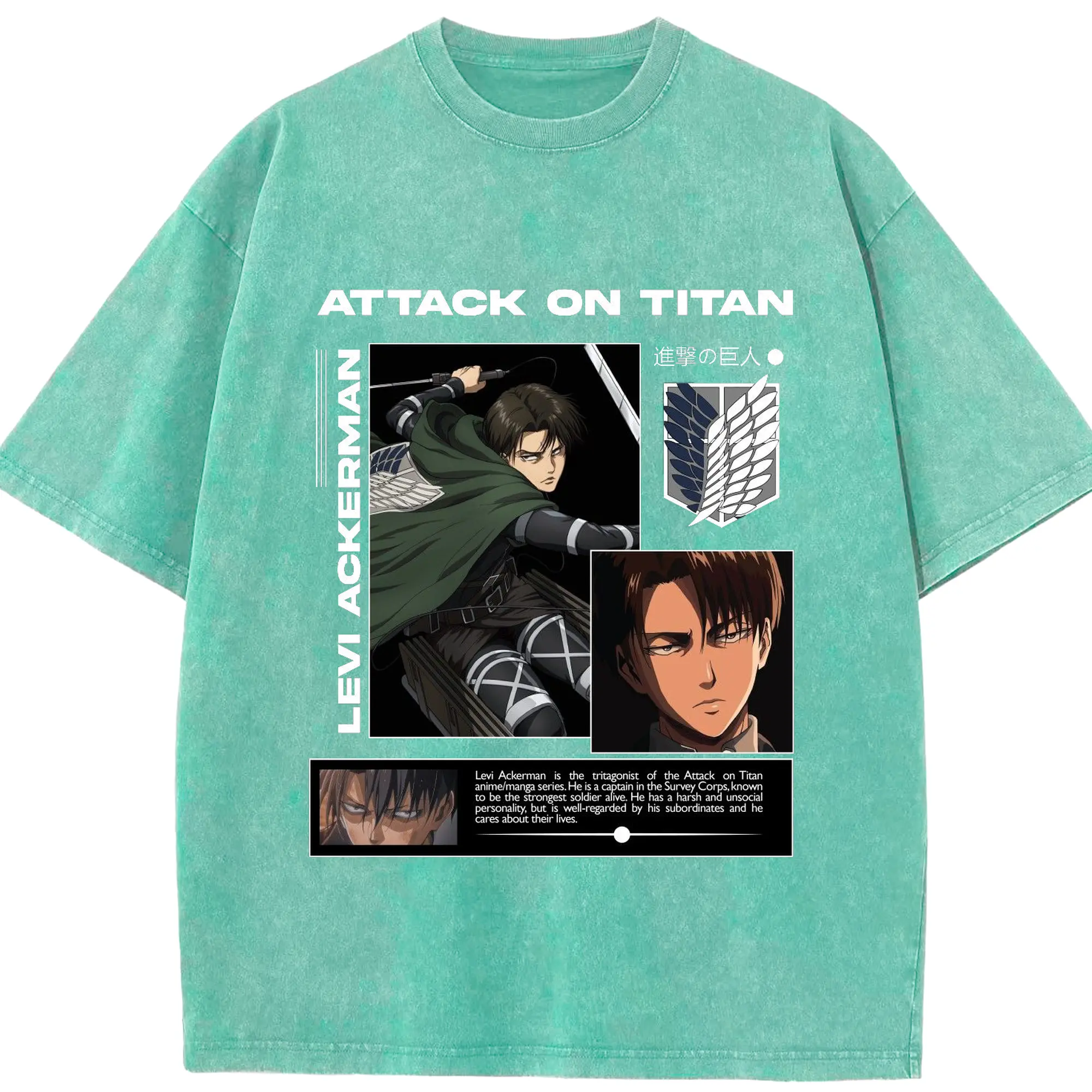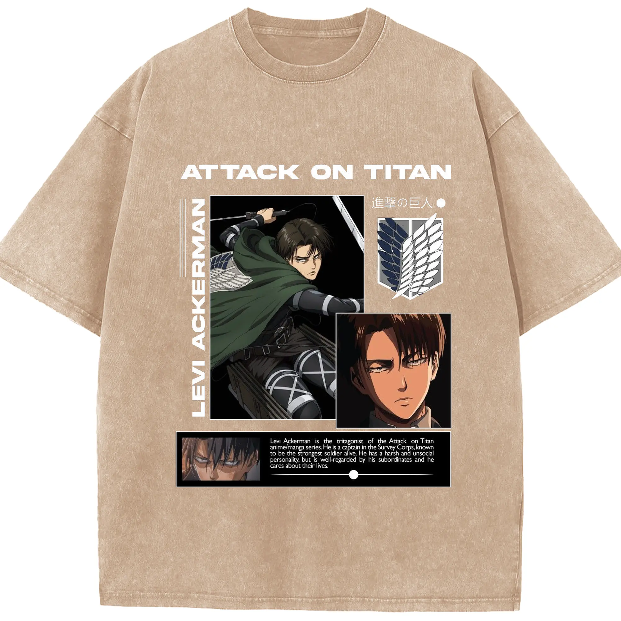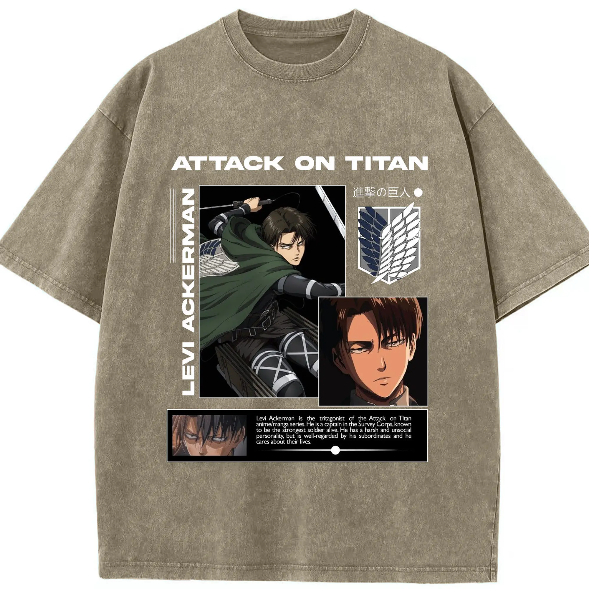 進撃の巨人 リヴァイ - 綿100% 半袖Tシャツ ・ フロントプリント ・ 快適 通気性 ・ 日常使い 散歩 スポーツ用