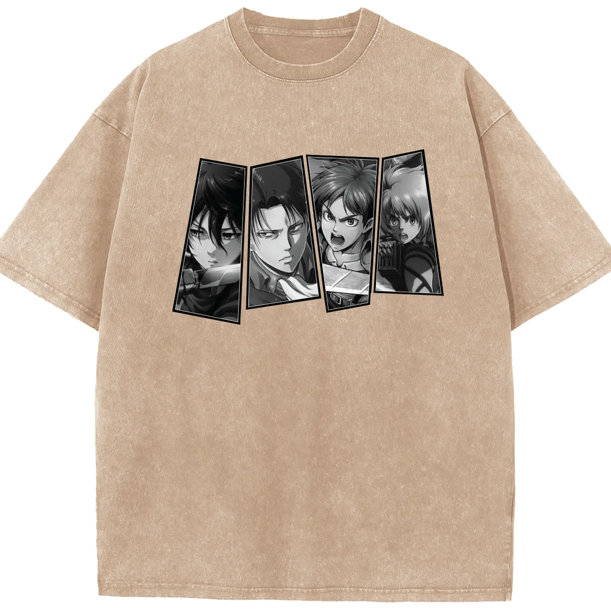 進撃の巨人 大人気キャラクター特別限定 - 綿100% 半袖Tシャツ ・ フロントプリント ・ 快適 通気性 ・ 日常使い 散歩 スポーツ用