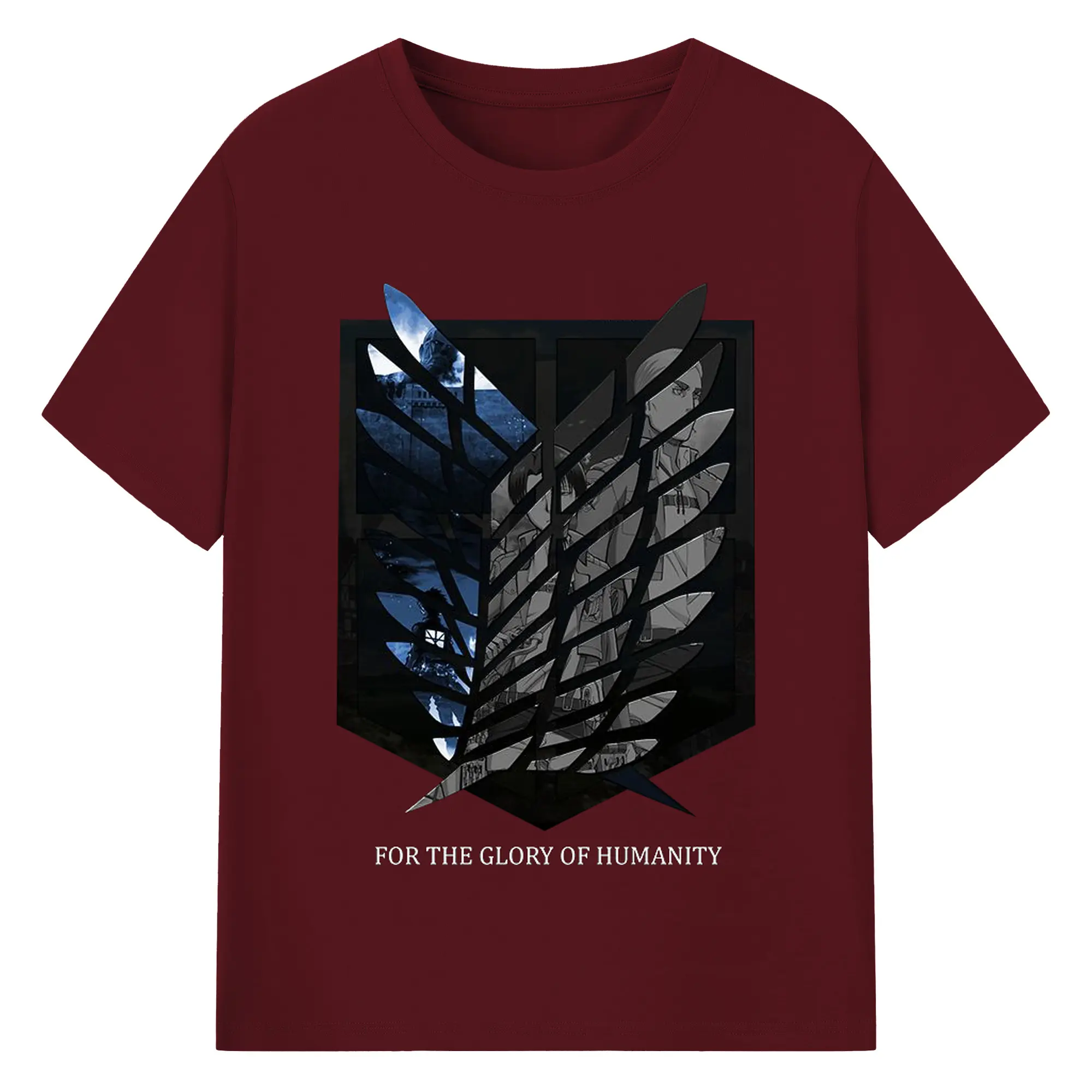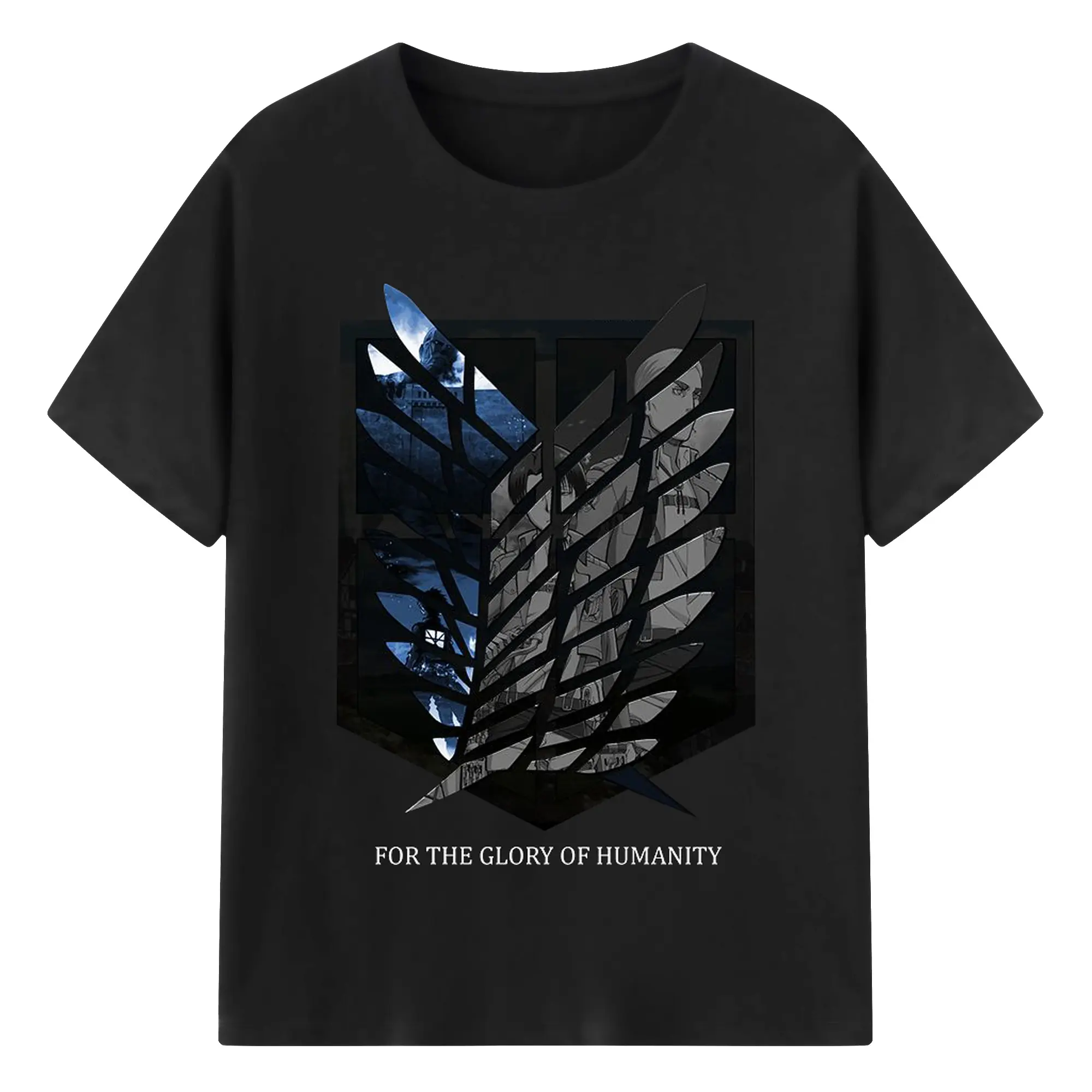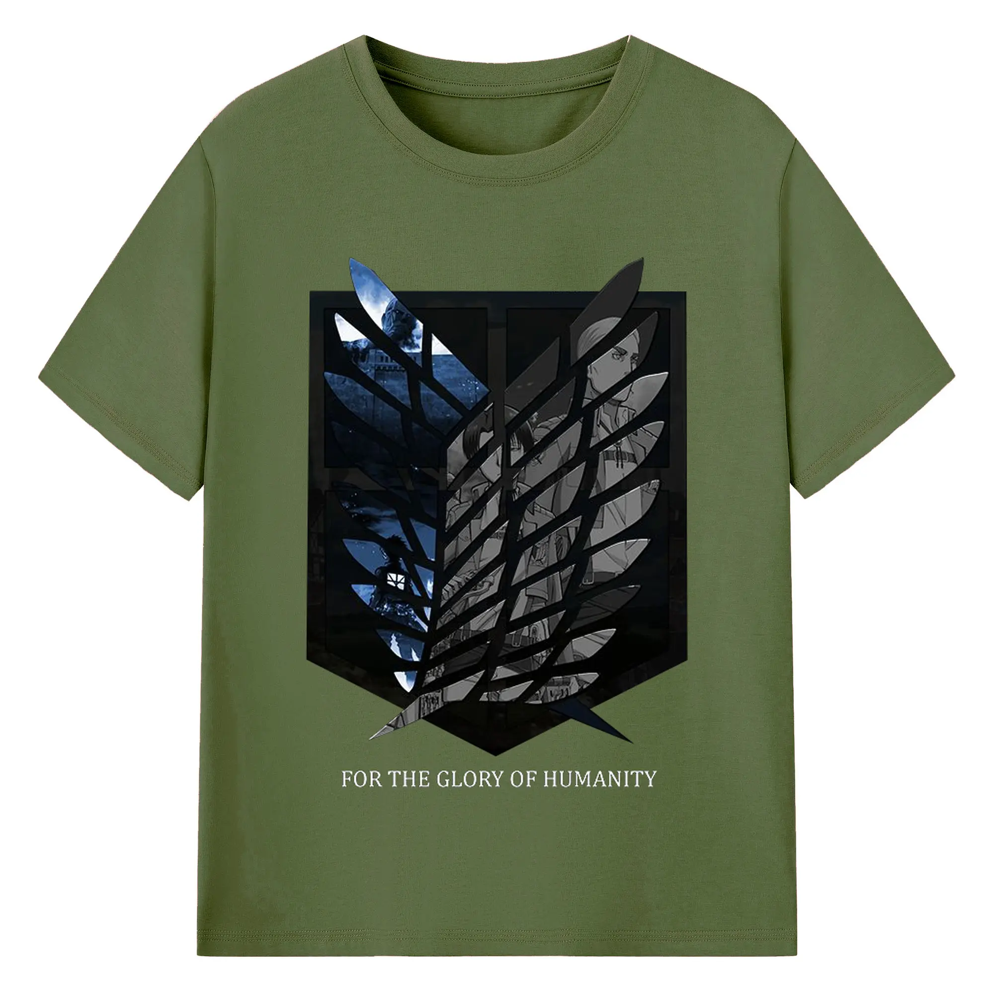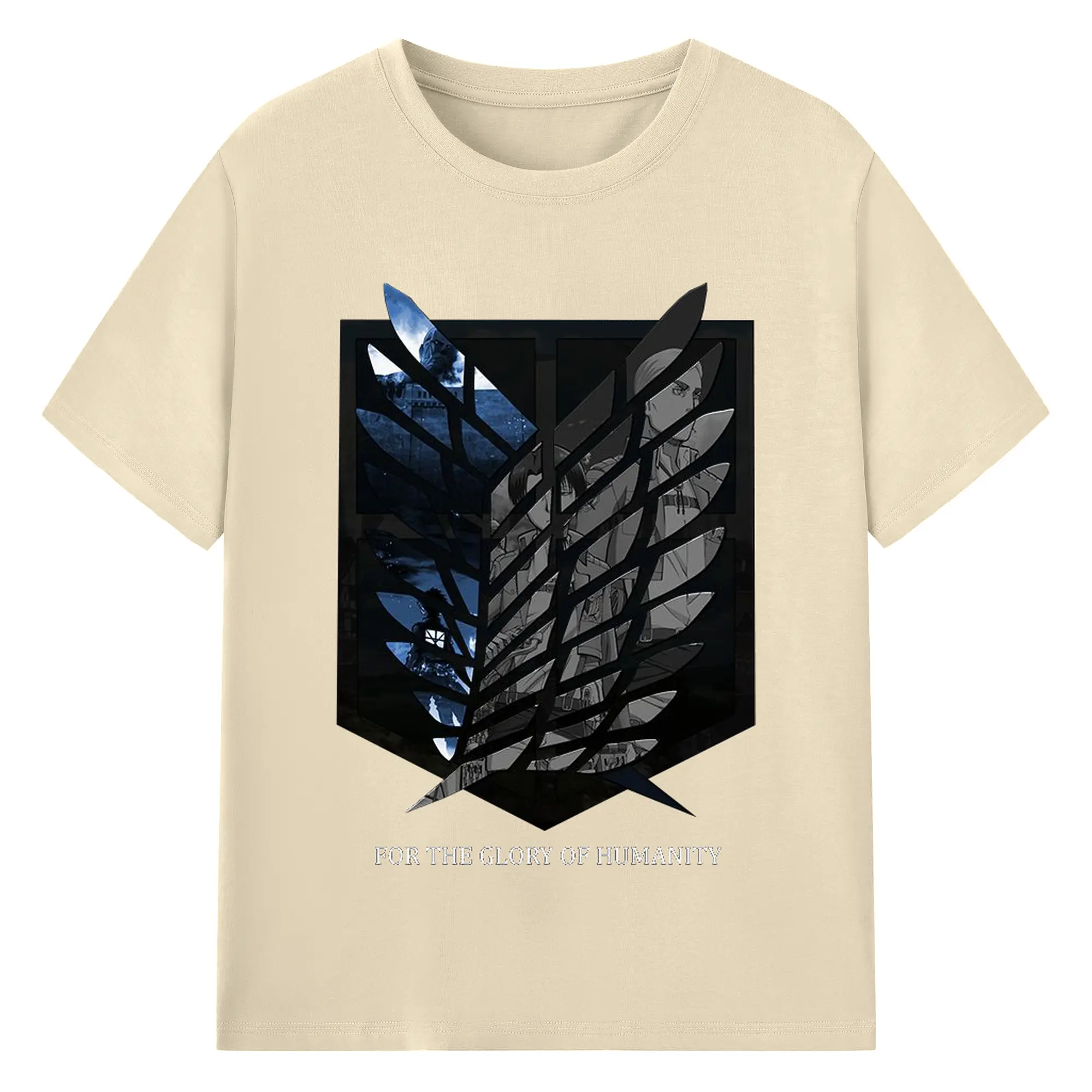 進撃の巨人 - 綿100% ヴィンテージ風 半袖Tシャツ ・ フロントプリント ・ 柔らか肌触り ・ 通気性 快適 ・ スポーツ カジュアル 外出用